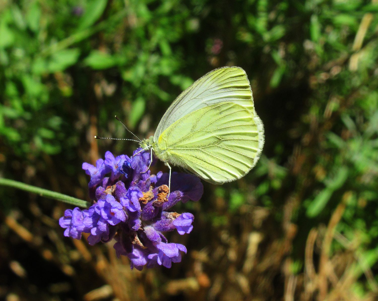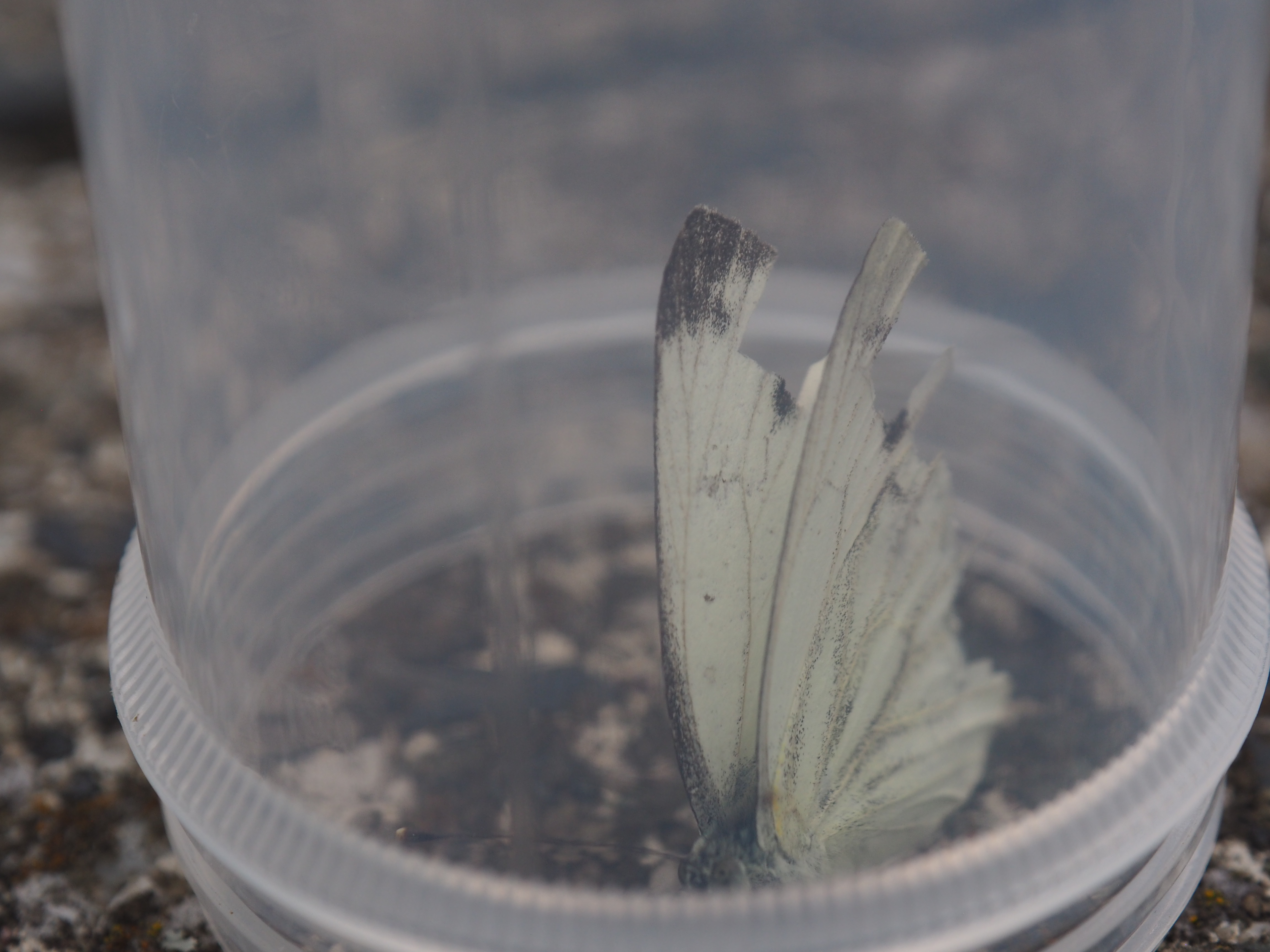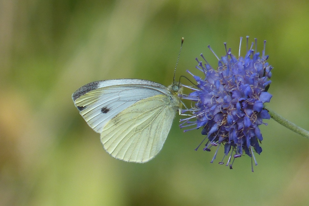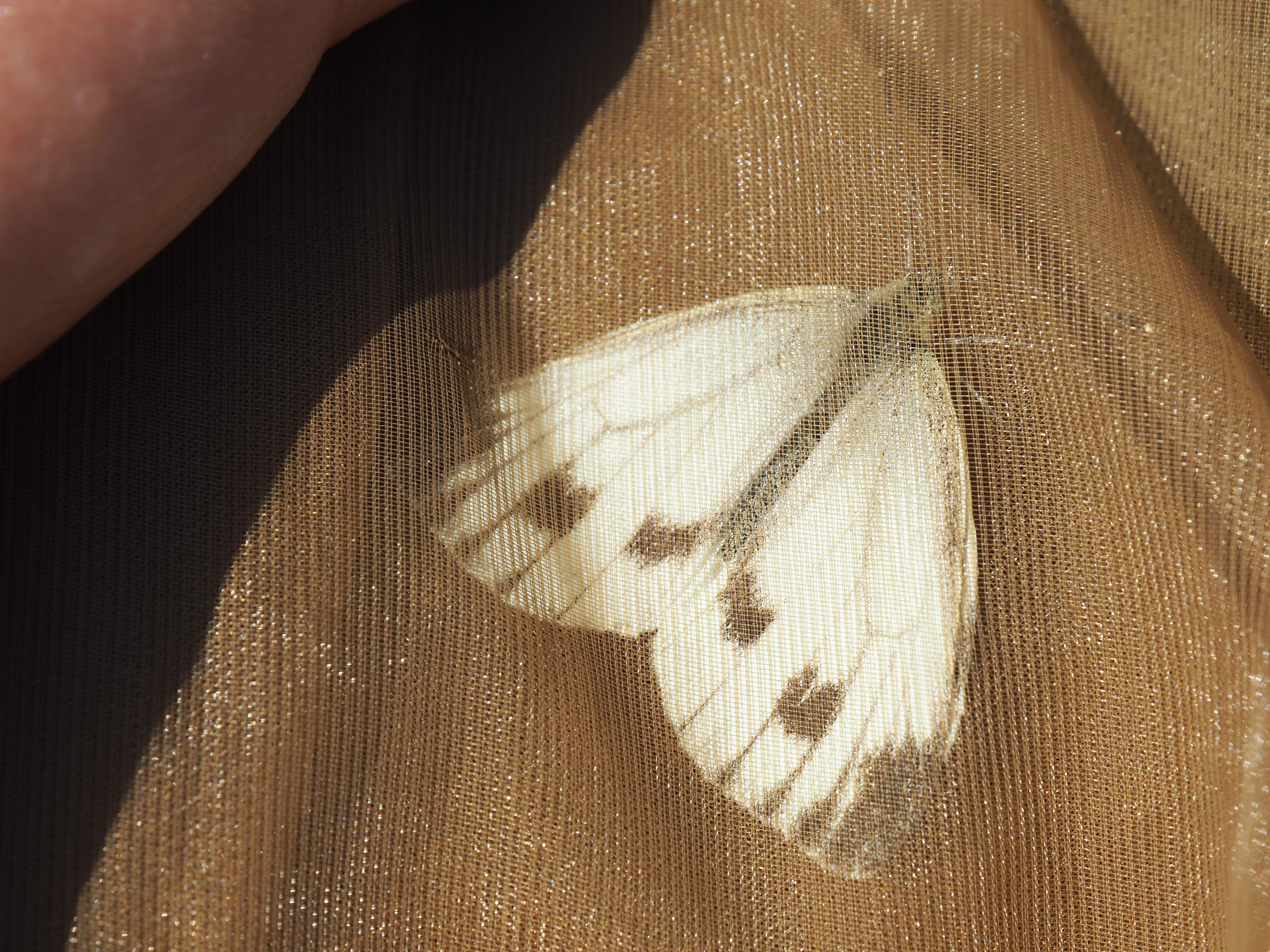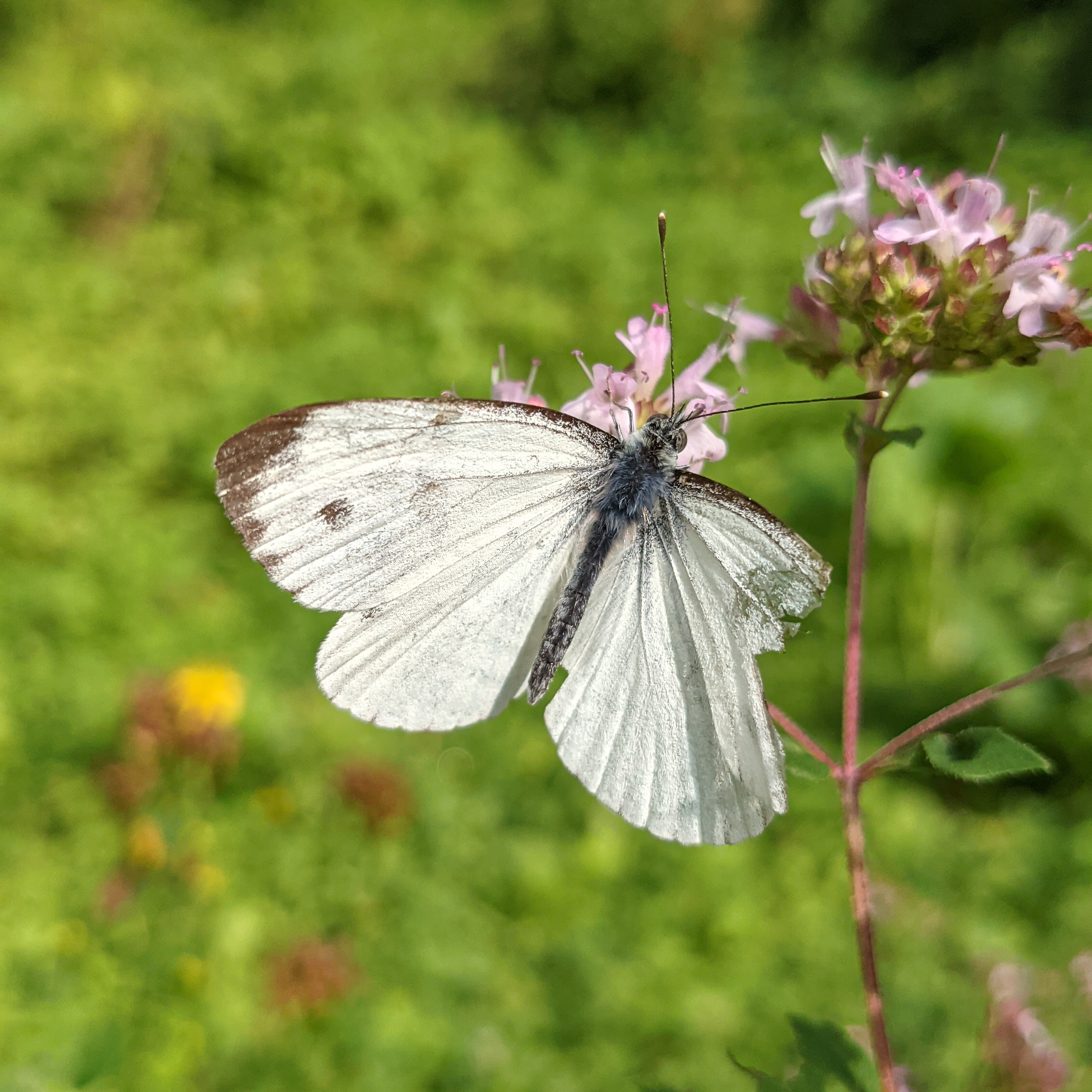 Ein stark abgeflogener Grünaderweißling im Juli 2015 auf dem Mont Salève in Frankreich
