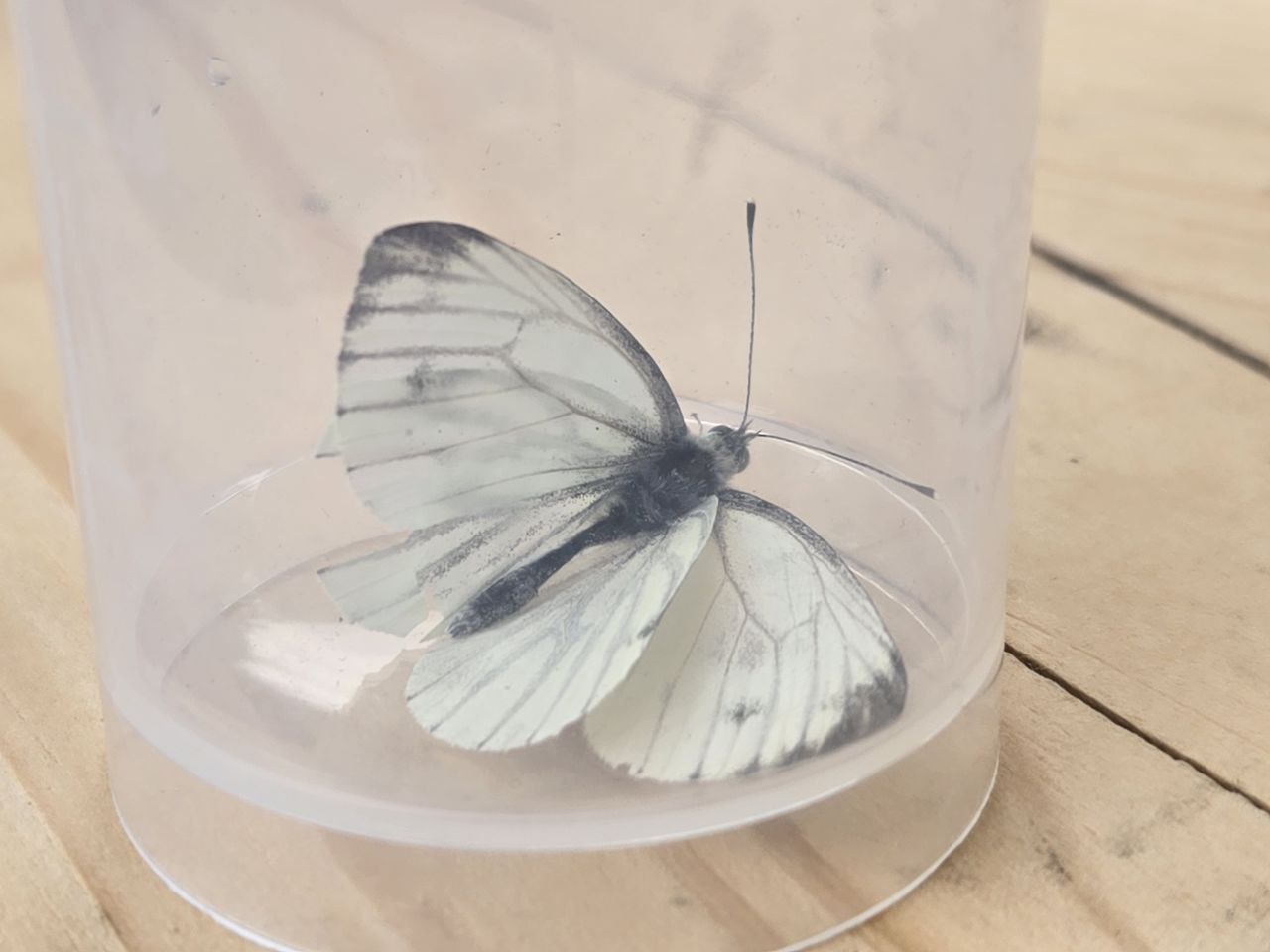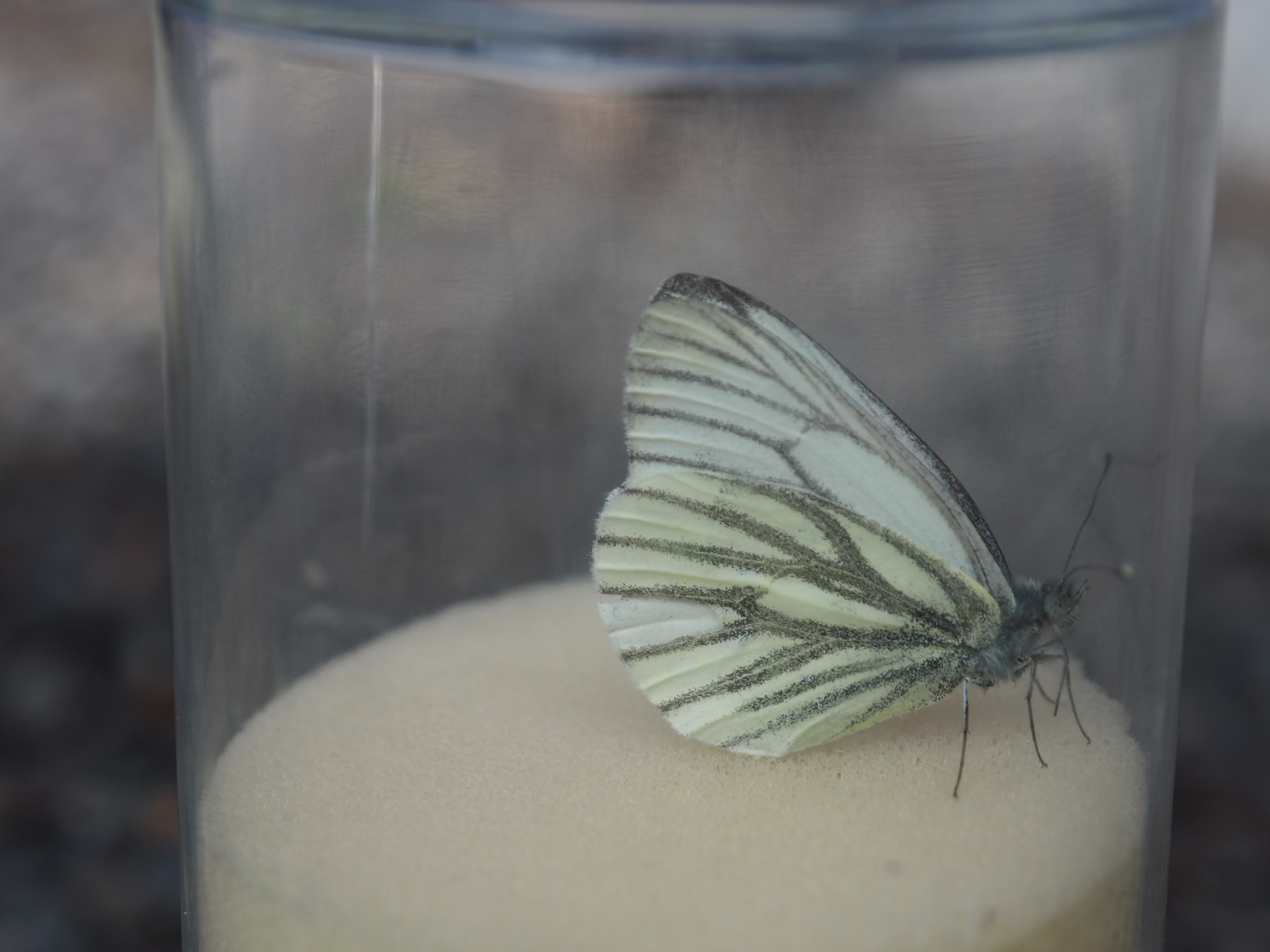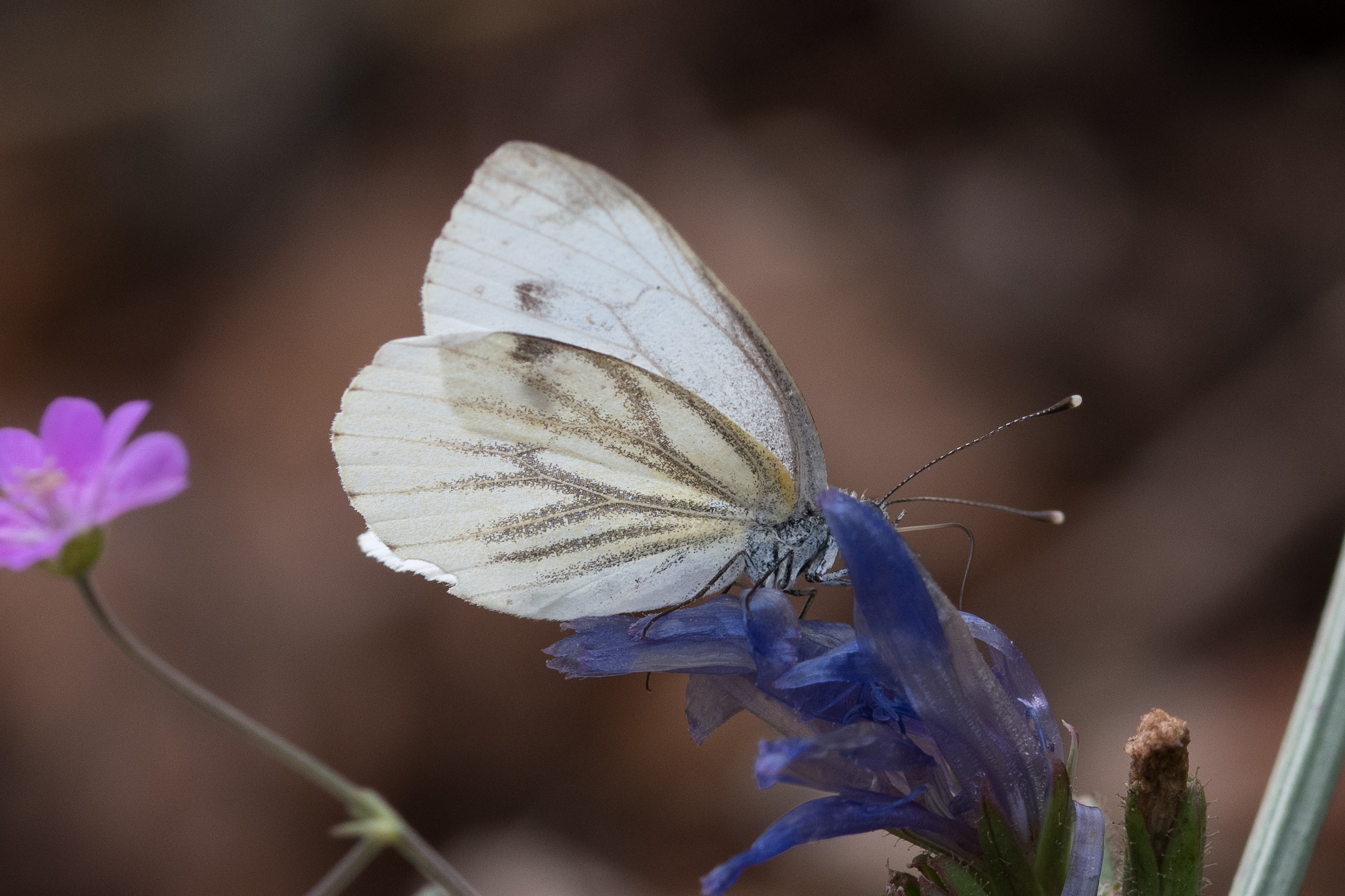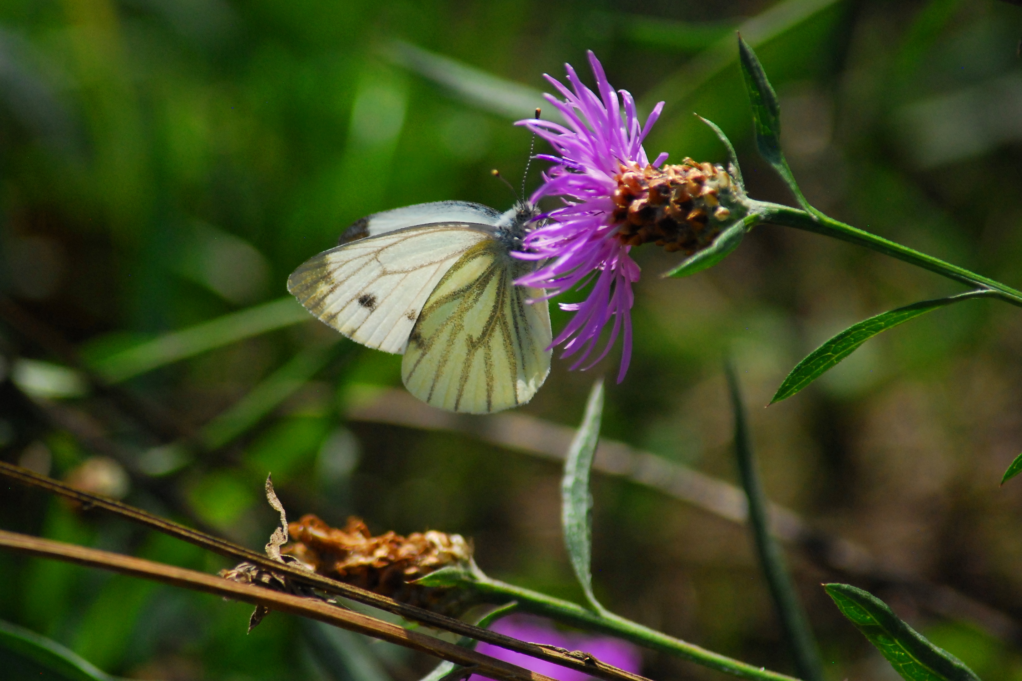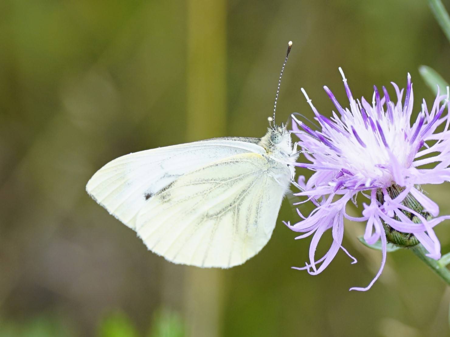 Ein stark abgeflogener Grünaderweißling im Juli 2015 auf dem Mont Salève in Frankreich
