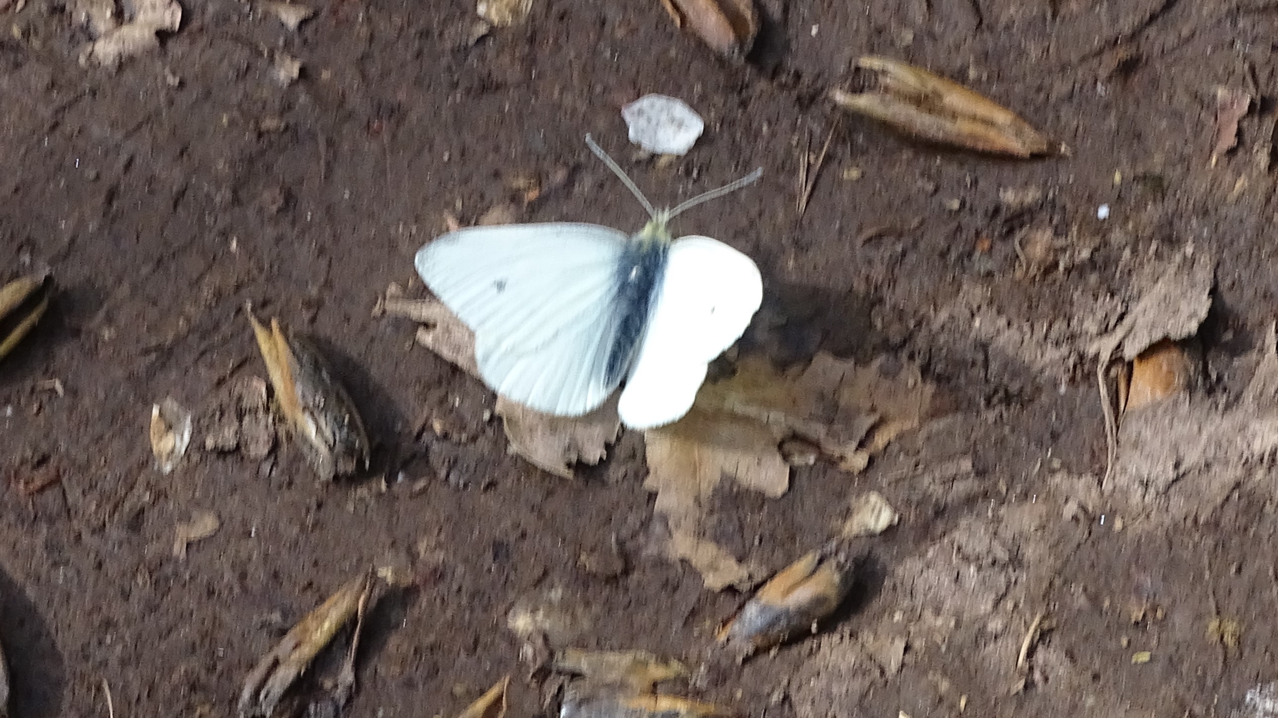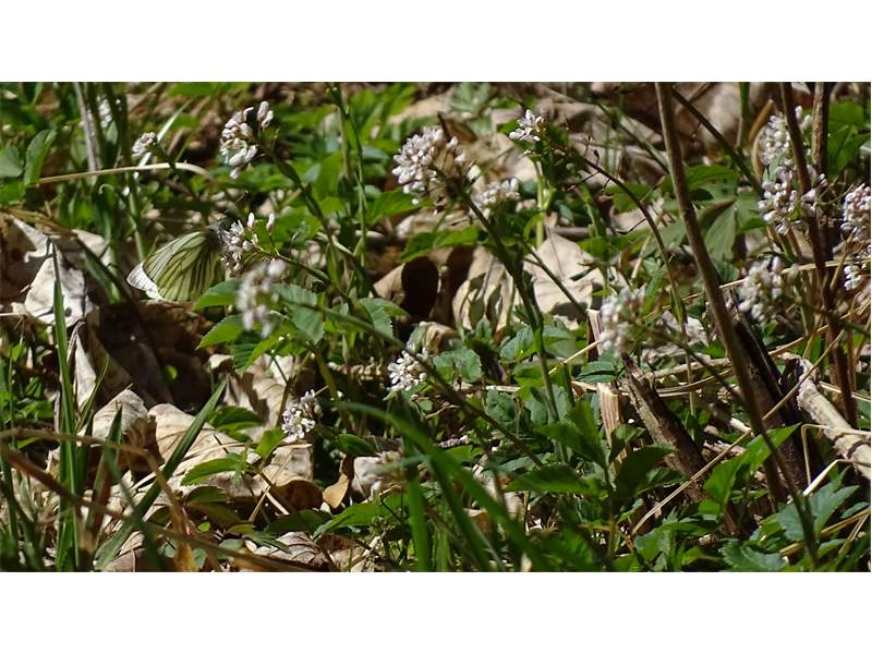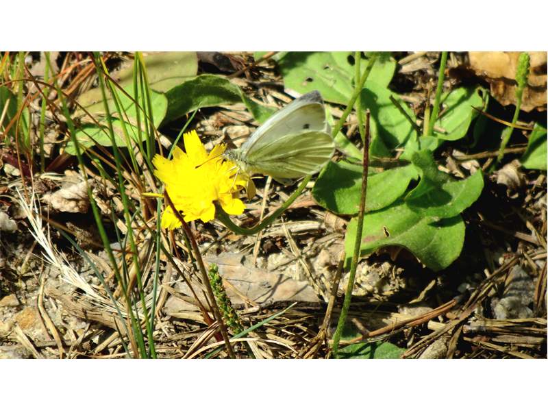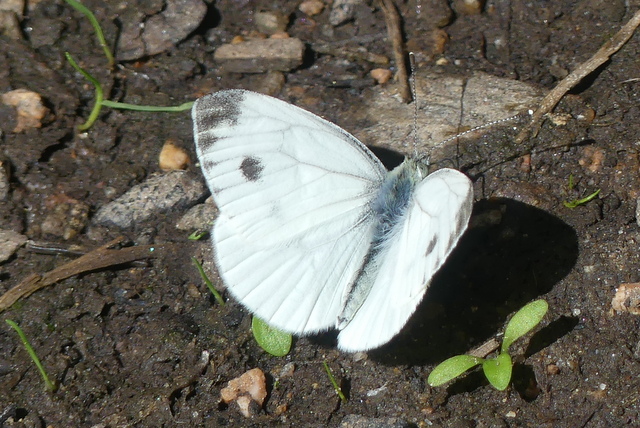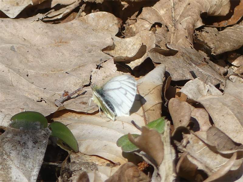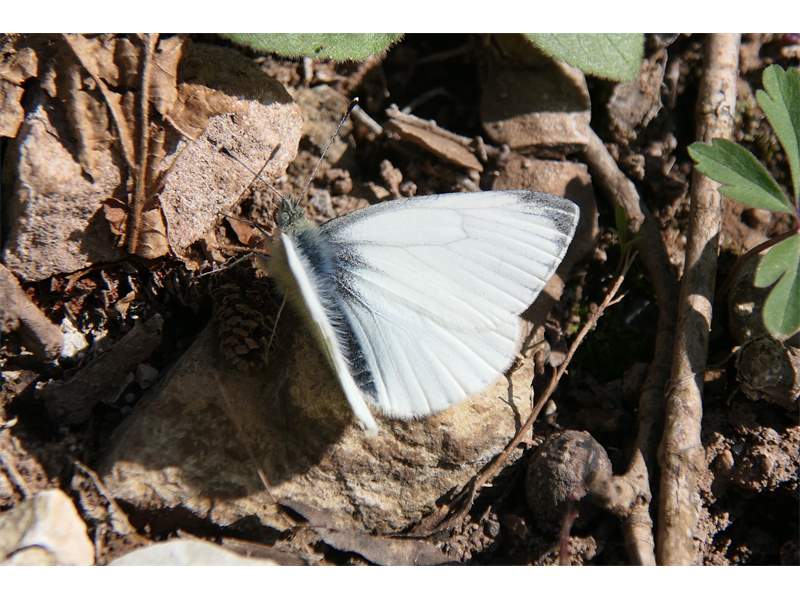 Grünaderweißling am Rand eines Waldweges, Hochhalde Trages bei Espenhain, April 2015