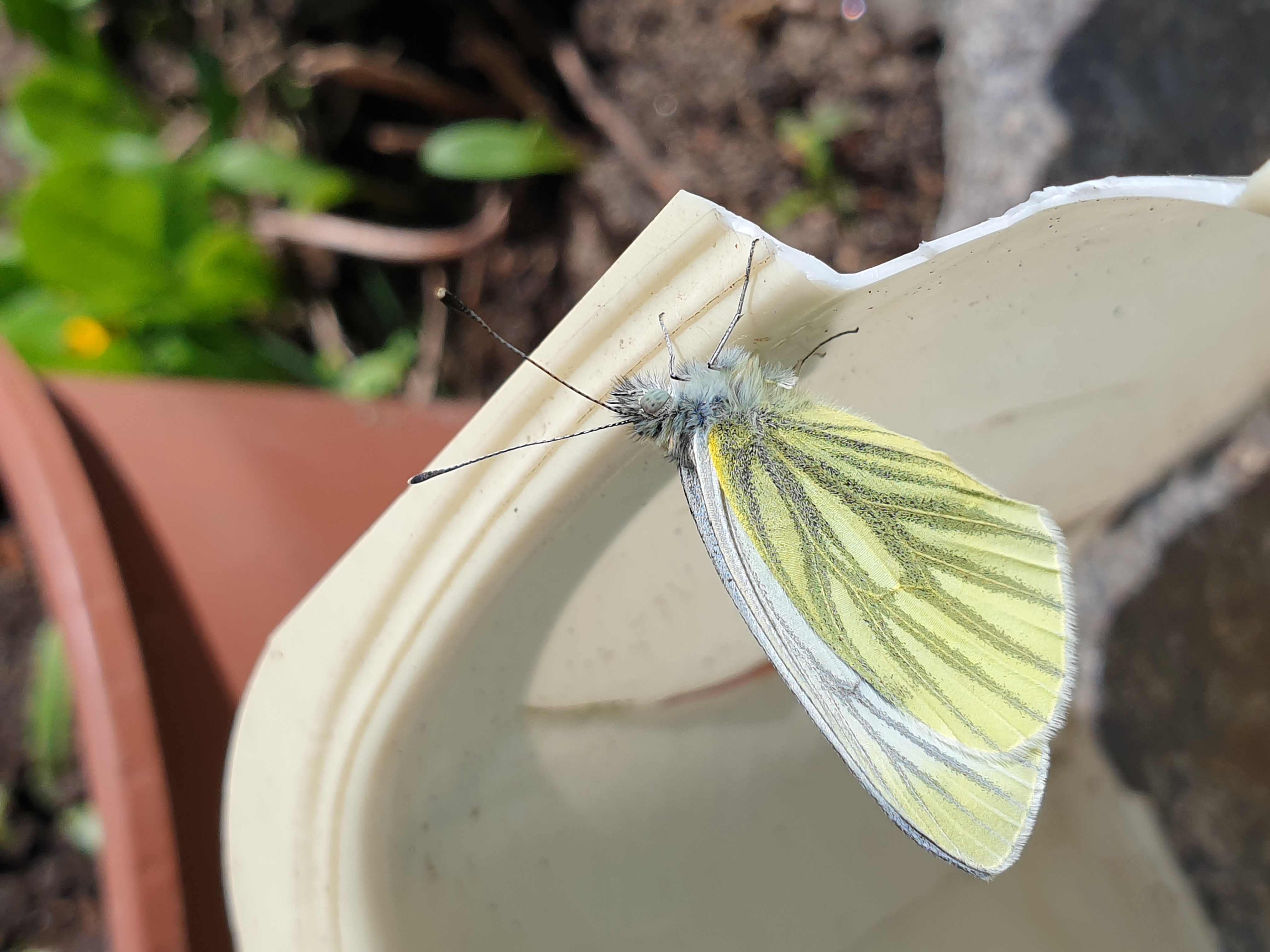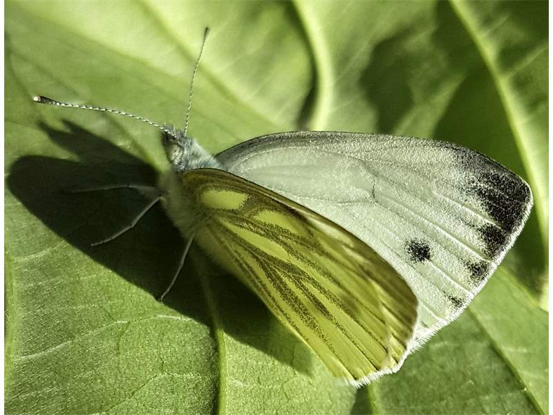 Ein frisch geschlüpfter Falter von Pieris napi in Dresden-Tolkewitz.