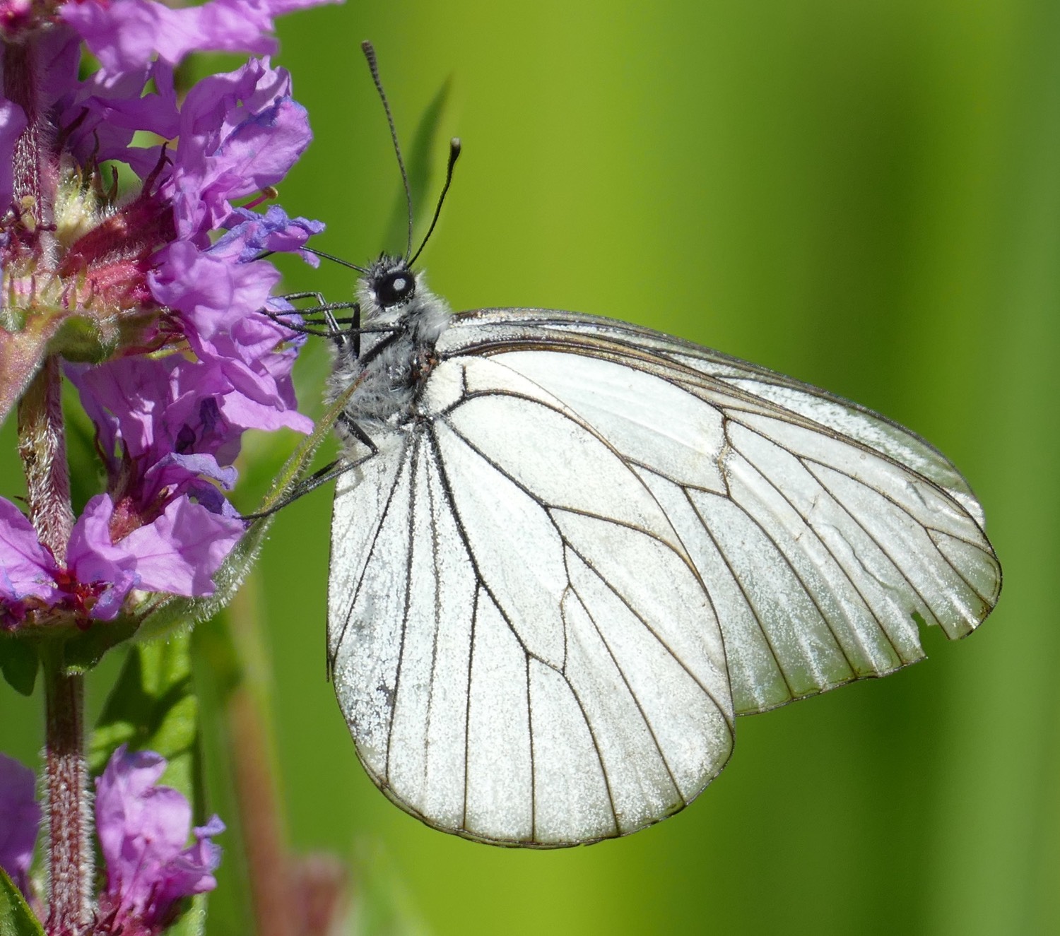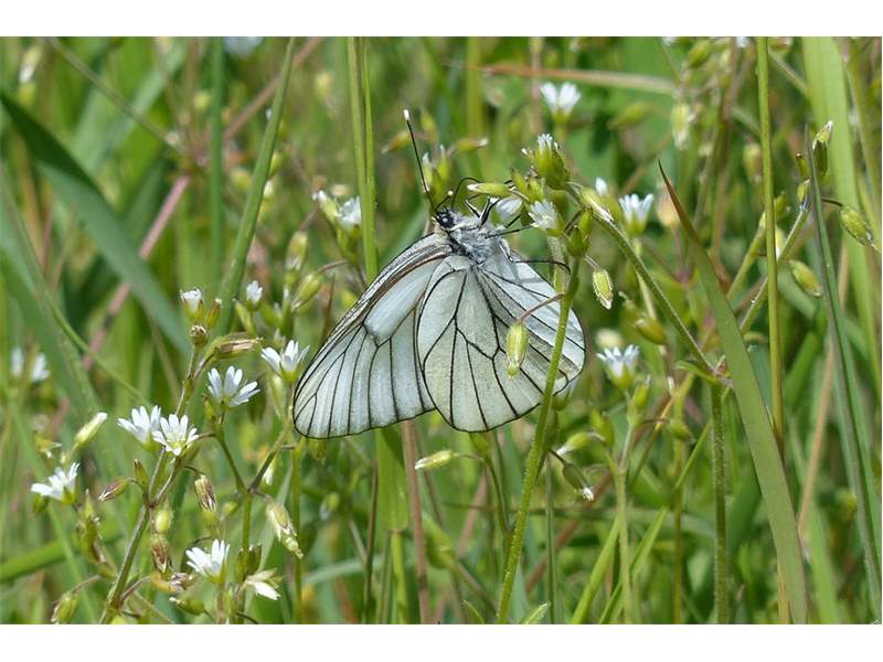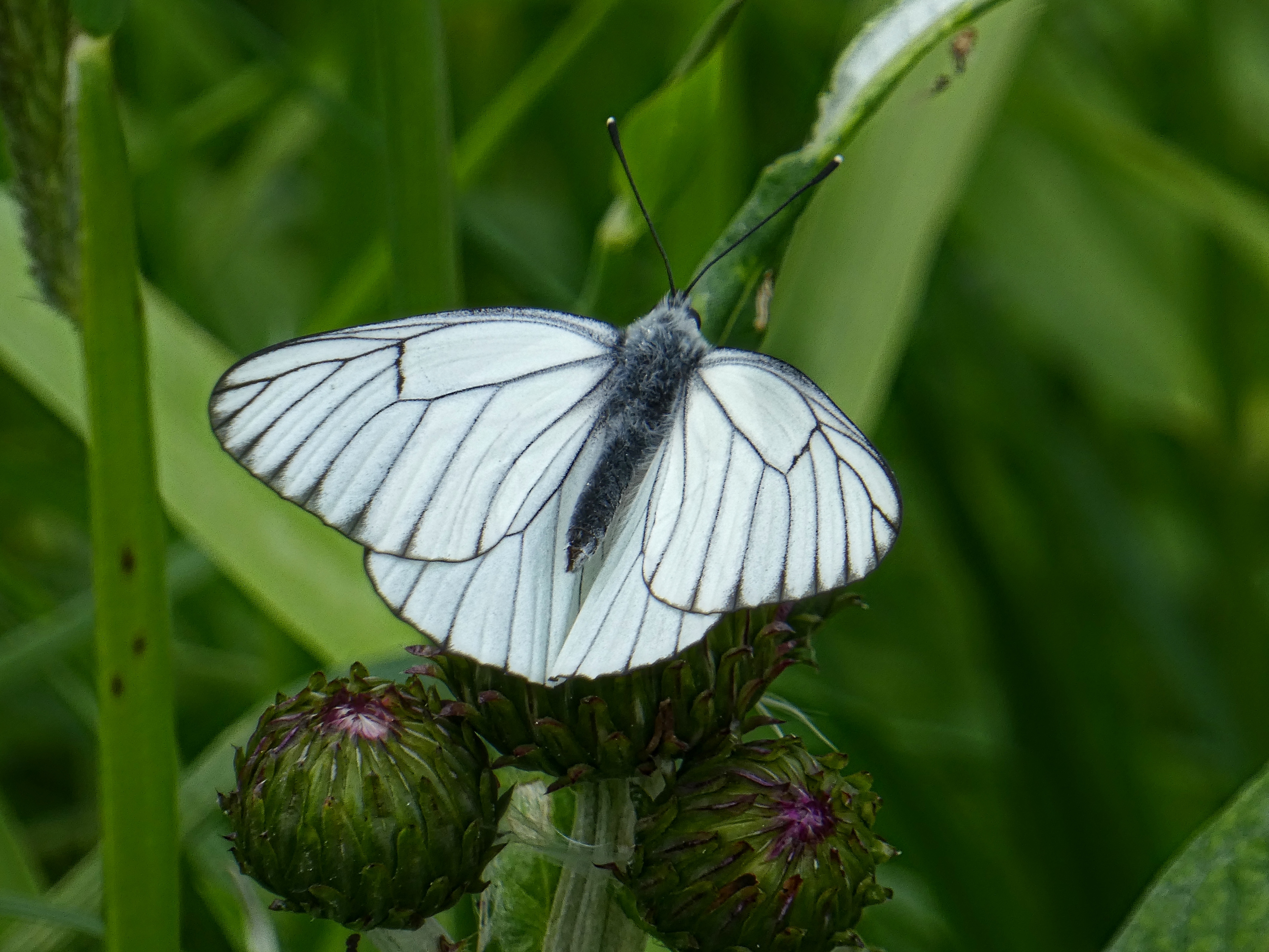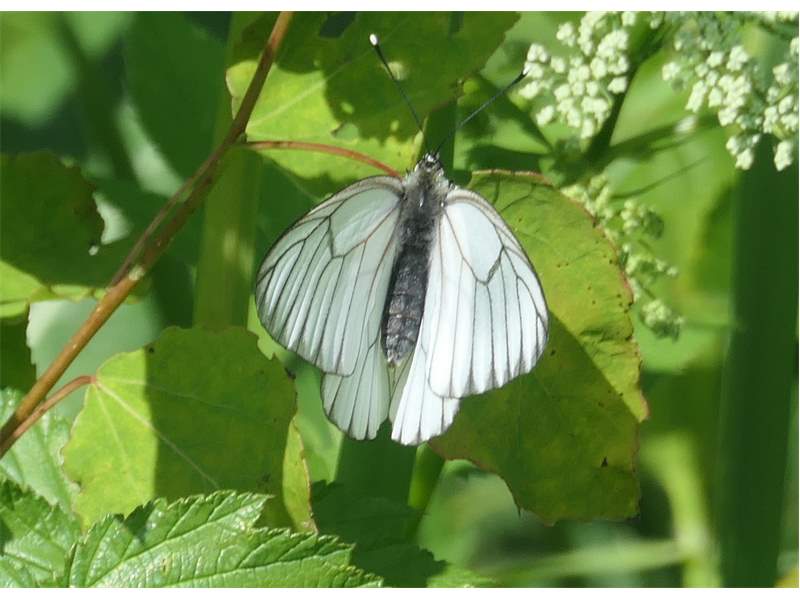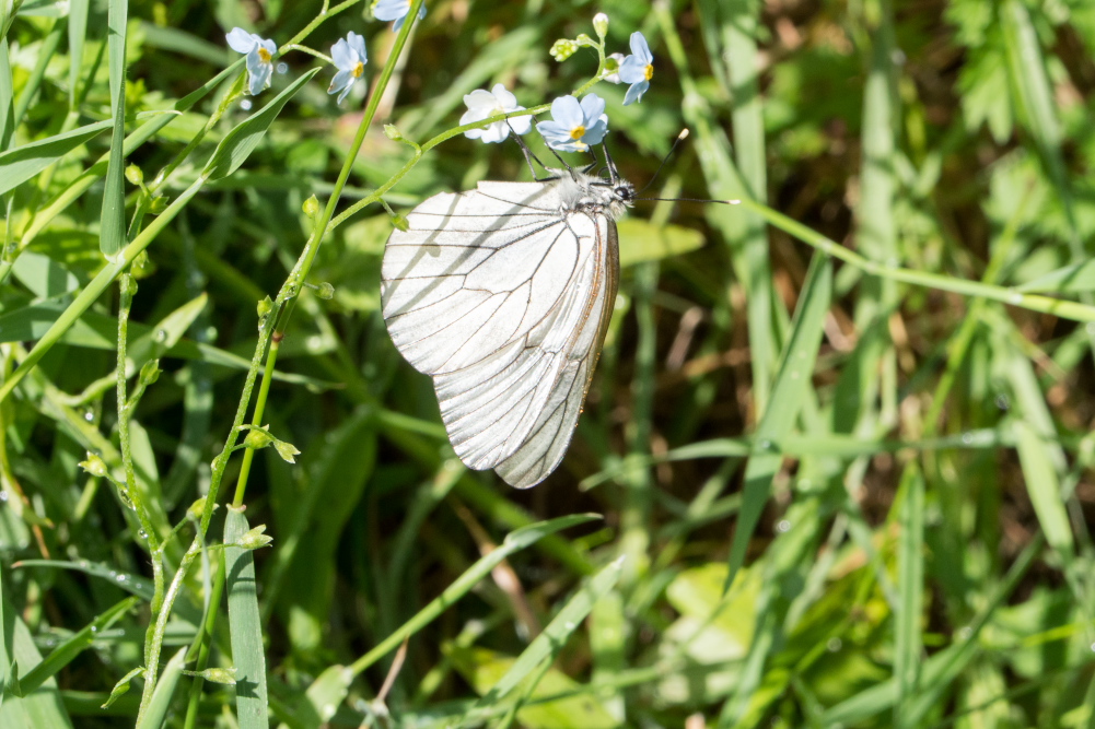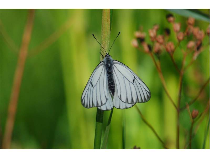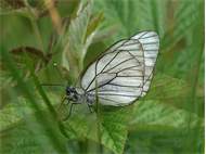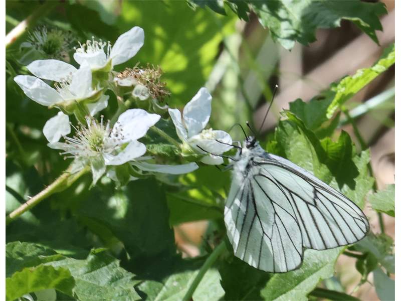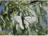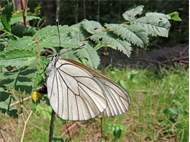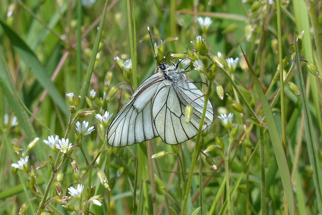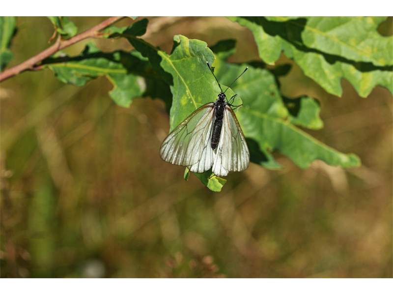 Baumweißling (Aporia crataegi (Linnaeus, 1758)), im Plane-Quellgebiet, Naturpark Hoher Fläming (Brandenburg), Anfang Juni 2019 (© Bernd Garbe)( Bild vergrößern)