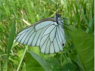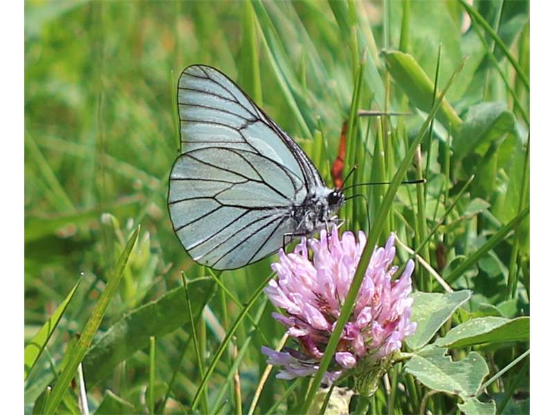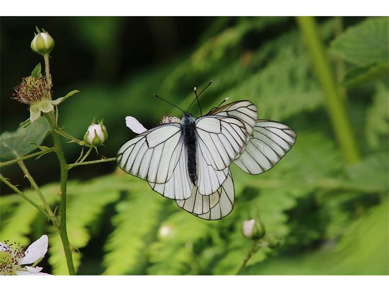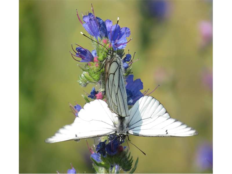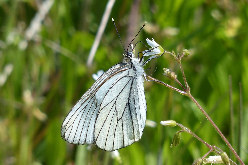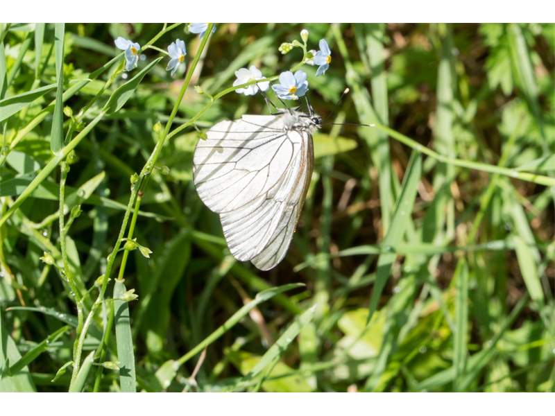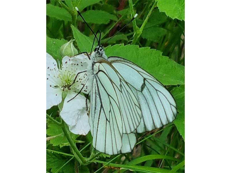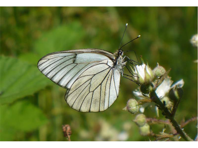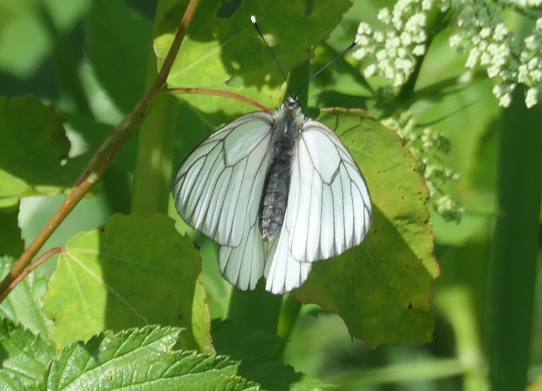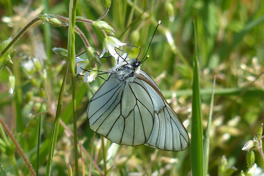 Baumweißling (Aporia crataegi (Linnaeus, 1758)), im Plane-Quellgebiet, Naturpark Hoher Fläming (Brandenburg), Anfang Juni 2019 (© Bernd Garbe)( Bild vergrößern)