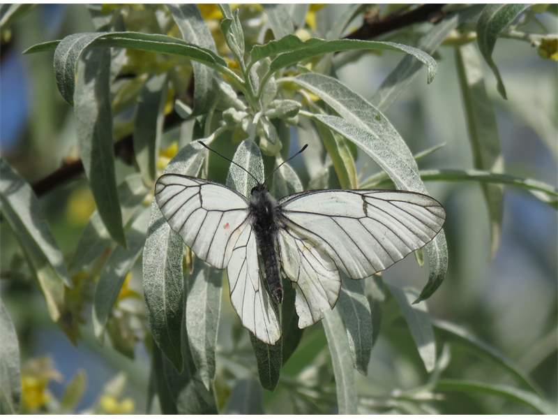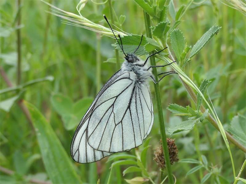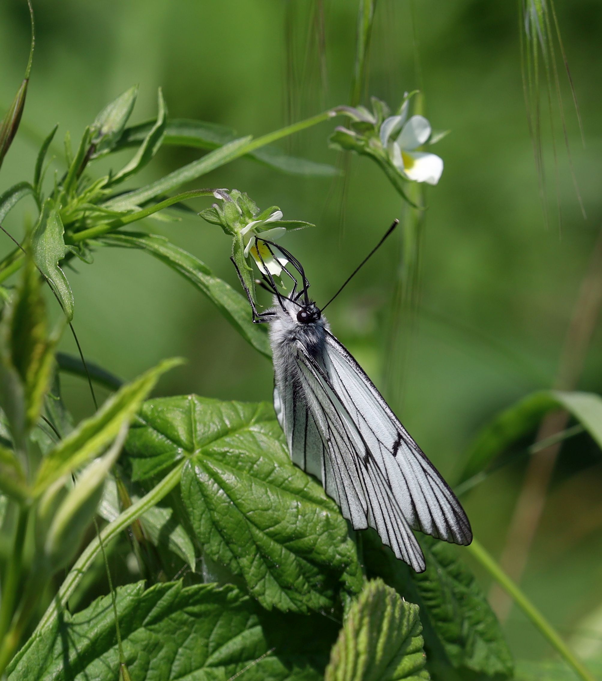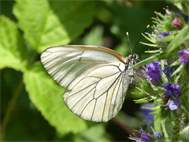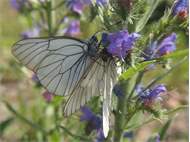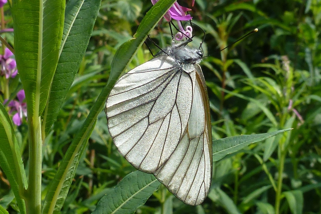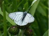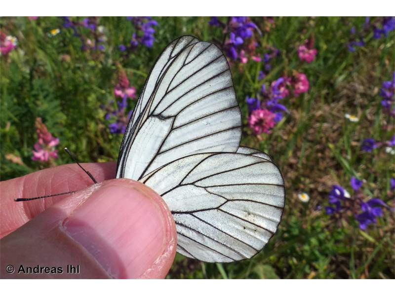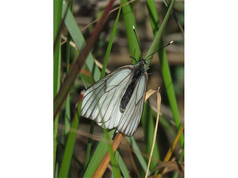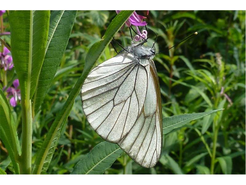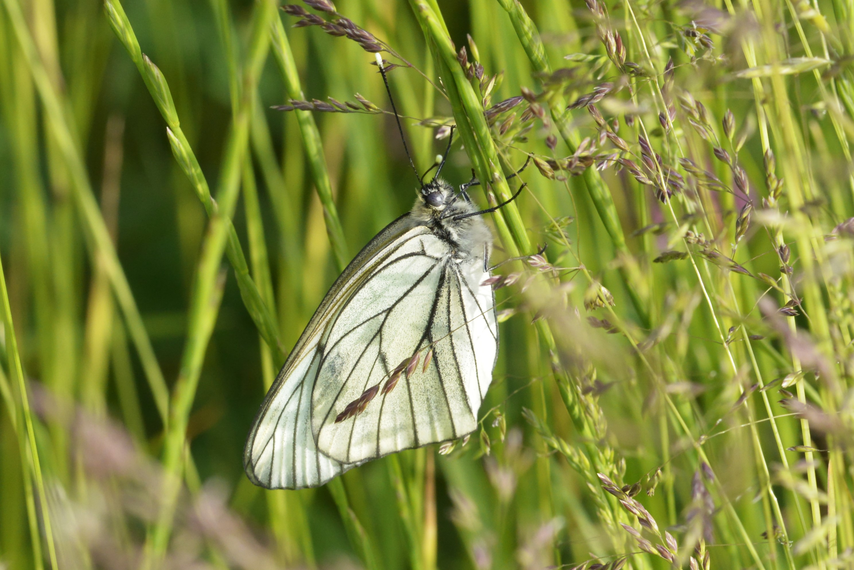 Baumweißling (Aporia crataegi (Linnaeus, 1758)), im Plane-Quellgebiet, Naturpark Hoher Fläming (Brandenburg), Anfang Juni 2019 (© Bernd Garbe)( Bild vergrößern)