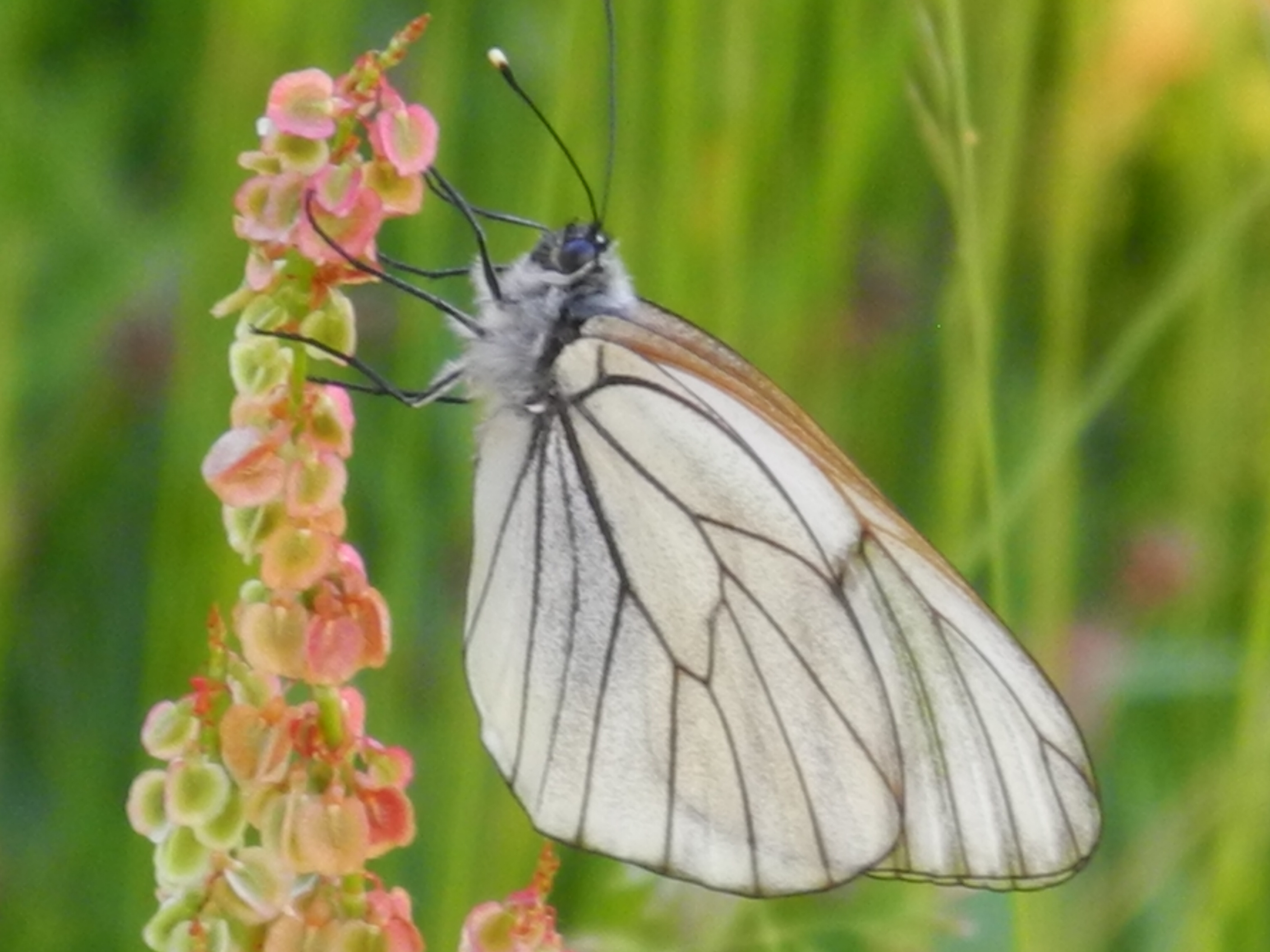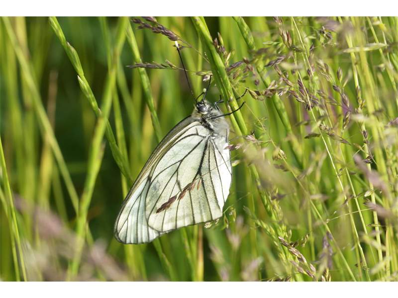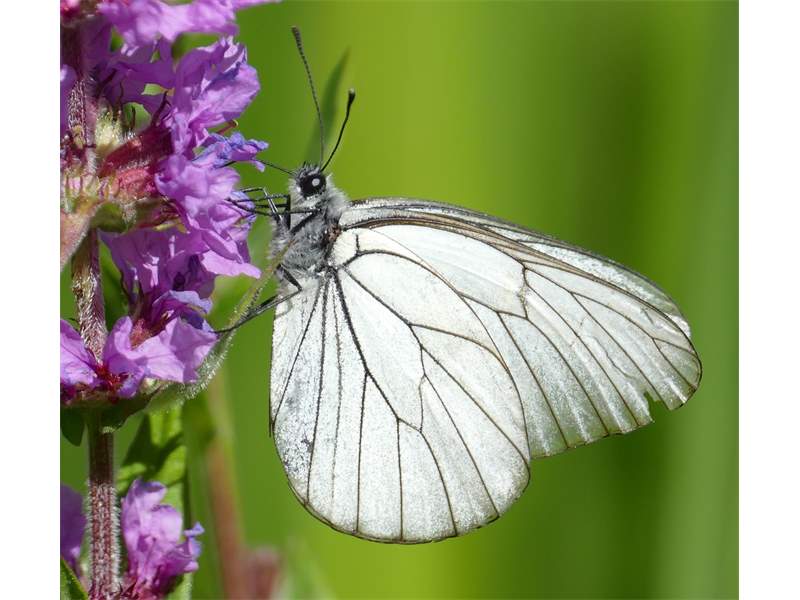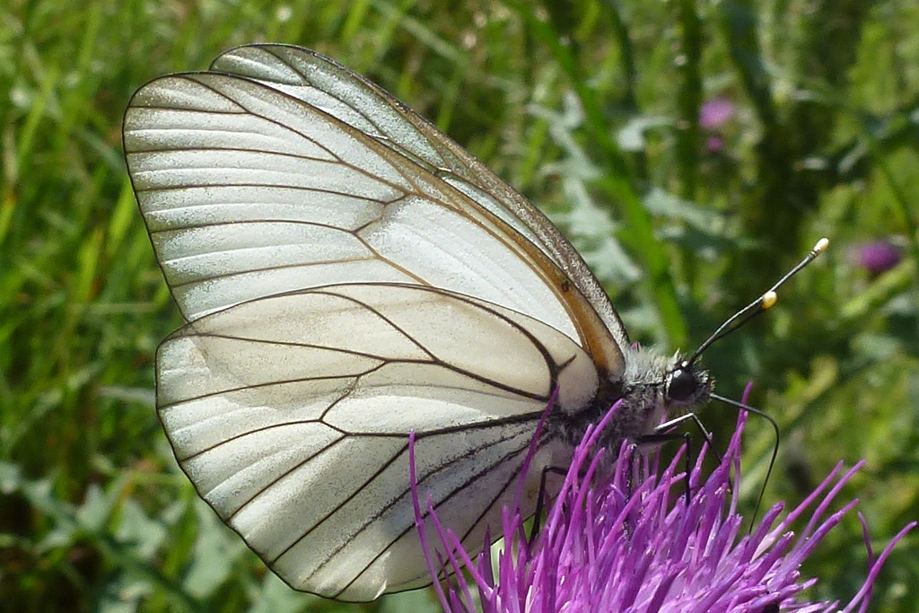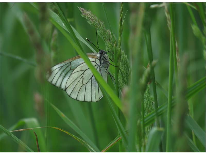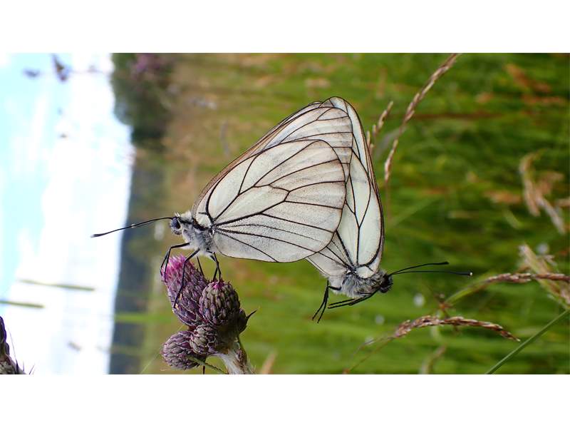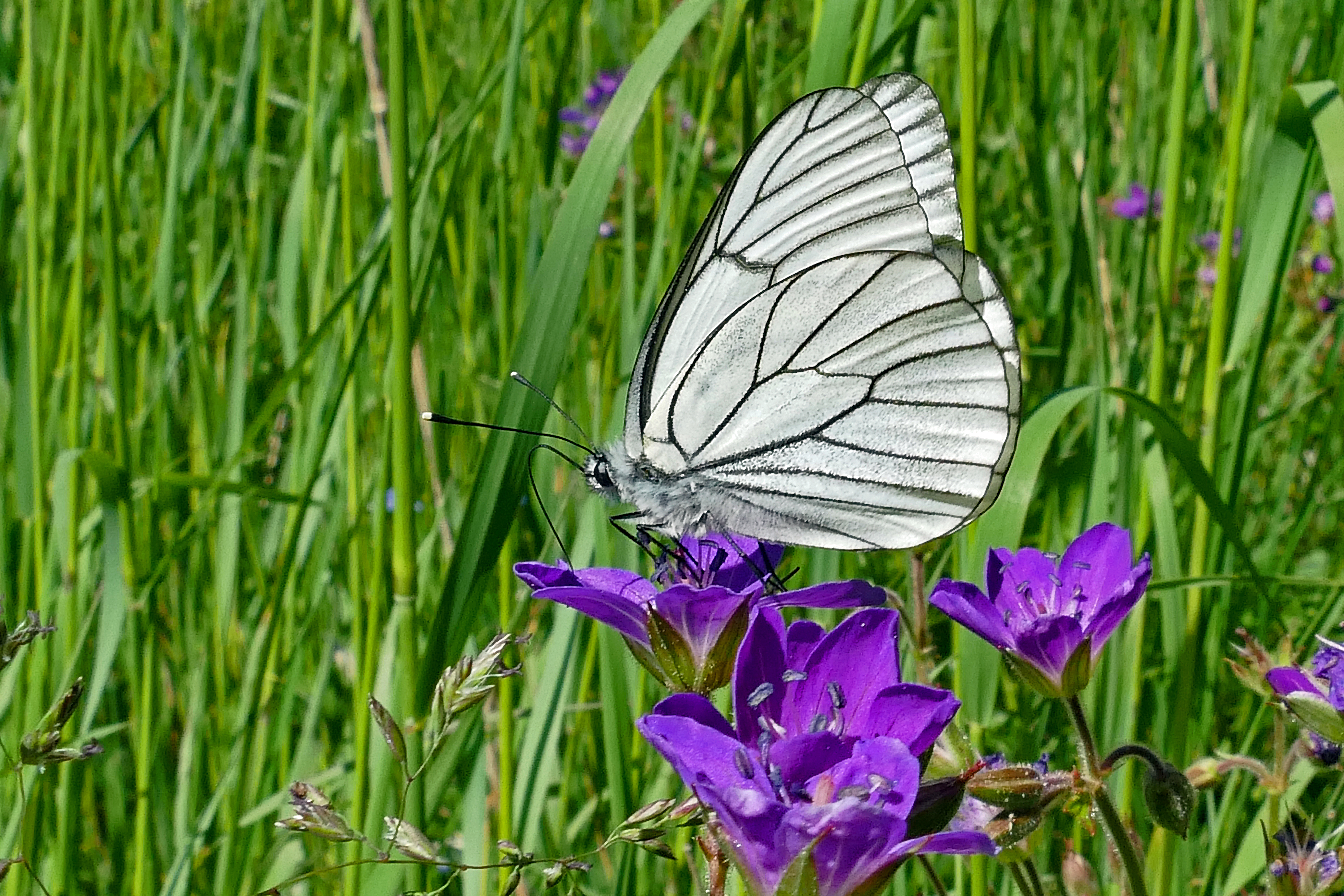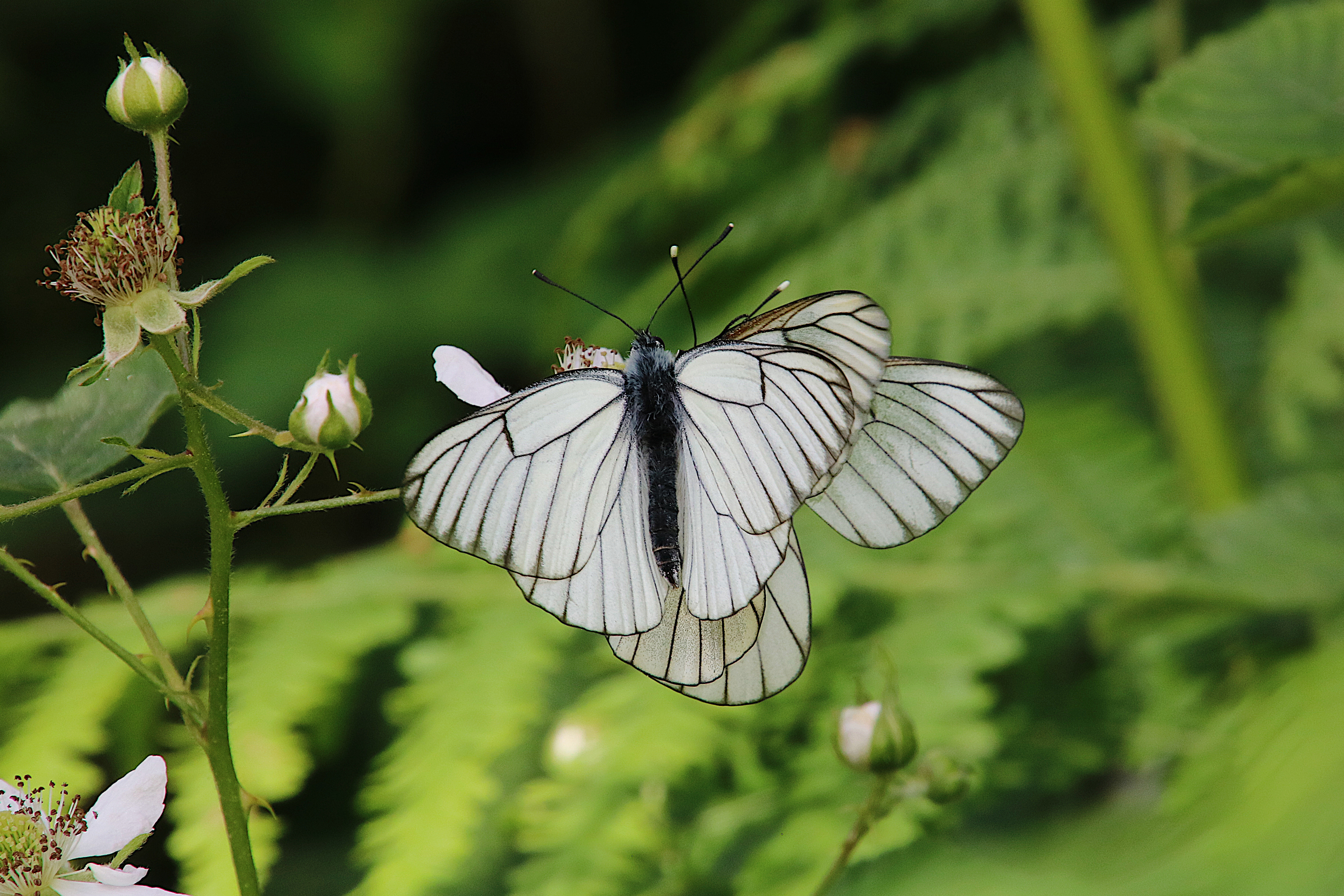 Baumweißling (Aporia crataegi (Linnaeus, 1758)), im Plane-Quellgebiet, Naturpark Hoher Fläming (Brandenburg), Anfang Juni 2019 (© Bernd Garbe)( Bild vergrößern)