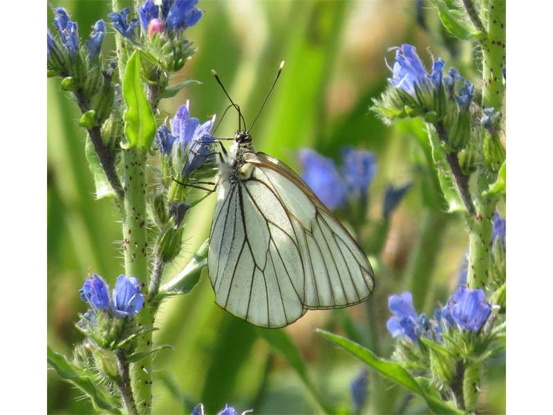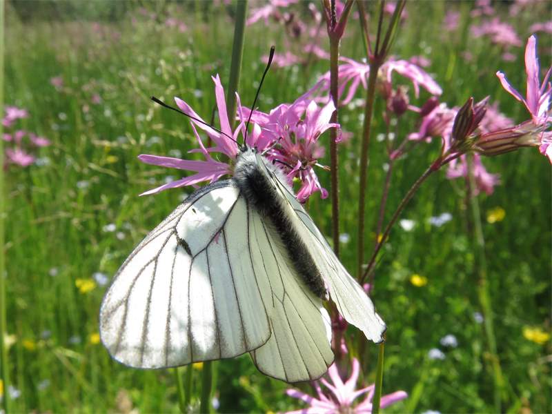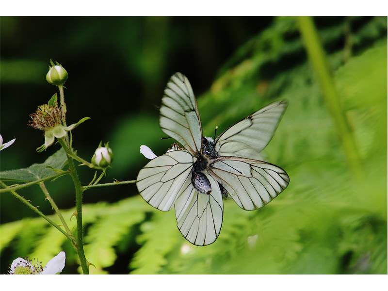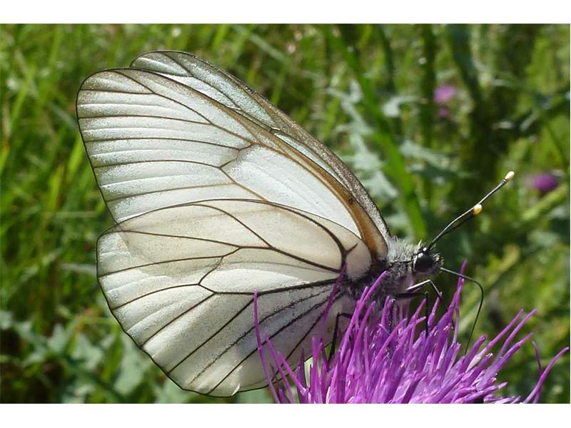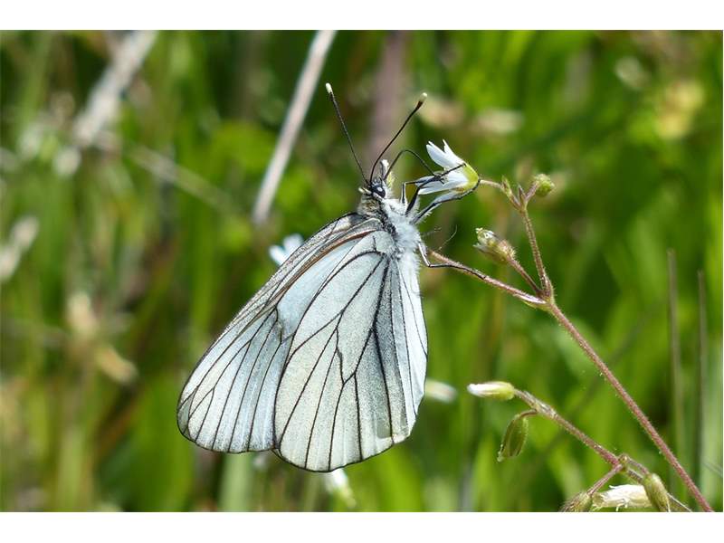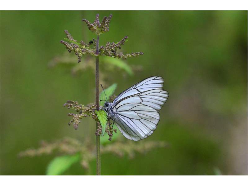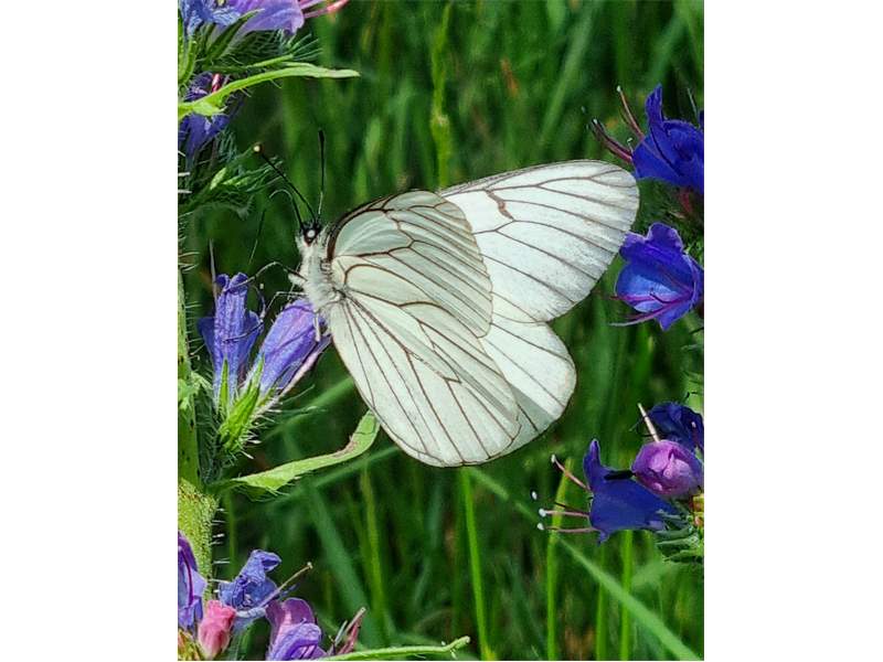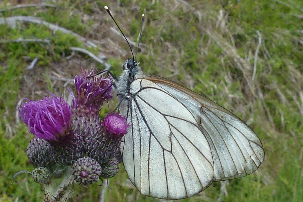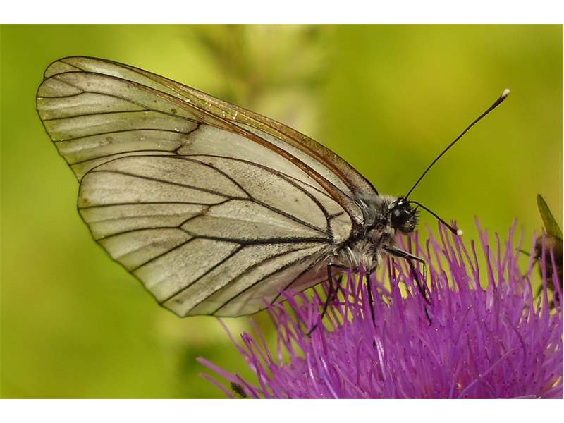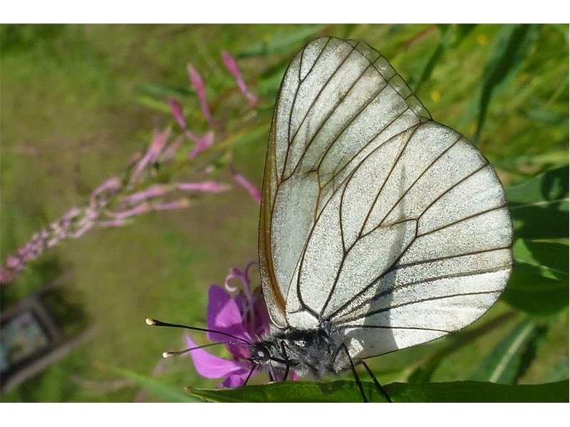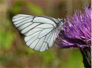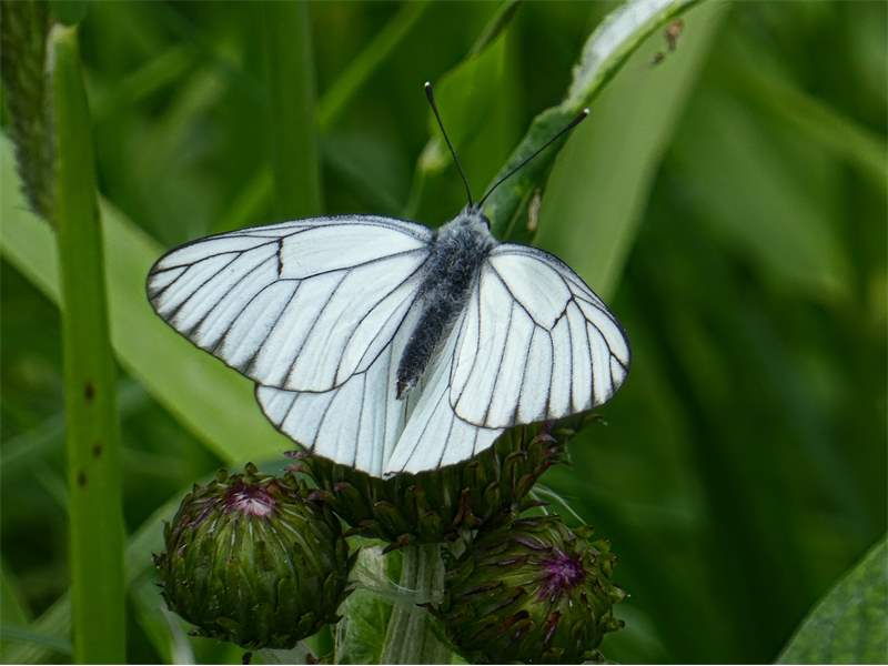 Baumweißling (Aporia crataegi (Linnaeus, 1758)), im Plane-Quellgebiet, Naturpark Hoher Fläming (Brandenburg), Anfang Juni 2019 (© Bernd Garbe)( Bild vergrößern)