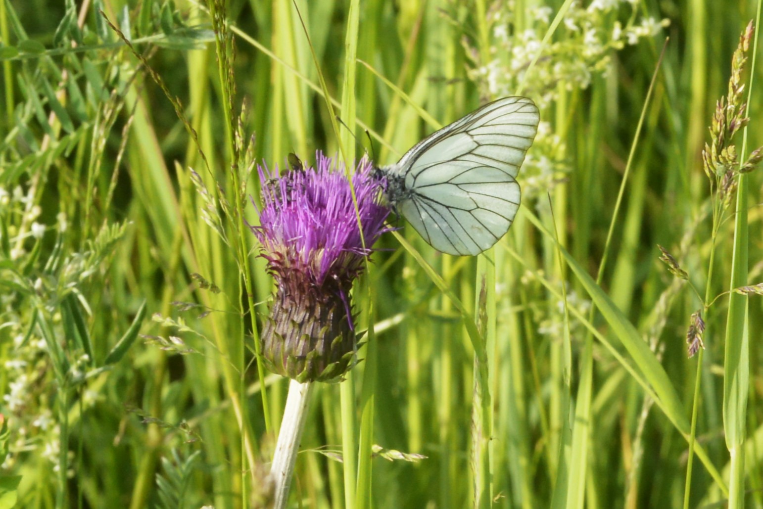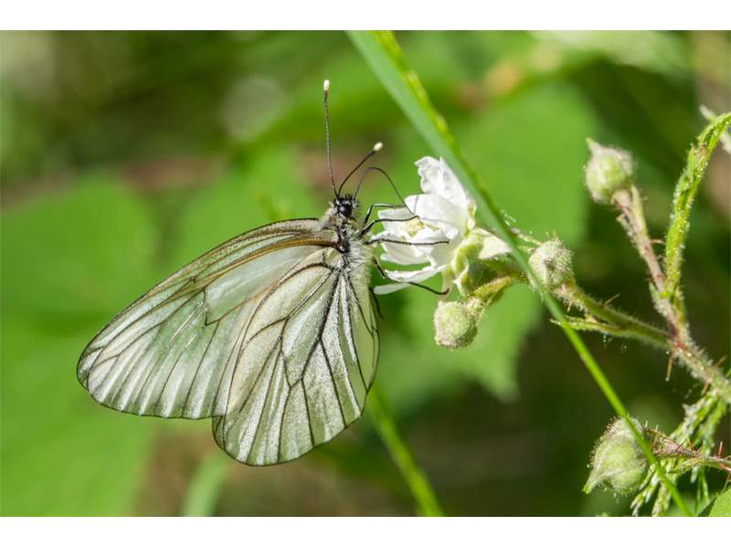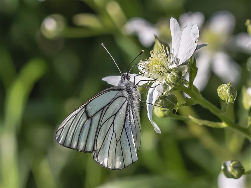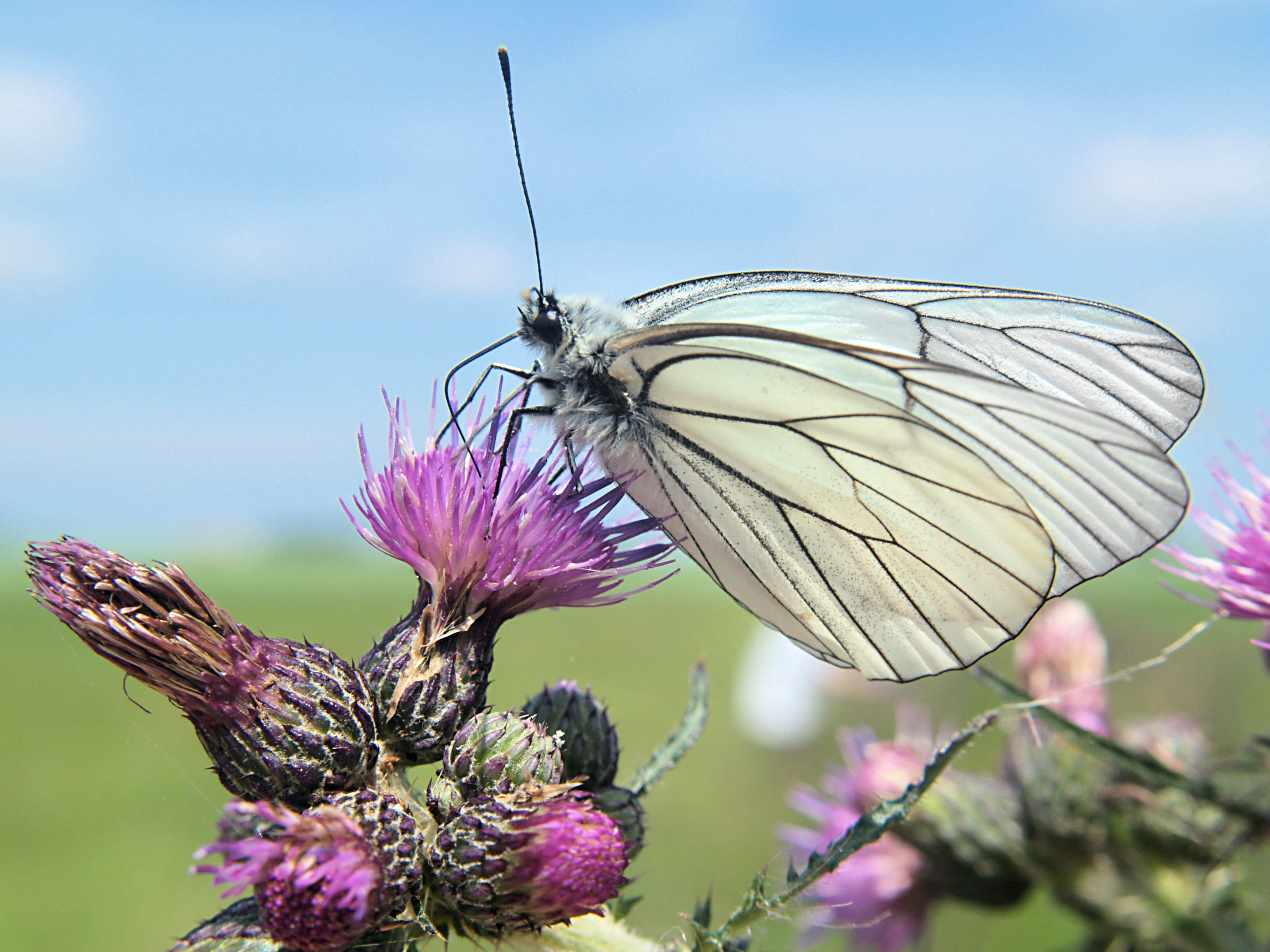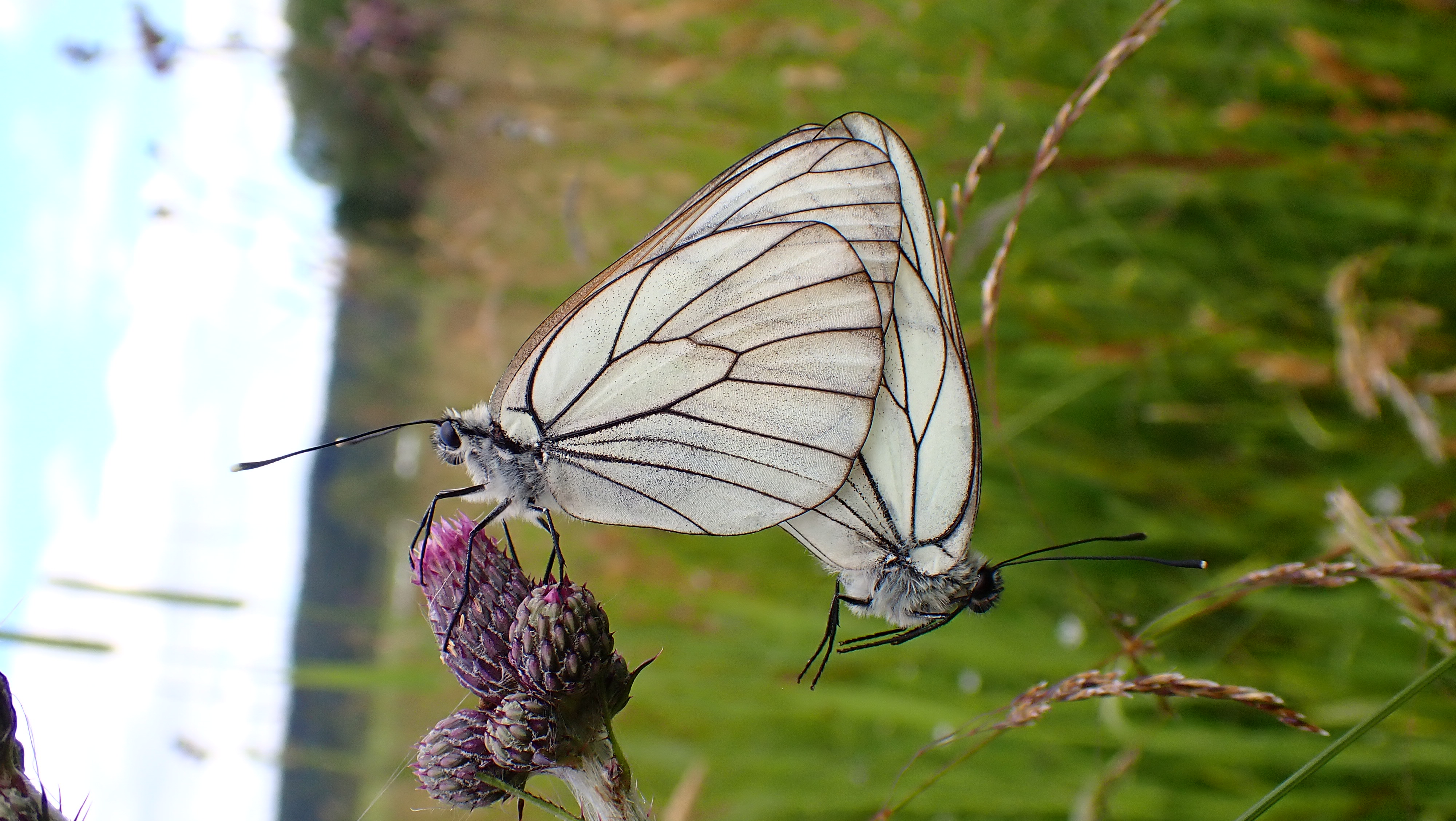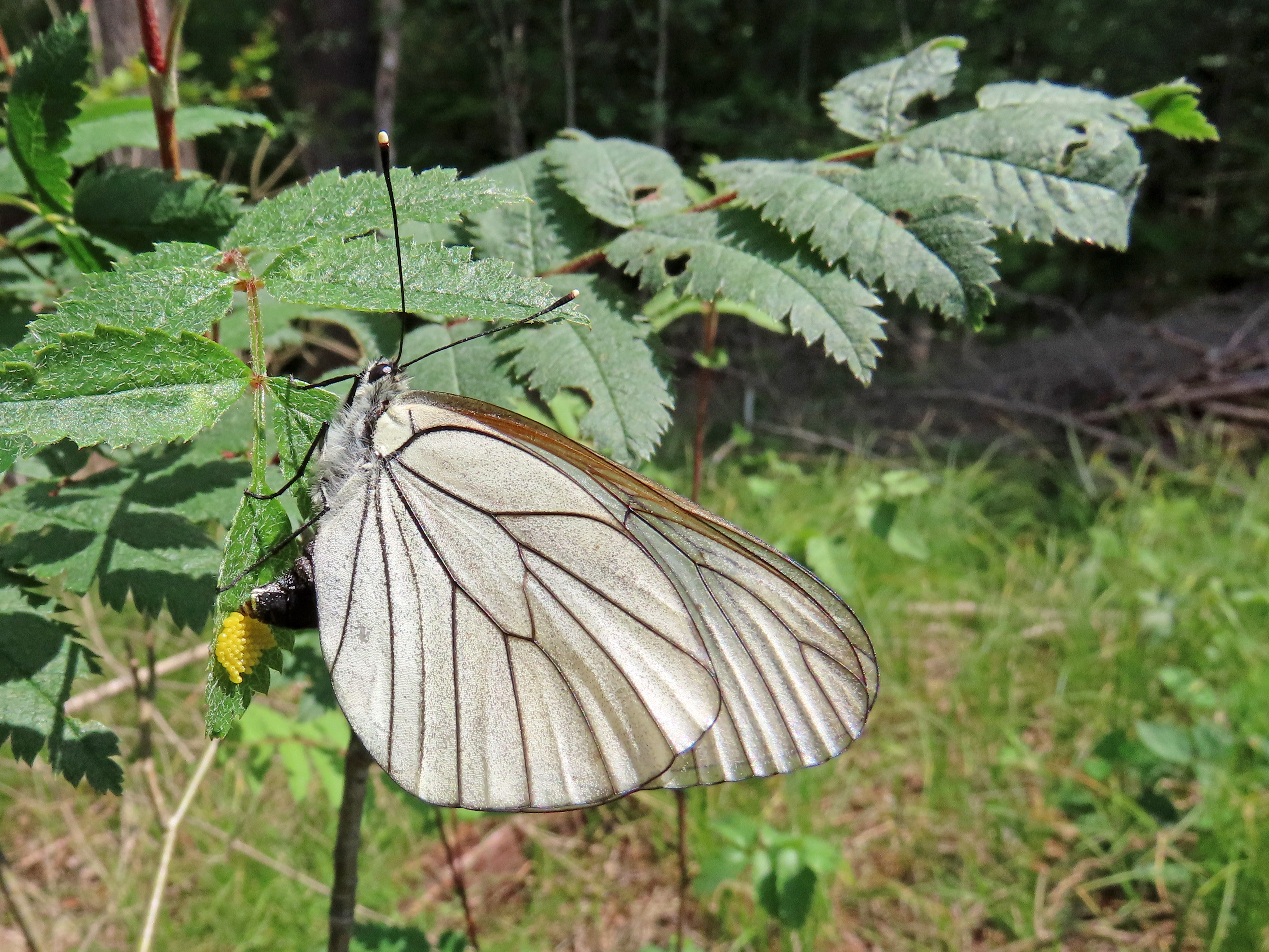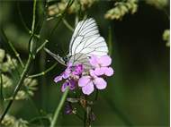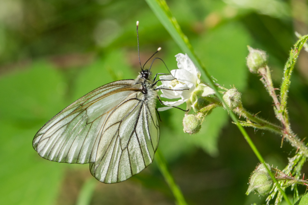 Baumweißling (Aporia crataegi (Linnaeus, 1758)), im Plane-Quellgebiet, Naturpark Hoher Fläming (Brandenburg), Anfang Juni 2019 (© Bernd Garbe)( Bild vergrößern)