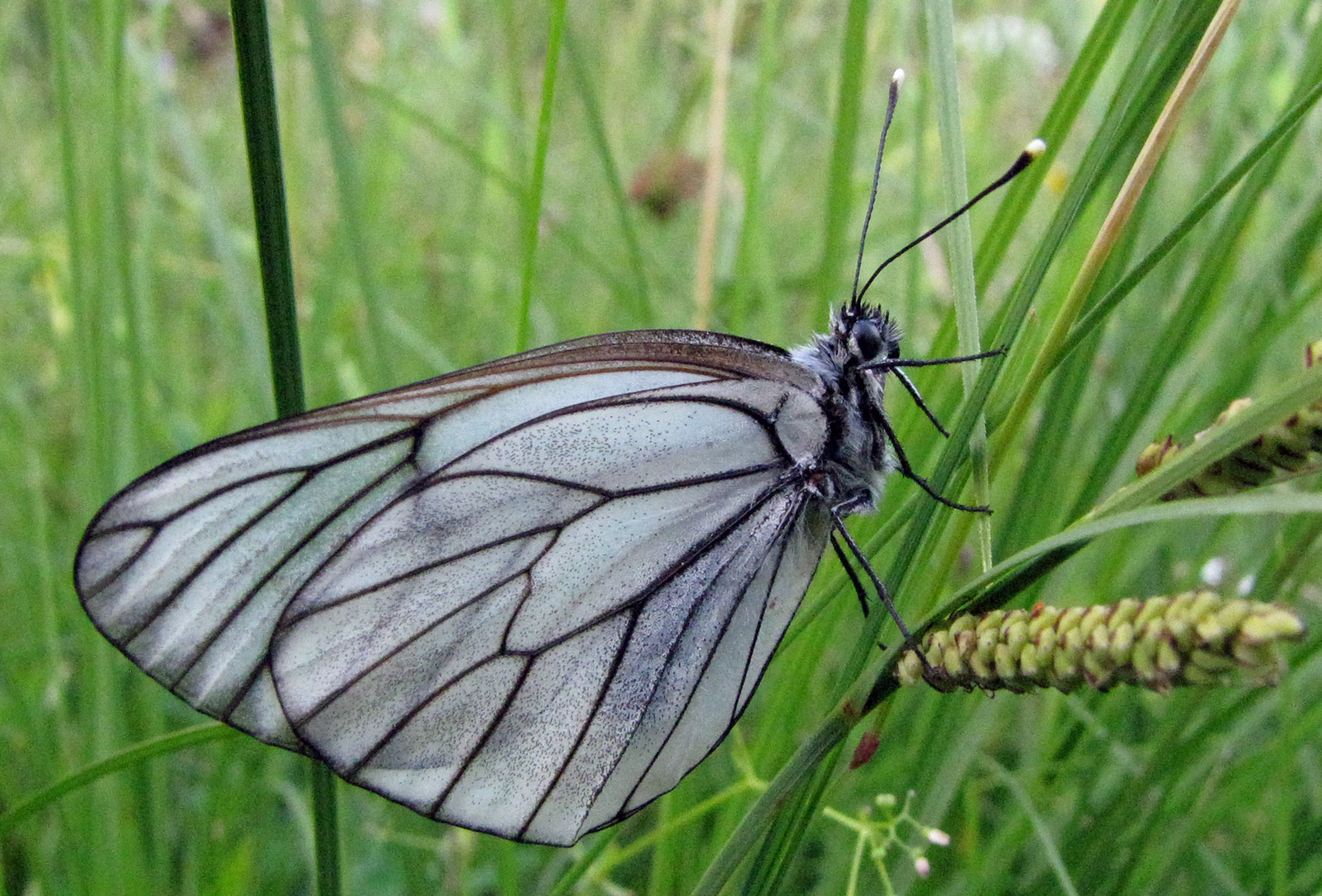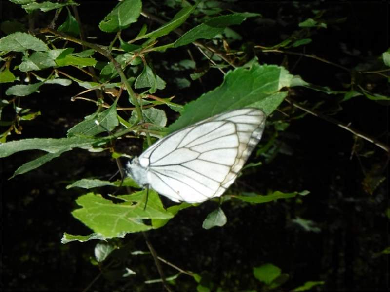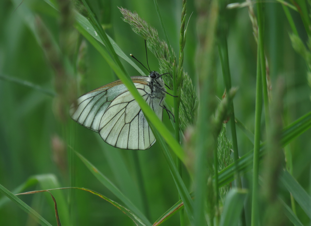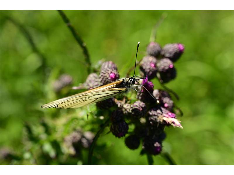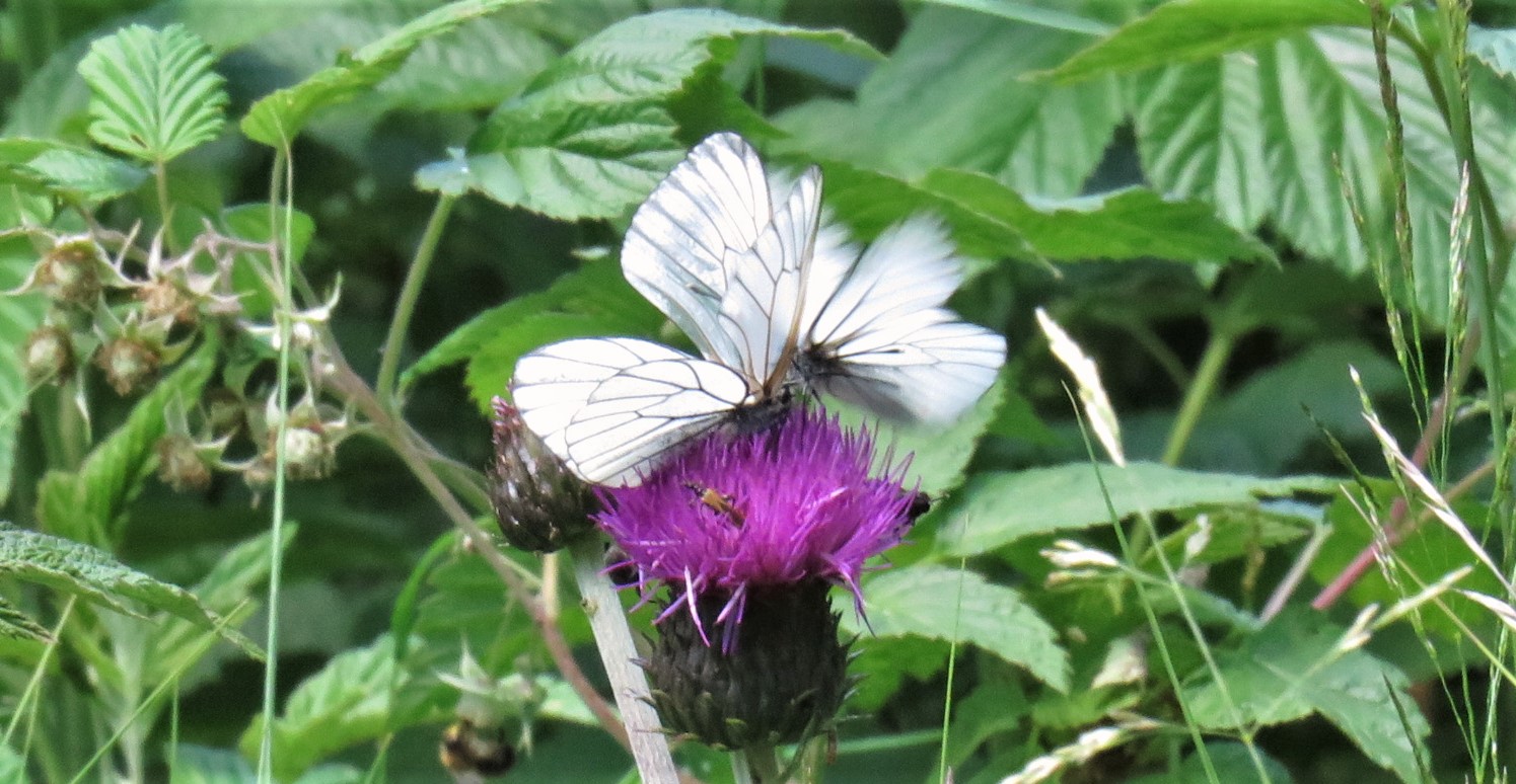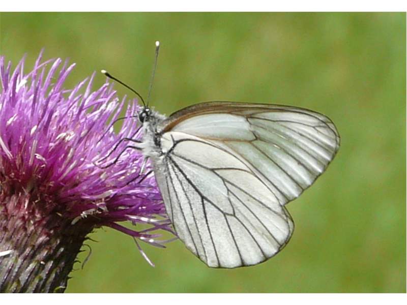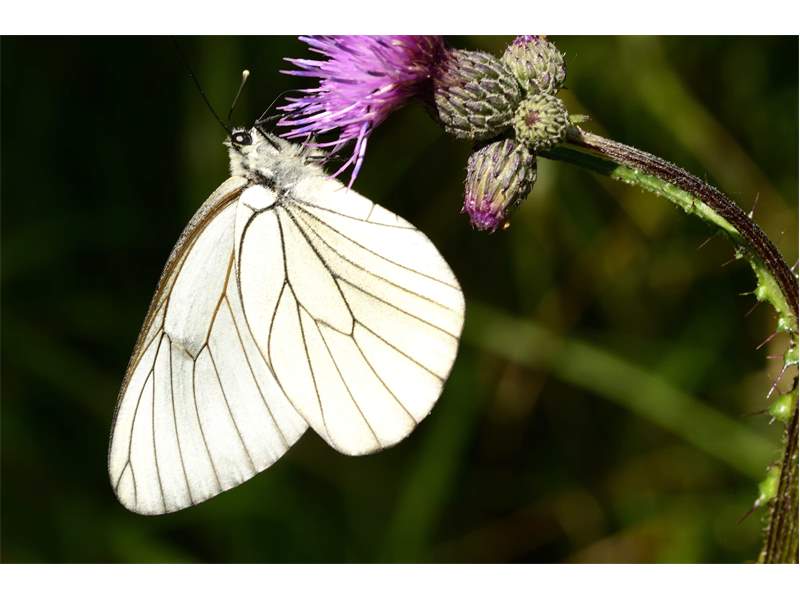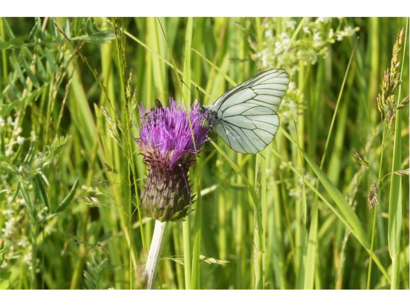 Baumweißling (Aporia crataegi (Linnaeus, 1758)), im Plane-Quellgebiet, Naturpark Hoher Fläming (Brandenburg), Anfang Juni 2019 (© Bernd Garbe)( Bild vergrößern)