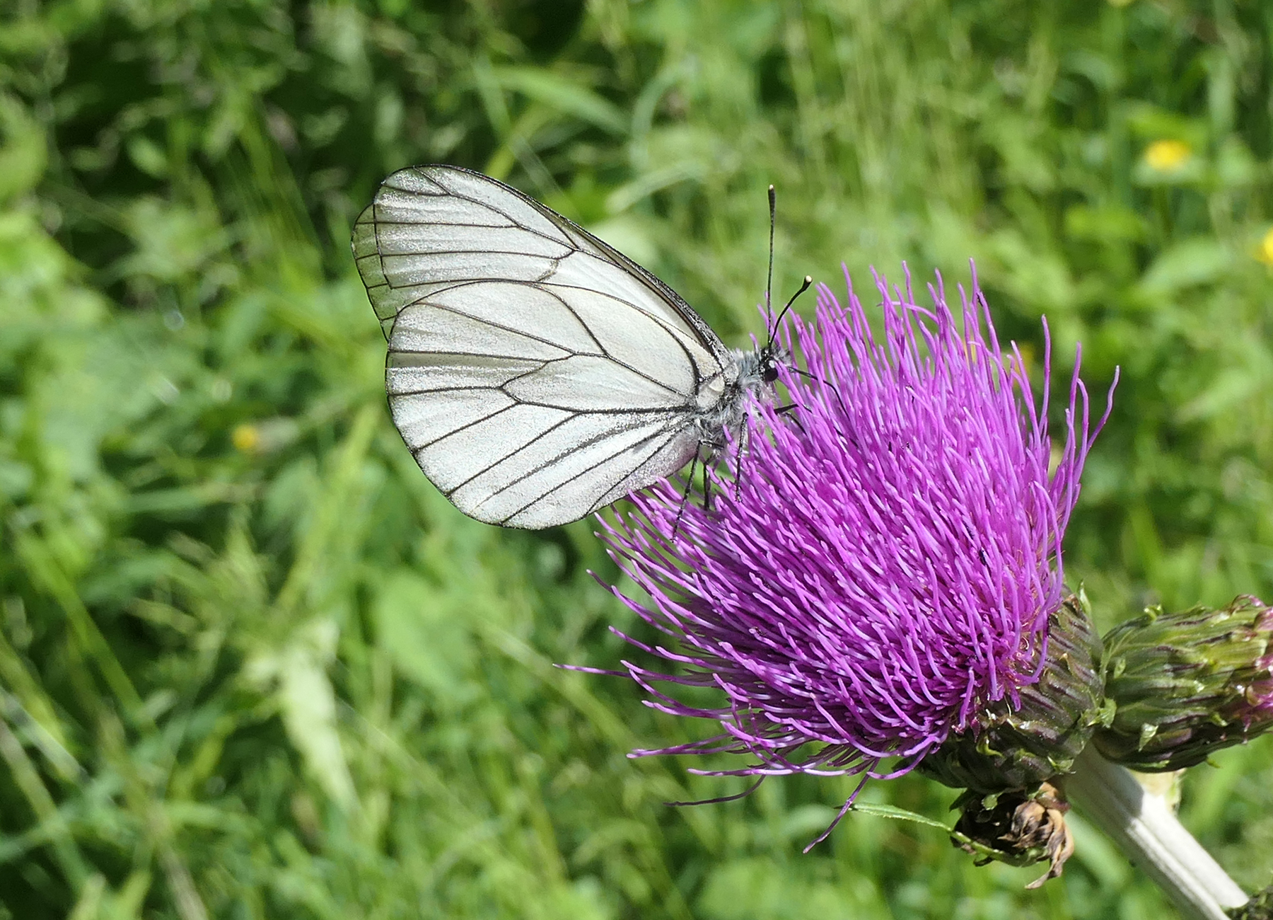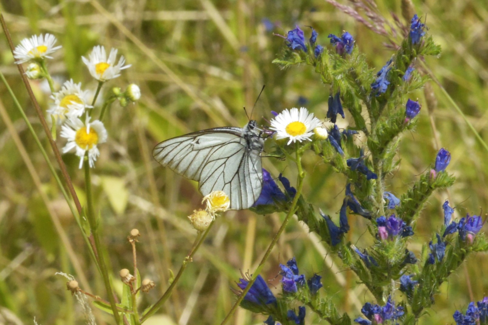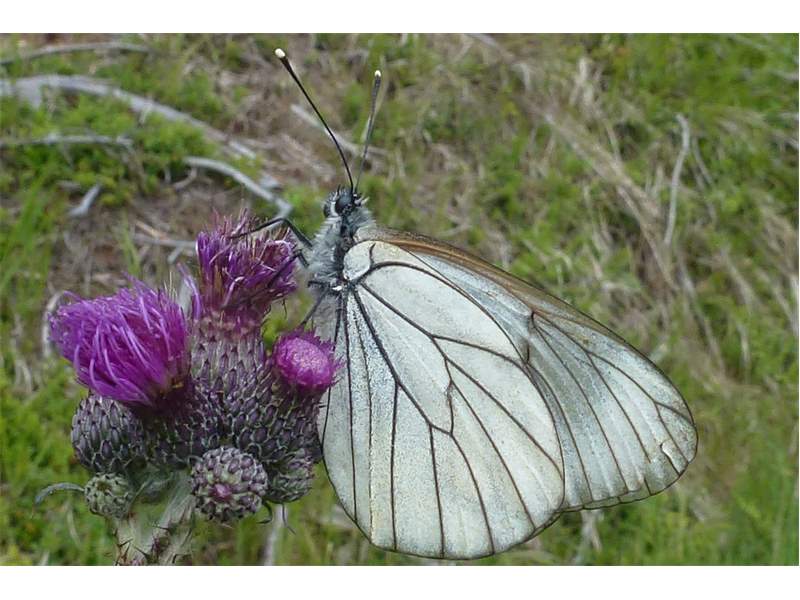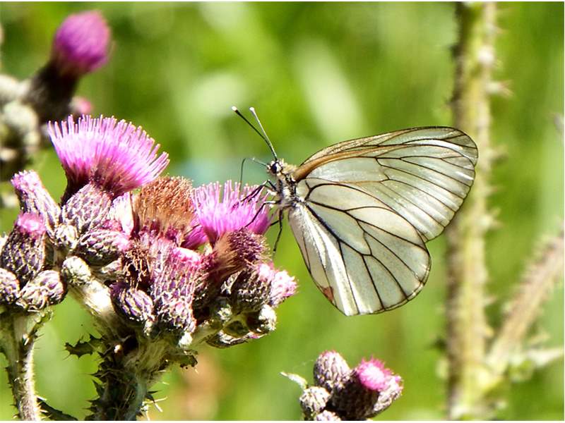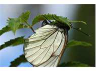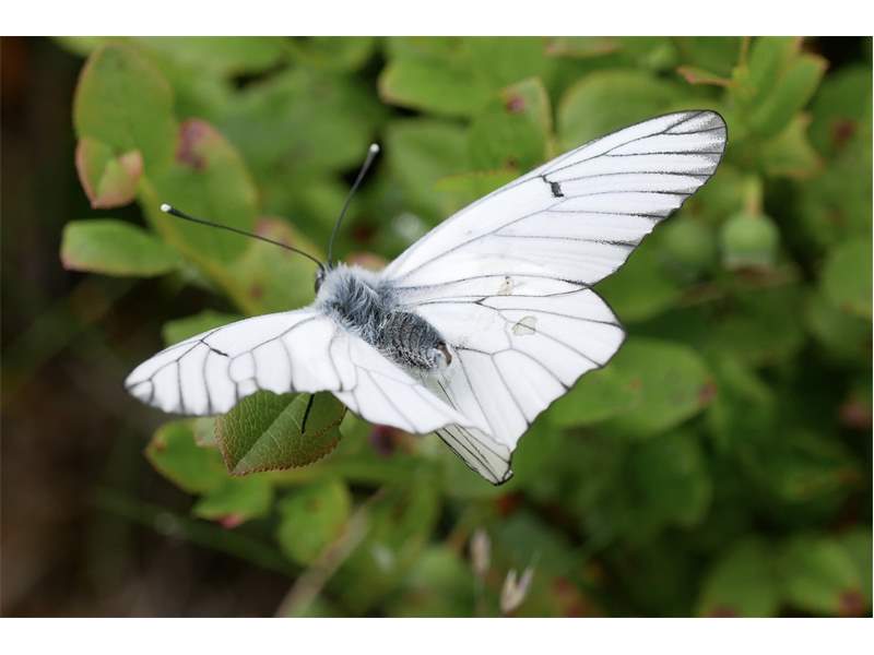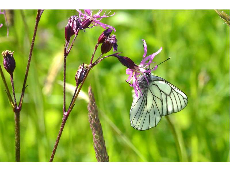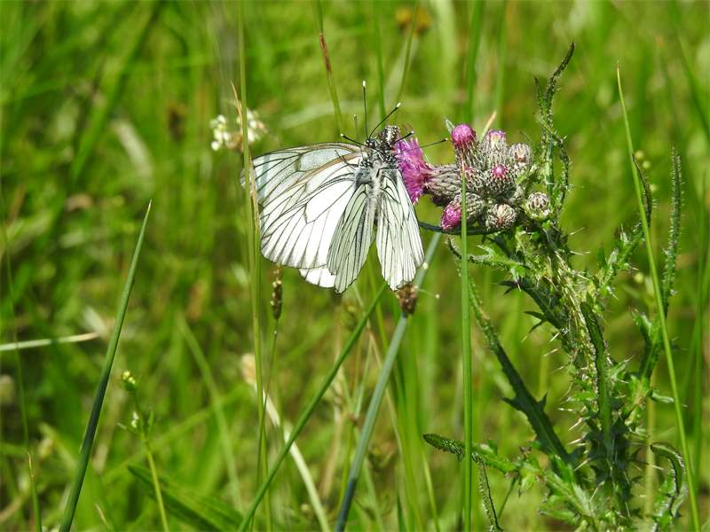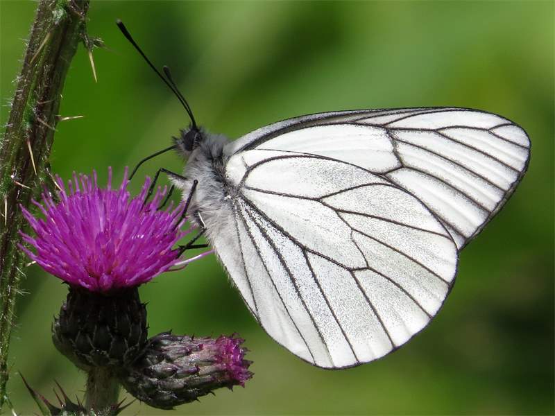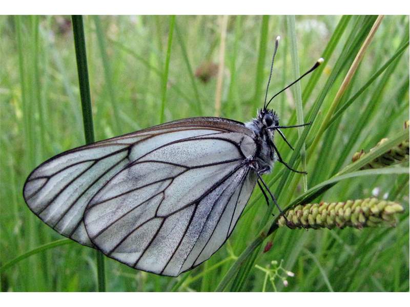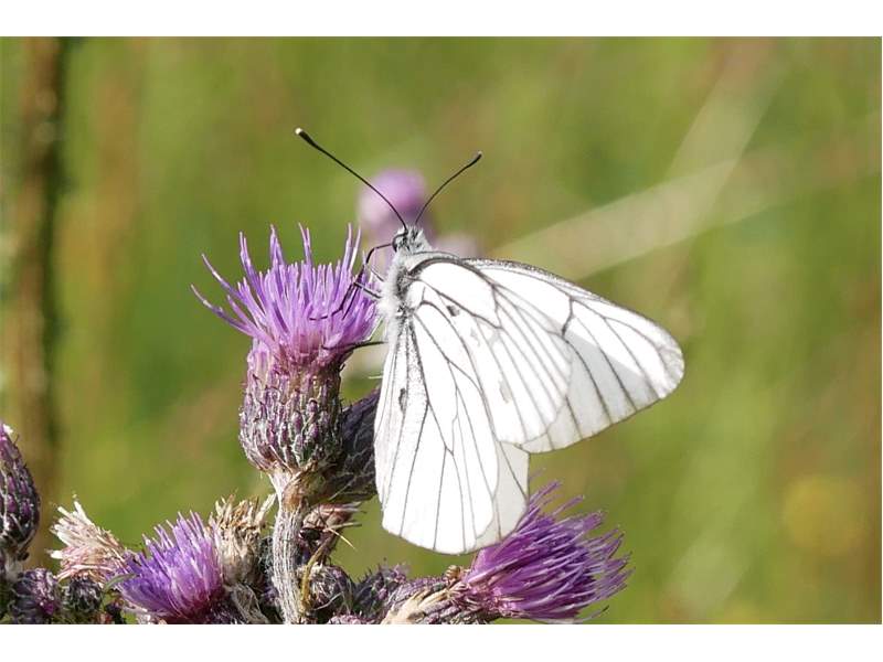 Baumweißling (Aporia crataegi (Linnaeus, 1758)), im Plane-Quellgebiet, Naturpark Hoher Fläming (Brandenburg), Anfang Juni 2019 (© Bernd Garbe)( Bild vergrößern)
