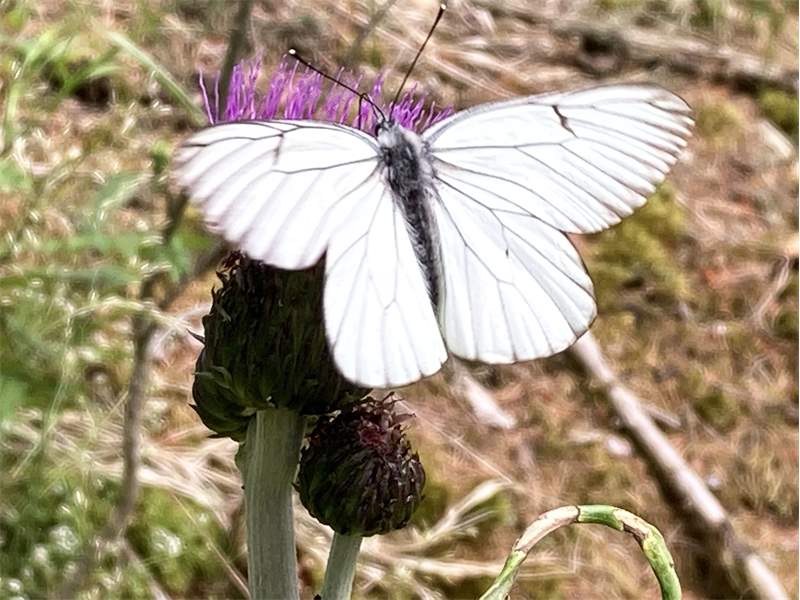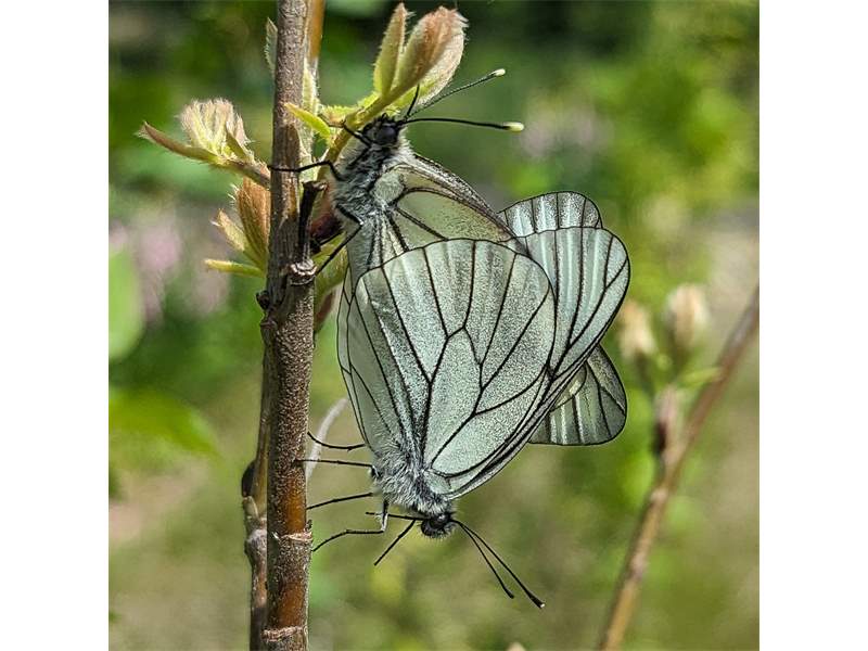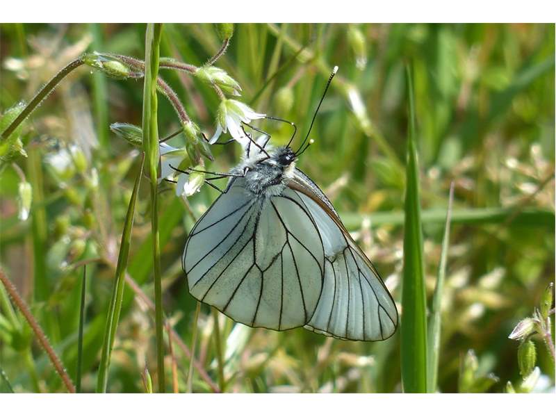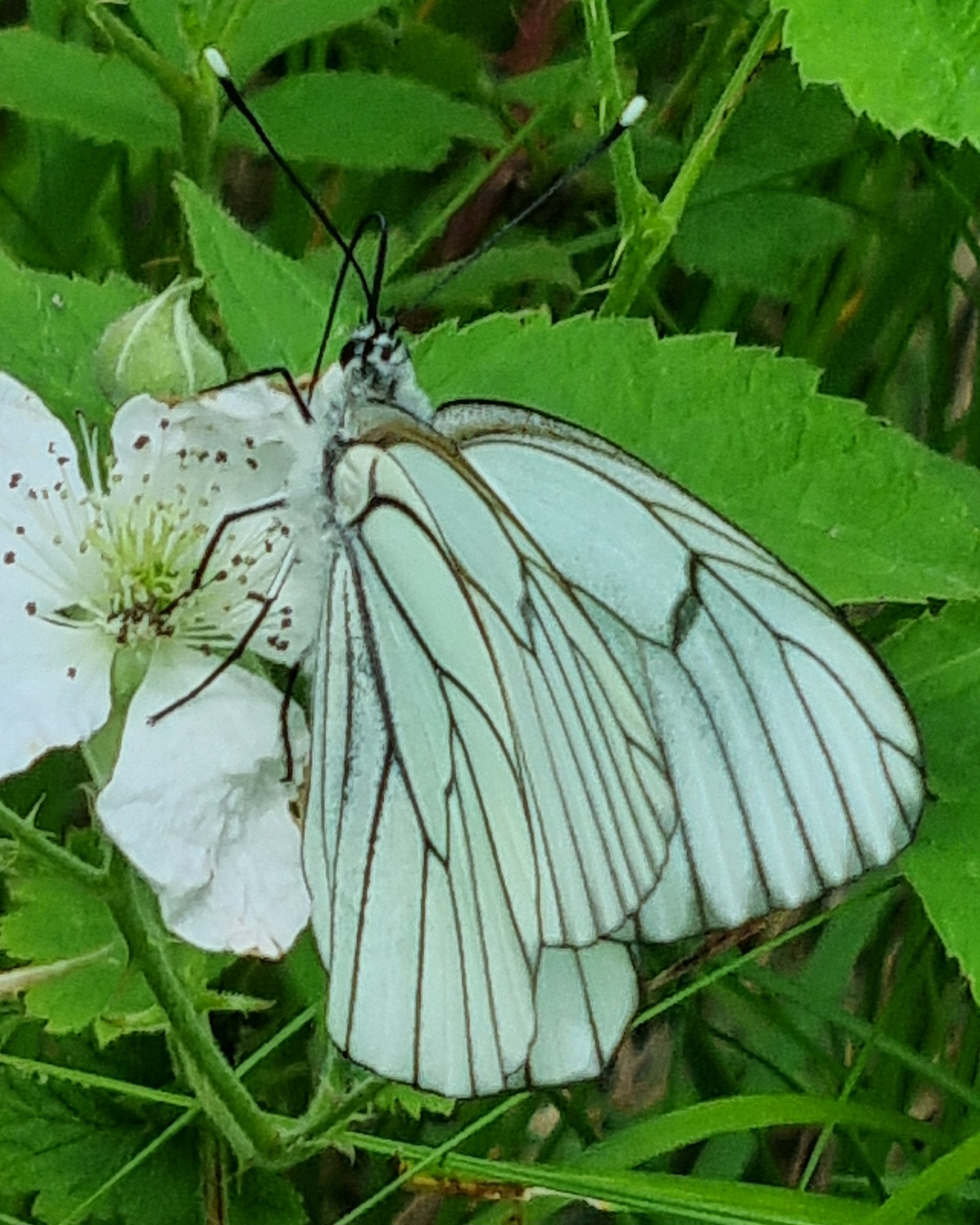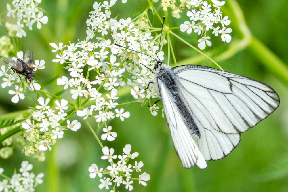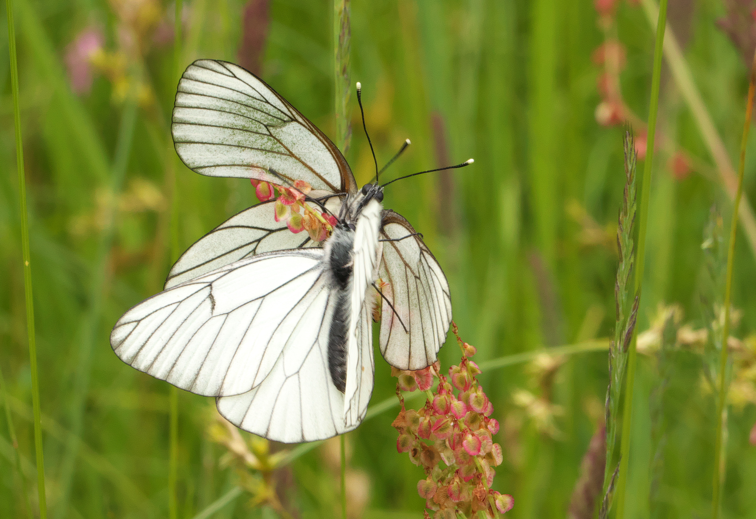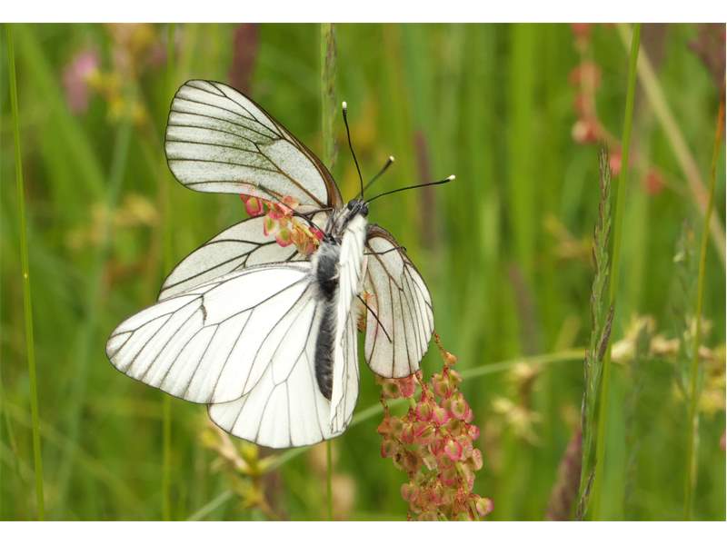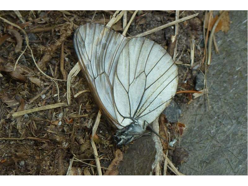 Baumweißling (Aporia crataegi (Linnaeus, 1758)), im Plane-Quellgebiet, Naturpark Hoher Fläming (Brandenburg), Anfang Juni 2019 (© Bernd Garbe)( Bild vergrößern)