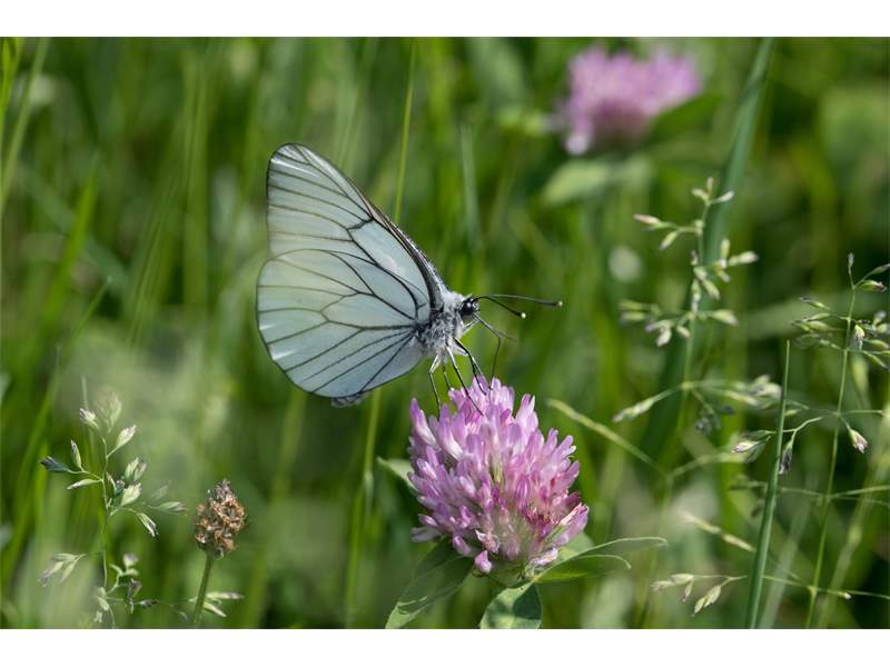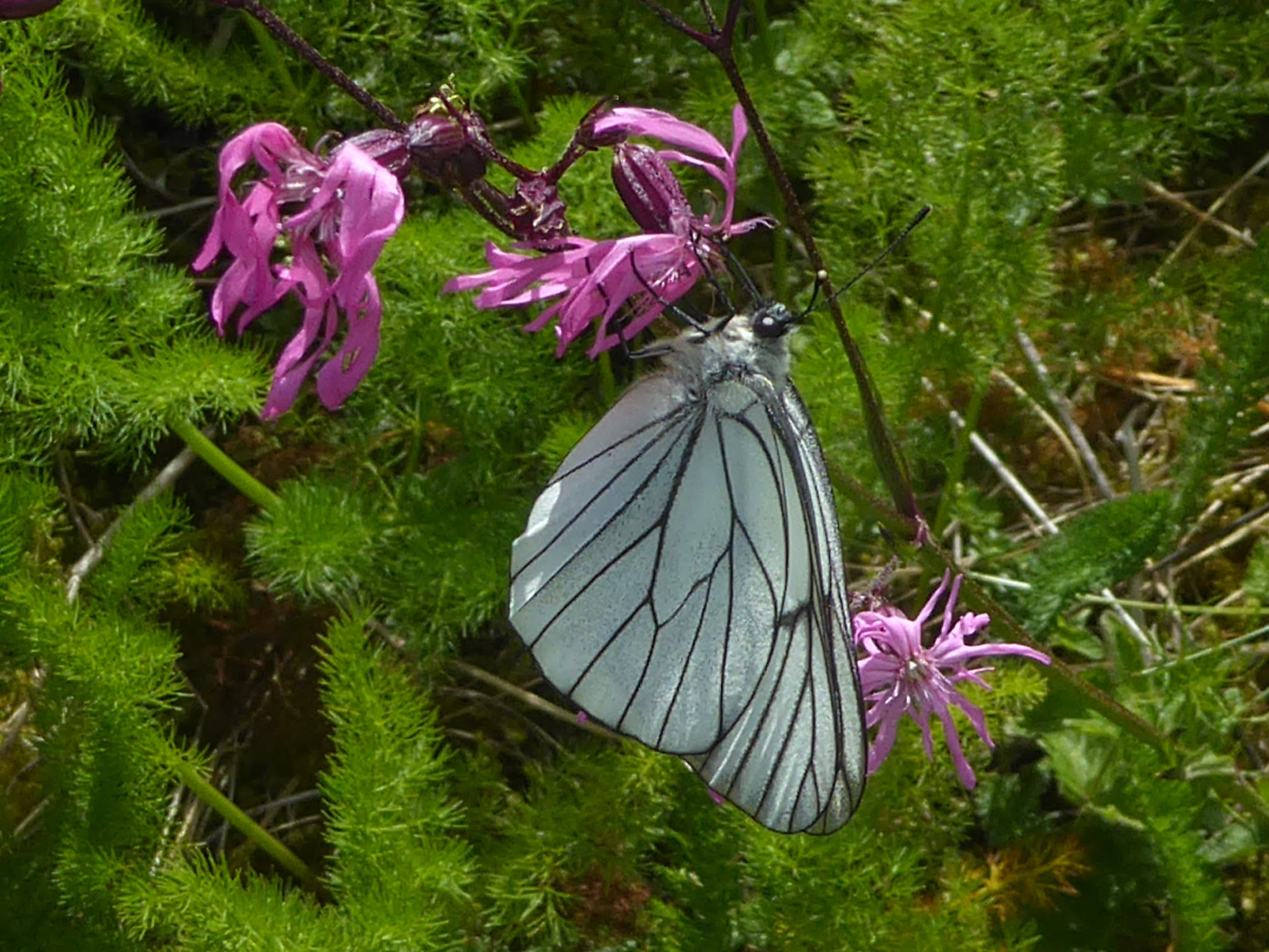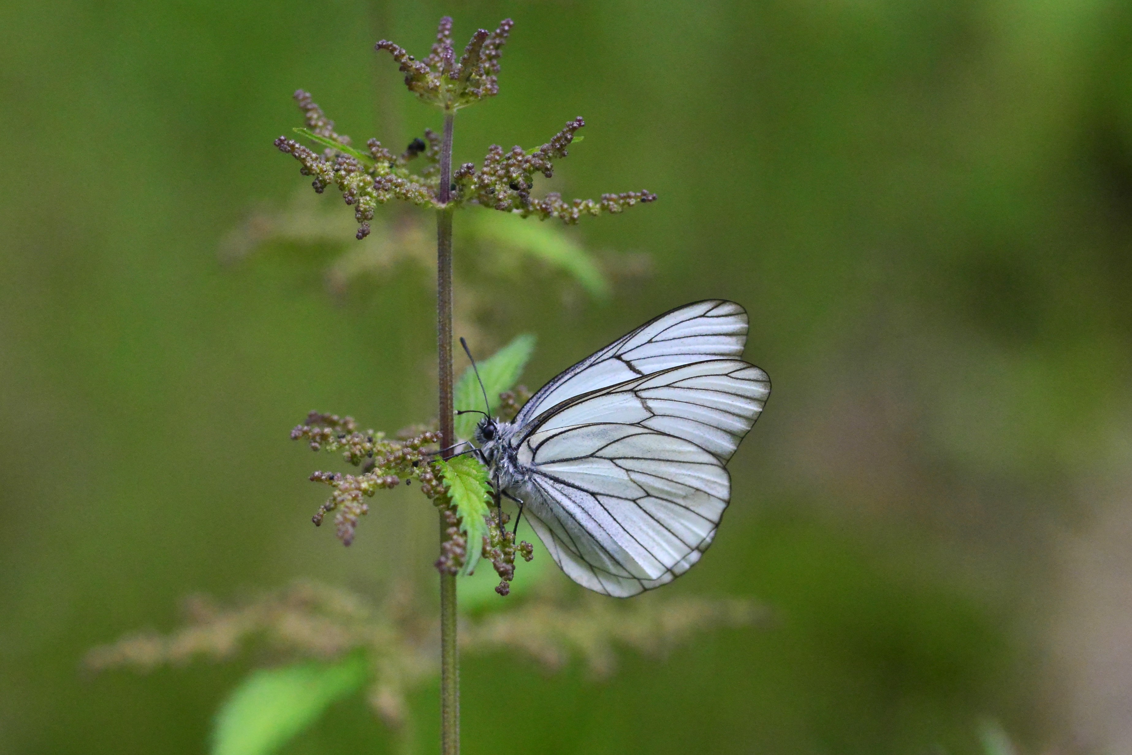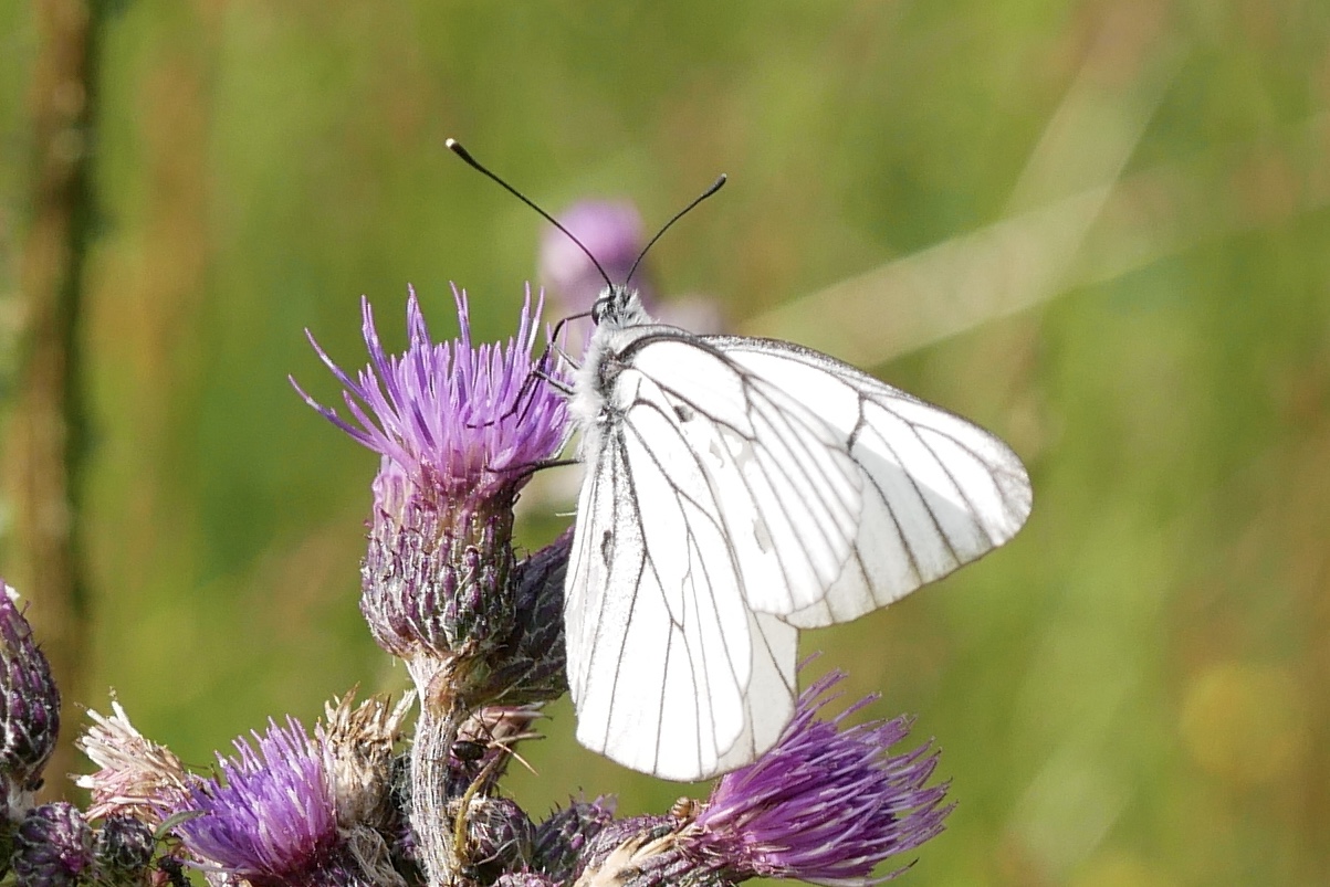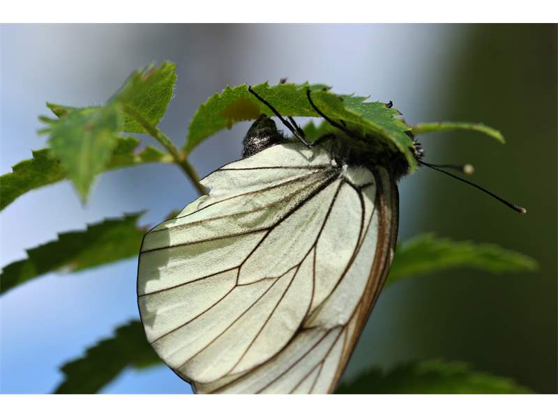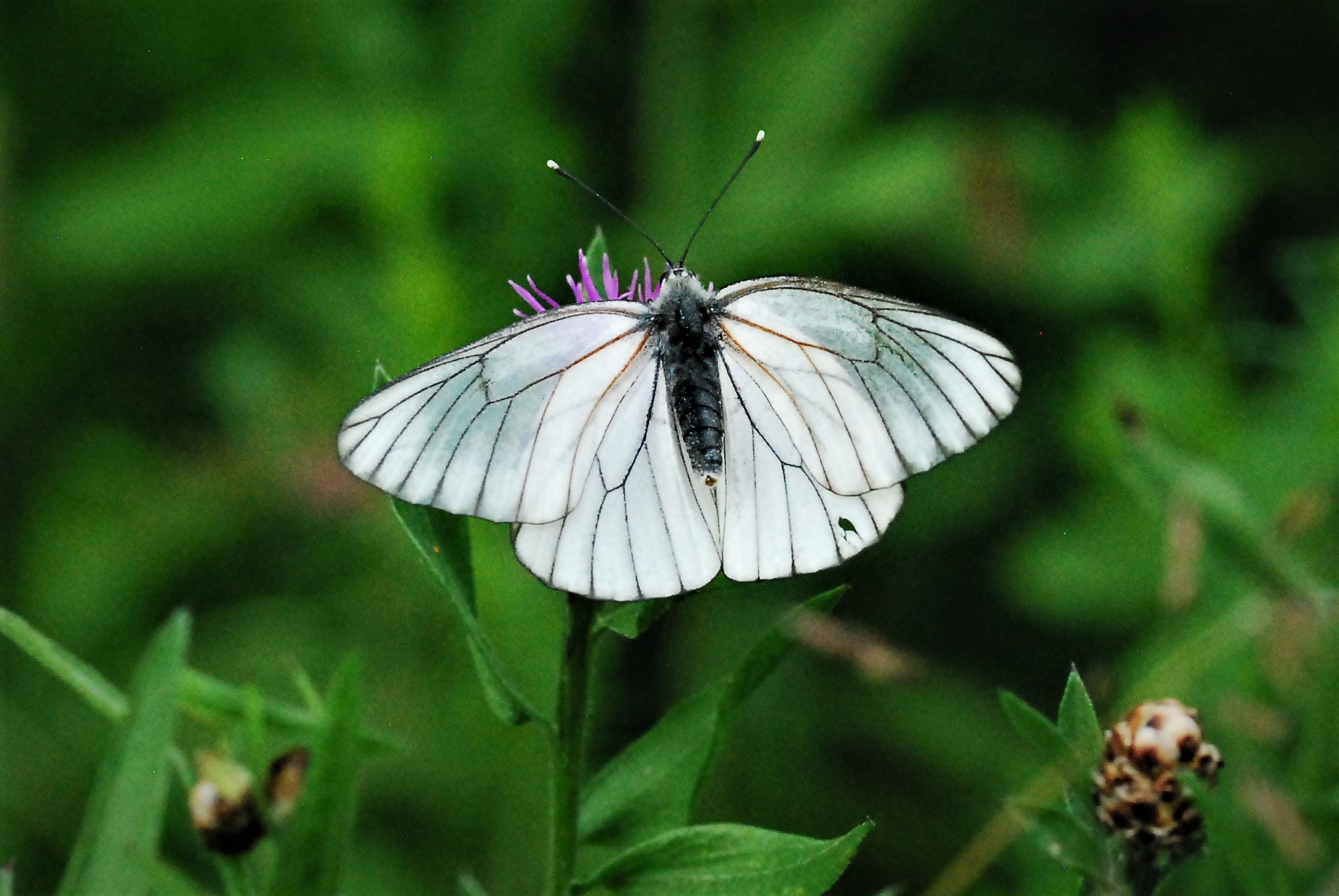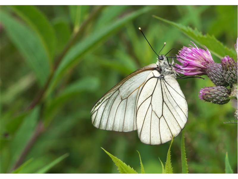 Baumweißling (Aporia crataegi (Linnaeus, 1758)), im Plane-Quellgebiet, Naturpark Hoher Fläming (Brandenburg), Anfang Juni 2019 (© Bernd Garbe)( Bild vergrößern)