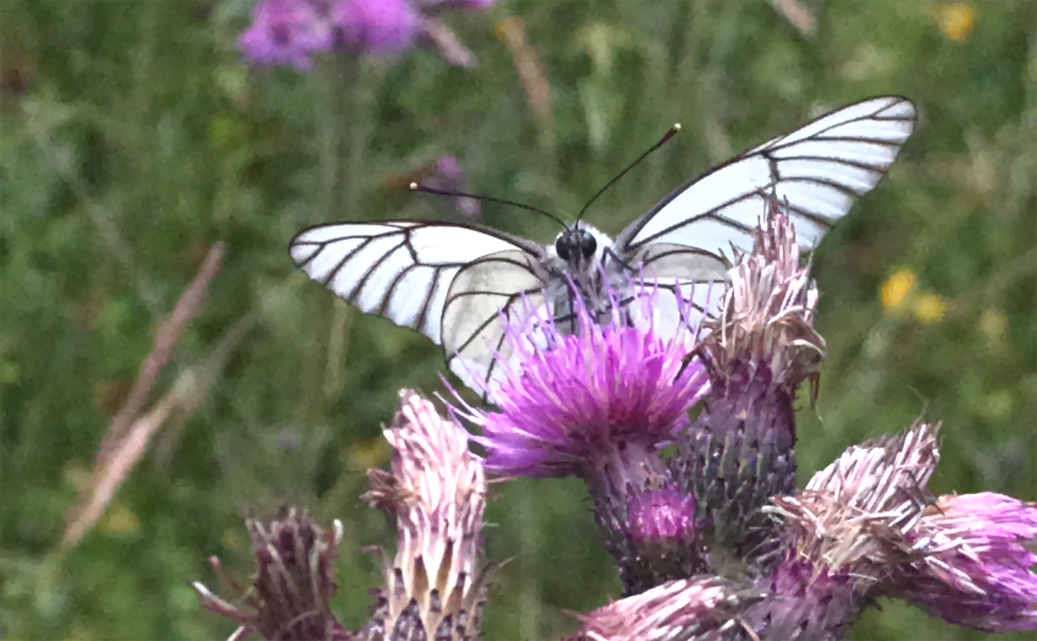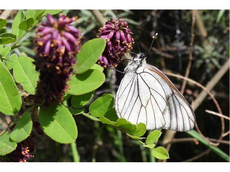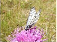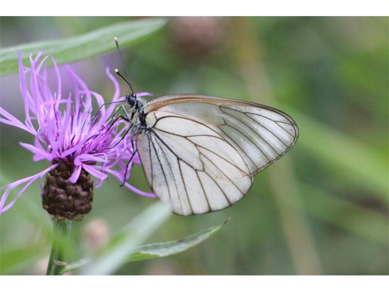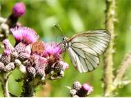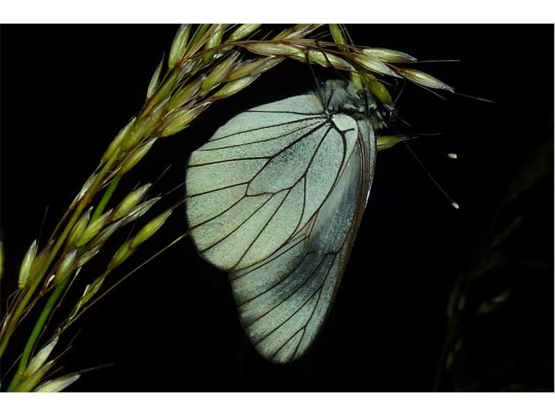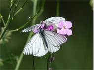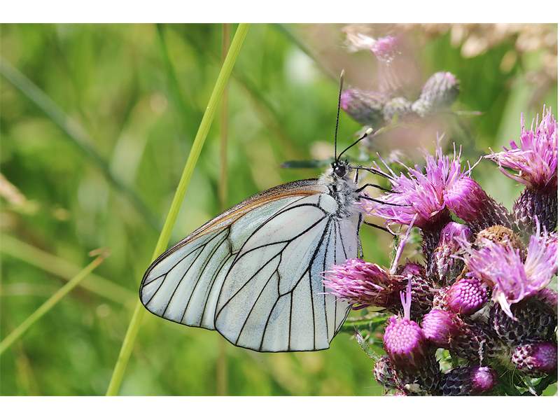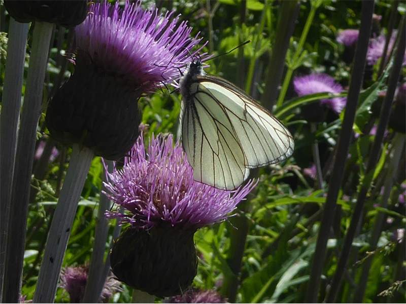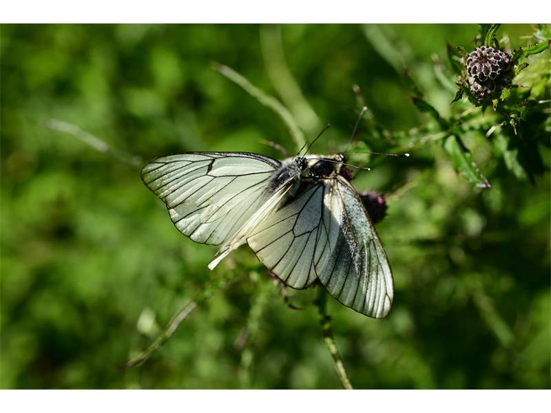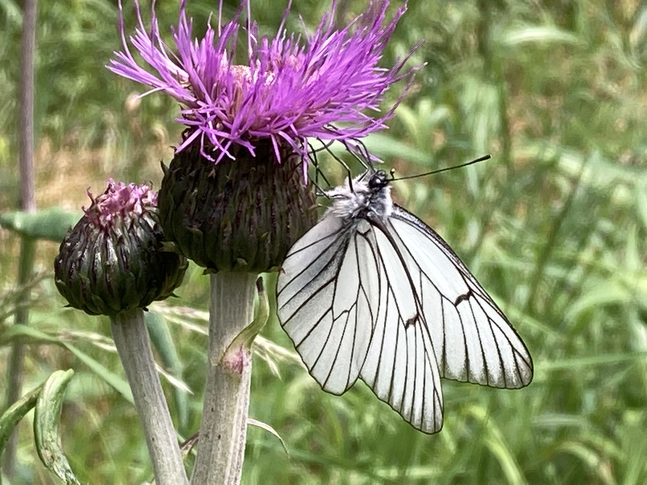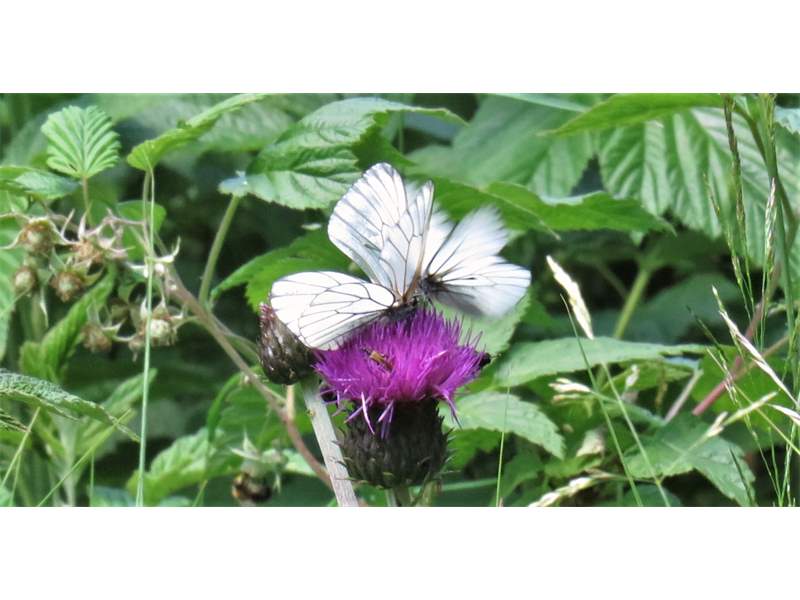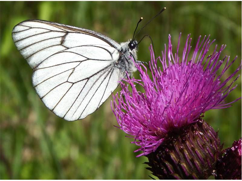 Baumweißling (Aporia crataegi (Linnaeus, 1758)), im Plane-Quellgebiet, Naturpark Hoher Fläming (Brandenburg), Anfang Juni 2019 (© Bernd Garbe)( Bild vergrößern)