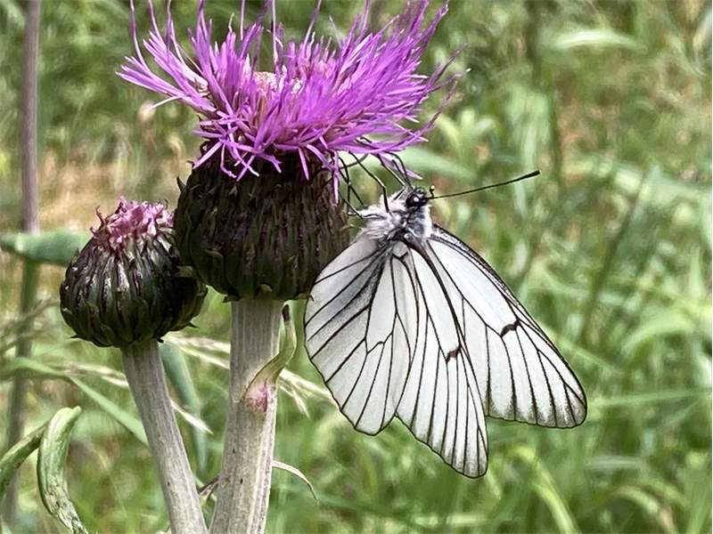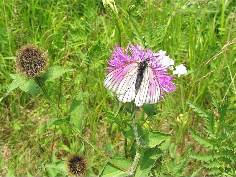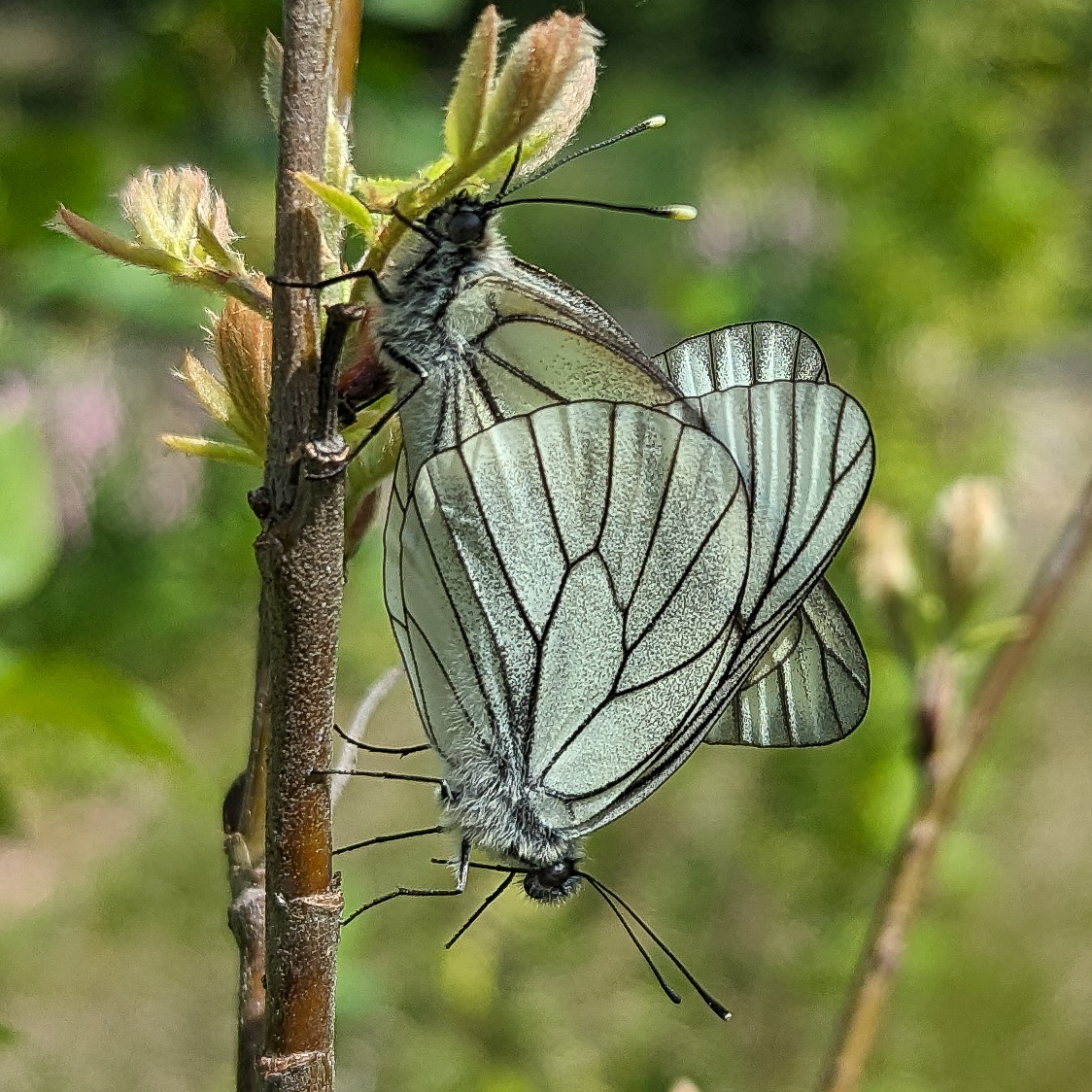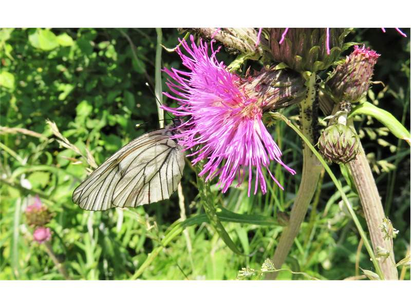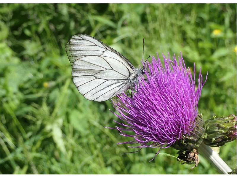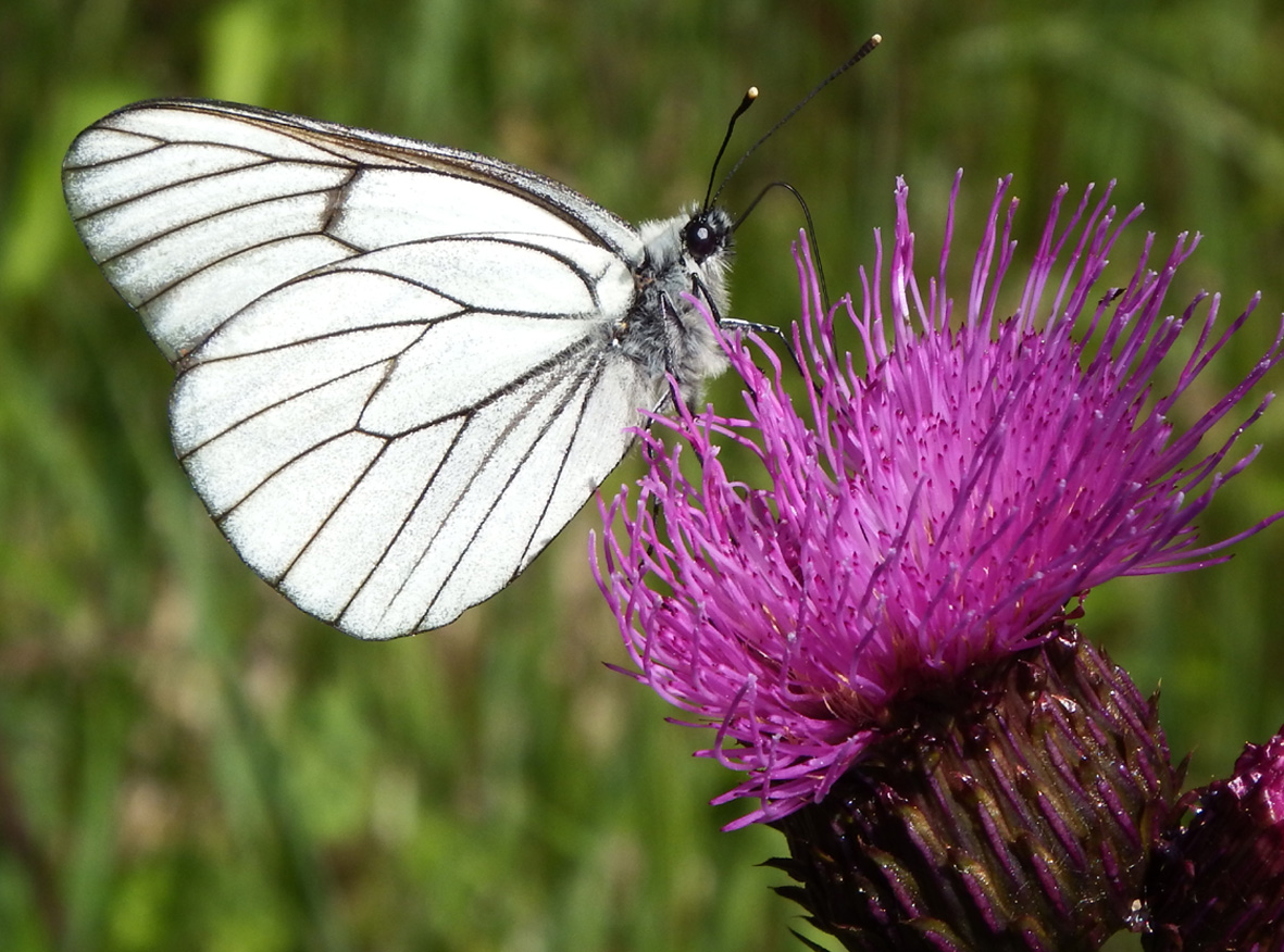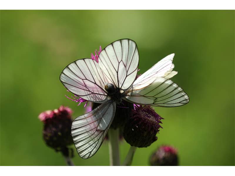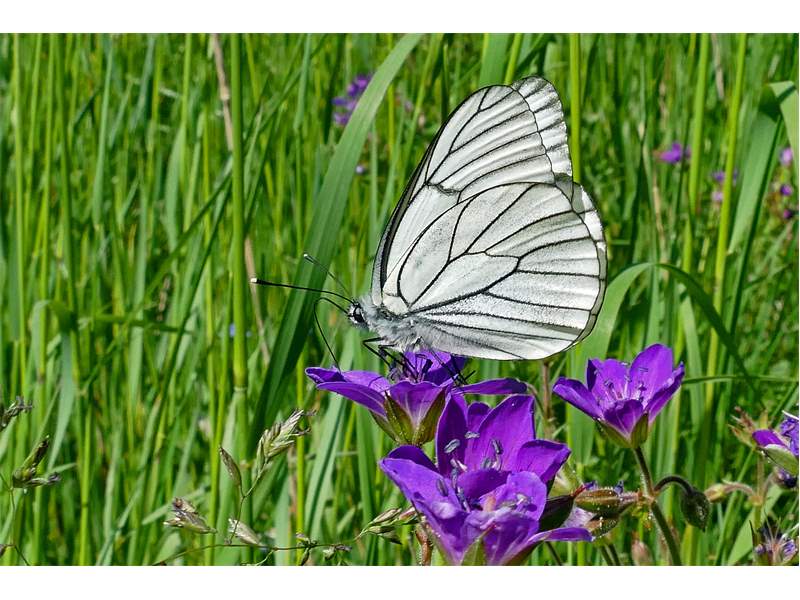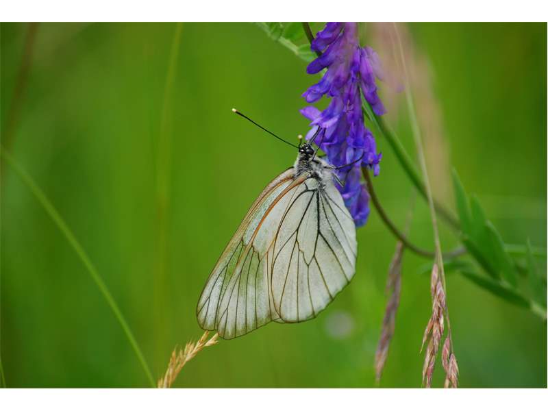 Baumweißling (Aporia crataegi (Linnaeus, 1758)), im Plane-Quellgebiet, Naturpark Hoher Fläming (Brandenburg), Anfang Juni 2019 (© Bernd Garbe)( Bild vergrößern)