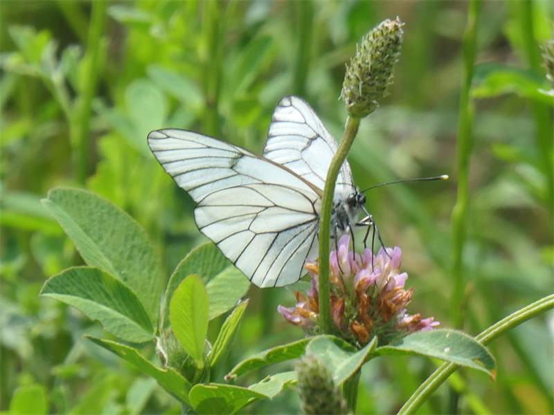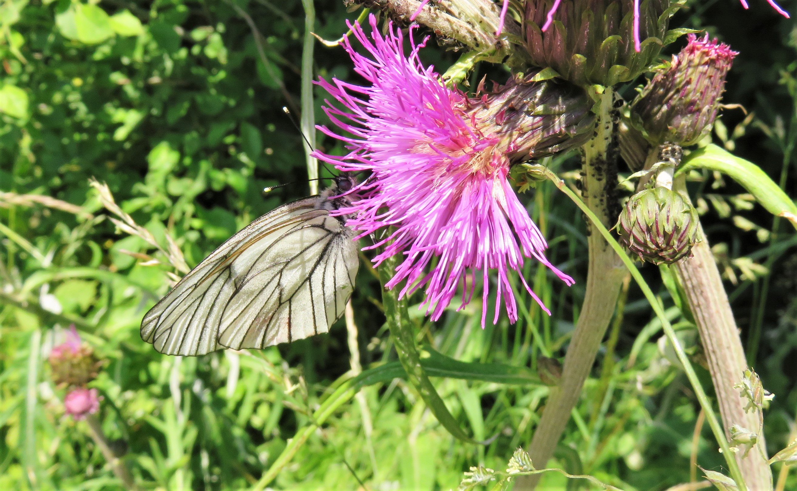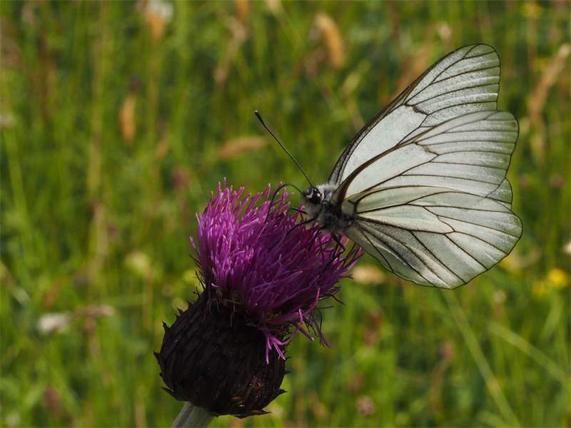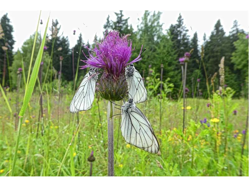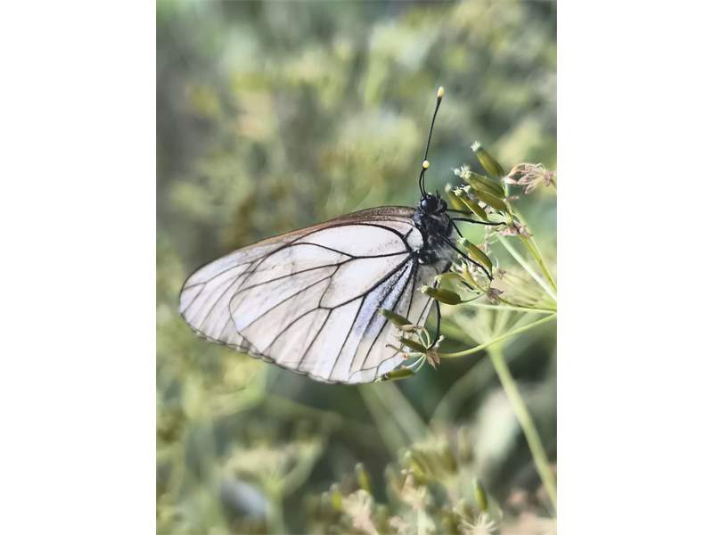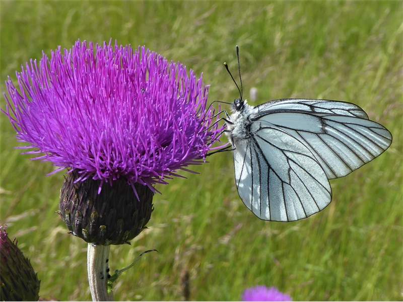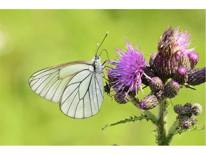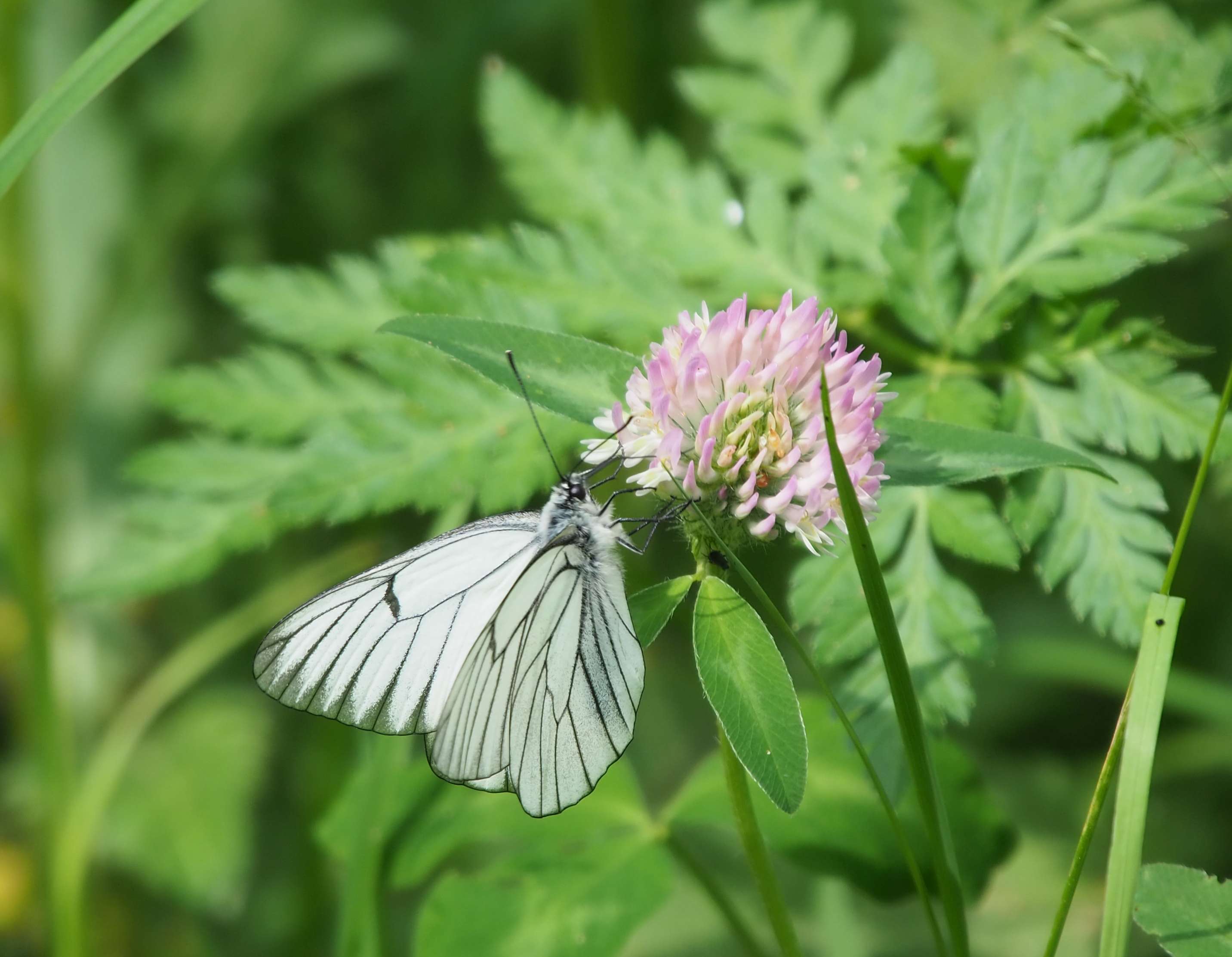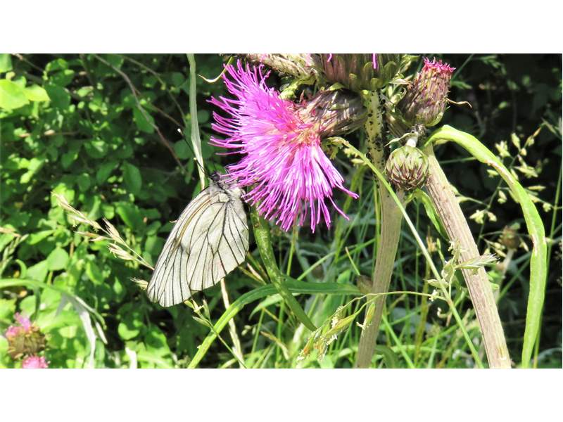Baumweißling (Aporia crataegi (Linnaeus, 1758)), im Plane-Quellgebiet, Naturpark Hoher Fläming (Brandenburg), Anfang Juni 2019 (© Bernd Garbe)( Bild vergrößern)
