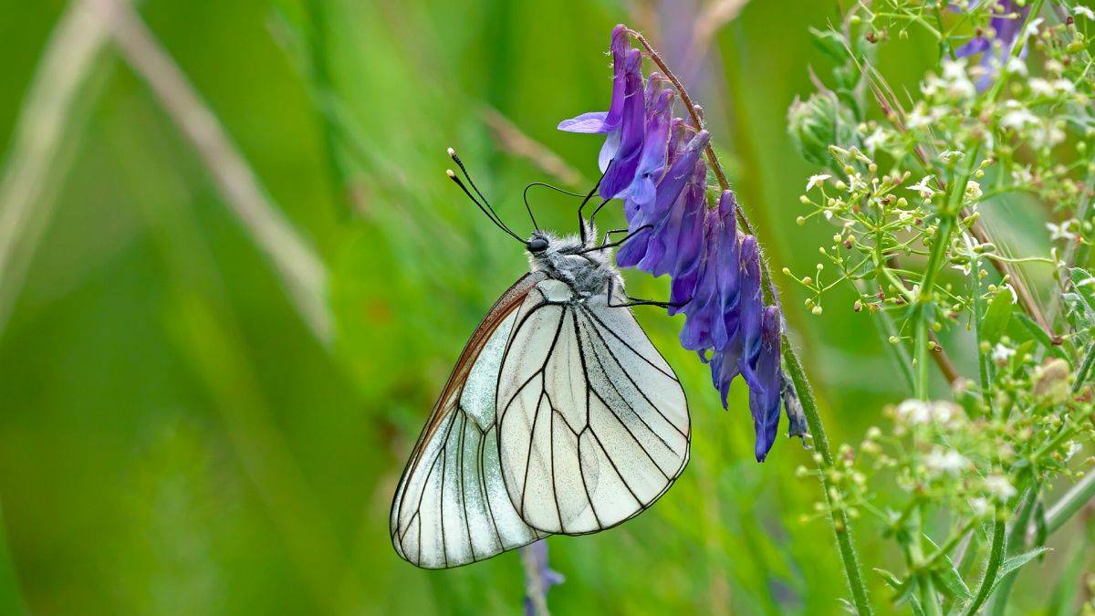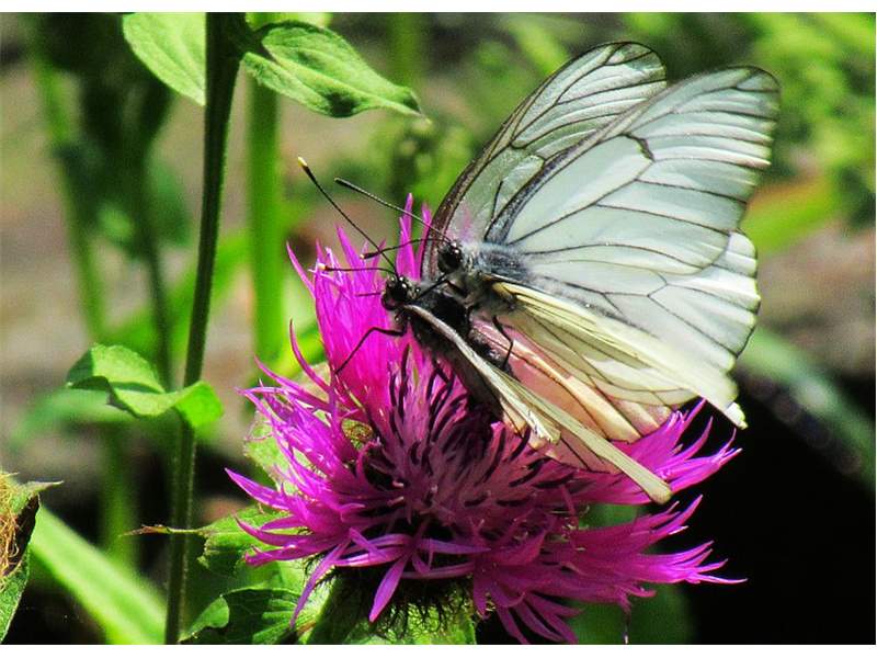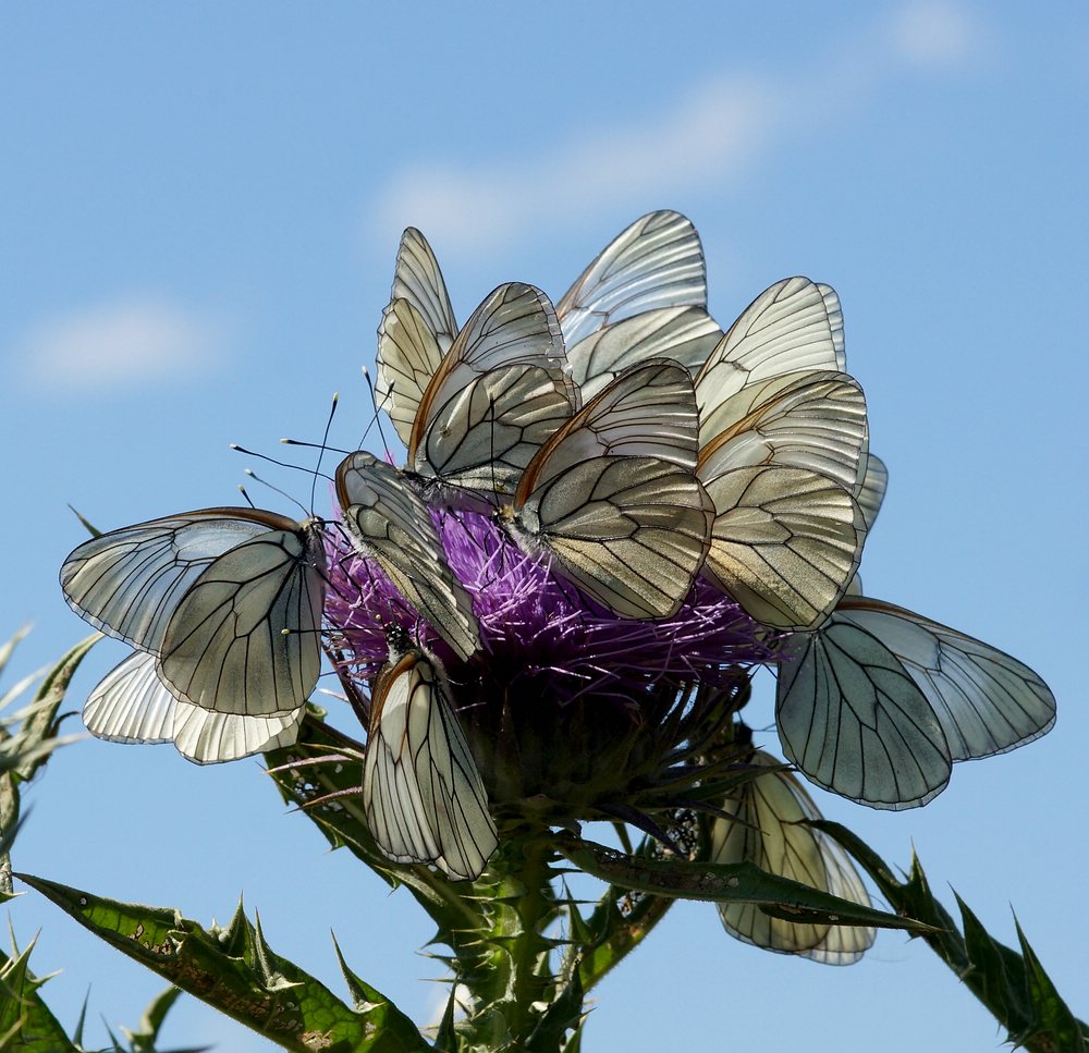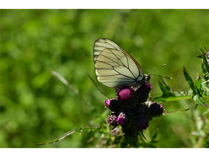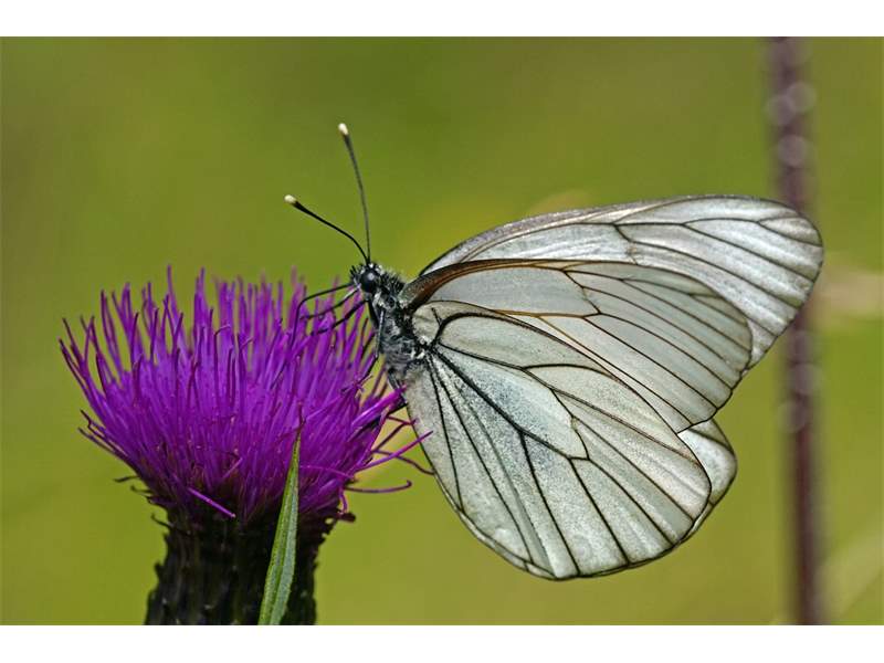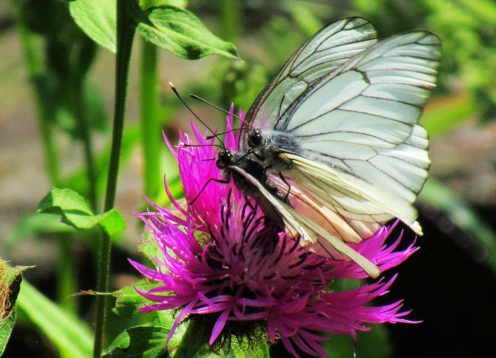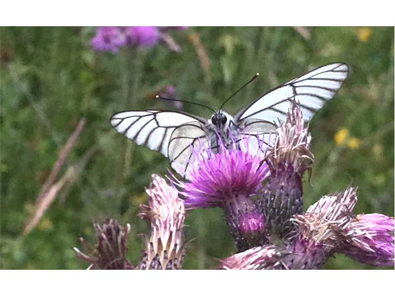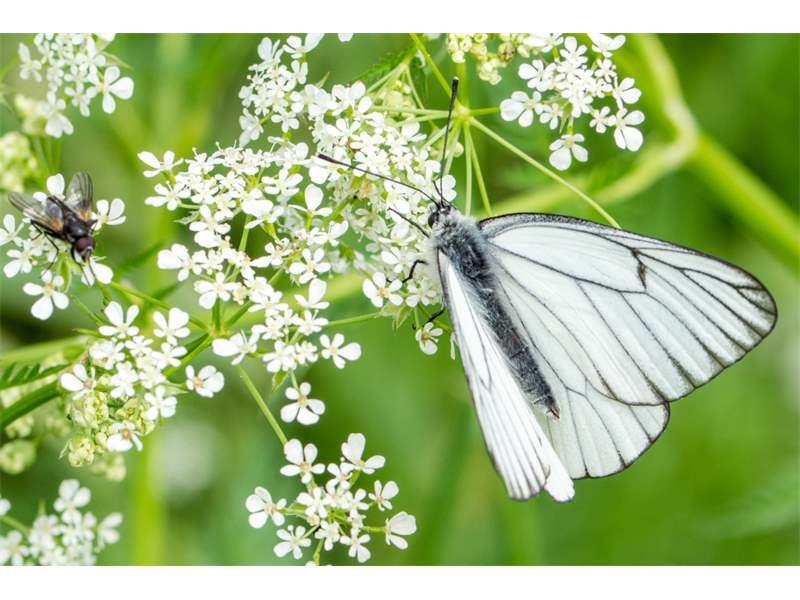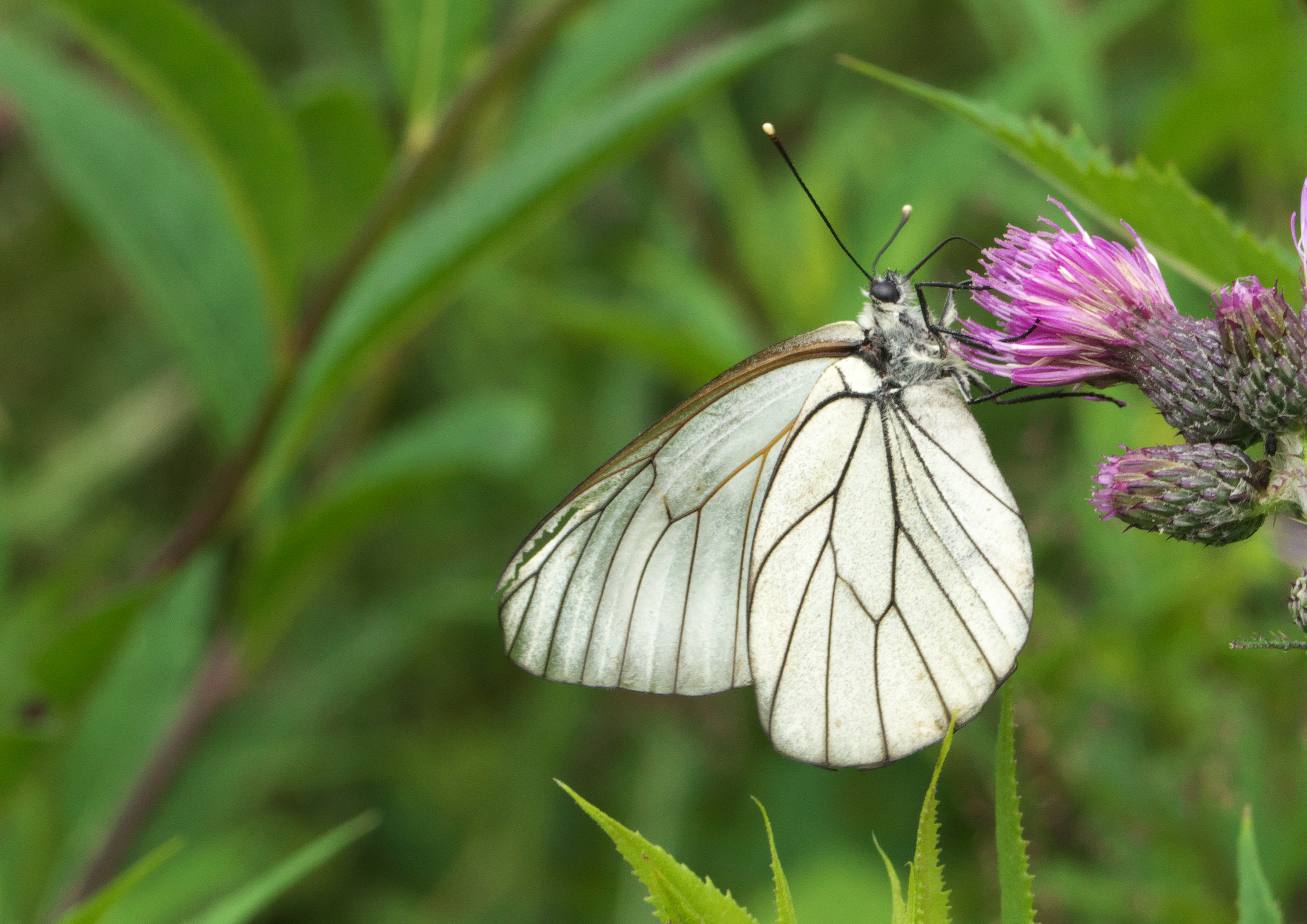 Baumweißling (Aporia crataegi (Linnaeus, 1758)), im Plane-Quellgebiet, Naturpark Hoher Fläming (Brandenburg), Anfang Juni 2019 (© Bernd Garbe)( Bild vergrößern)