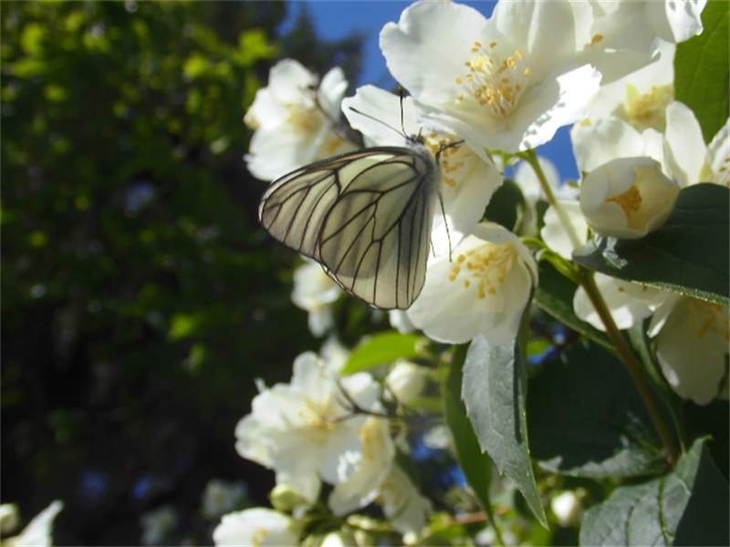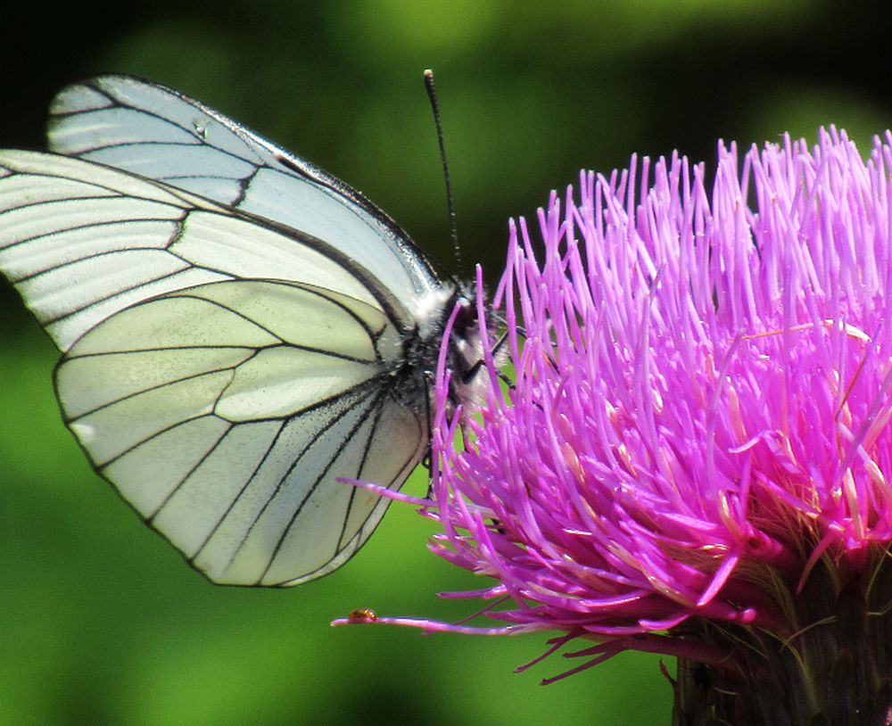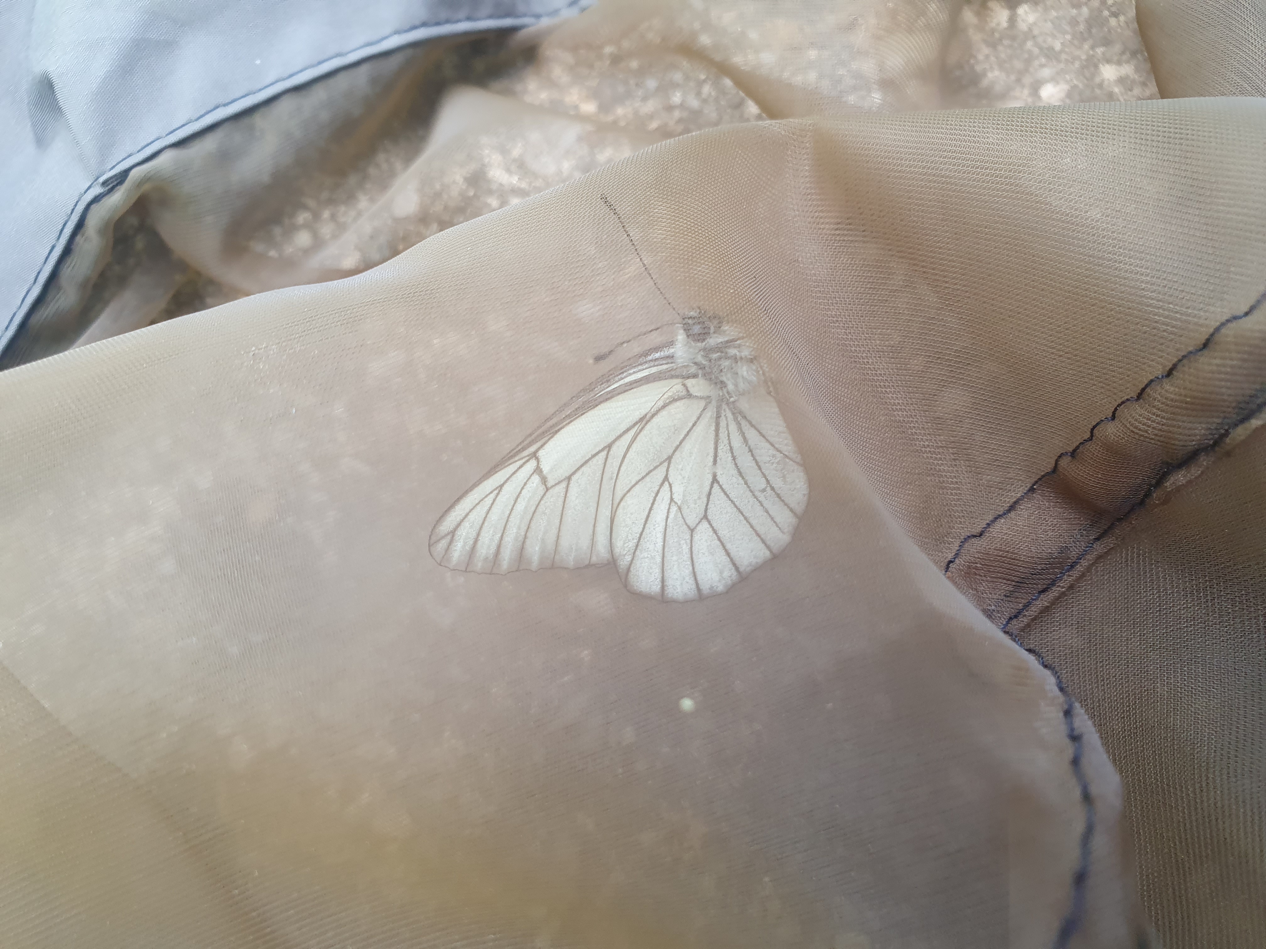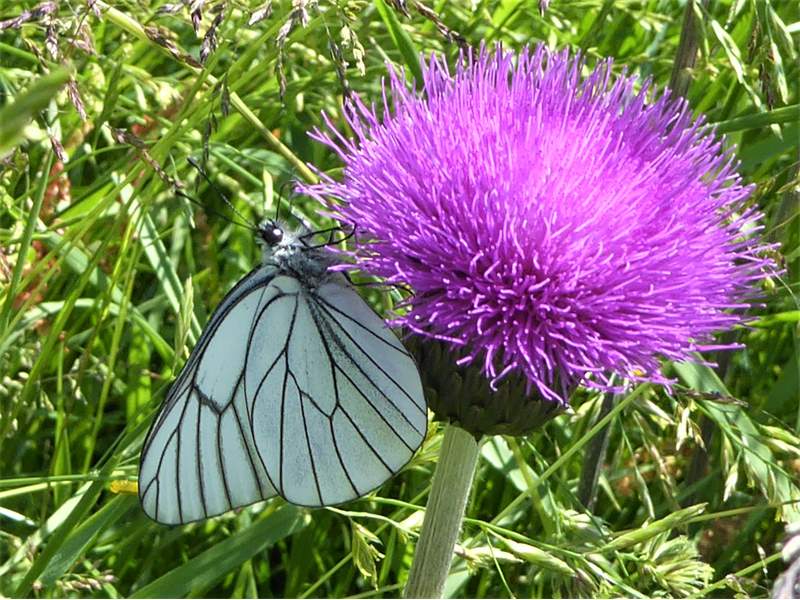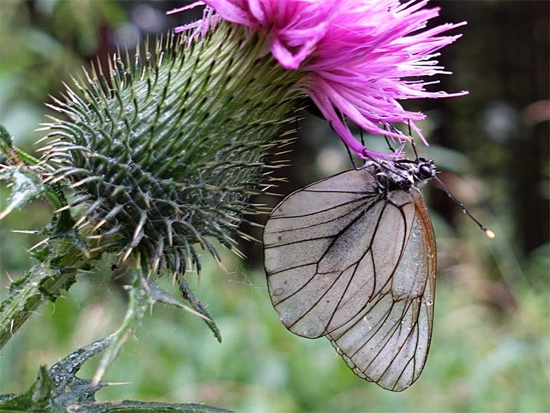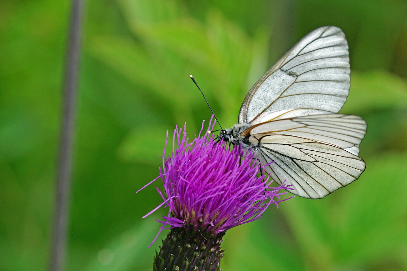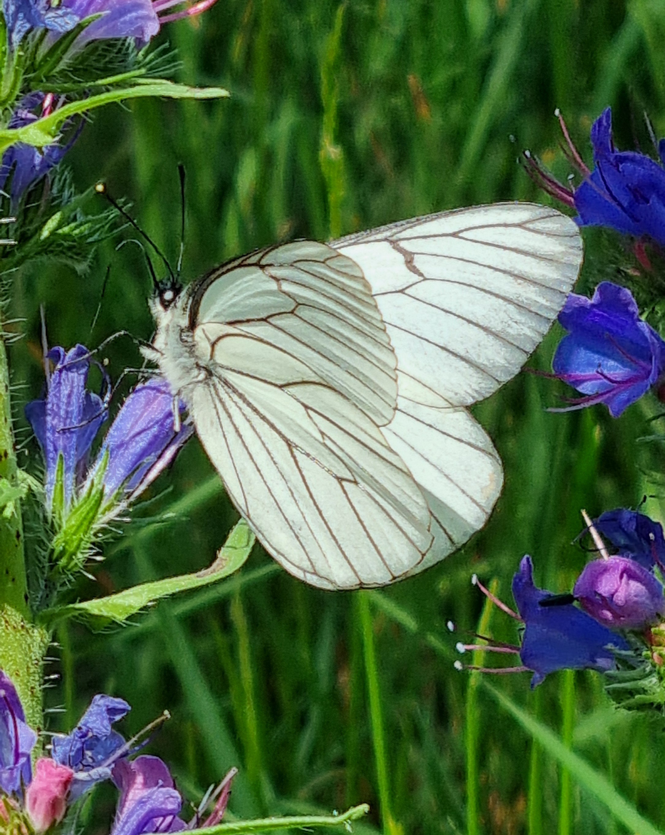Baumweißling (Aporia crataegi (Linnaeus, 1758)), im Plane-Quellgebiet, Naturpark Hoher Fläming (Brandenburg), Anfang Juni 2019 (© Bernd Garbe)( Bild vergrößern)