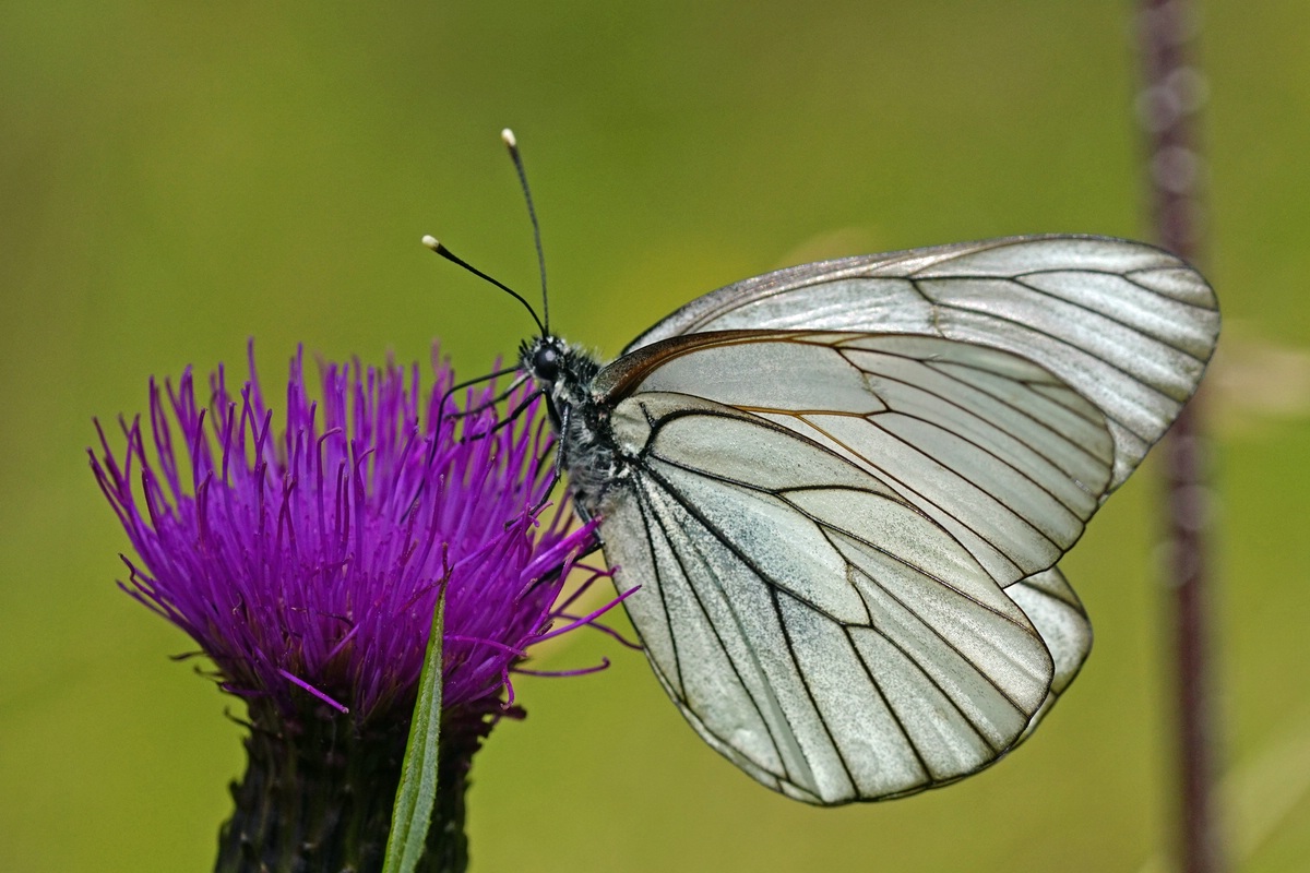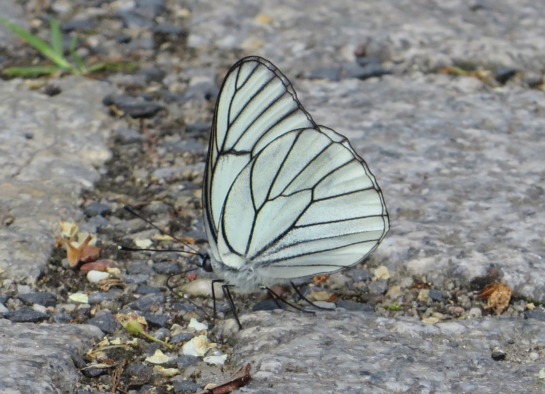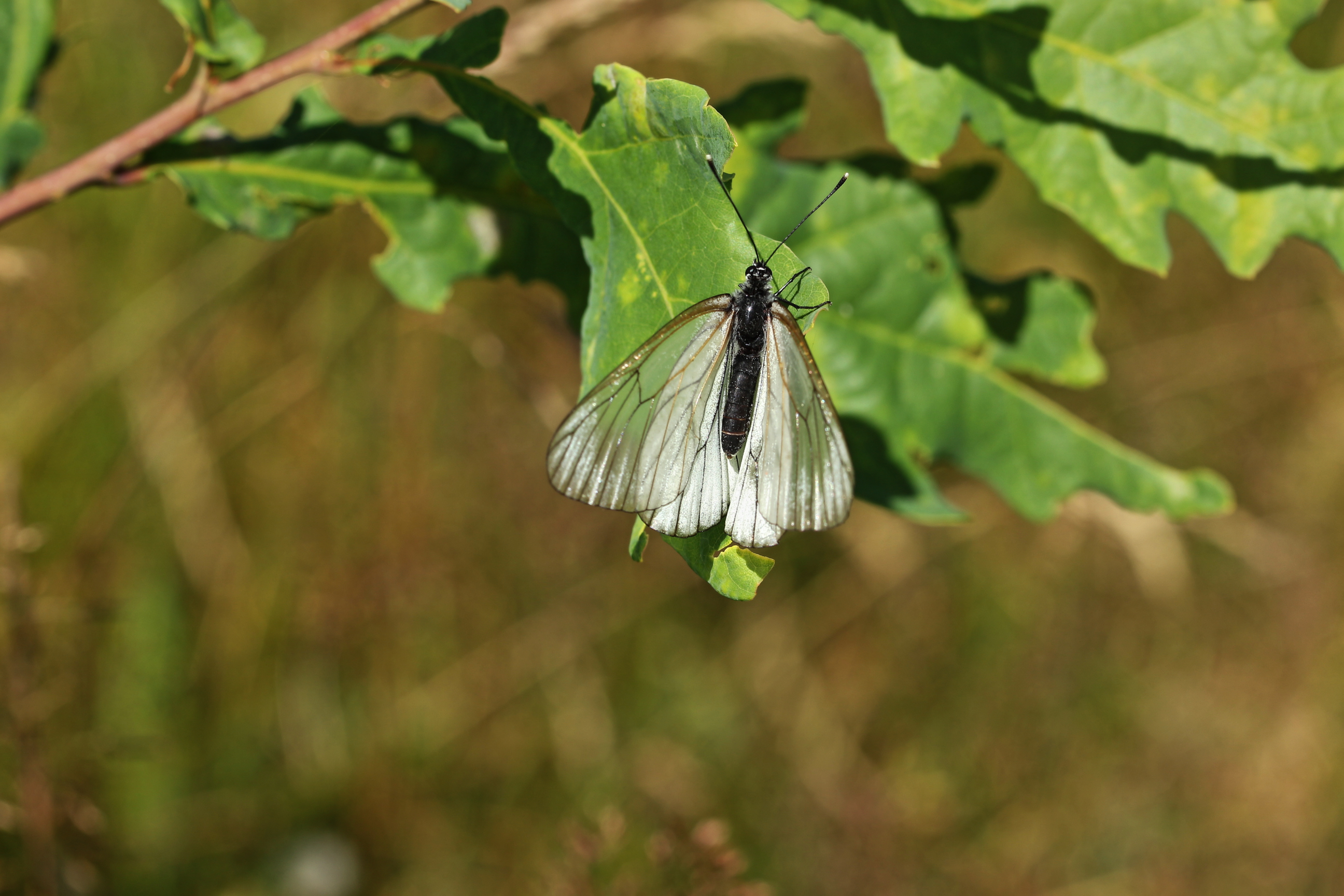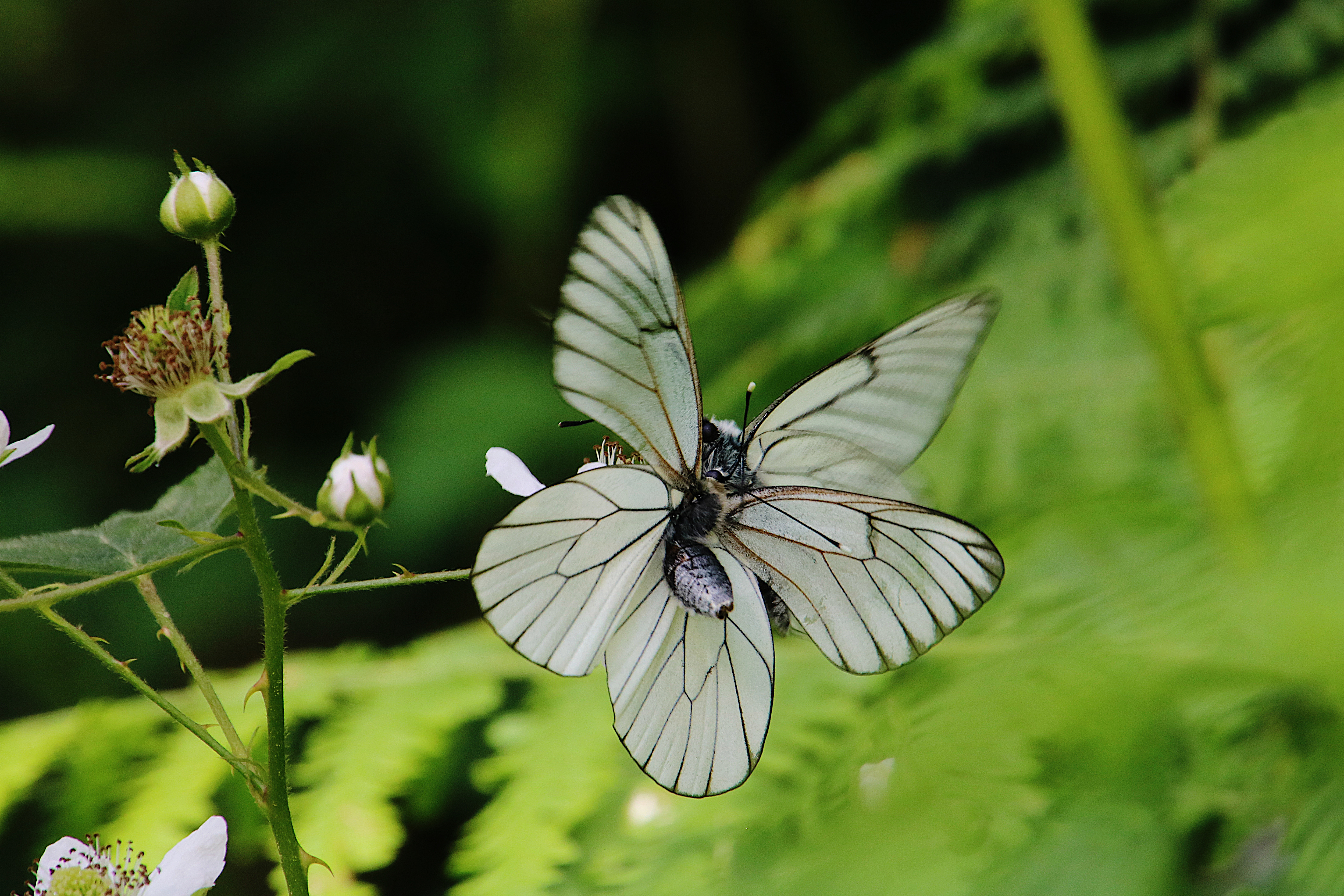 Baumweißling (Aporia crataegi (Linnaeus, 1758)), im Plane-Quellgebiet, Naturpark Hoher Fläming (Brandenburg), Anfang Juni 2019