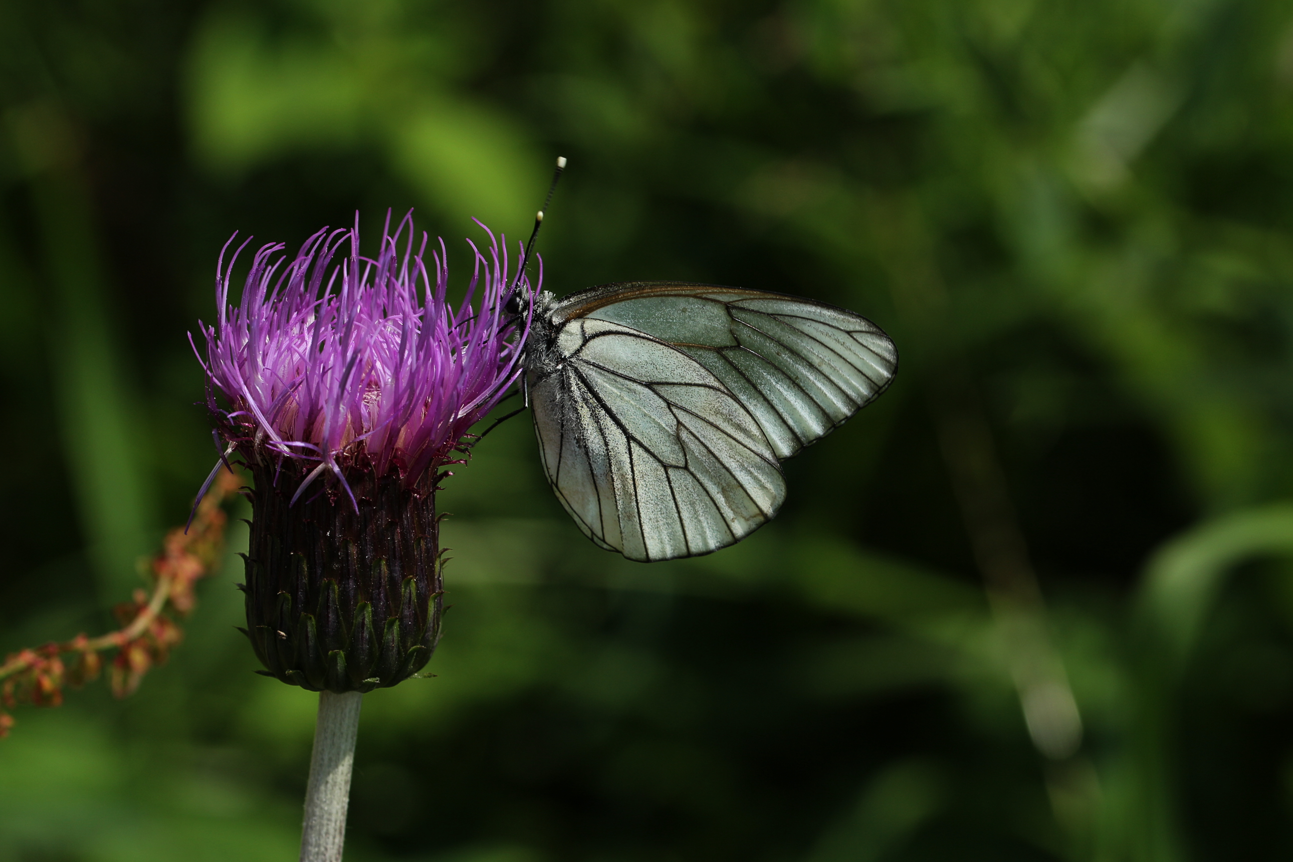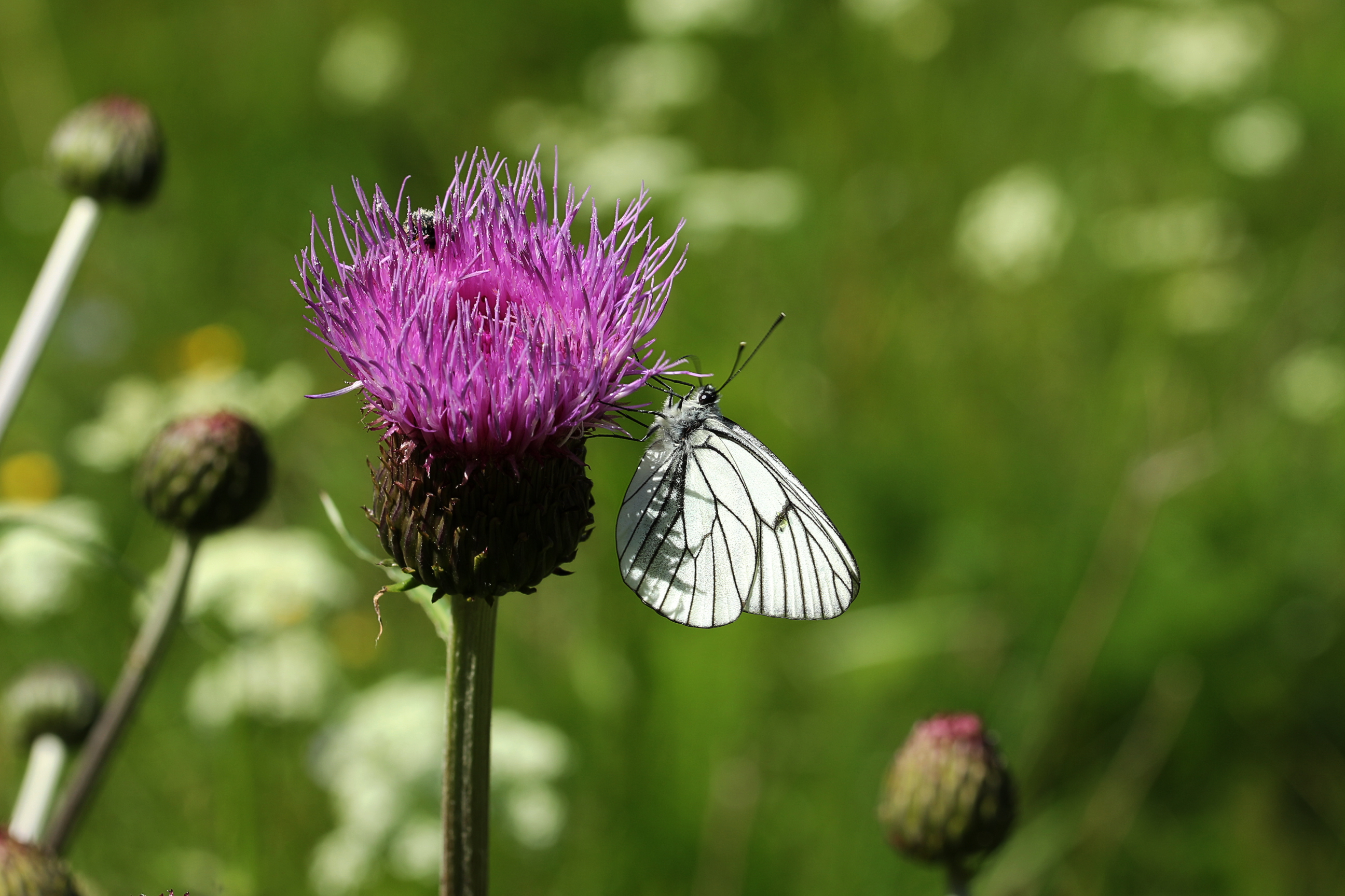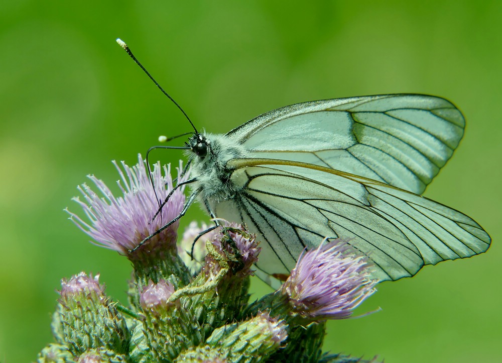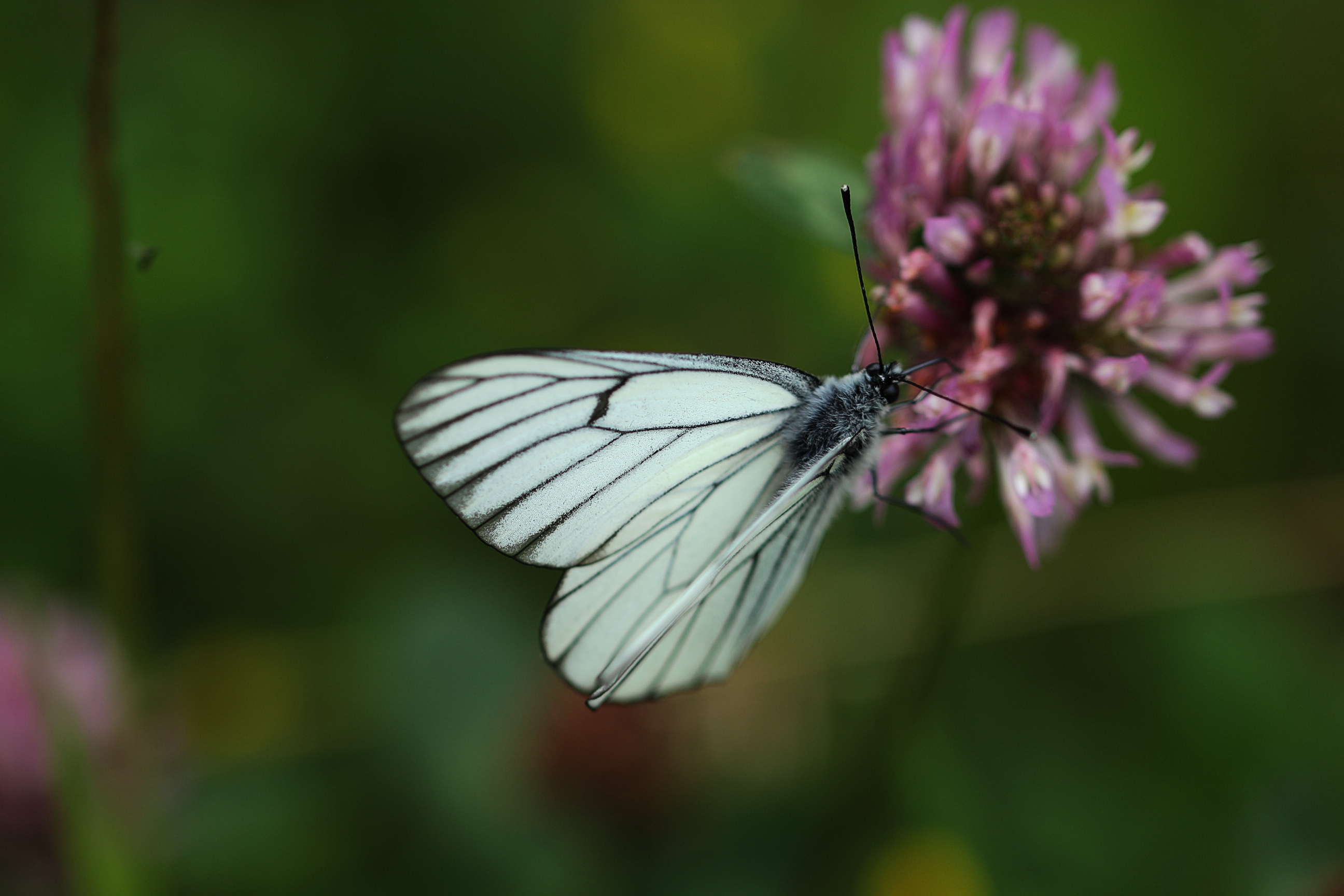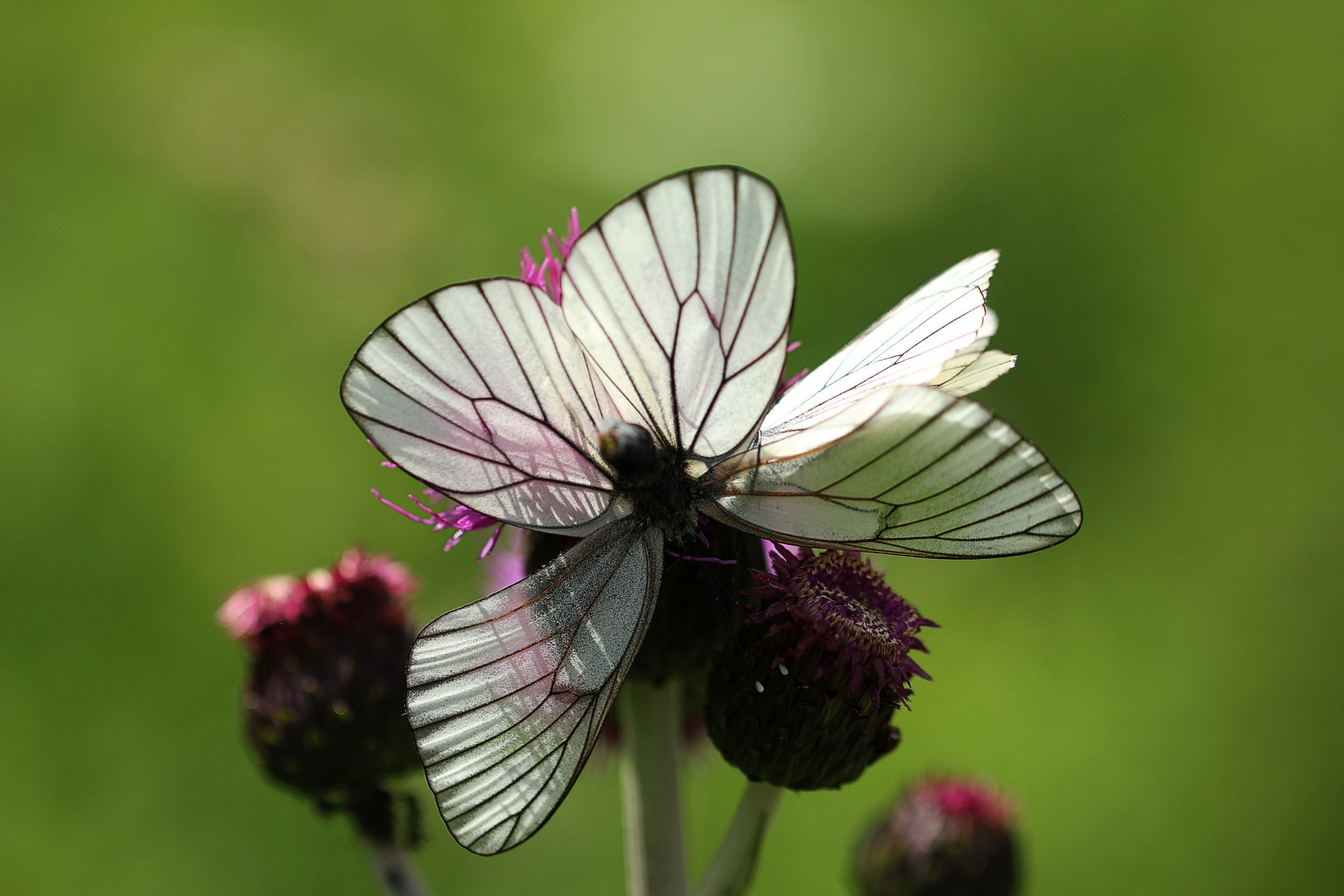 Baumweißling (Aporia crataegi (Linnaeus, 1758)), im Plane-Quellgebiet, Naturpark Hoher Fläming (Brandenburg), Anfang Juni 2019