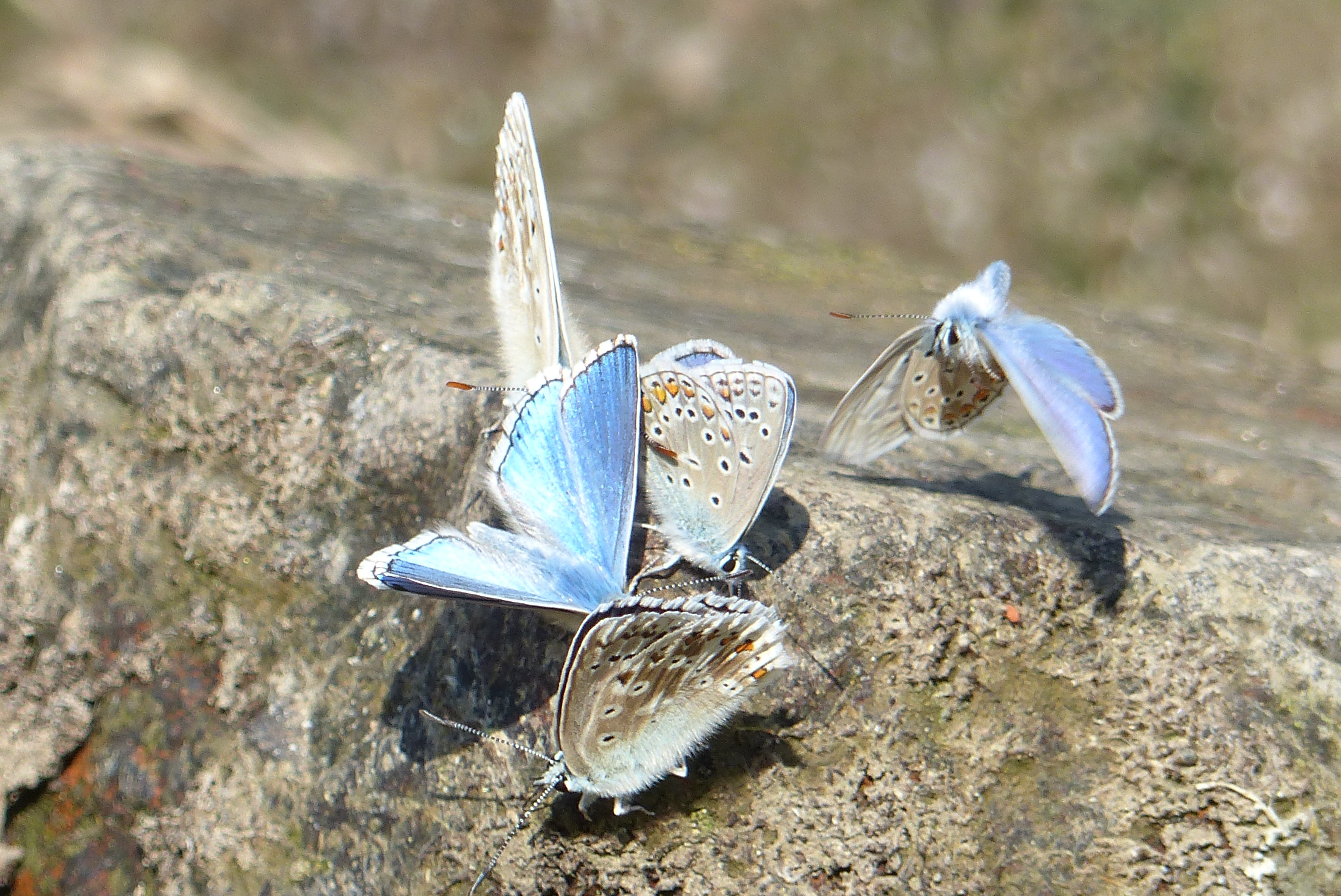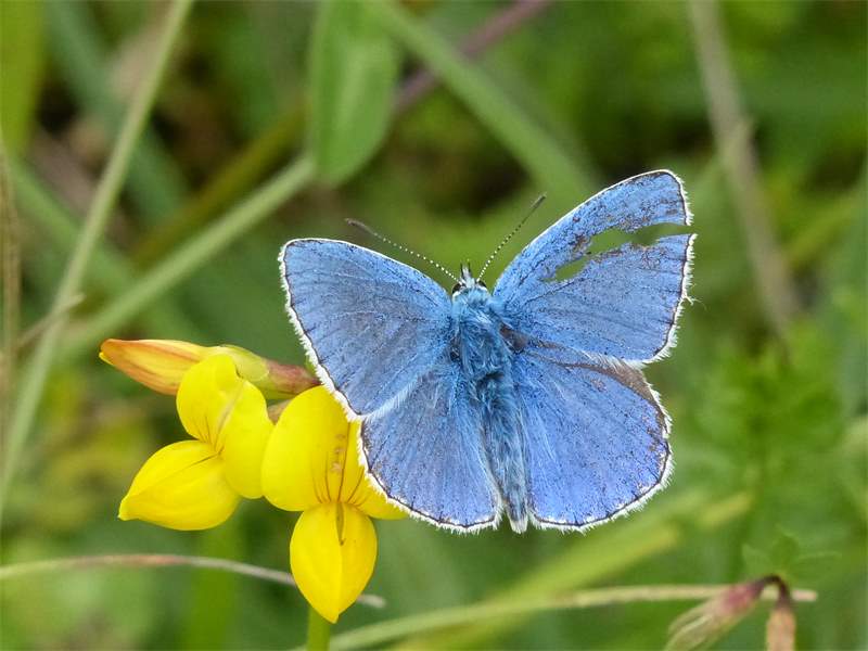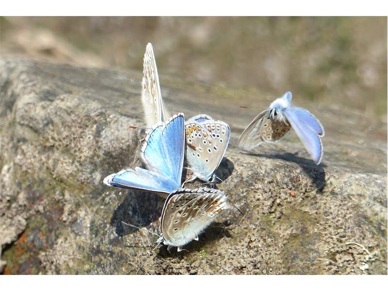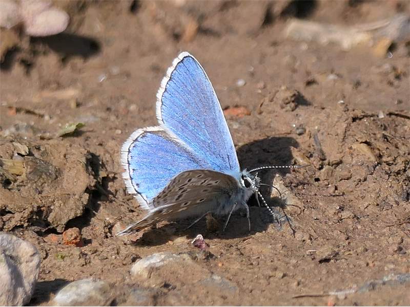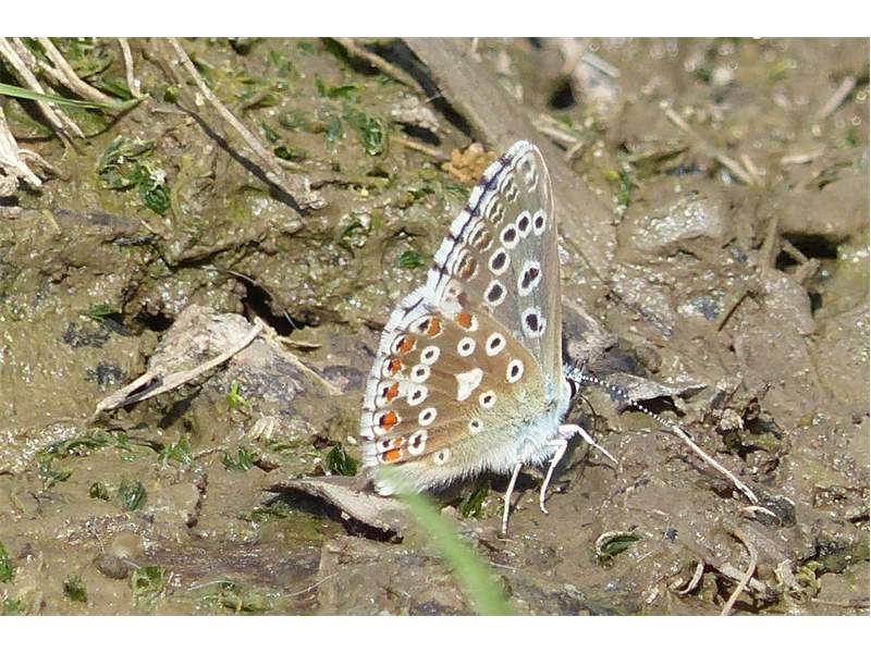 Viele Exemplare vom Himmelblauen Bläuling waren Ende Juli 2018 im Jenaer Forst unterwegs. Oft saßen sie in Gruppen an Teichrändern.