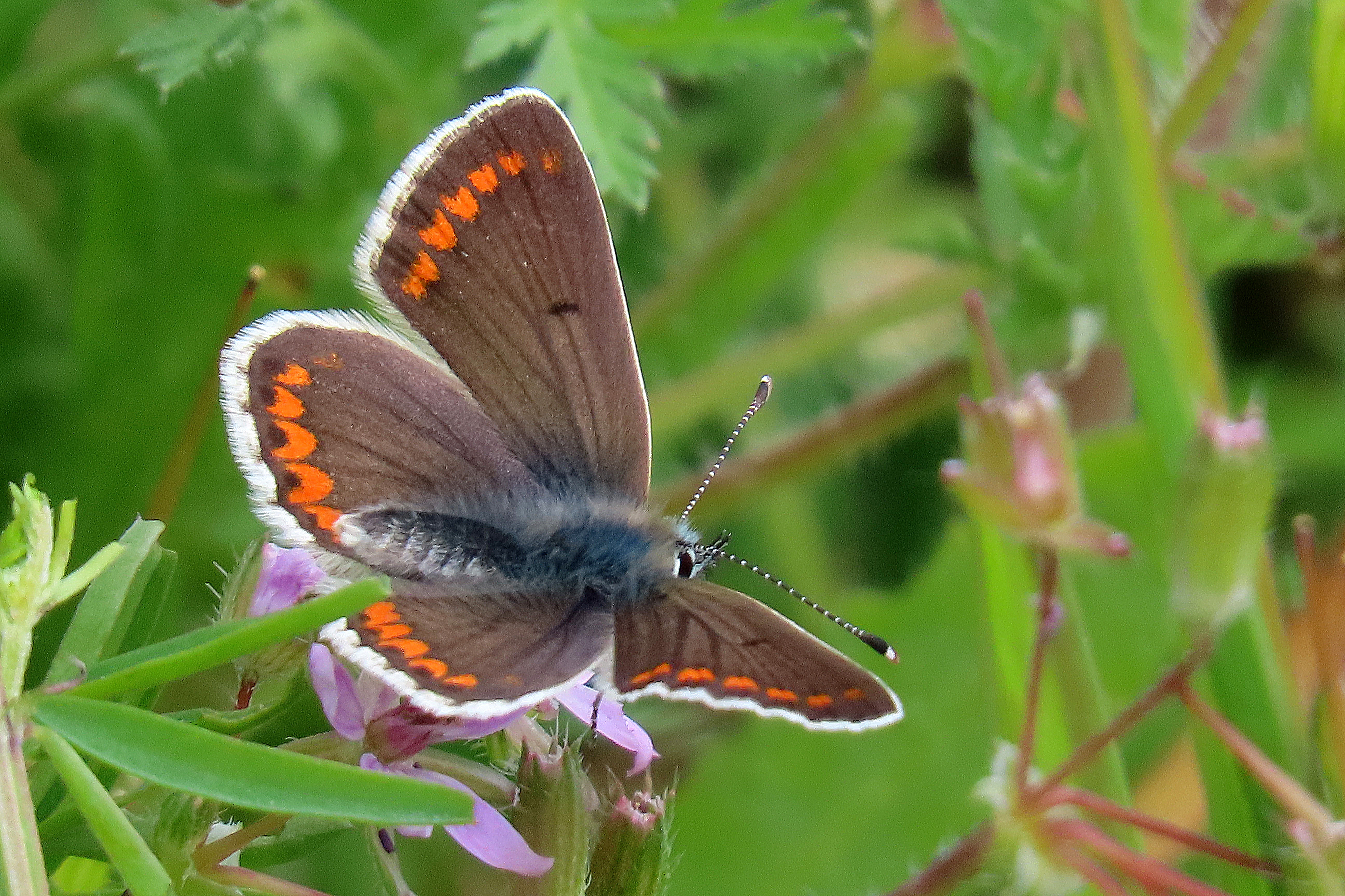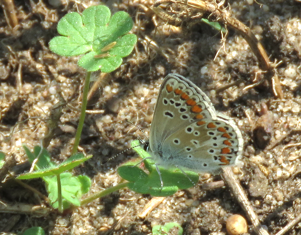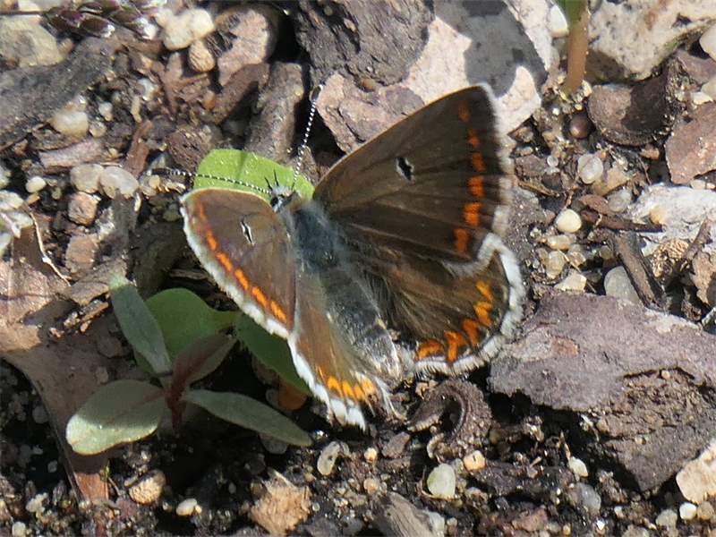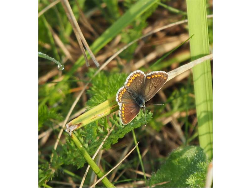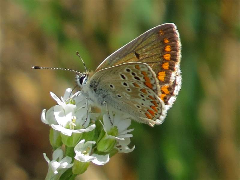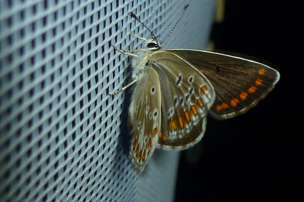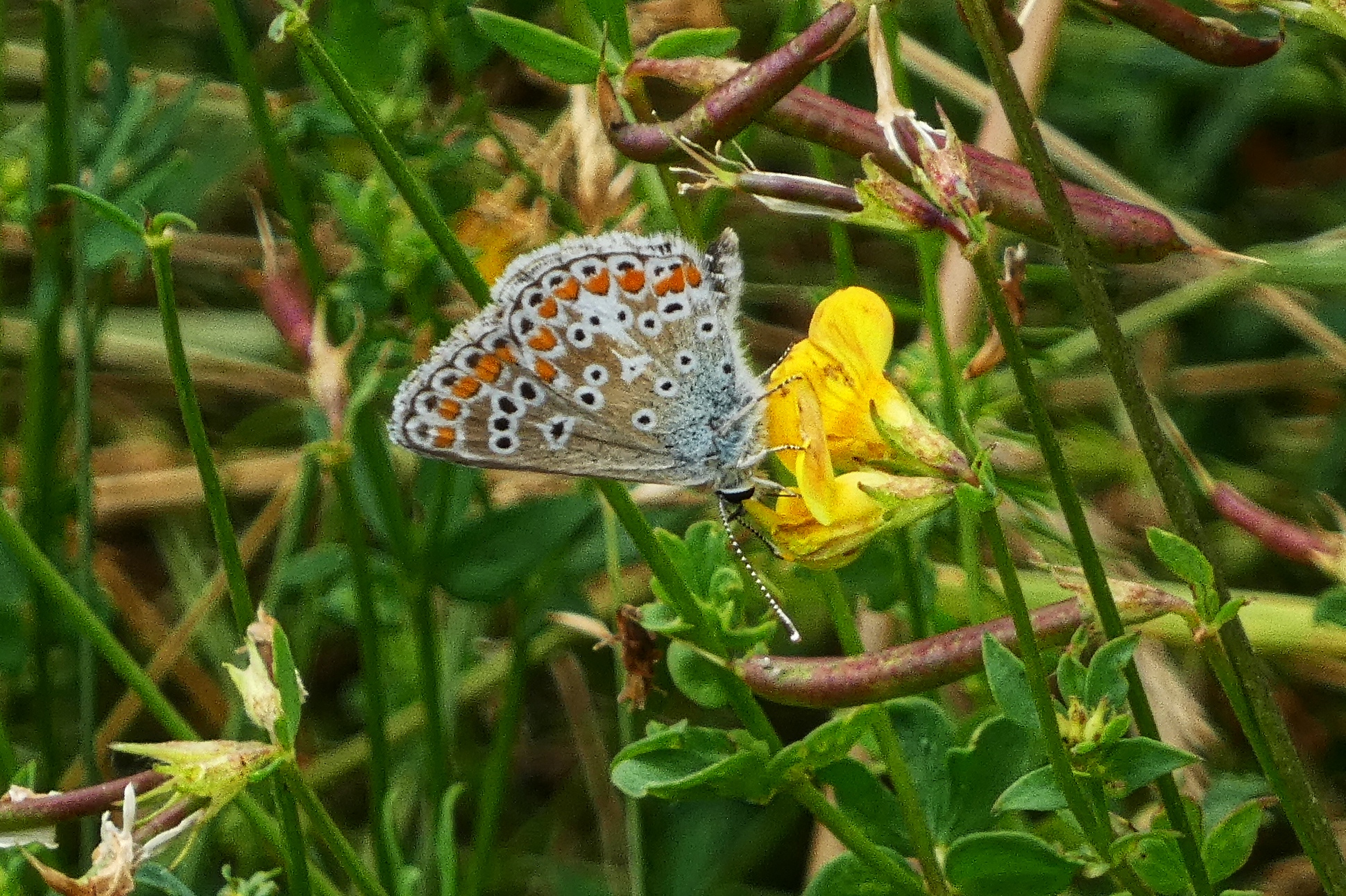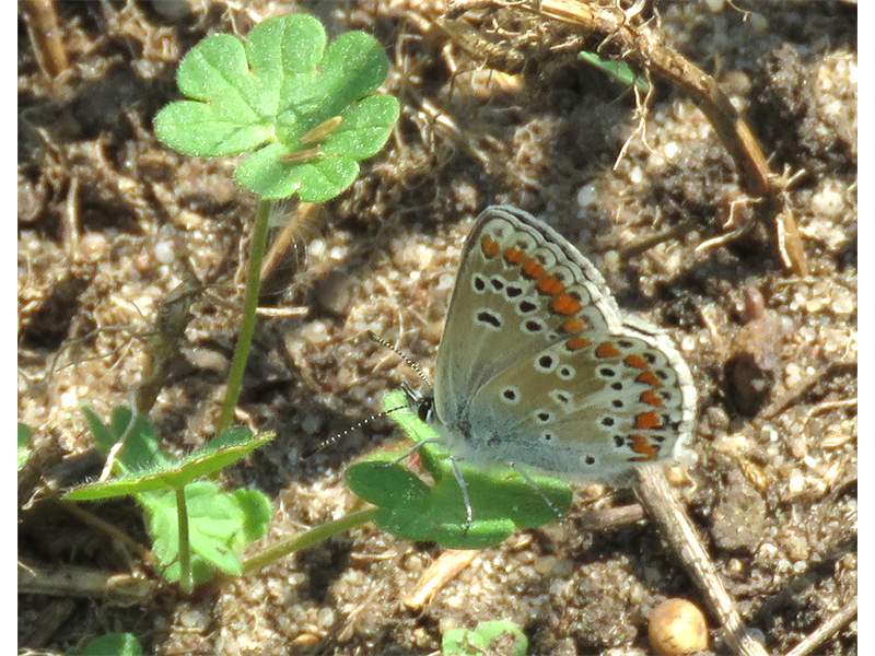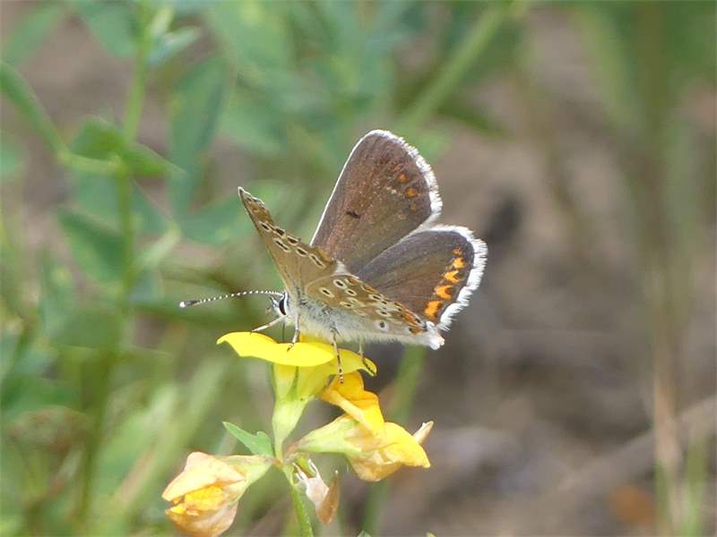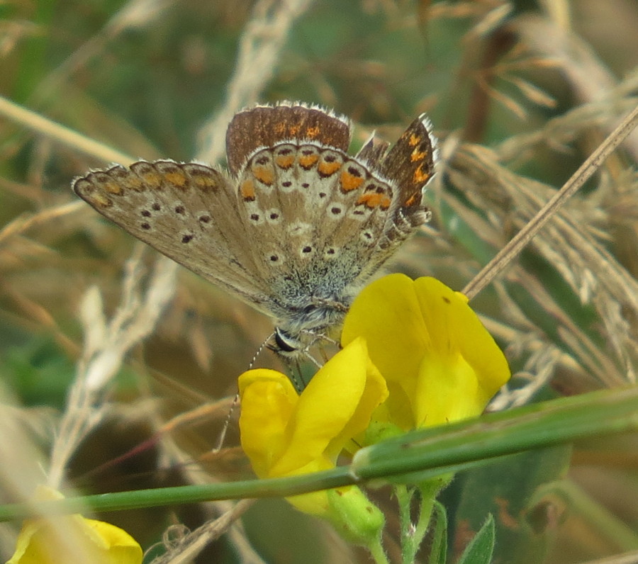 Kleiner Sonnenröschenbläuling (Aricia agestis (Denis & Schiffermüller, 1775)),Freital/Wurgwitz,Hammerteich,Wegrand auf Klee,Sep.2019