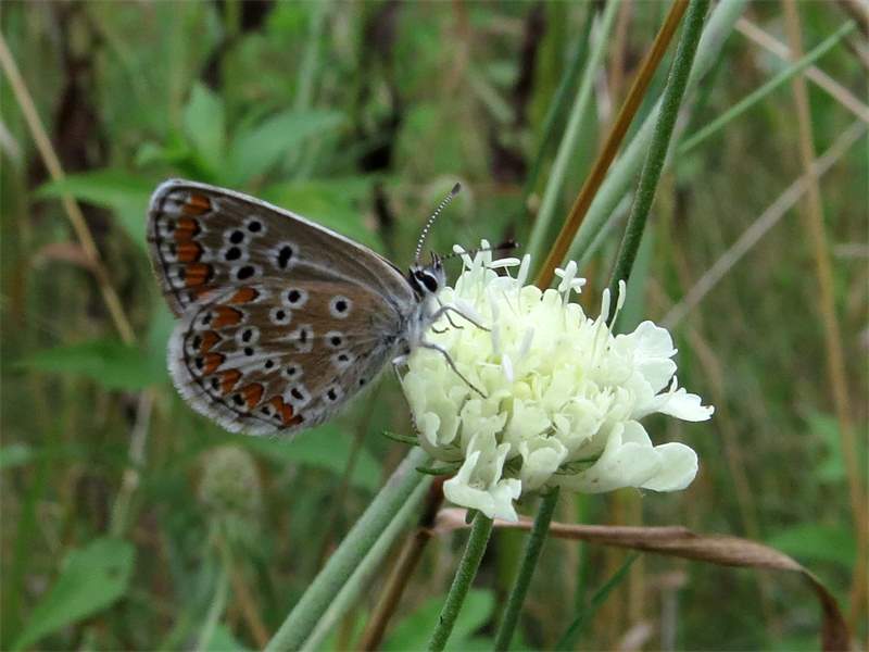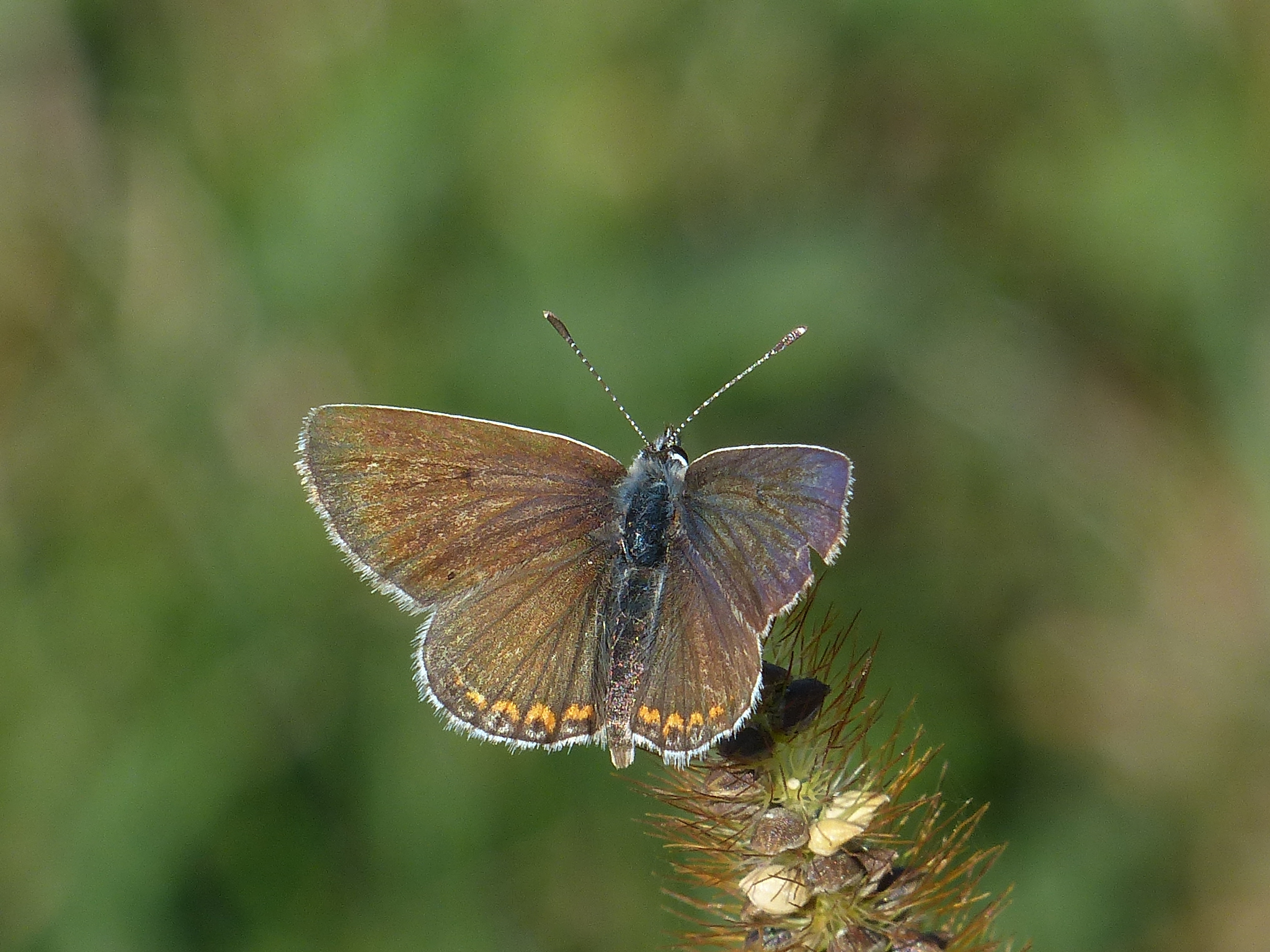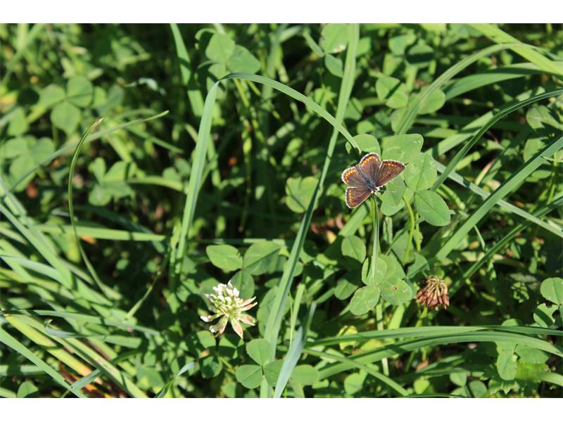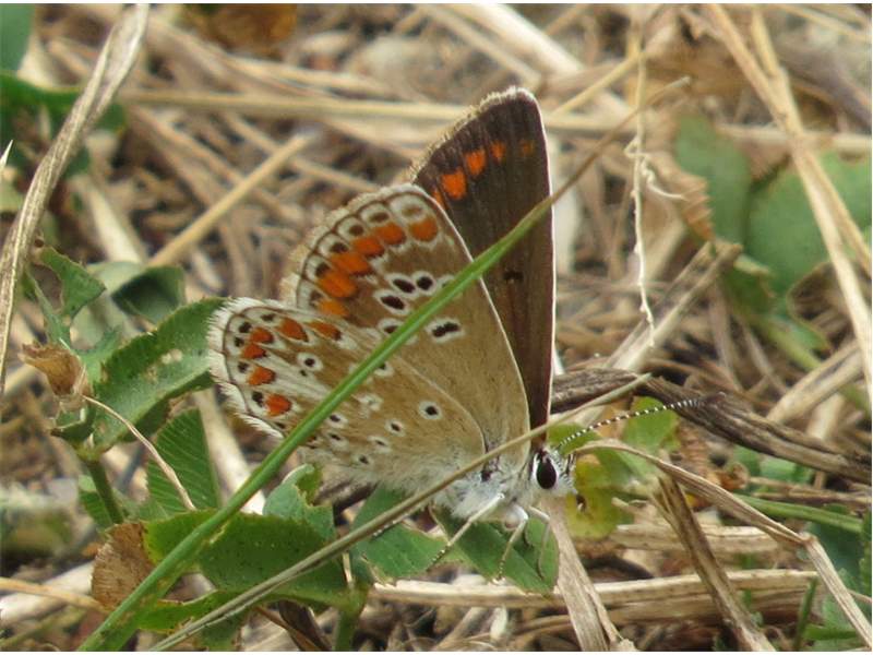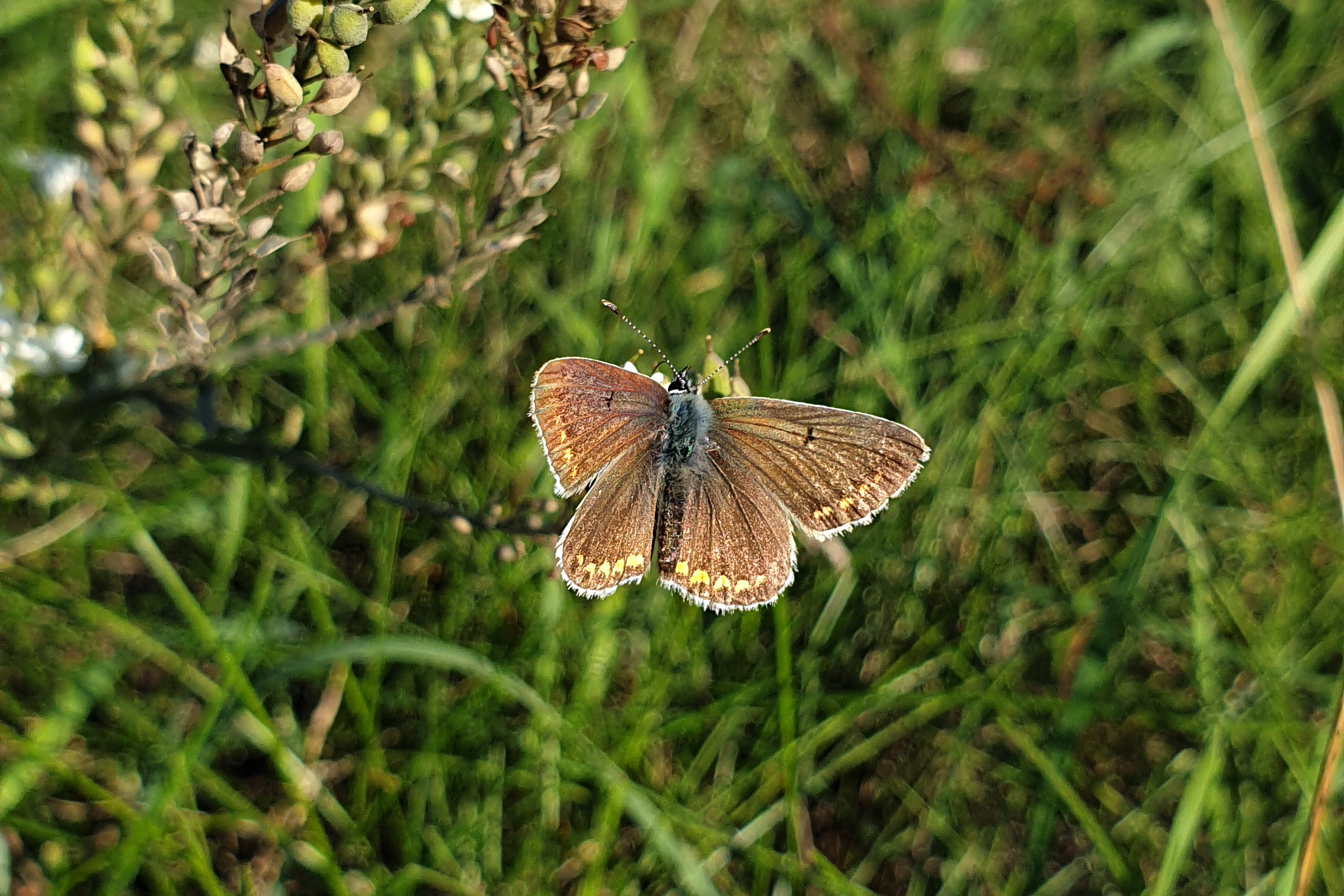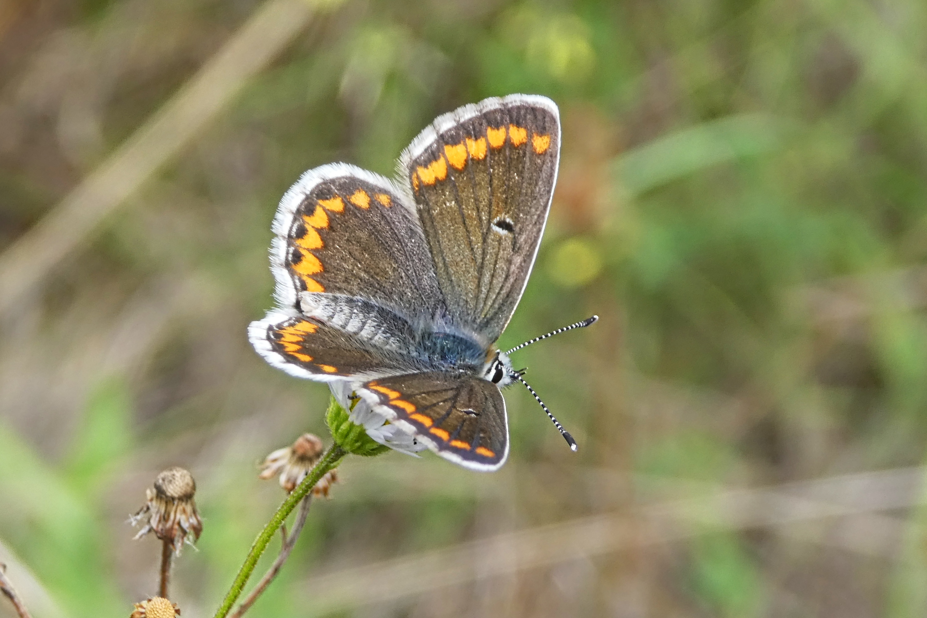 Kleiner Sonnenröschenbläuling (Aricia agestis (Denis & Schiffermüller, 1775)),Freital/Wurgwitz,Hammerteich,Wegrand auf Klee,Sep.2019