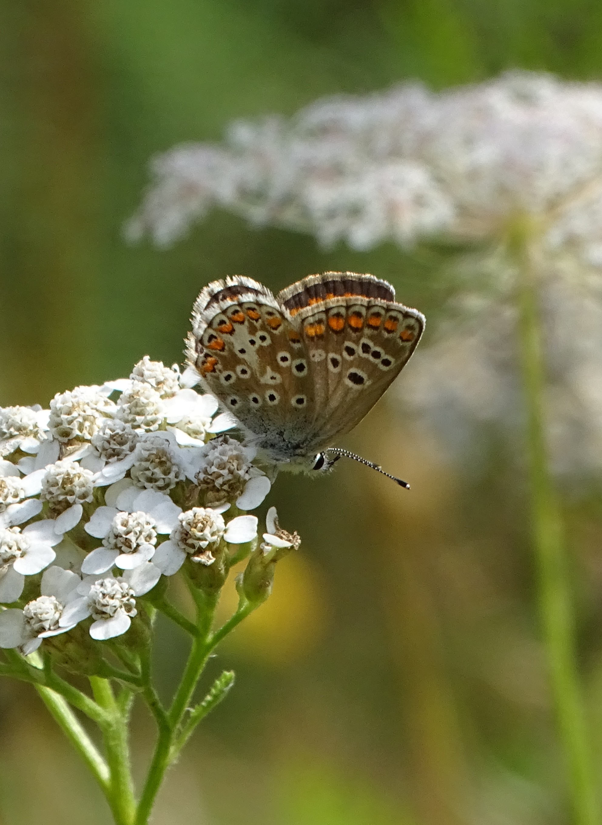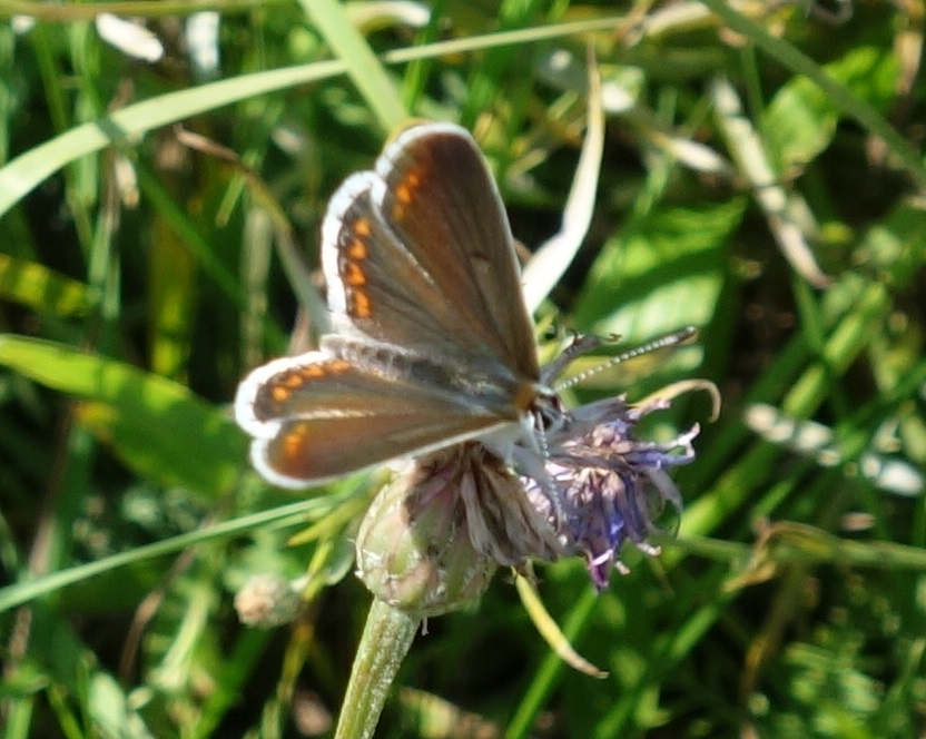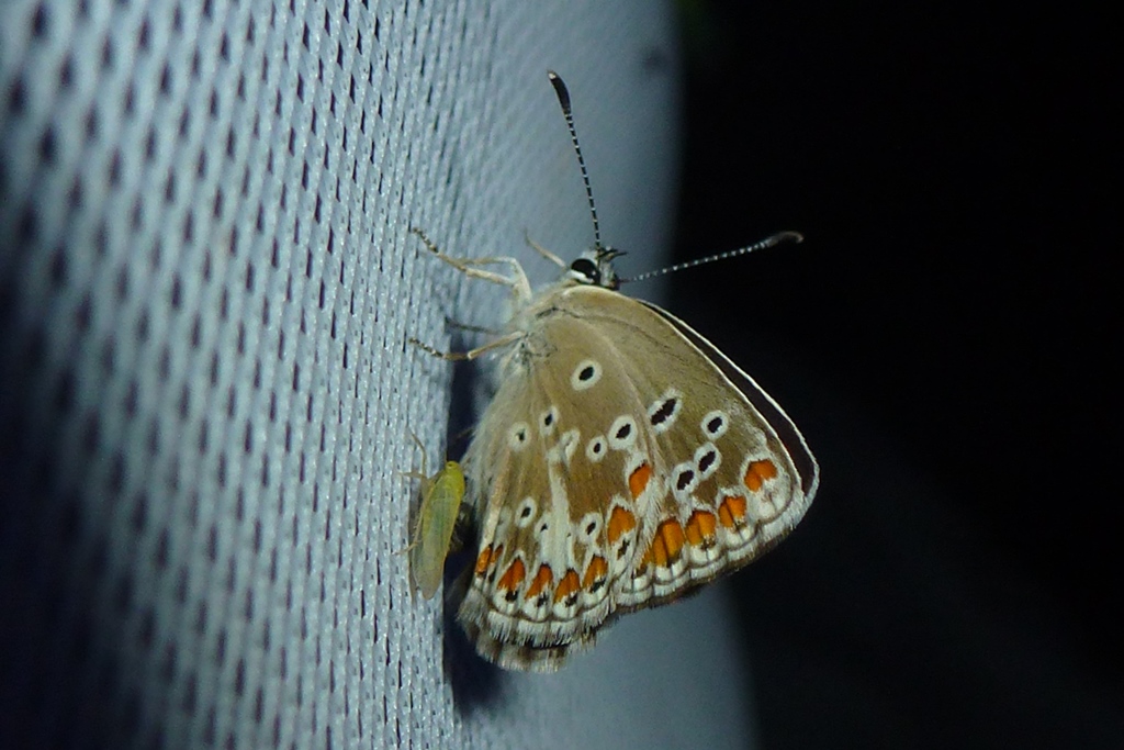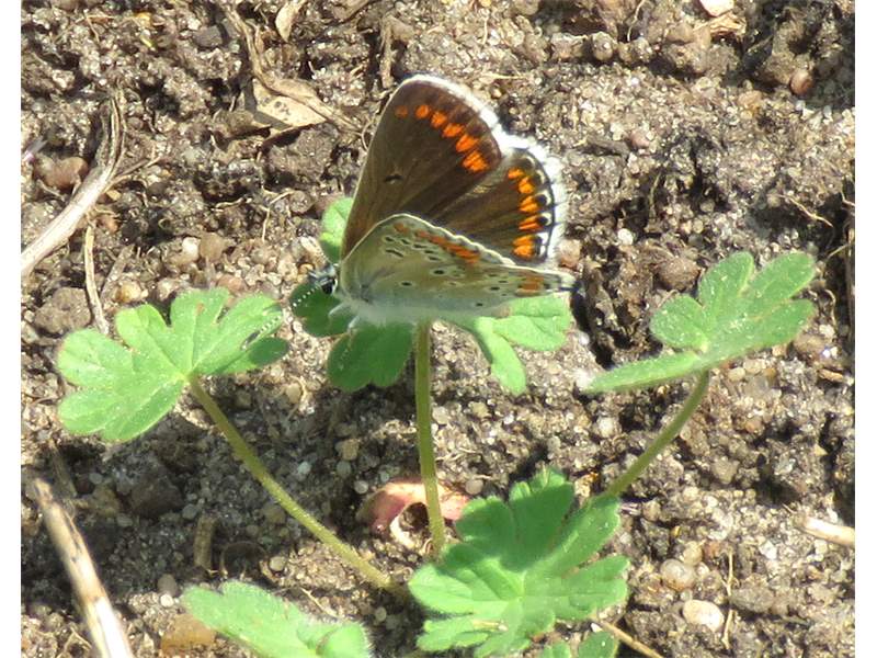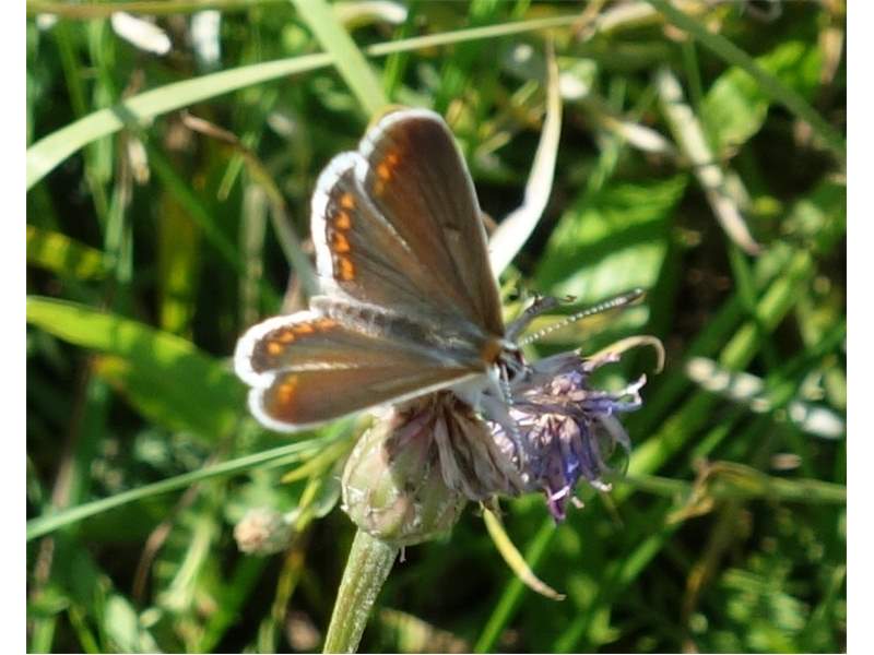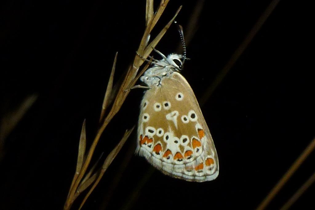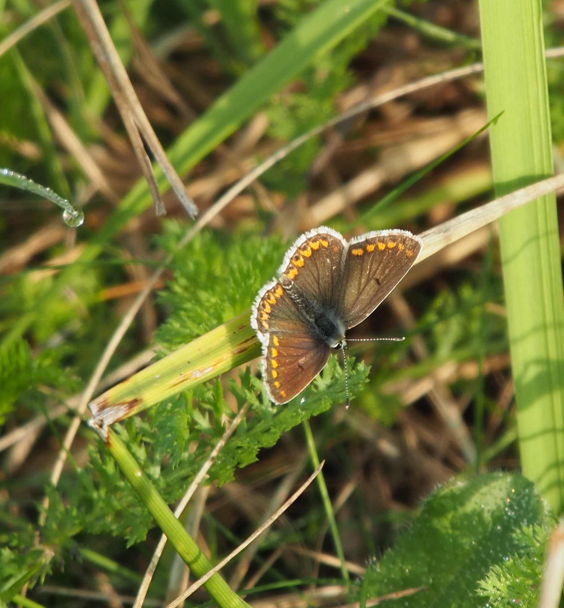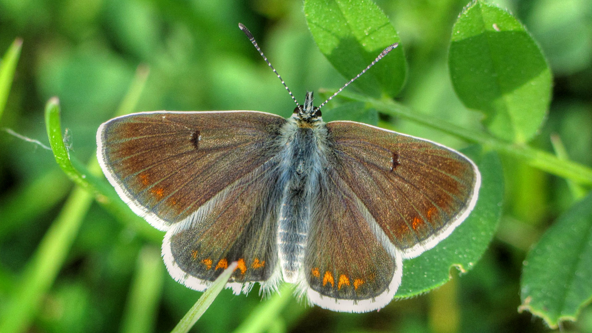 Kleiner Sonnenröschenbläuling (Aricia agestis (Denis & Schiffermüller, 1775)),Freital/Wurgwitz,Hammerteich,Wegrand auf Klee,Sep.2019
