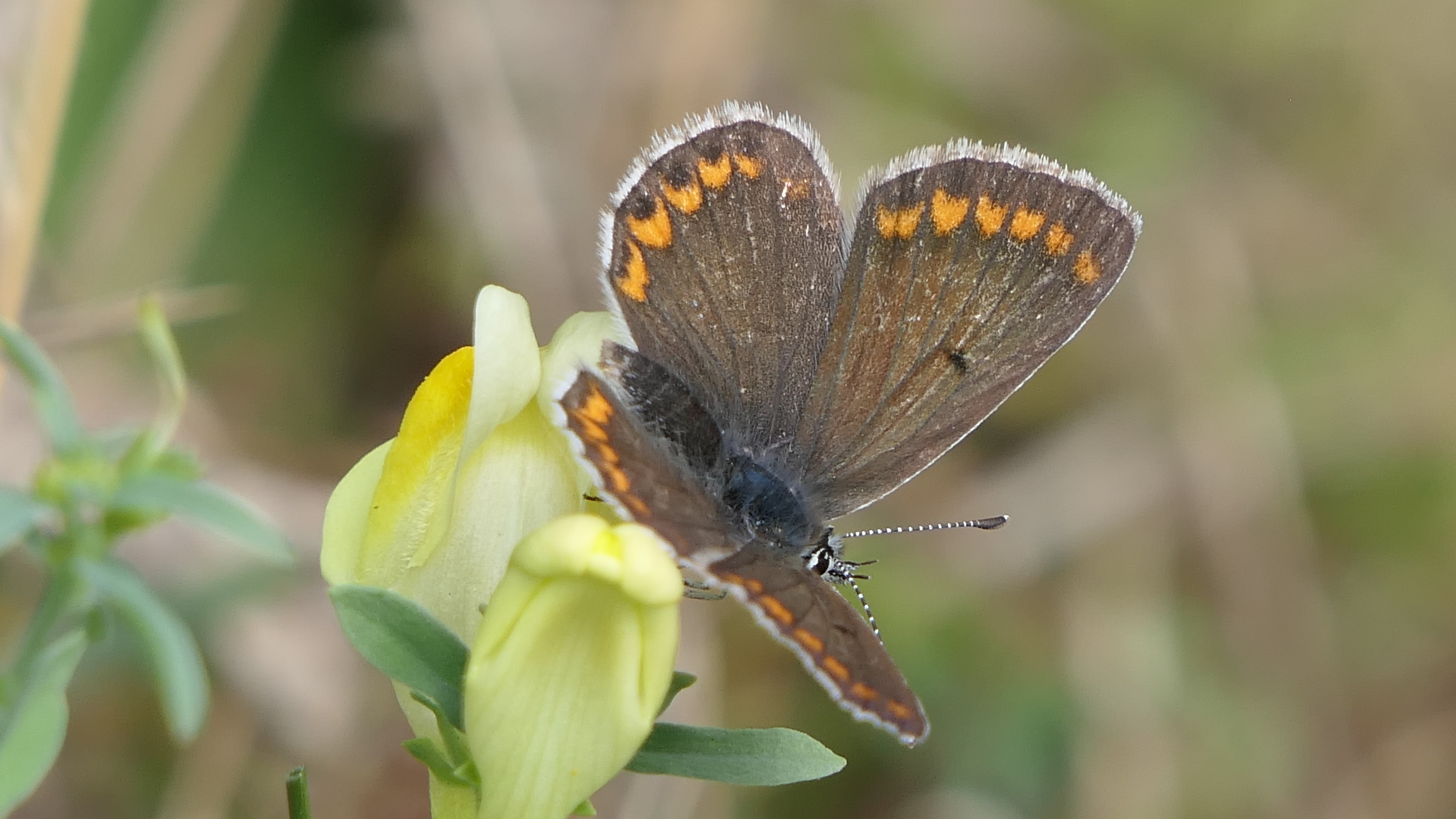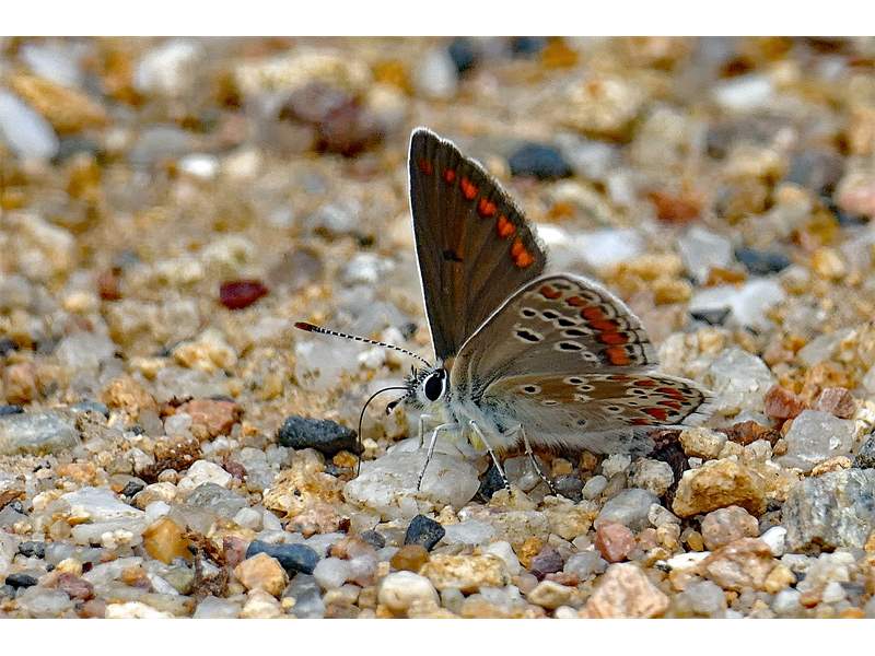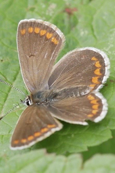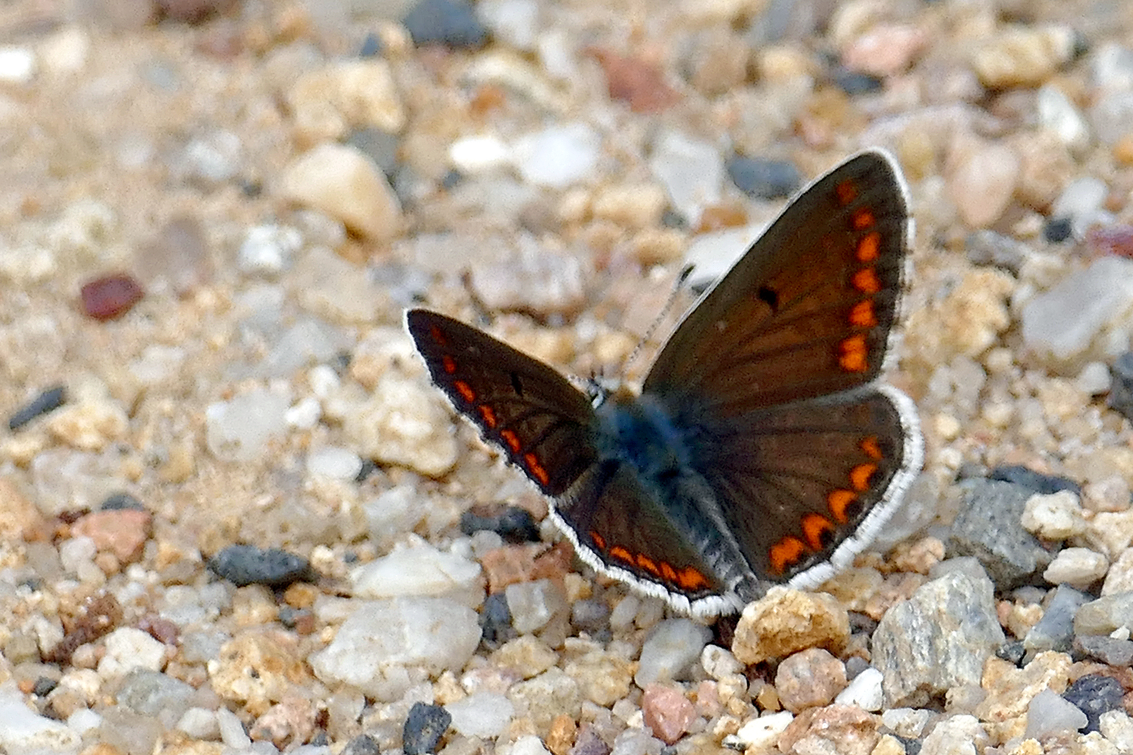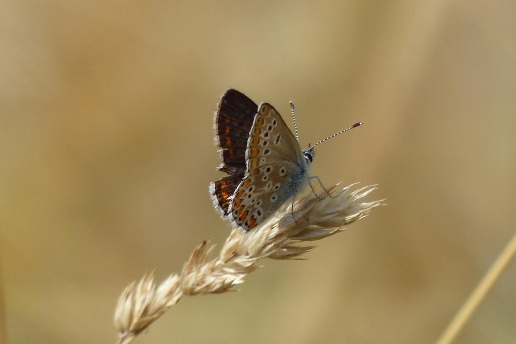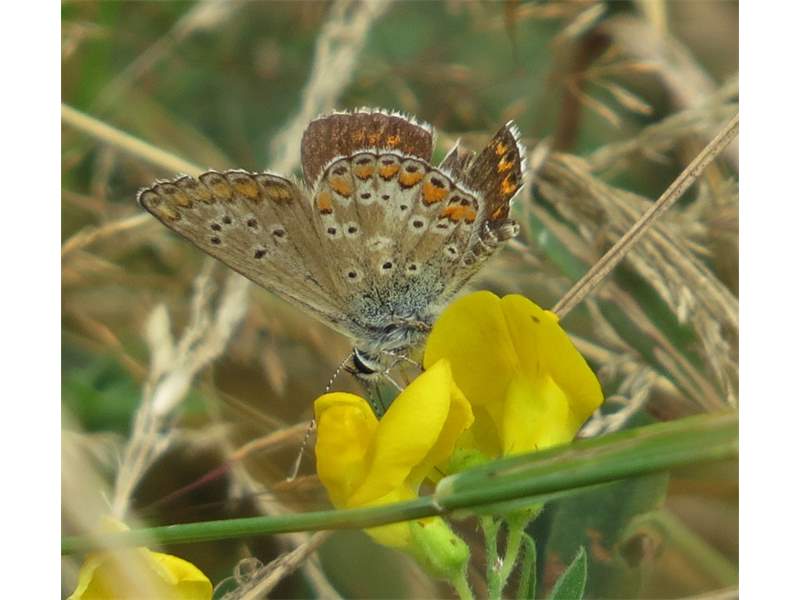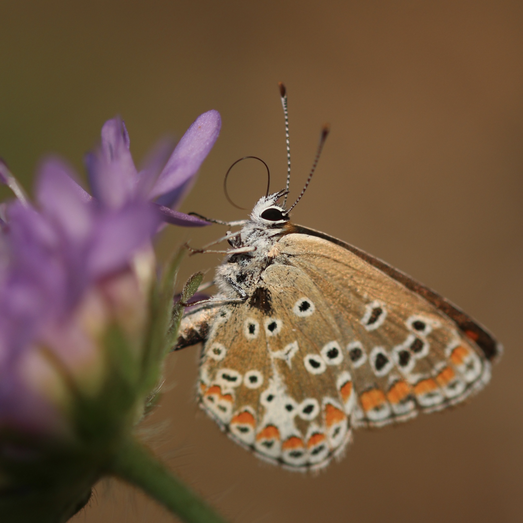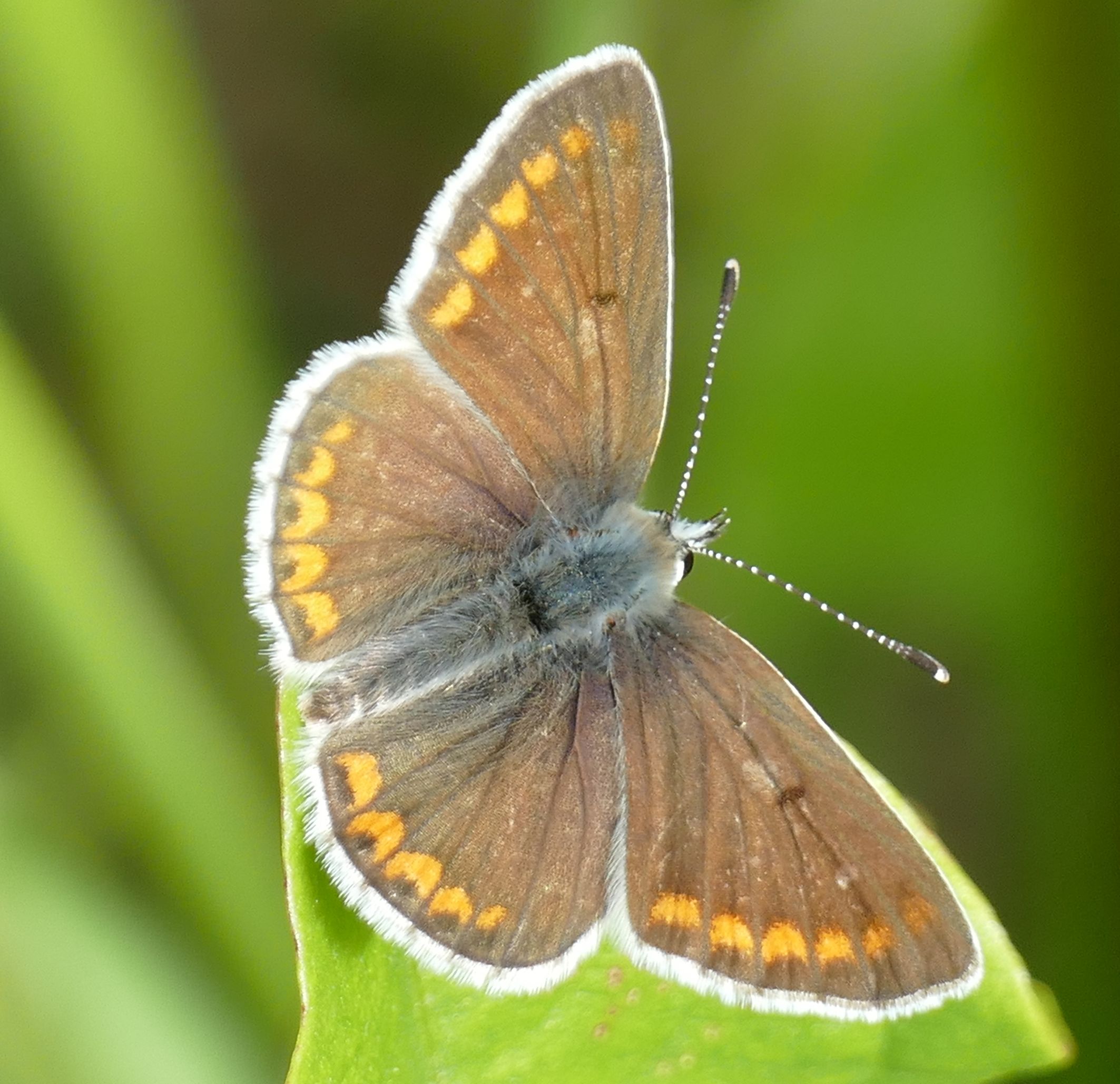 Kleiner Sonnenröschenbläuling (Aricia agestis (Denis & Schiffermüller, 1775)),Freital/Wurgwitz,Hammerteich,Wegrand auf Klee,Sep.2019