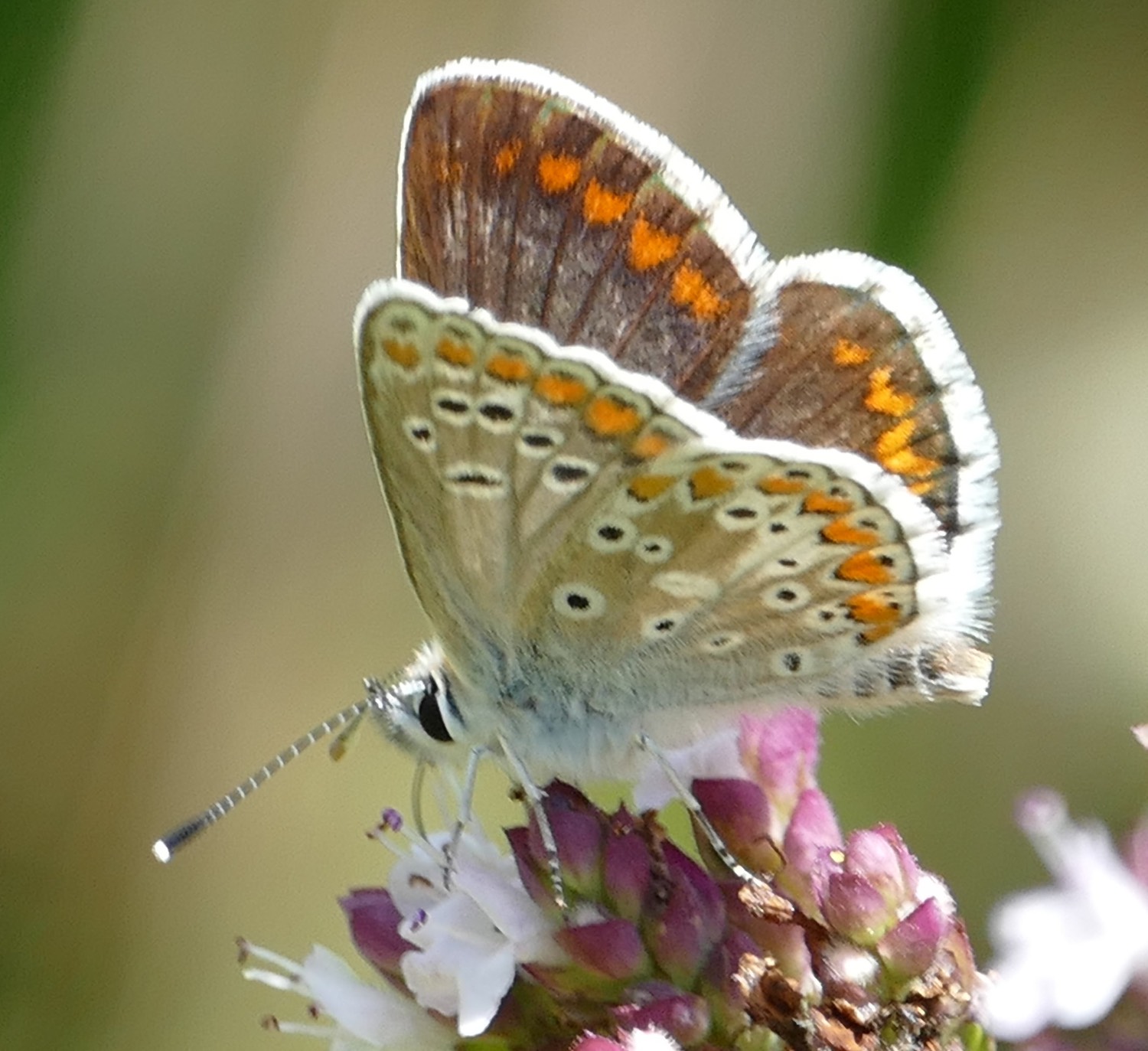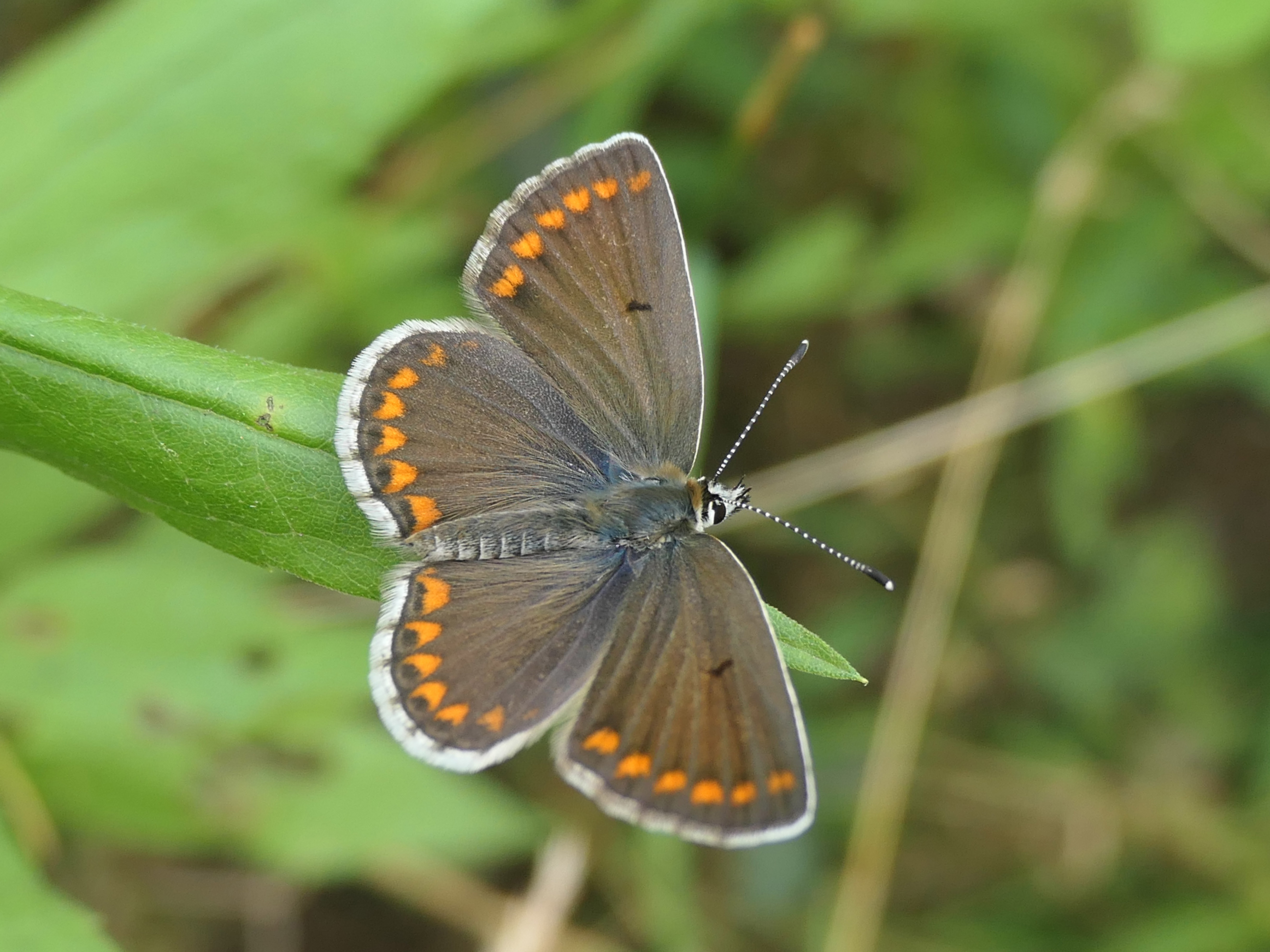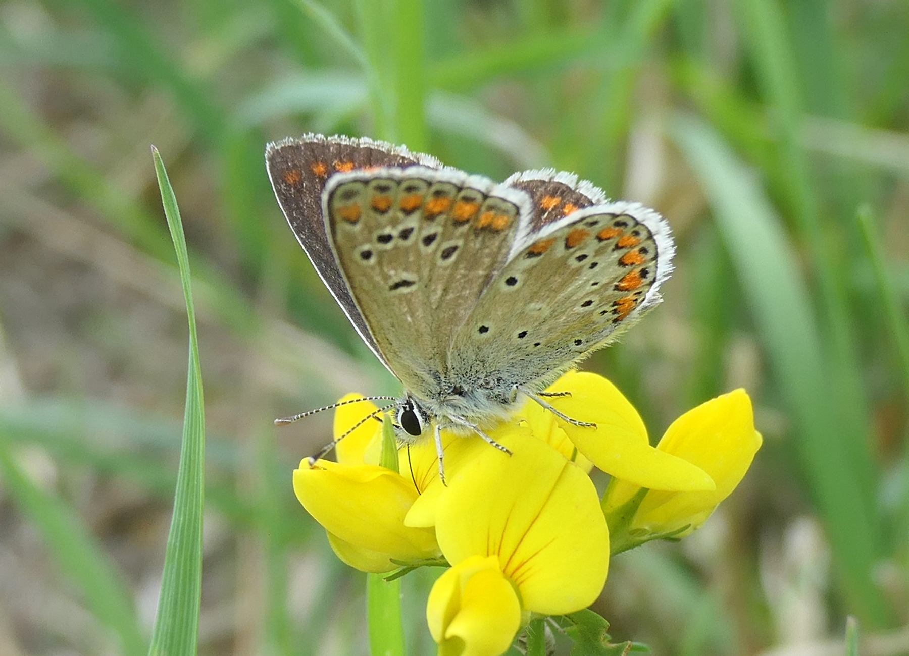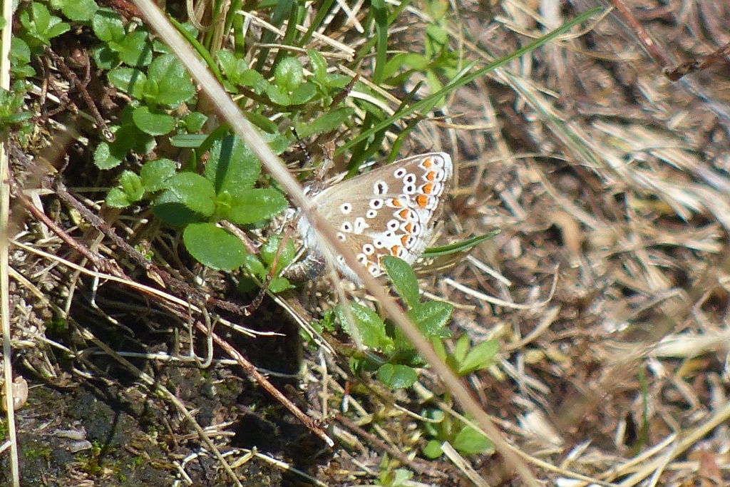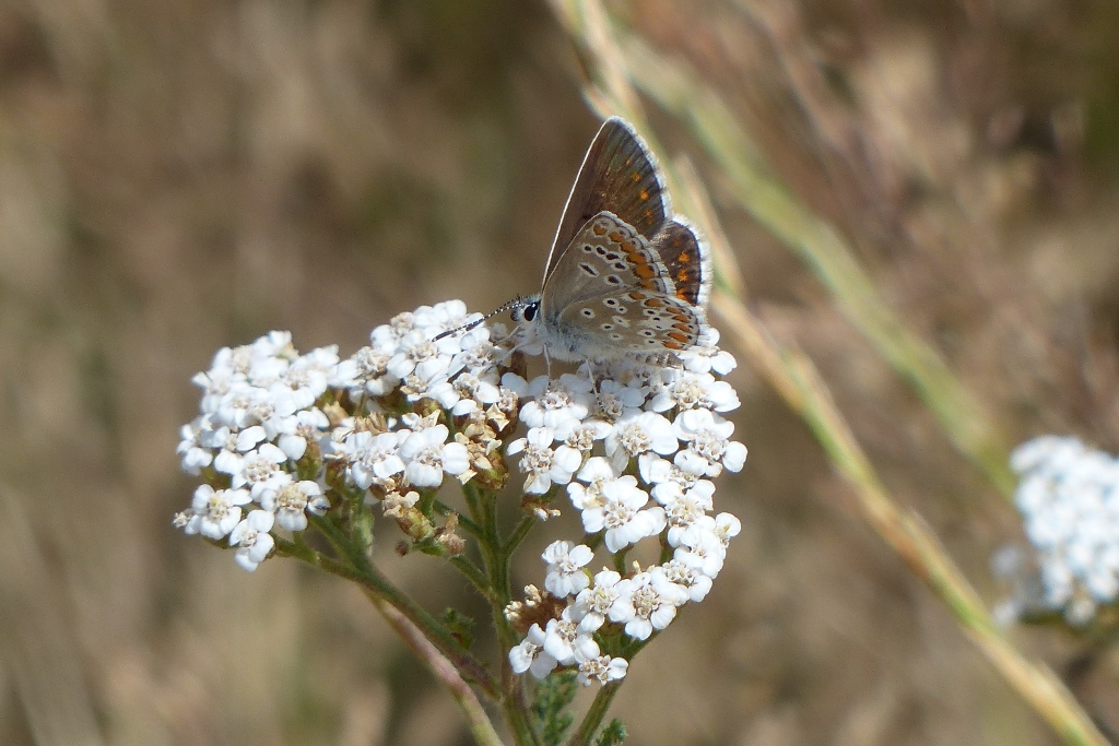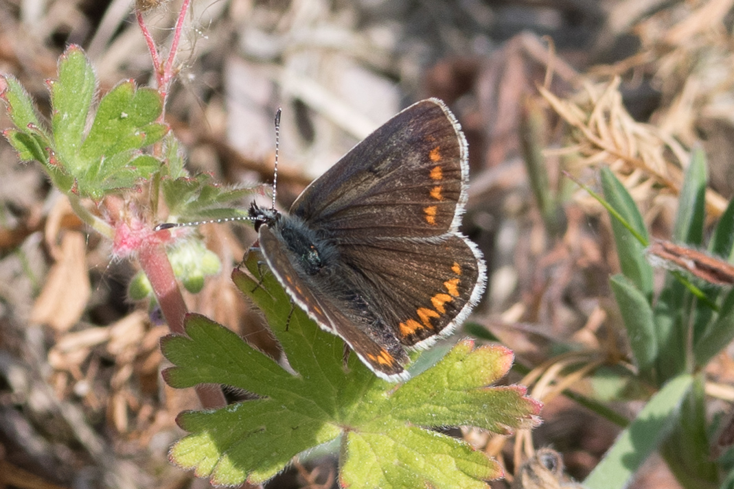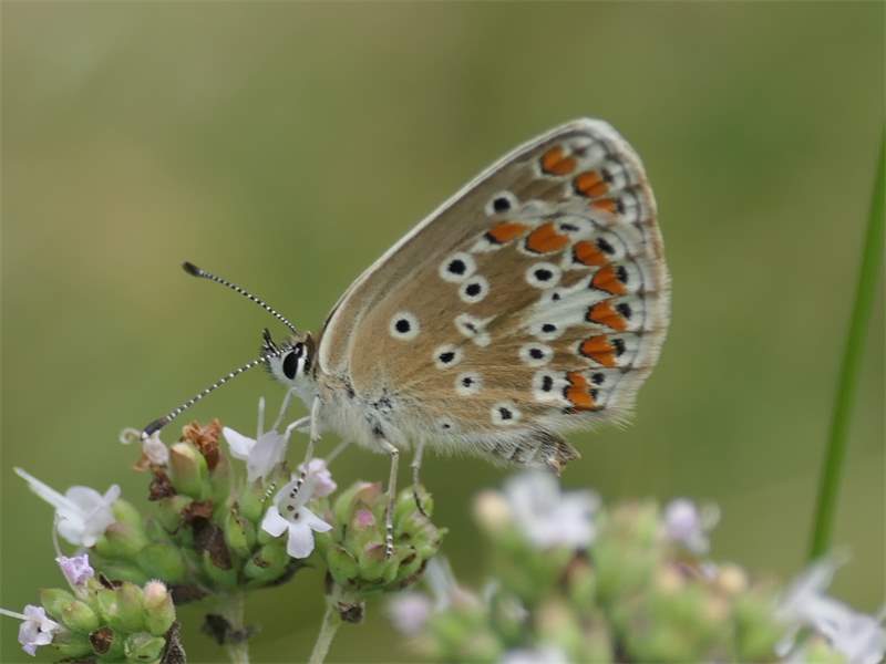 Kleiner Sonnenröschenbläuling (Aricia agestis (Denis & Schiffermüller, 1775)),Freital/Wurgwitz,Hammerteich,Wegrand auf Klee,Sep.2019