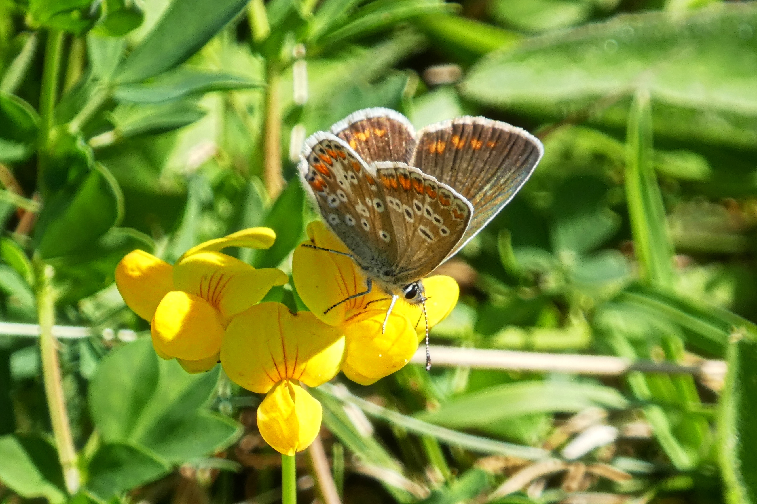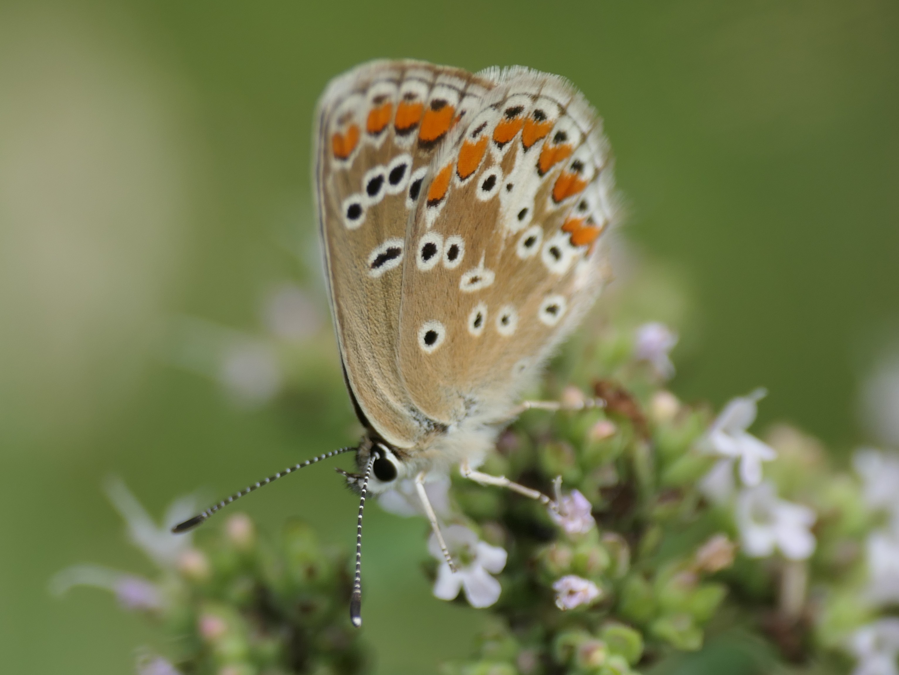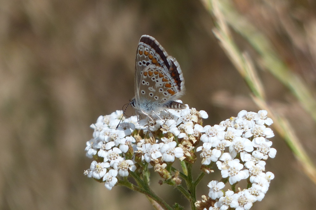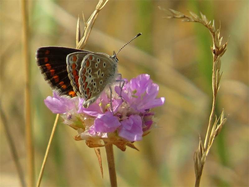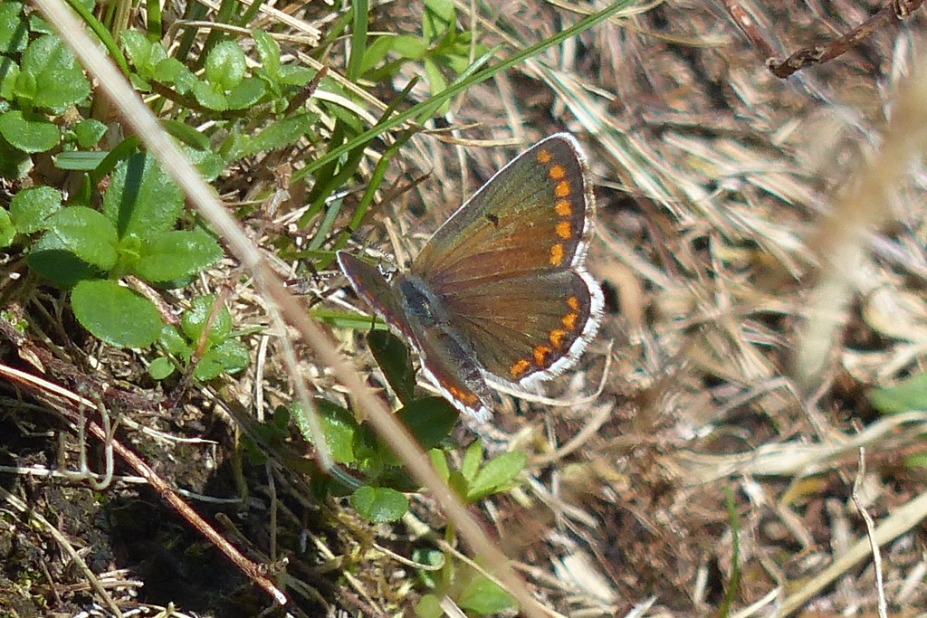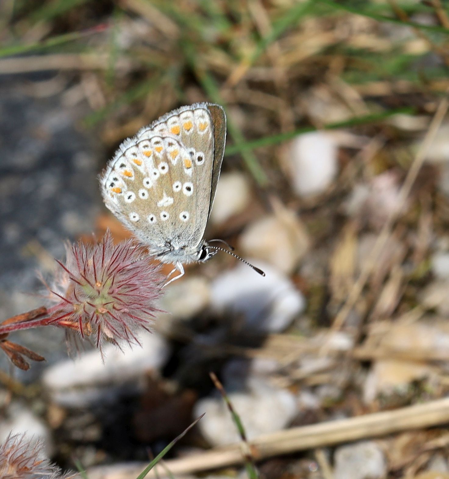 Kleiner Sonnenröschenbläuling (Aricia agestis (Denis & Schiffermüller, 1775)),Freital/Wurgwitz,Hammerteich,Wegrand auf Klee,Sep.2019
