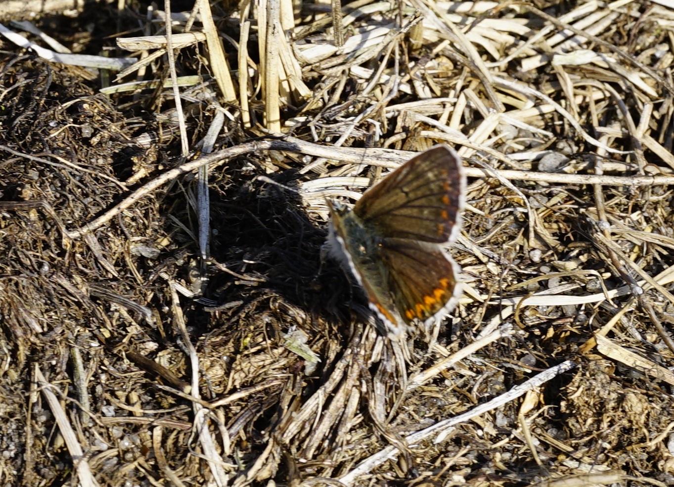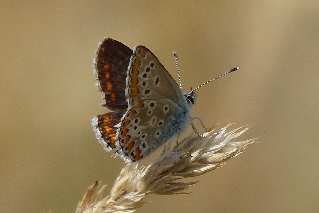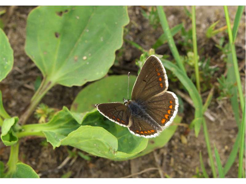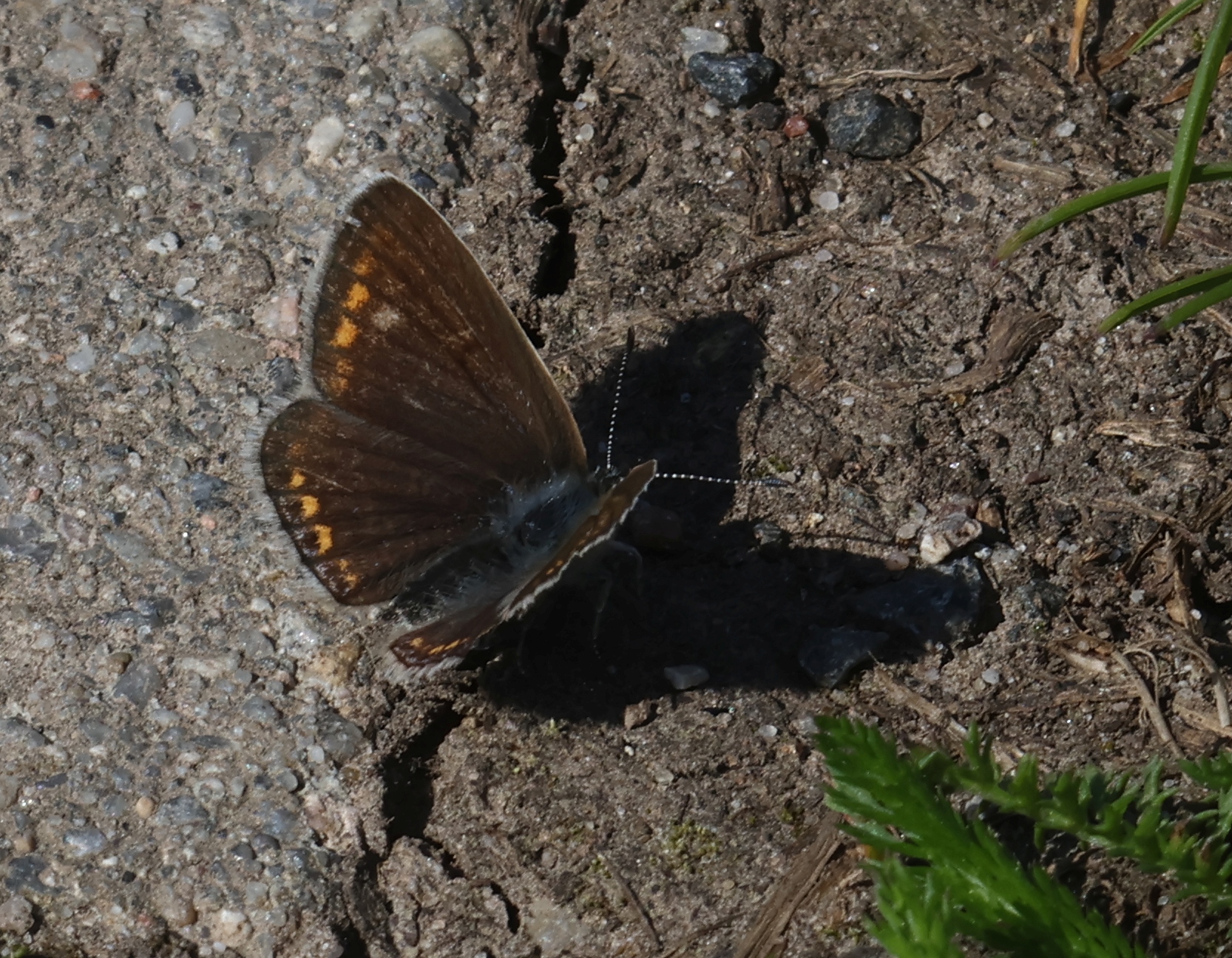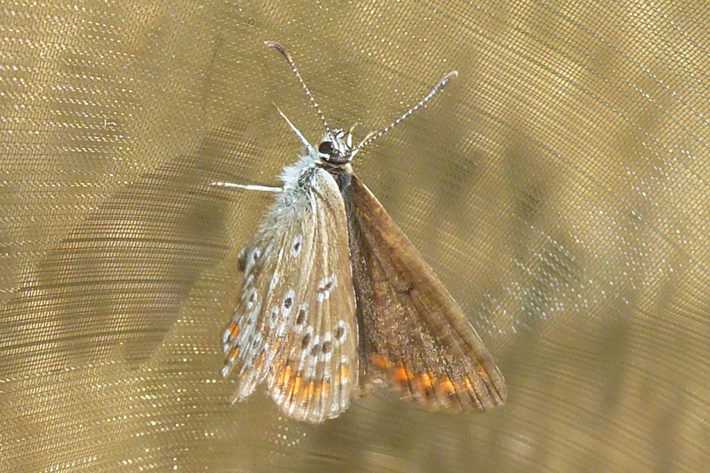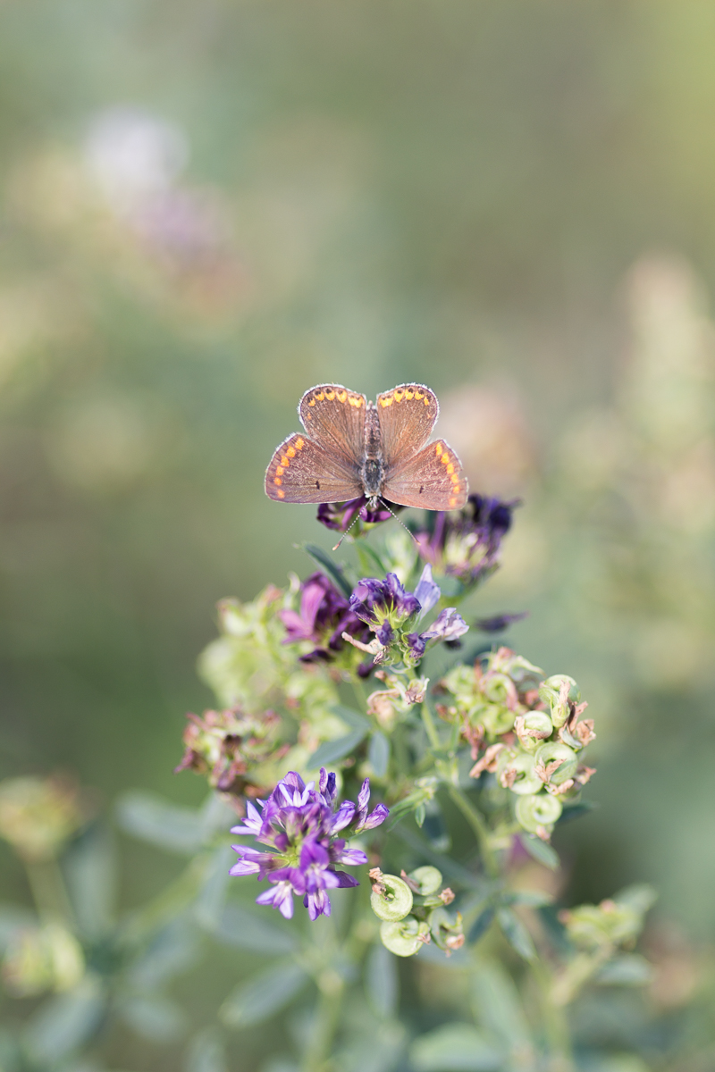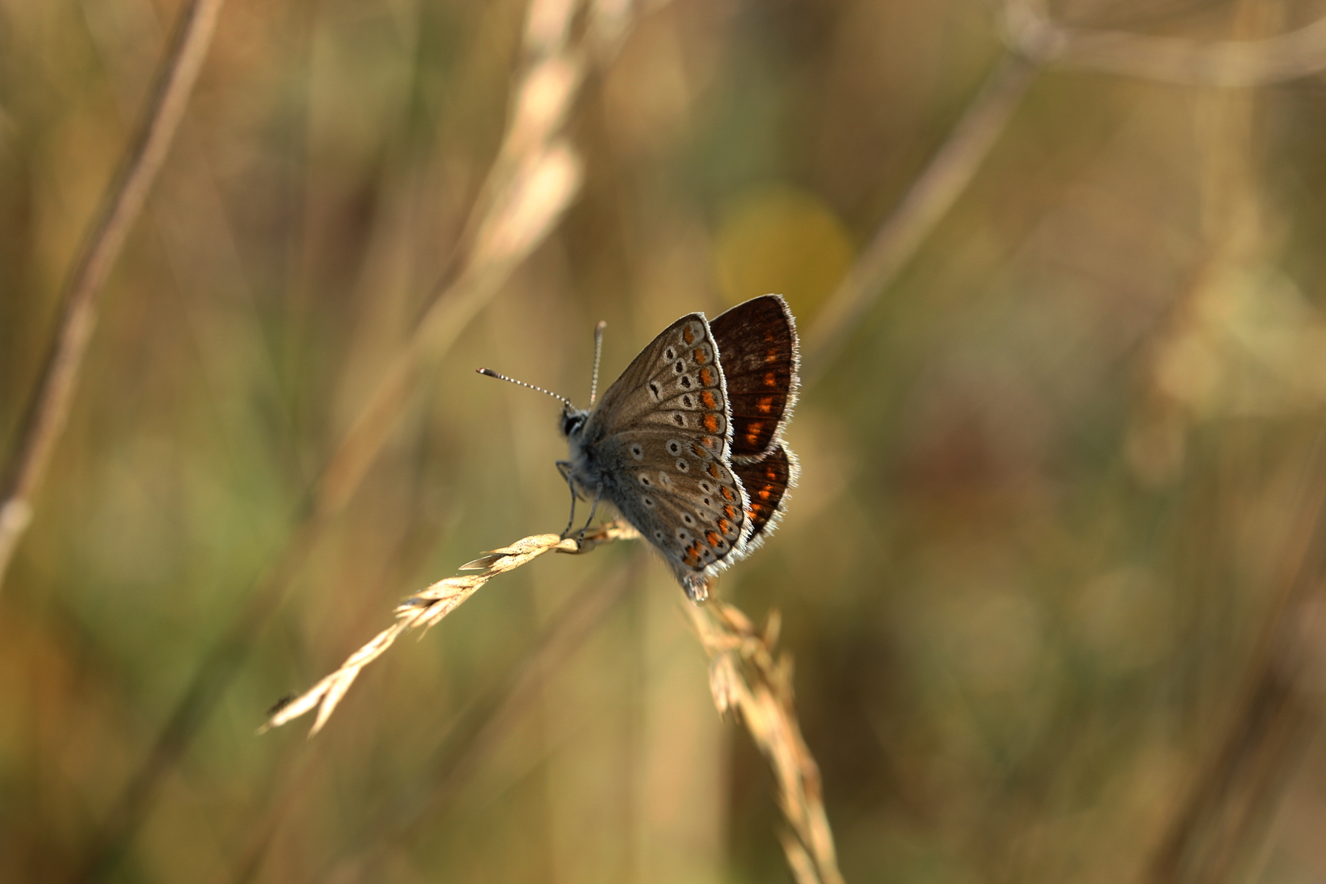 Kleiner Sonnenröschenbläuling (Aricia agestis (Denis & Schiffermüller, 1775)),Freital/Wurgwitz,Hammerteich,Wegrand auf Klee,Sep.2019