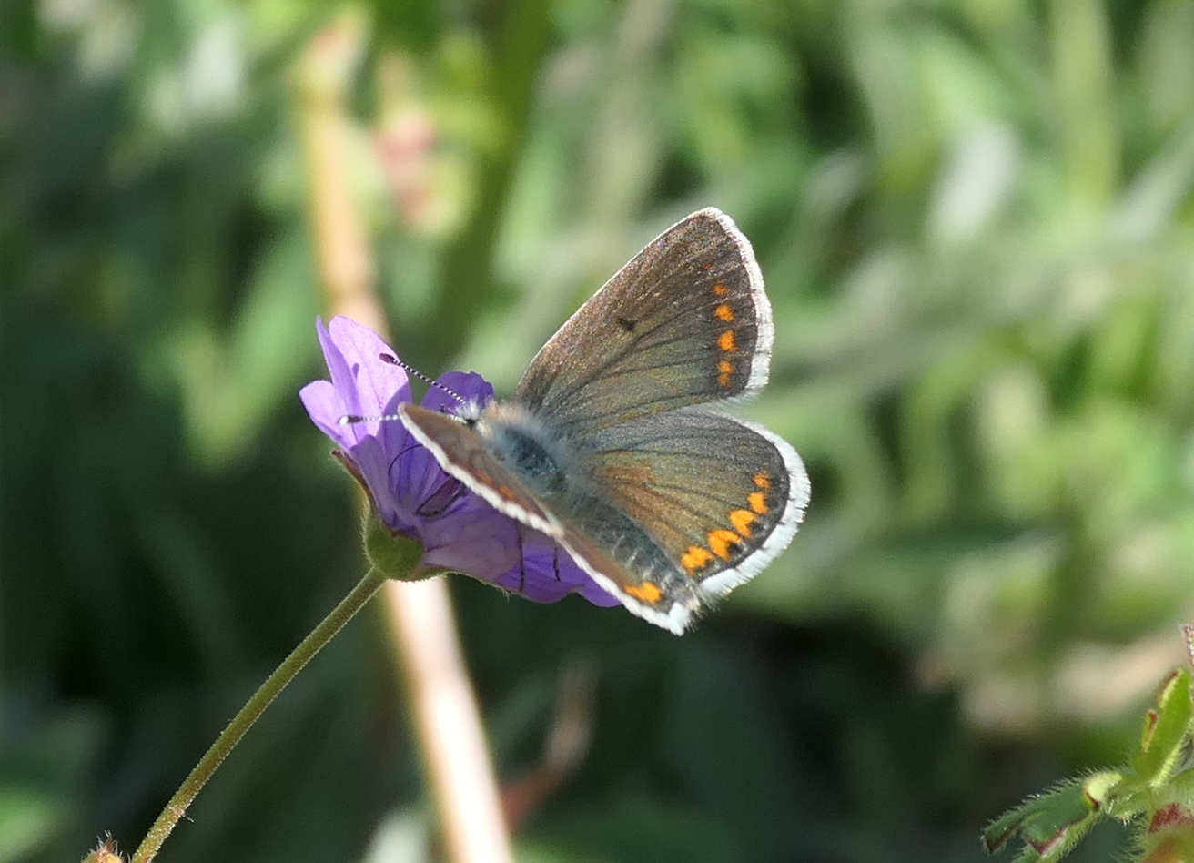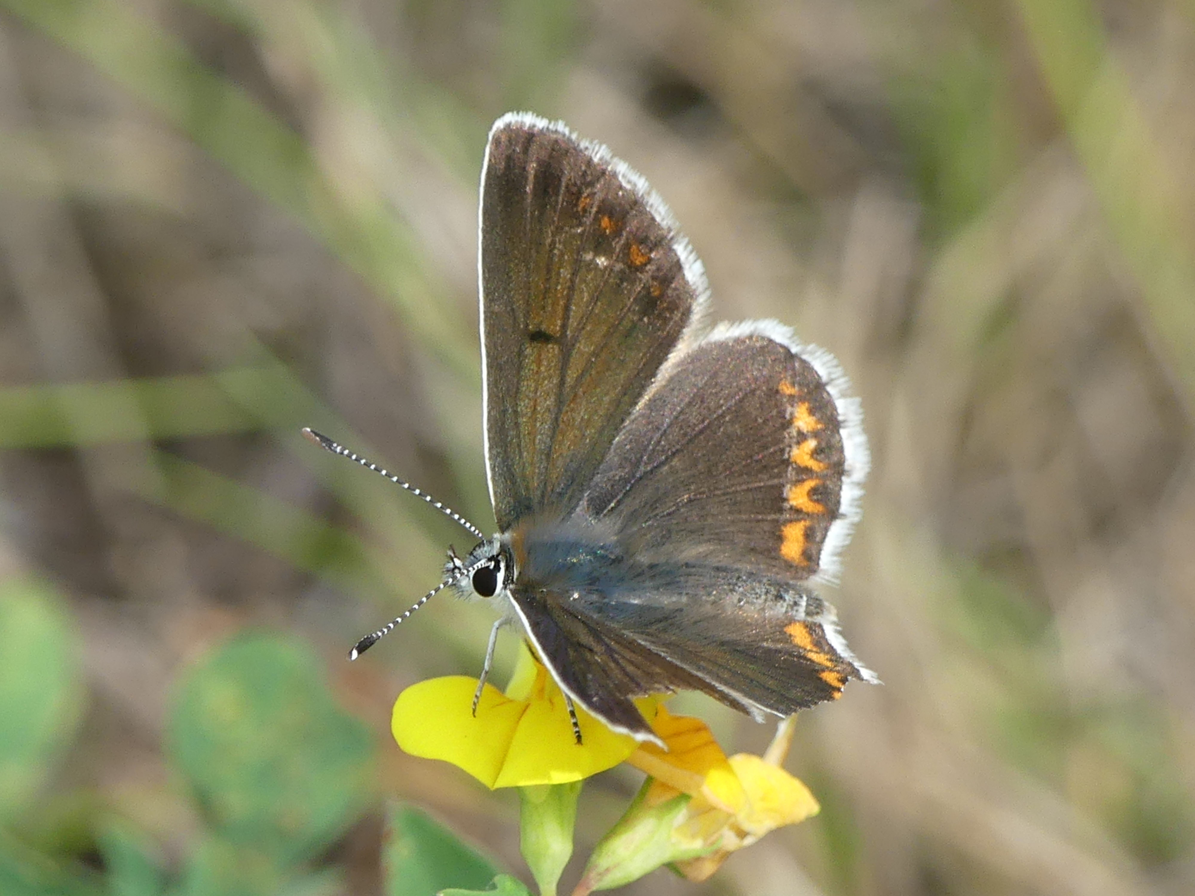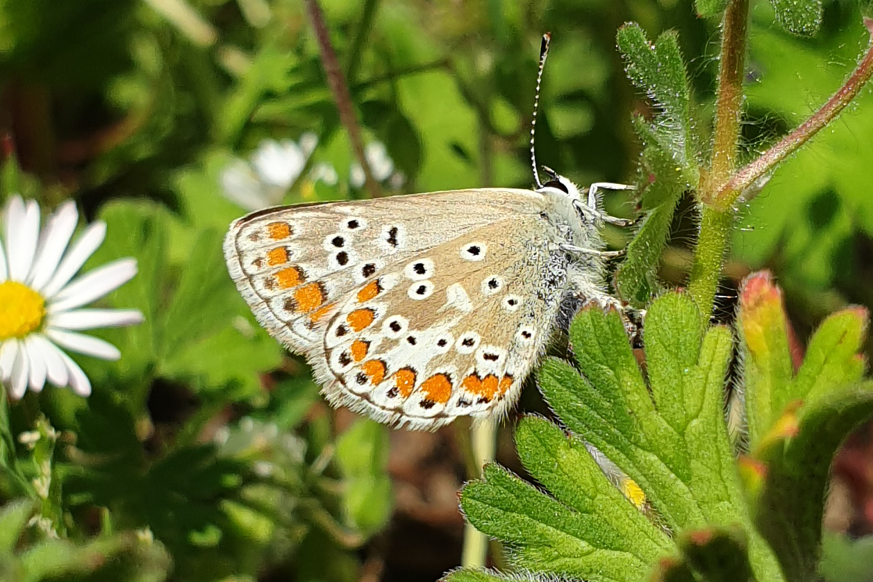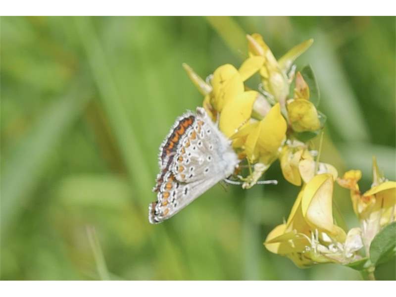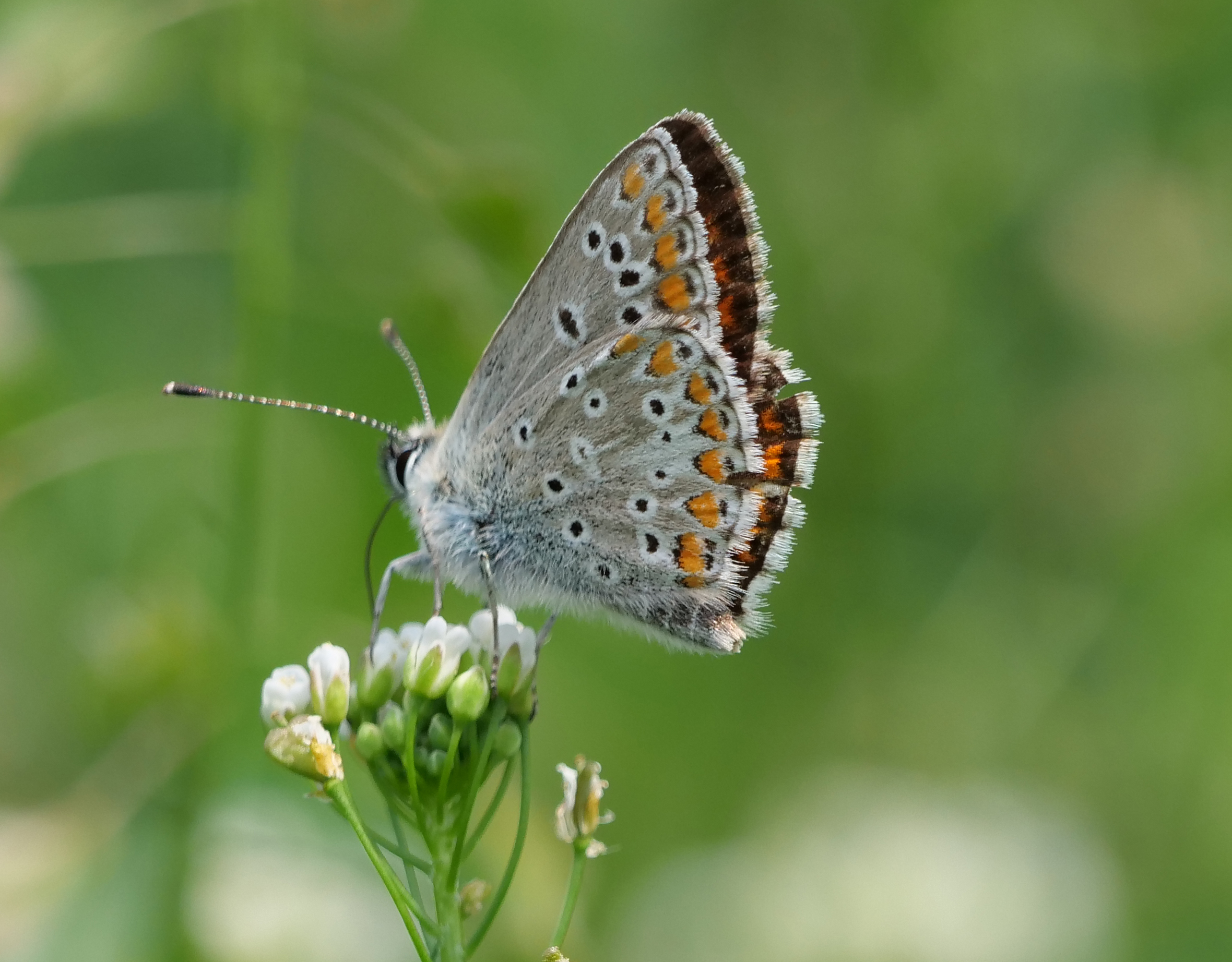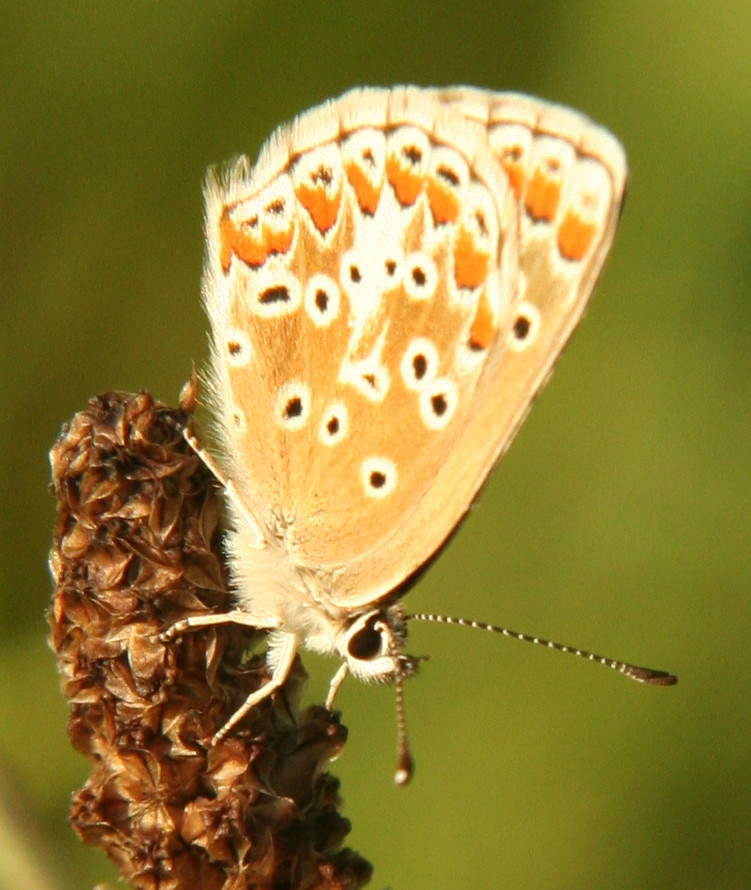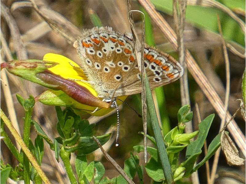 Kleiner Sonnenröschenbläuling (Aricia agestis (Denis & Schiffermüller, 1775)),Freital/Wurgwitz,Hammerteich,Wegrand auf Klee,Sep.2019