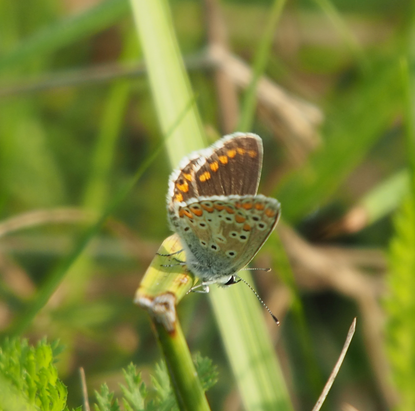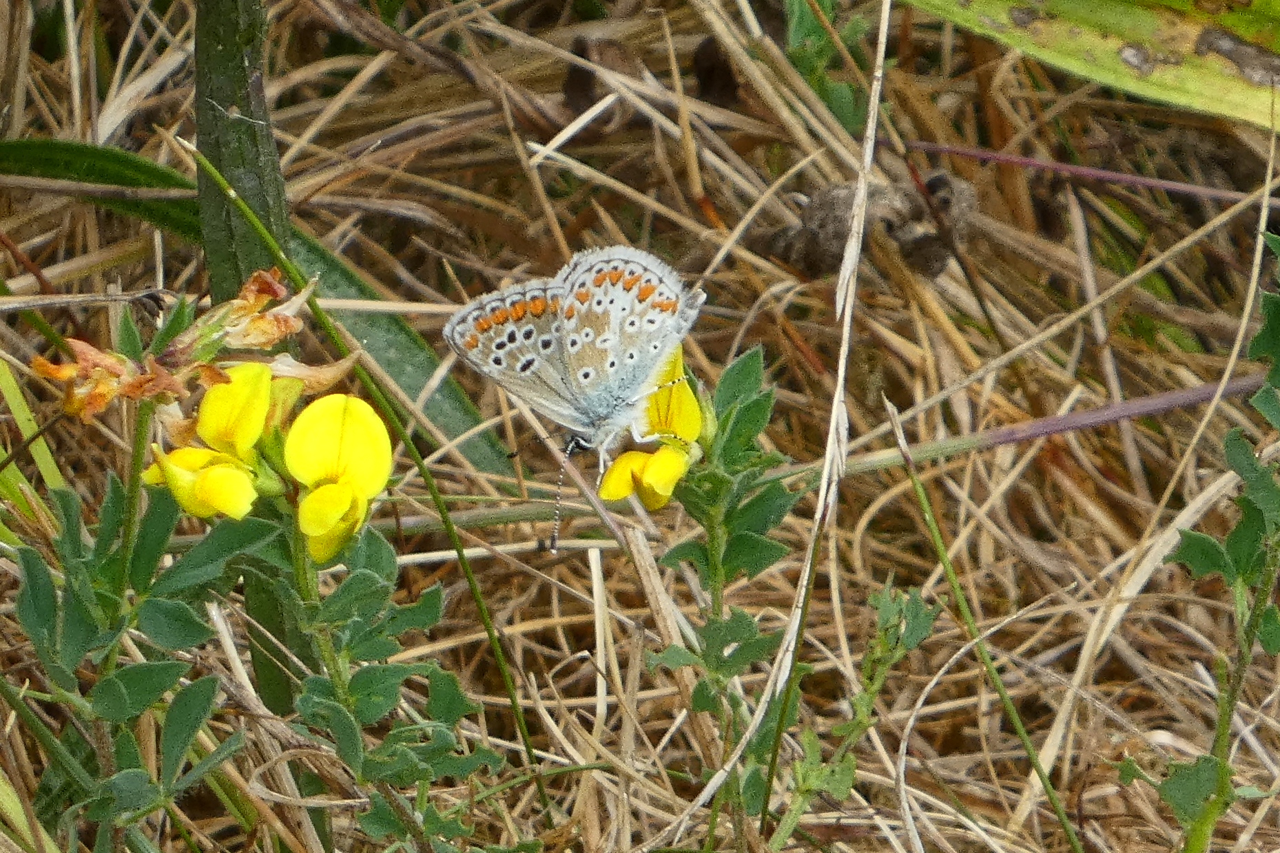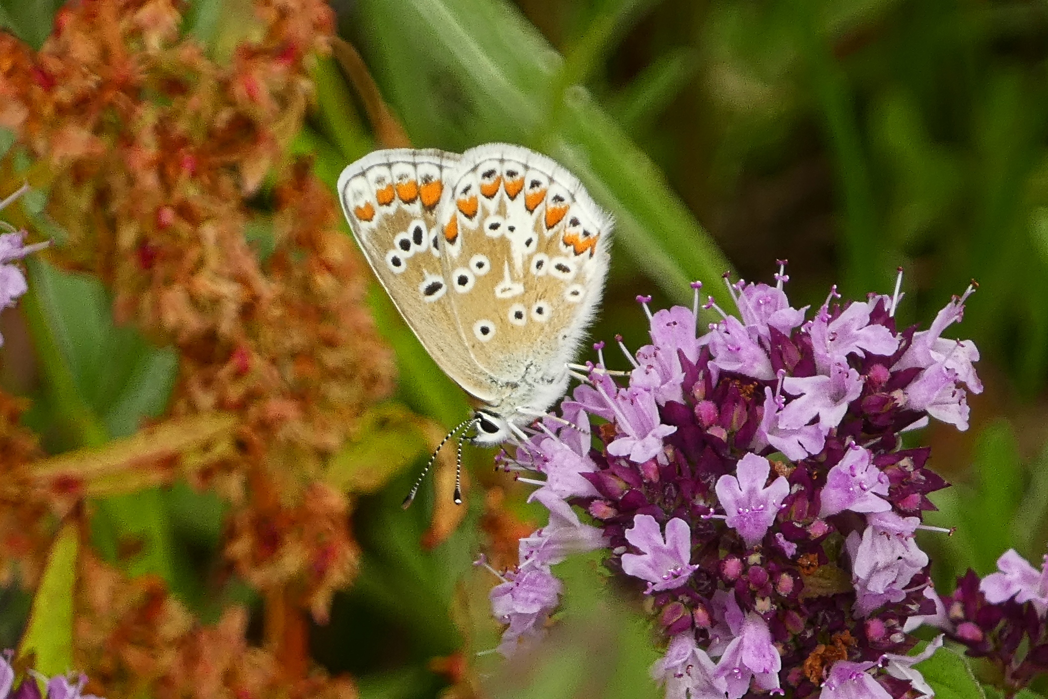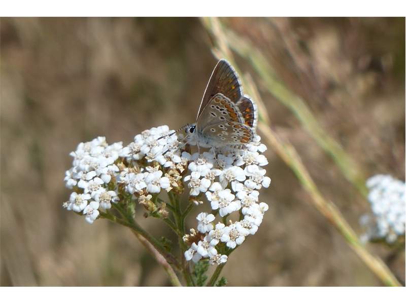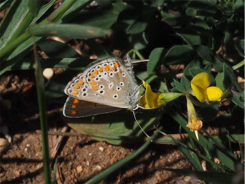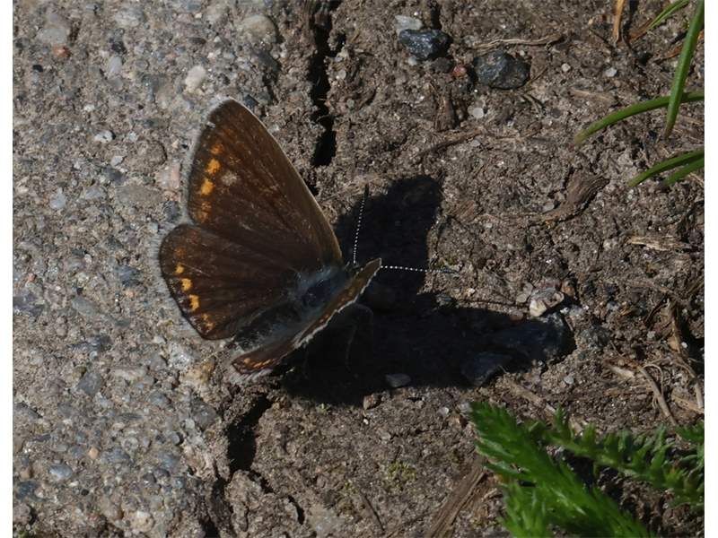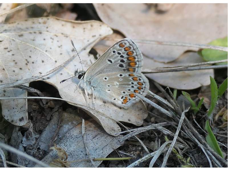Kleiner Sonnenröschenbläuling (Aricia agestis (Denis & Schiffermüller, 1775)),Freital/Wurgwitz,Hammerteich,Wegrand auf Klee,Sep.2019