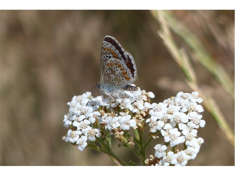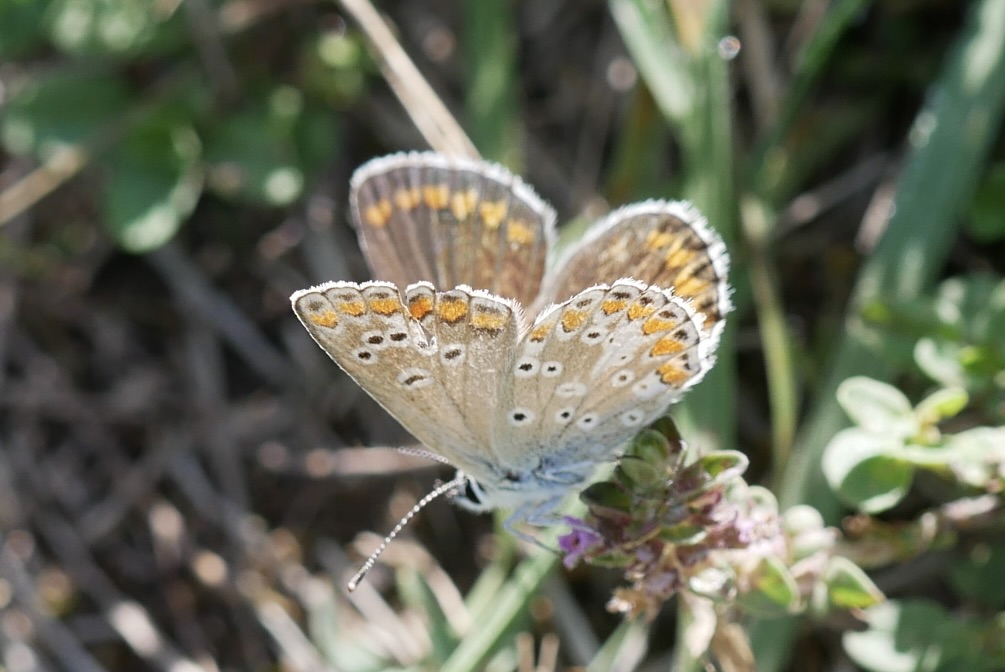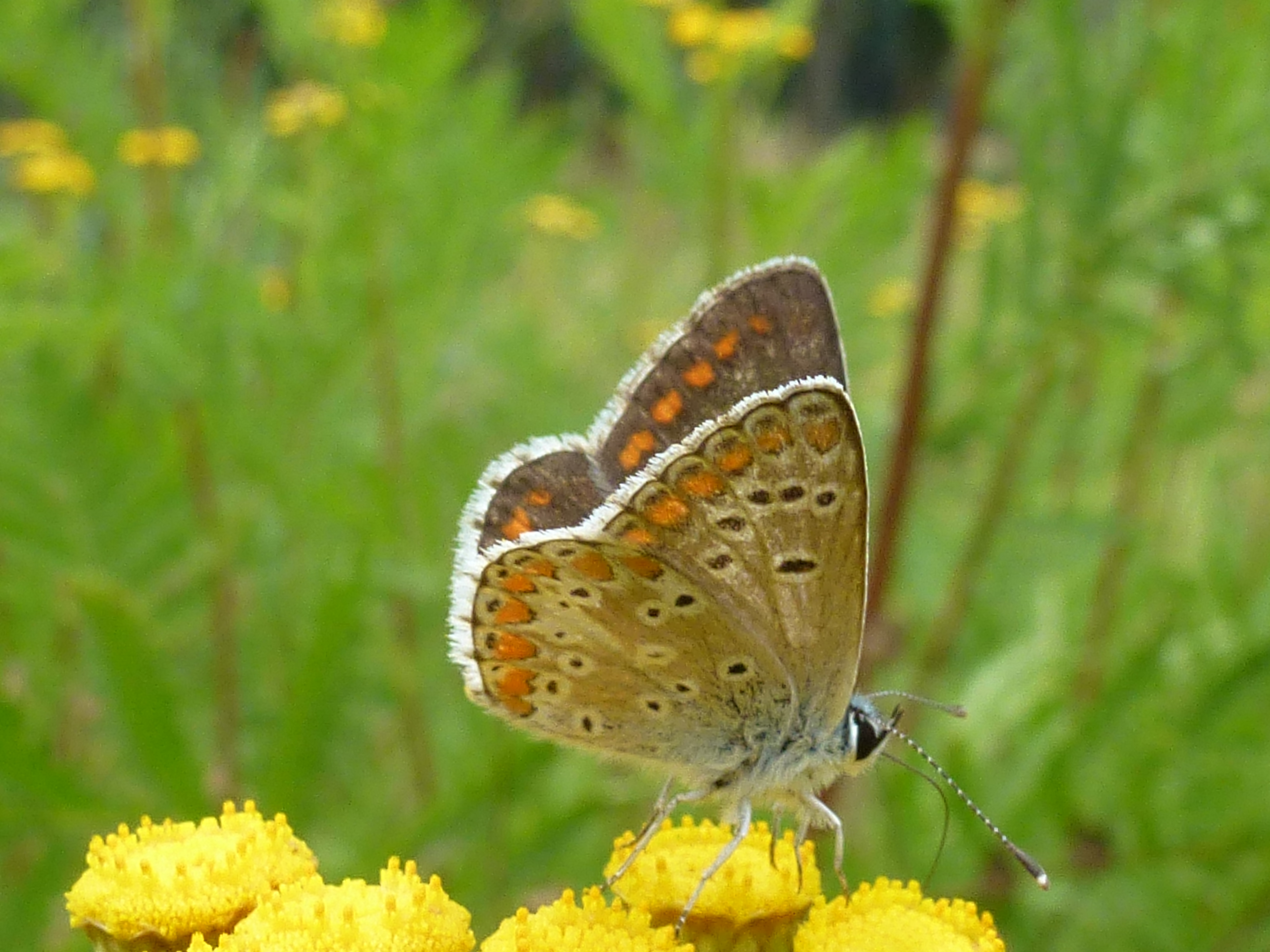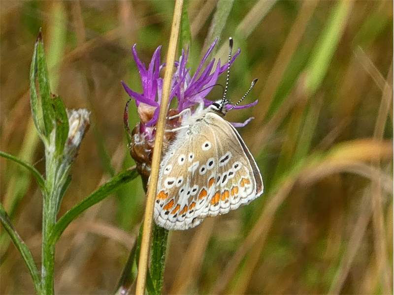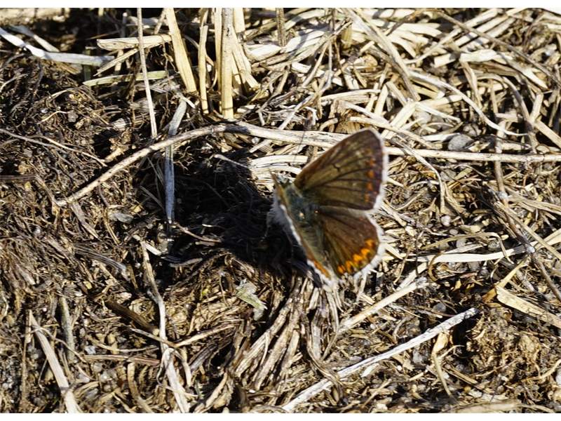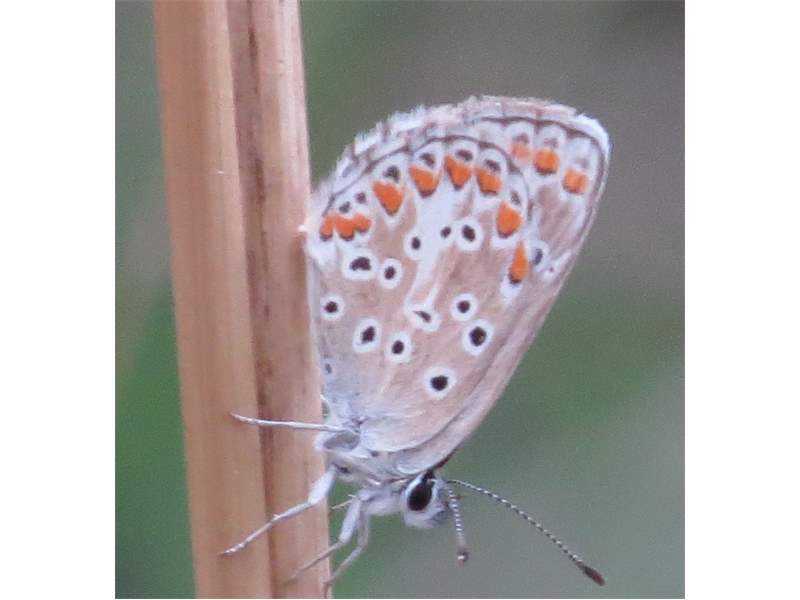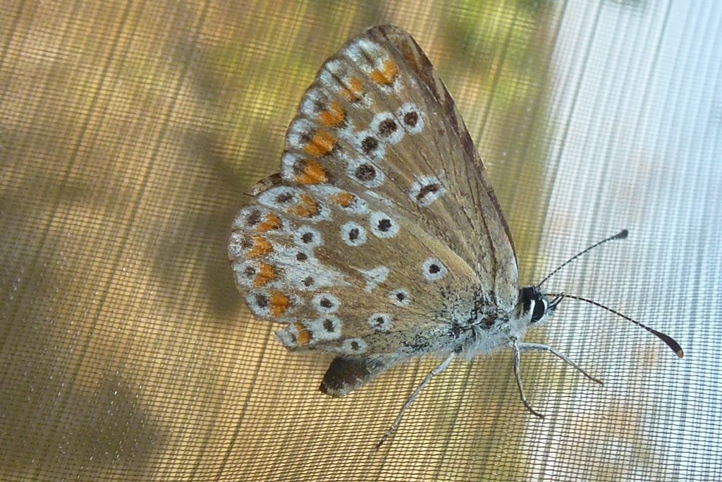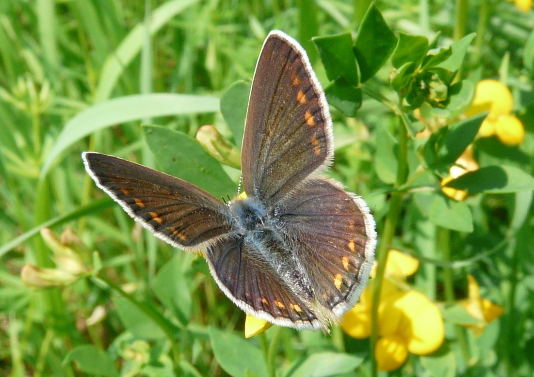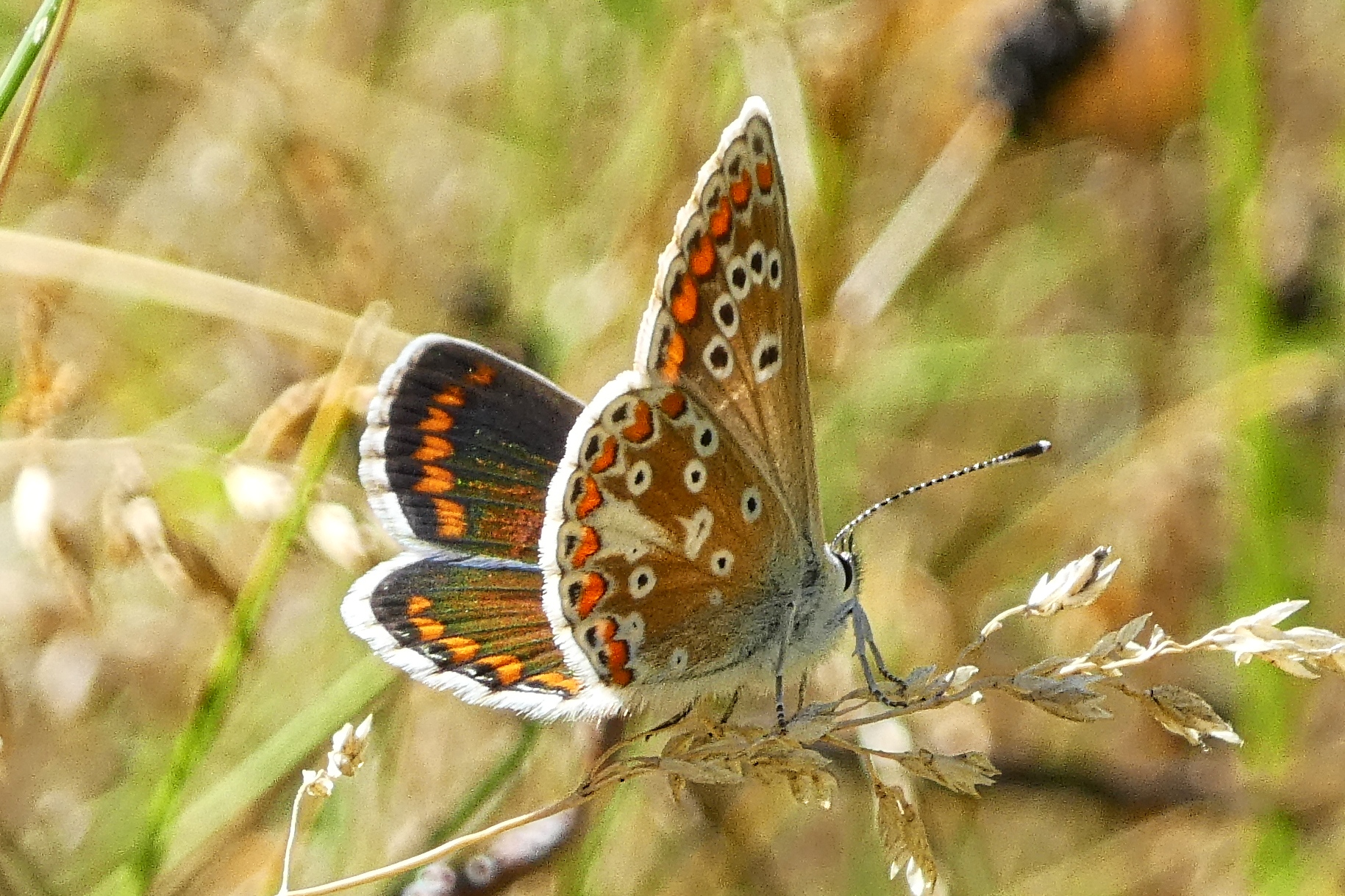Kleiner Sonnenröschenbläuling (Aricia agestis (Denis & Schiffermüller, 1775)),Freital/Wurgwitz,Hammerteich,Wegrand auf Klee,Sep.2019