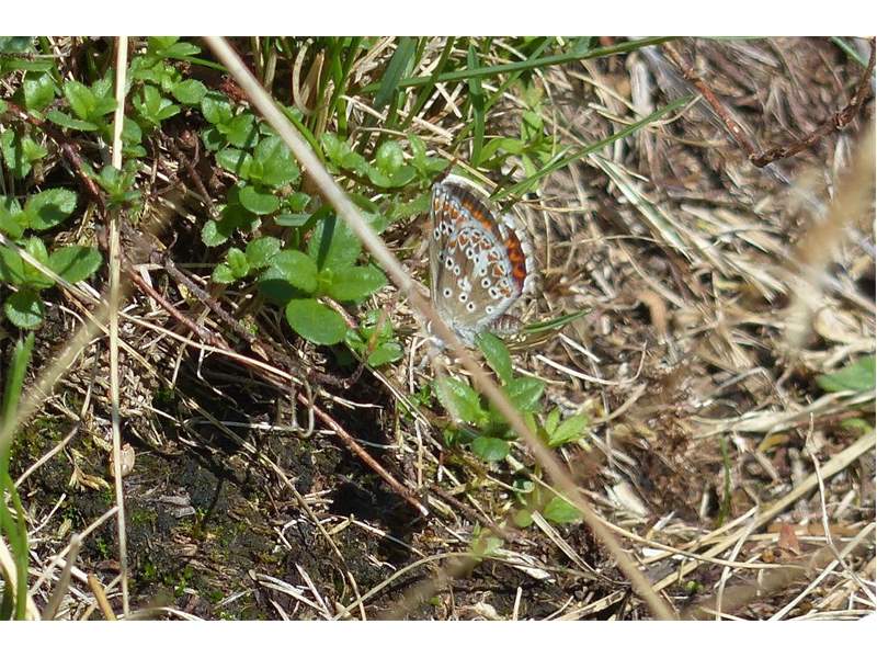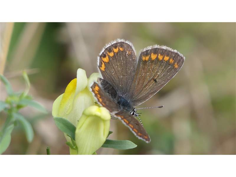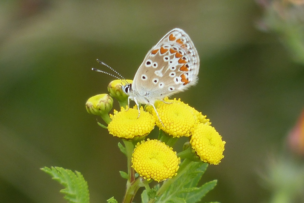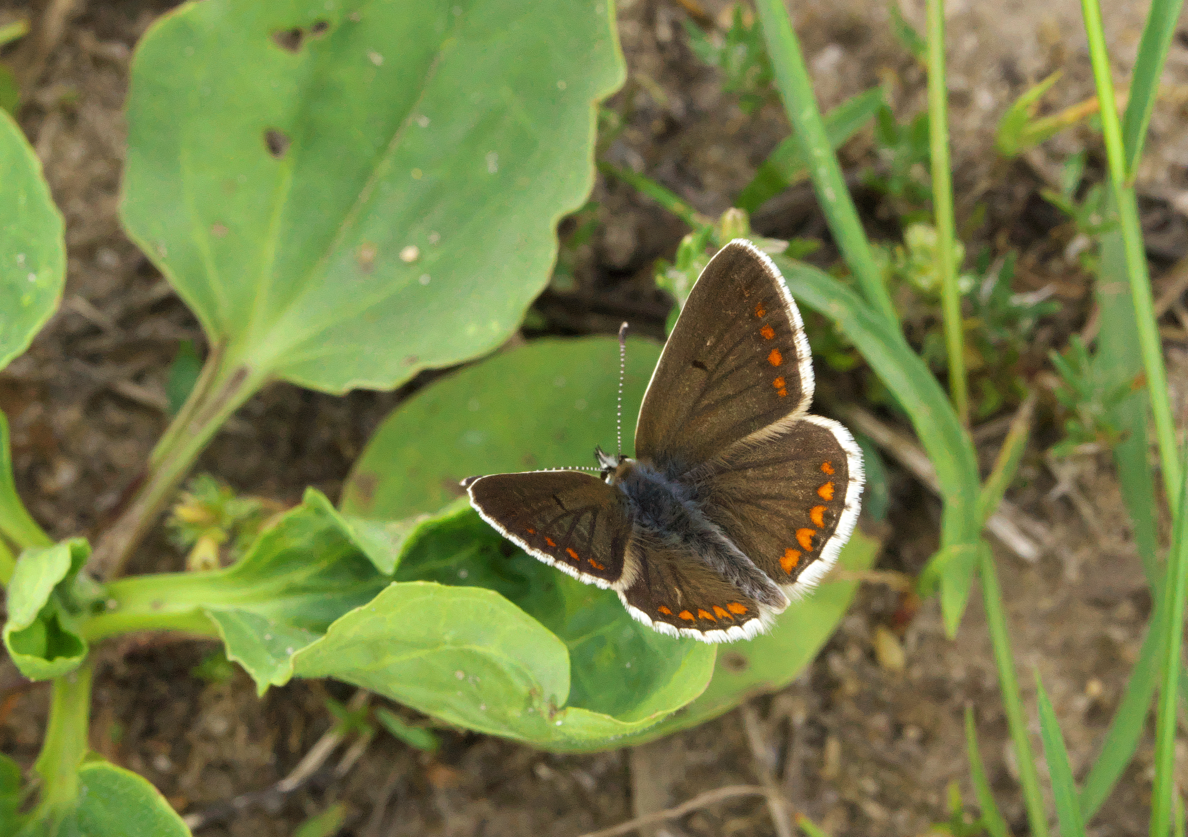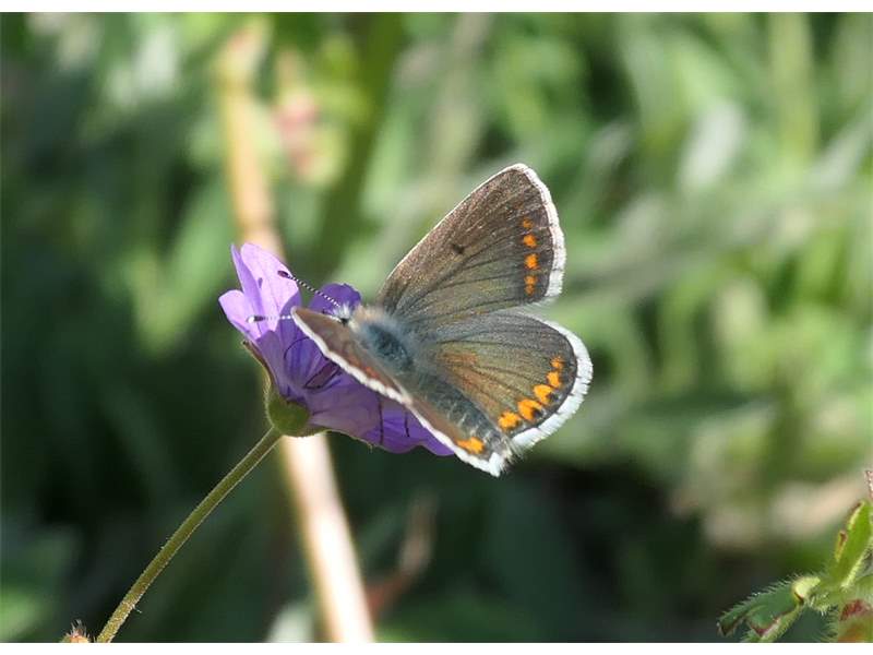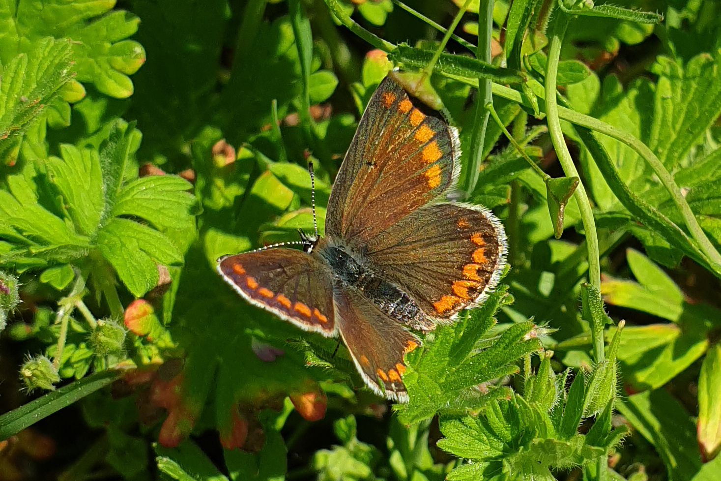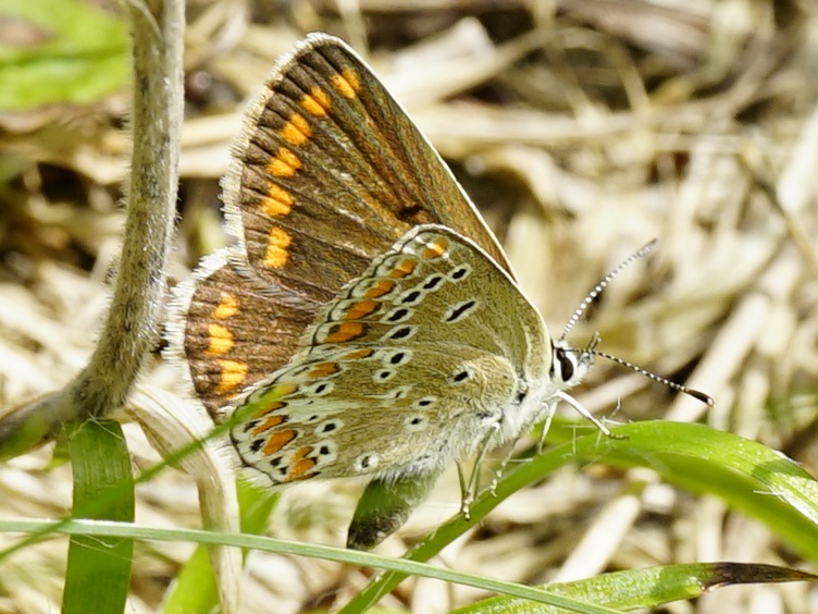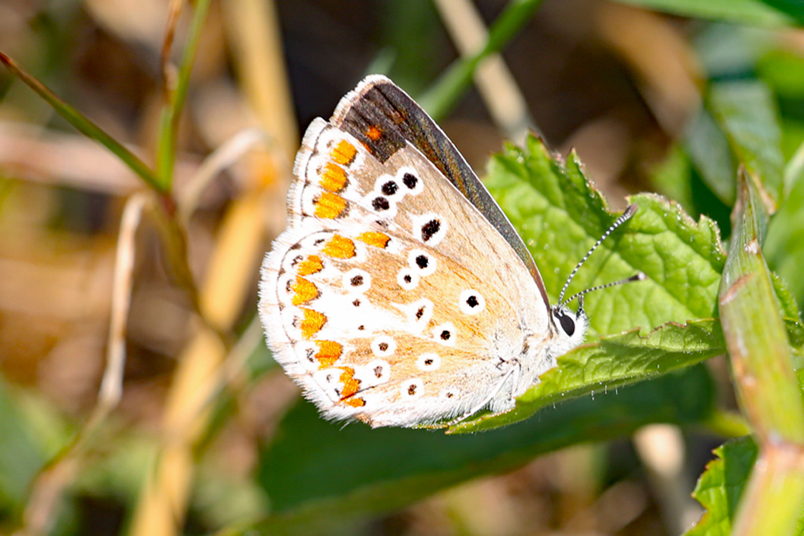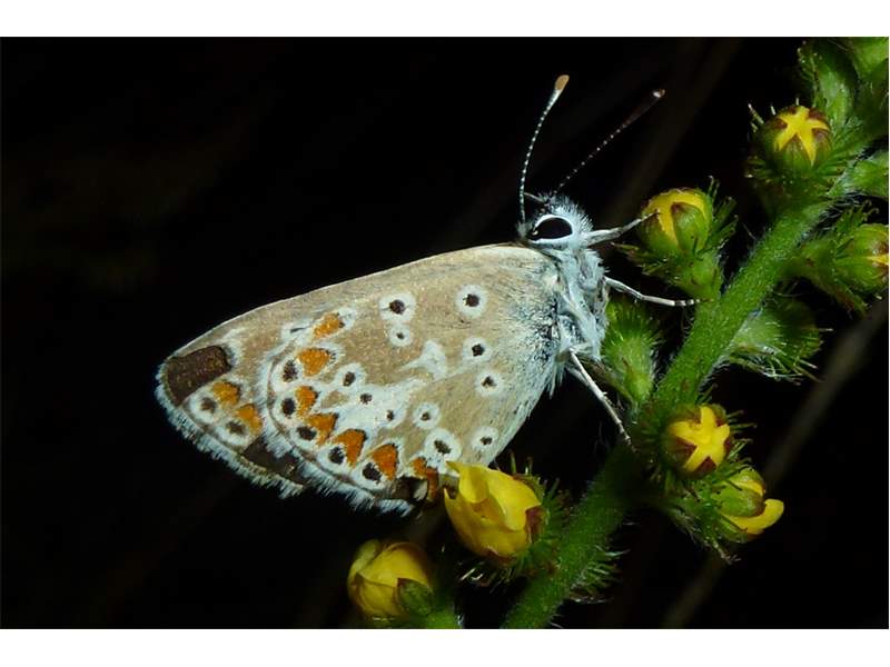 Kleiner Sonnenröschenbläuling (Aricia agestis (Denis & Schiffermüller, 1775)),Freital/Wurgwitz,Hammerteich,Wegrand auf Klee,Sep.2019