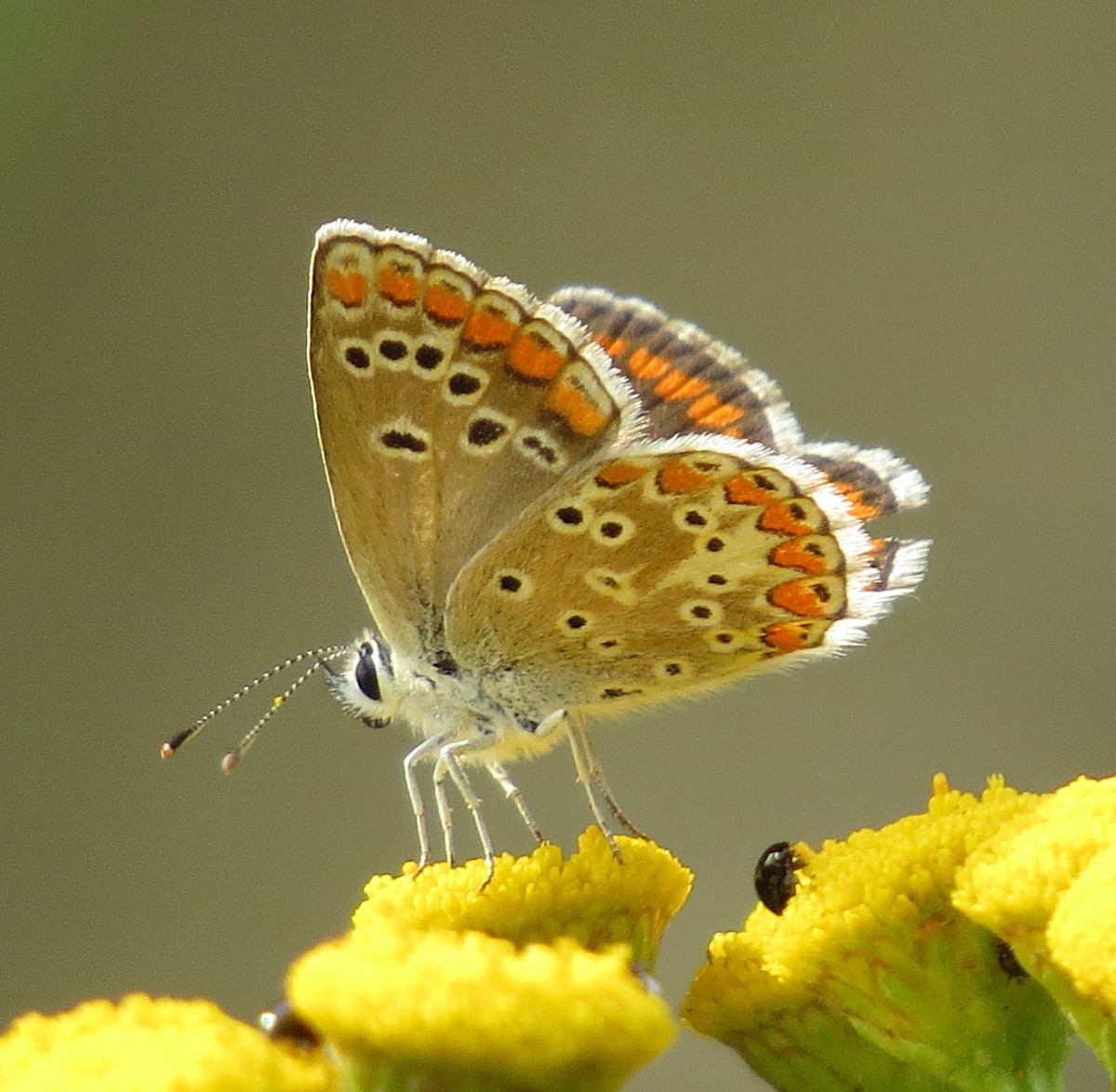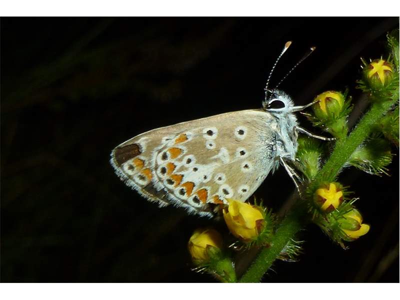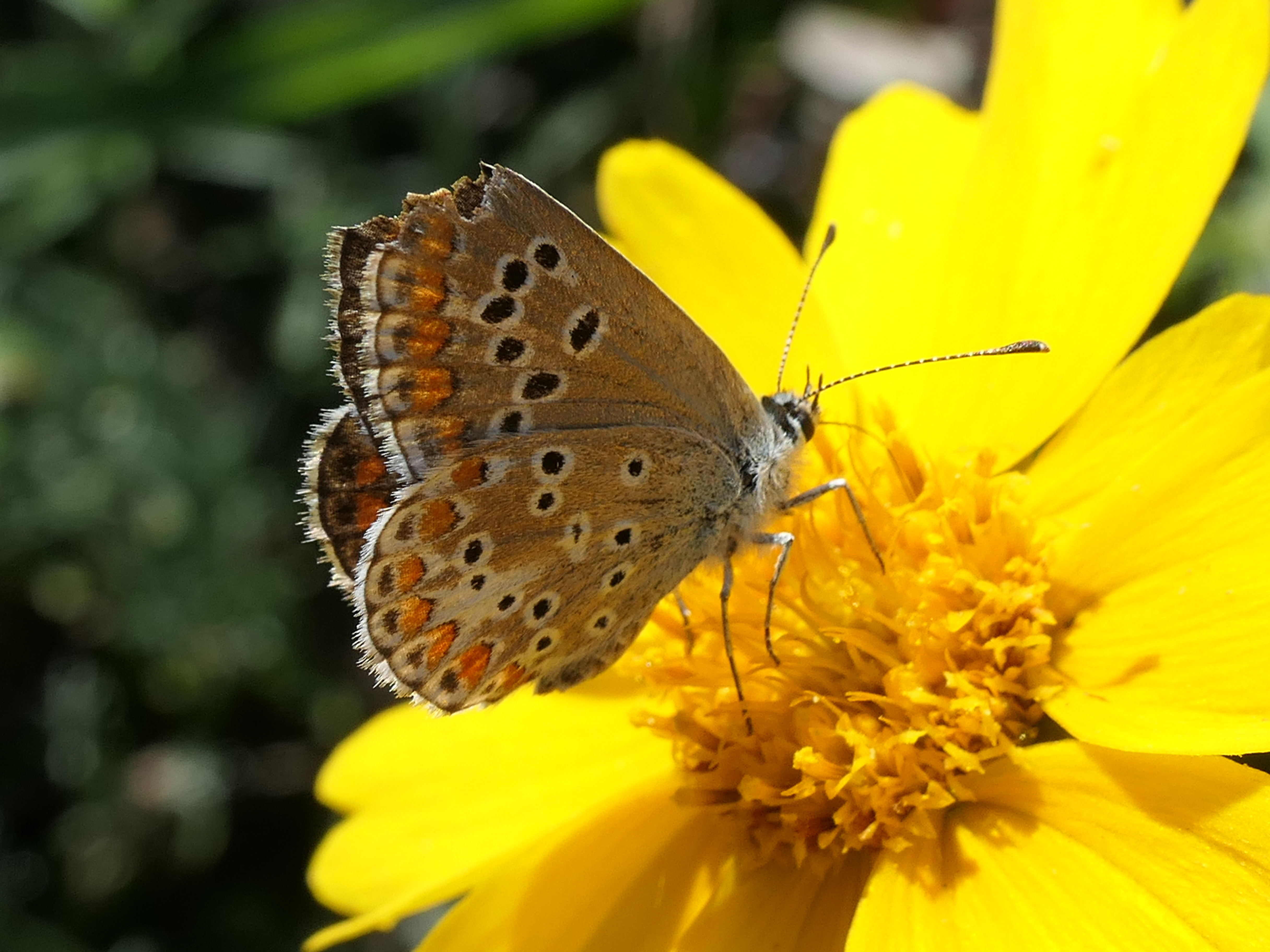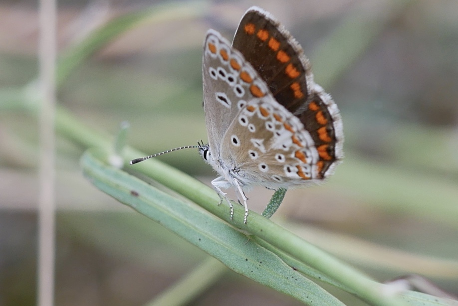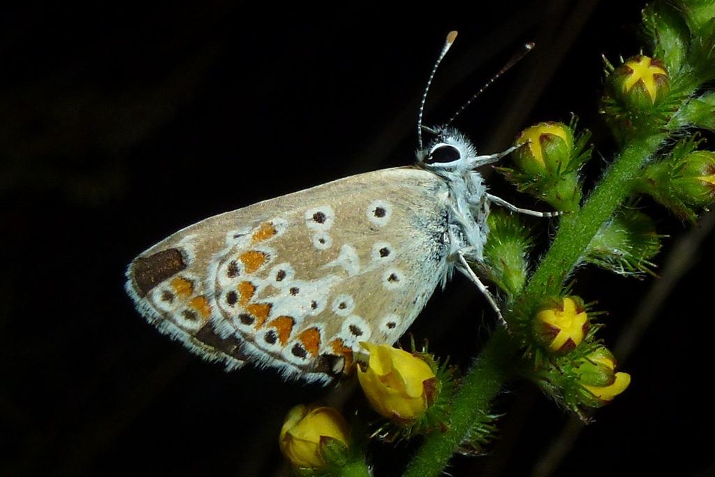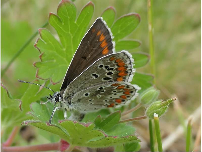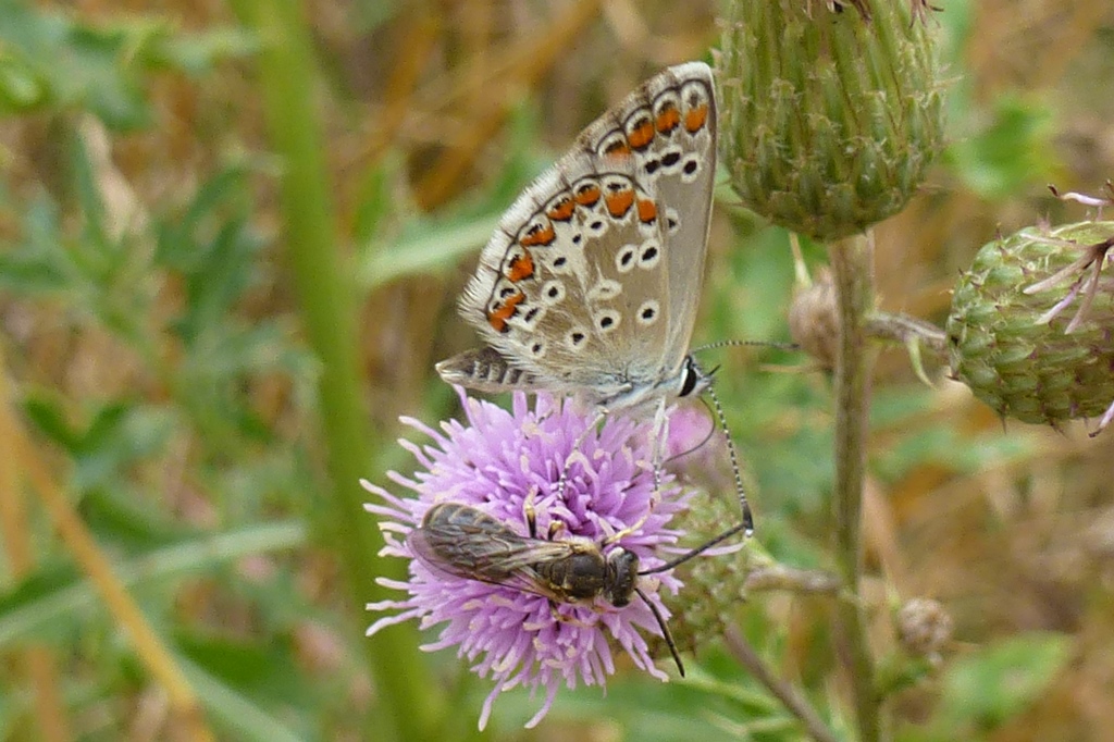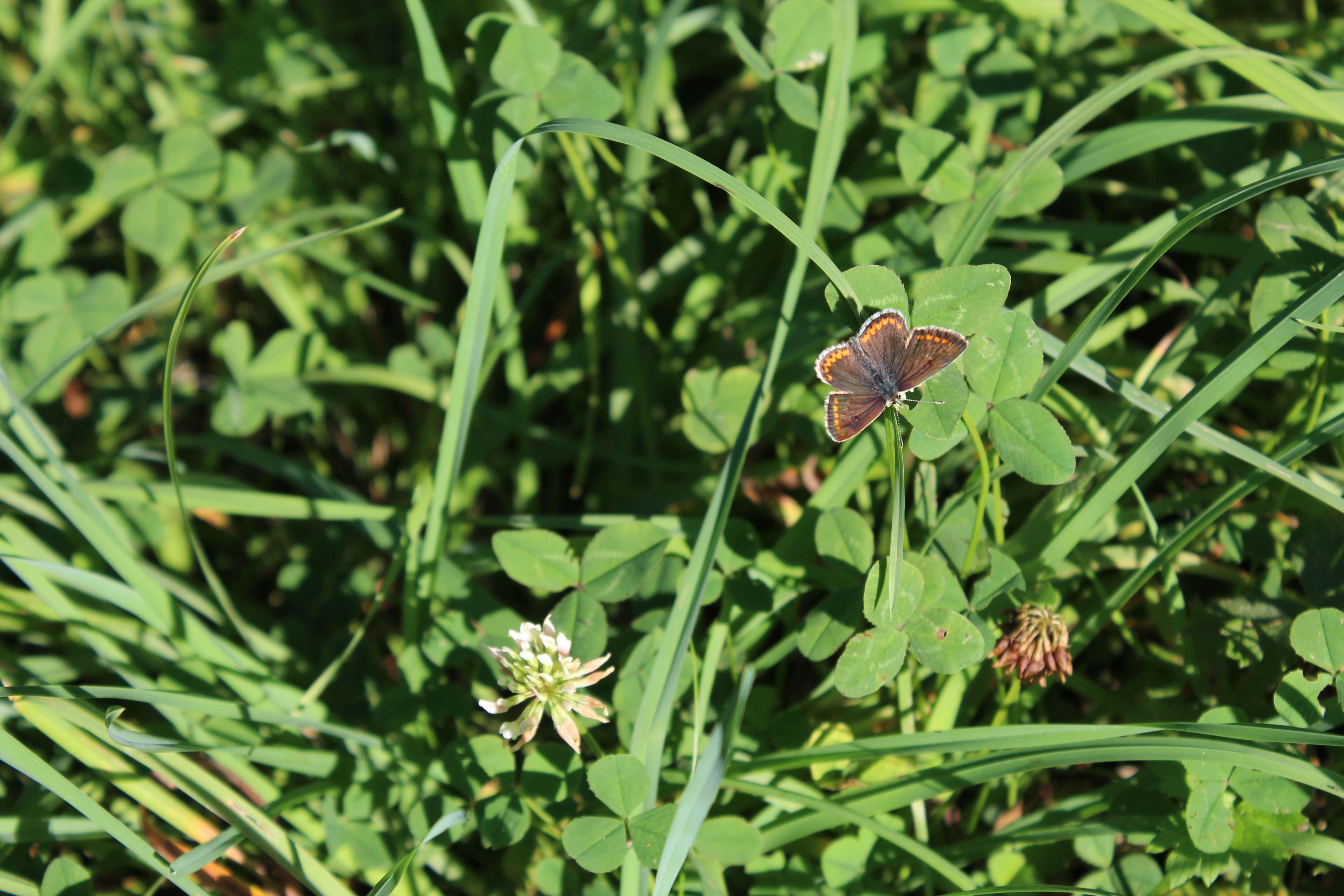 Kleiner Sonnenröschenbläuling (Aricia agestis (Denis & Schiffermüller, 1775)),Freital/Wurgwitz,Hammerteich,Wegrand auf Klee,Sep.2019