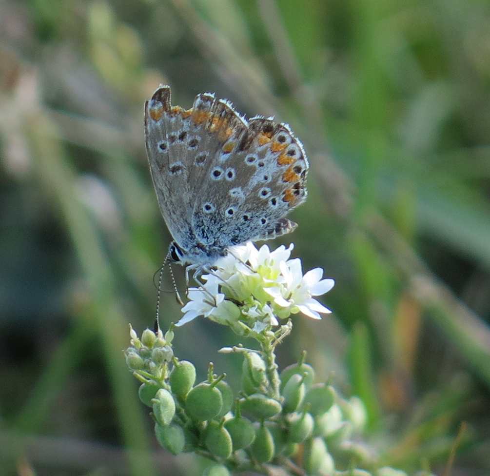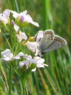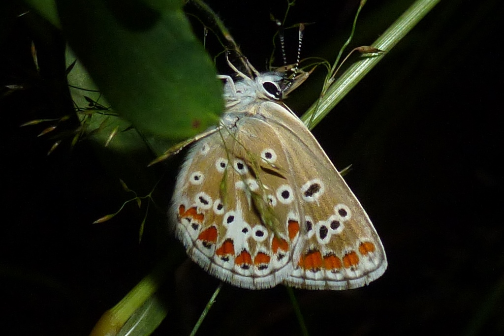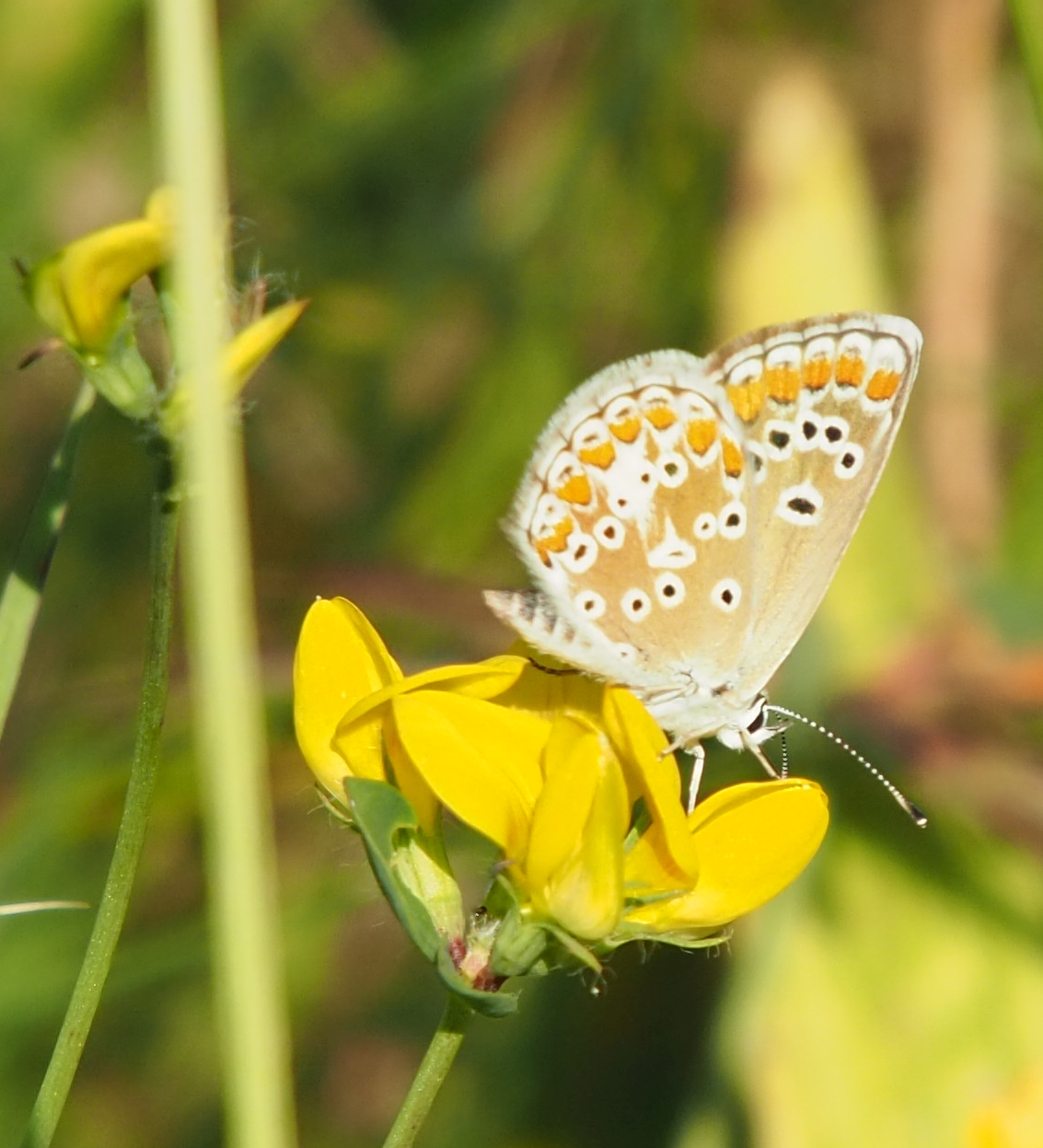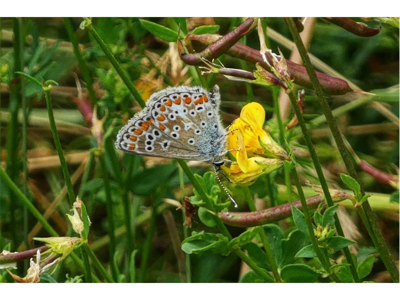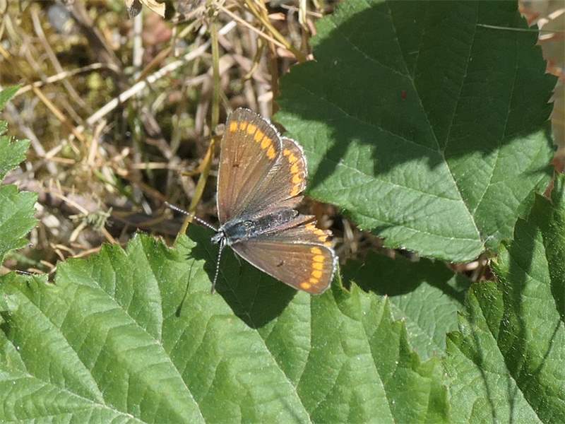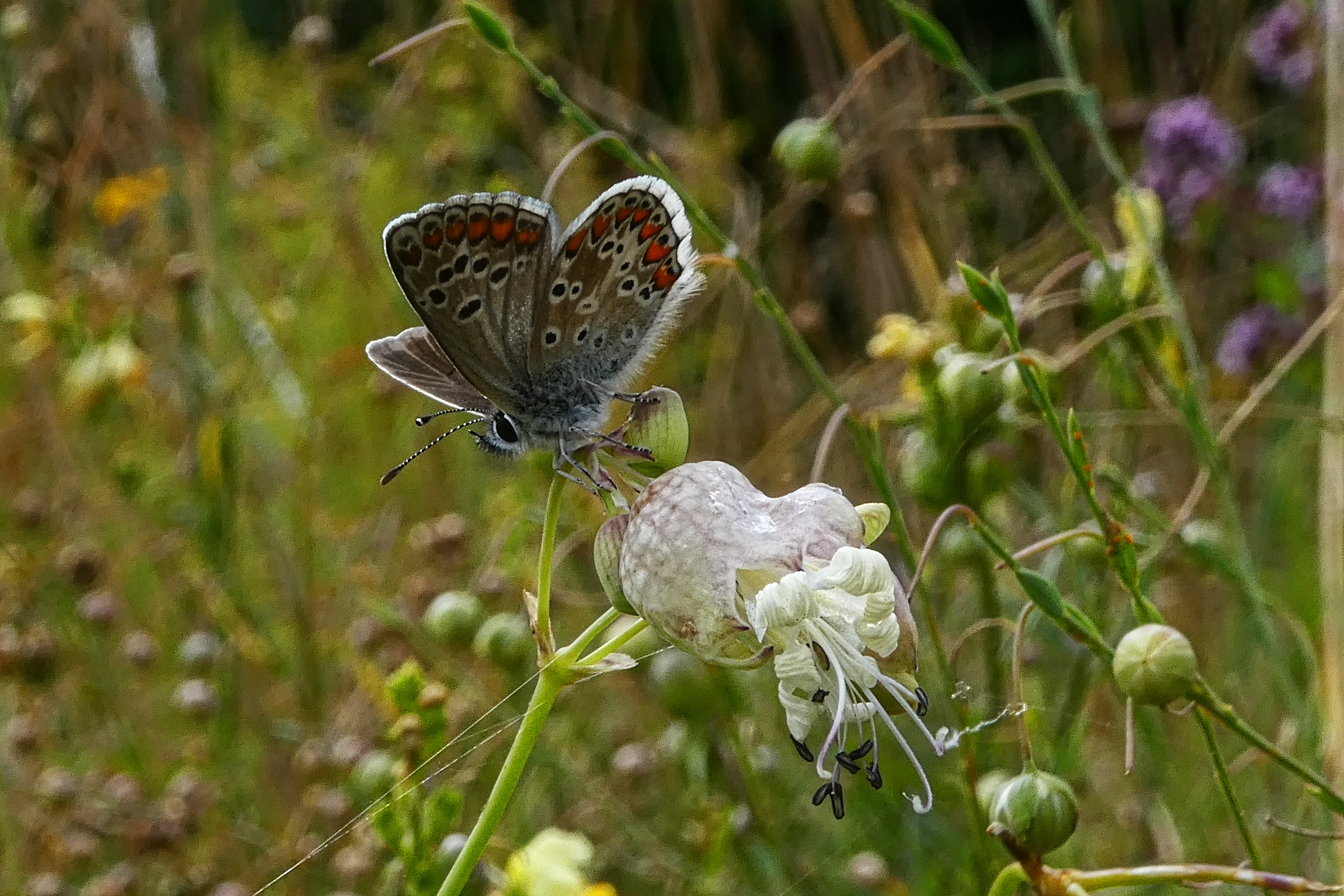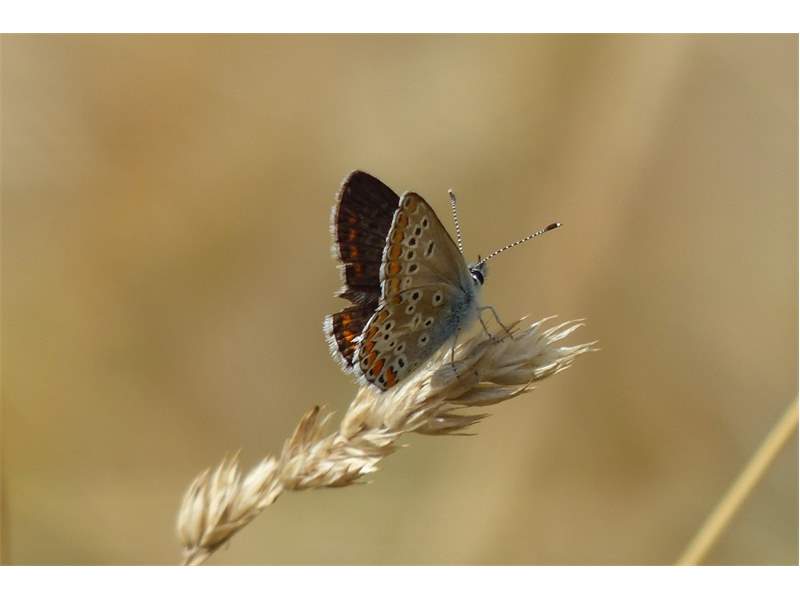 Kleiner Sonnenröschenbläuling (Aricia agestis (Denis & Schiffermüller, 1775)),Freital/Wurgwitz,Hammerteich,Wegrand auf Klee,Sep.2019