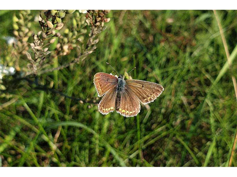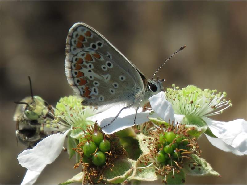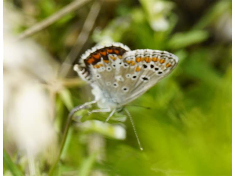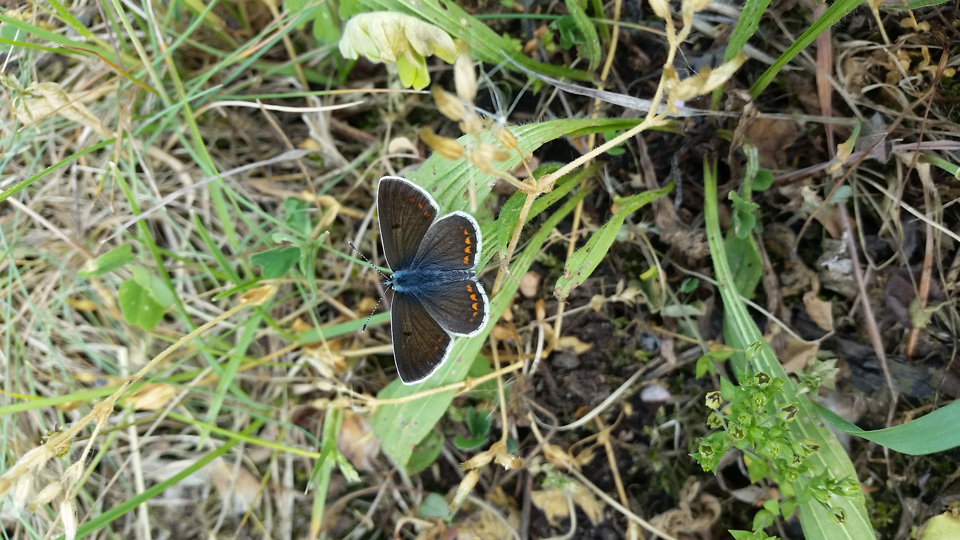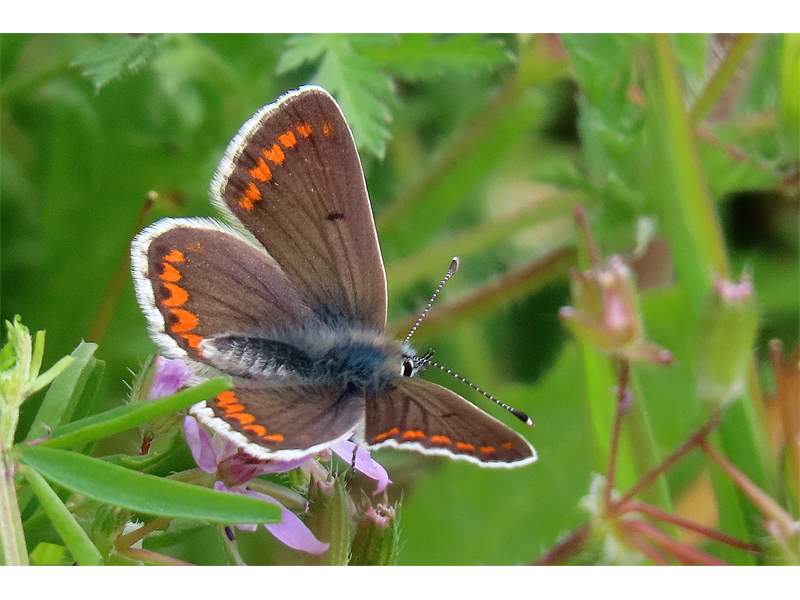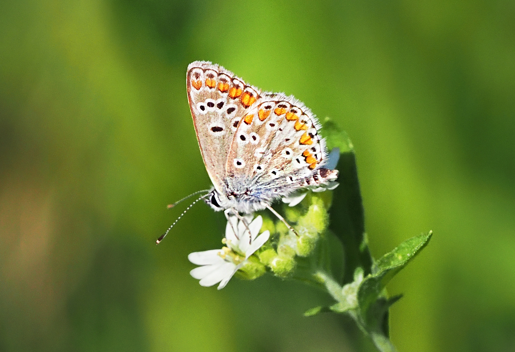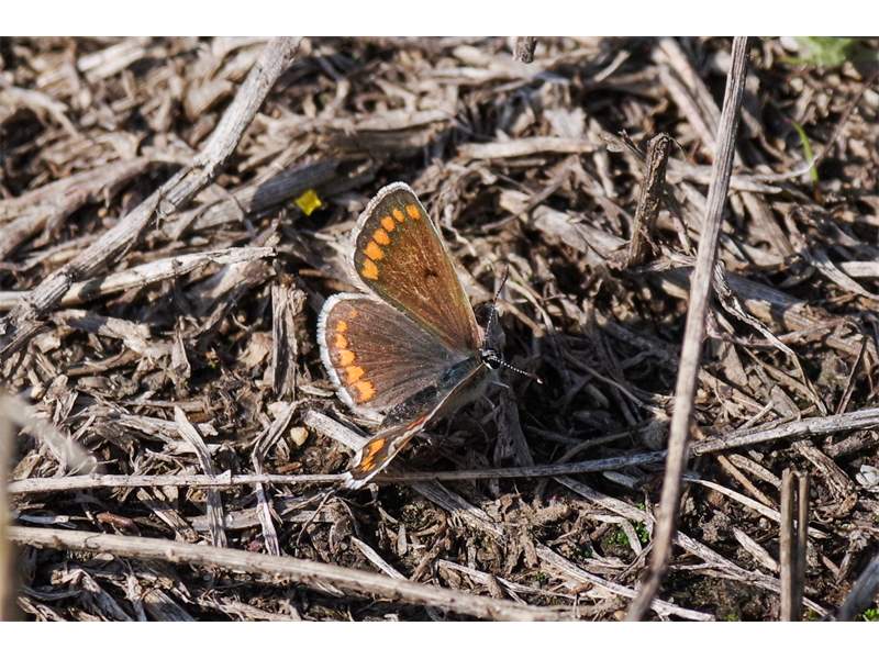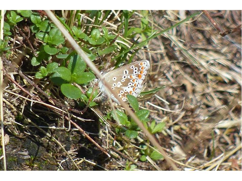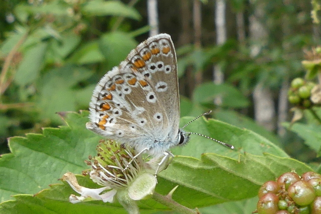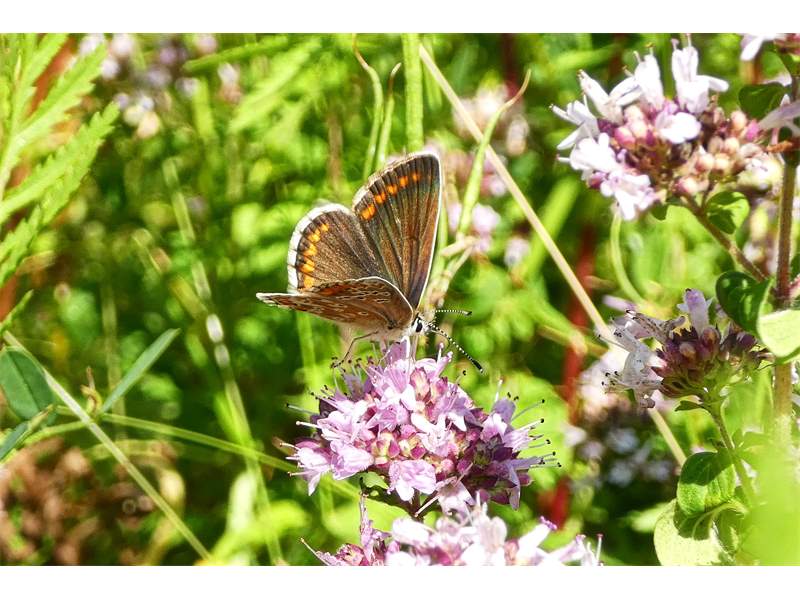 Kleiner Sonnenröschenbläuling (Aricia agestis (Denis & Schiffermüller, 1775)),Freital/Wurgwitz,Hammerteich,Wegrand auf Klee,Sep.2019