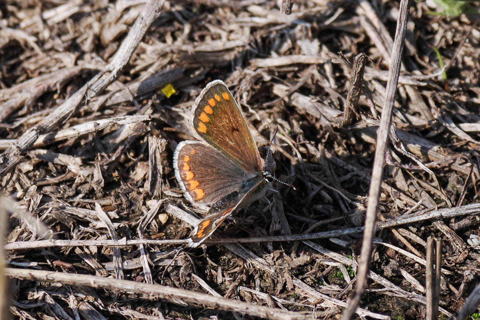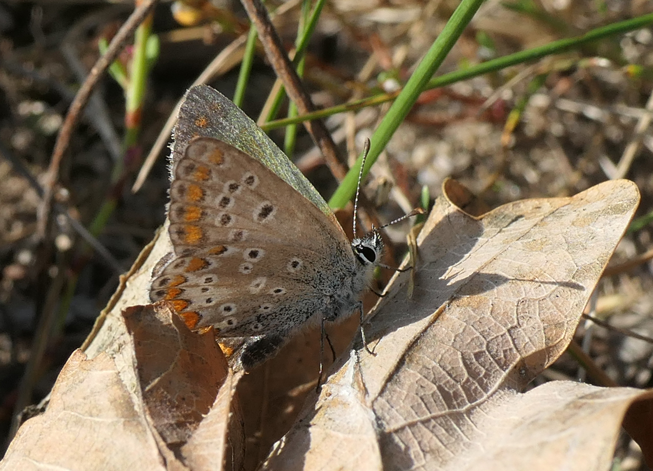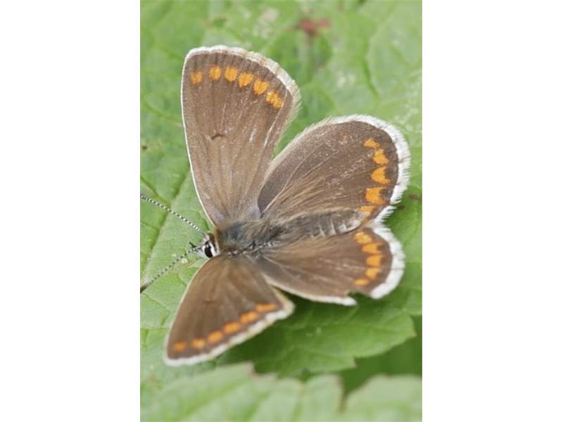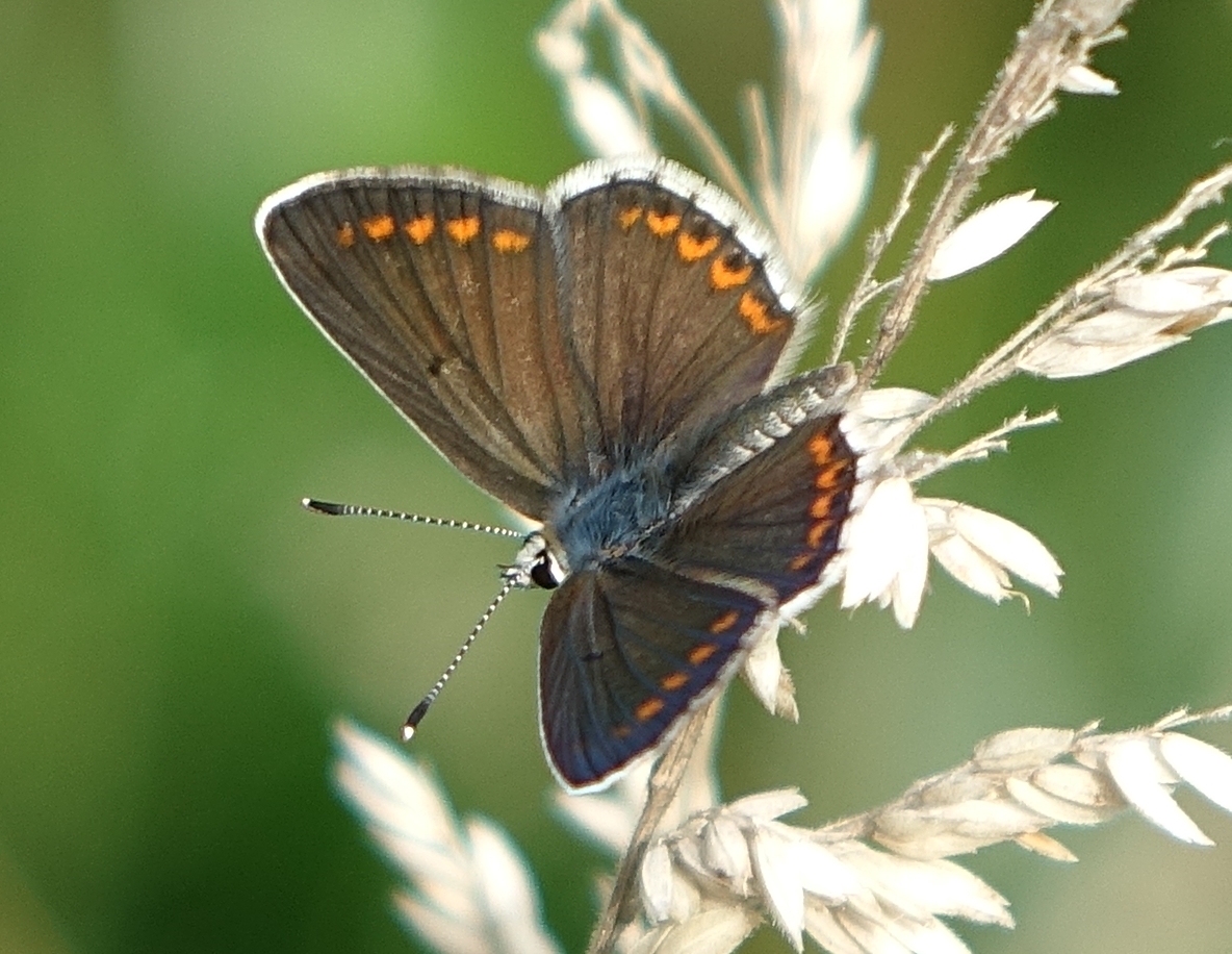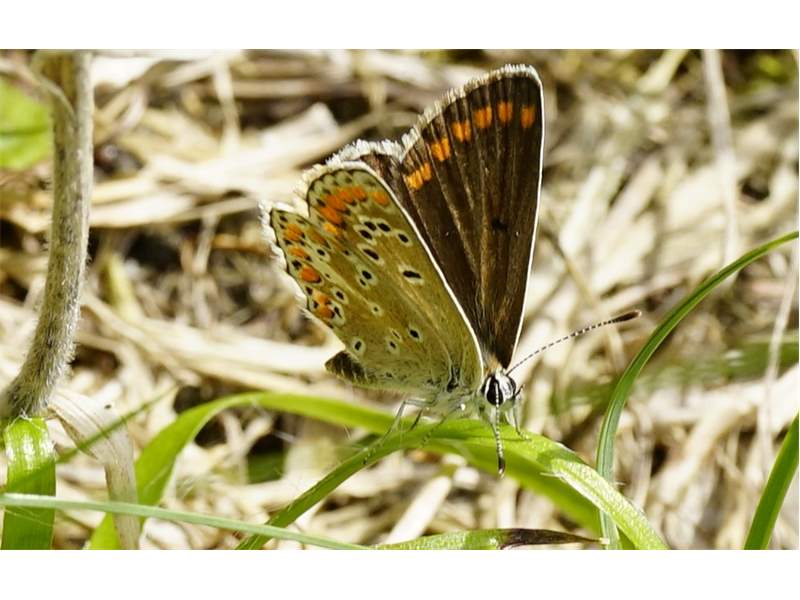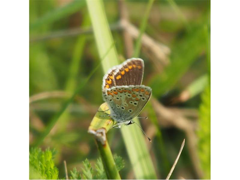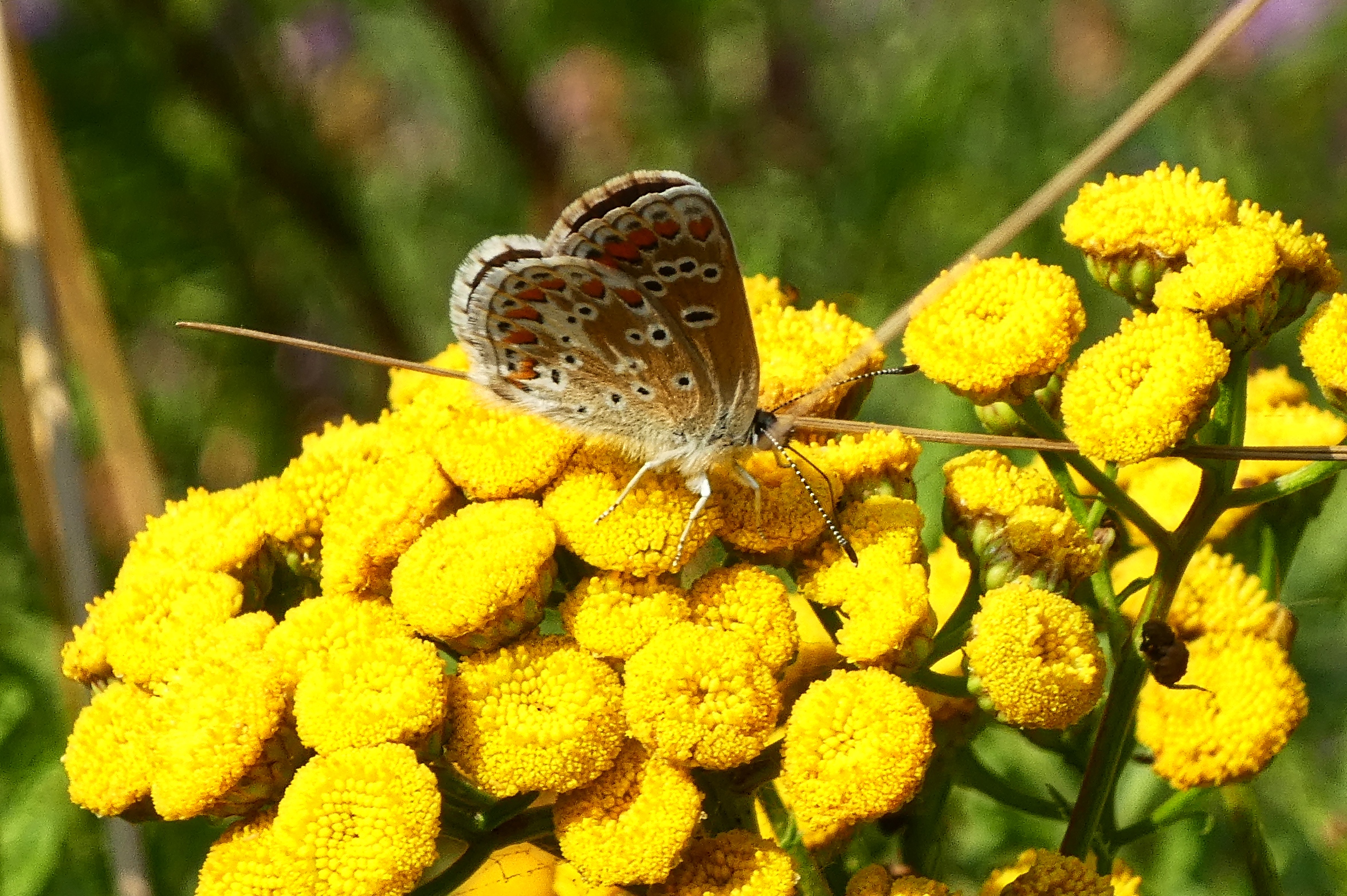 Kleiner Sonnenröschenbläuling (Aricia agestis (Denis & Schiffermüller, 1775)),Freital/Wurgwitz,Hammerteich,Wegrand auf Klee,Sep.2019
