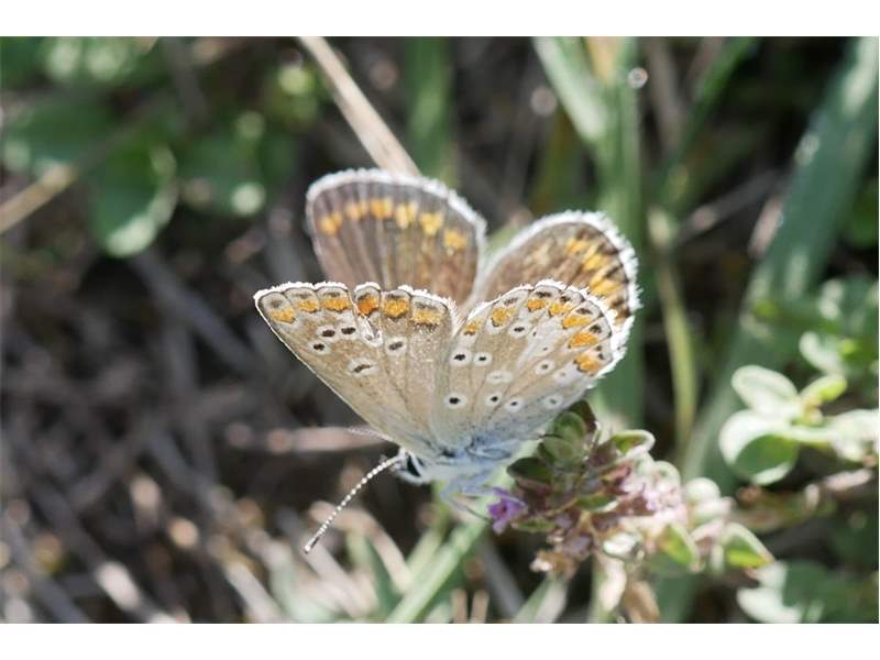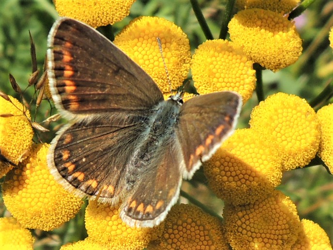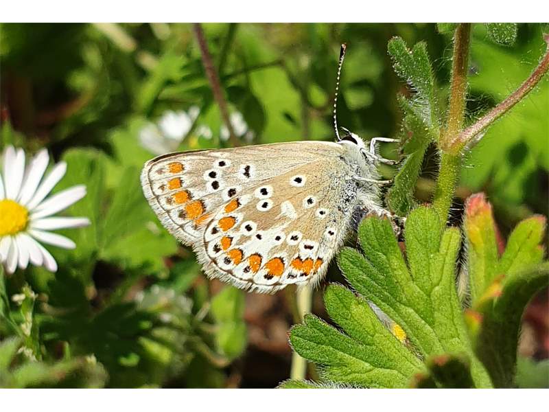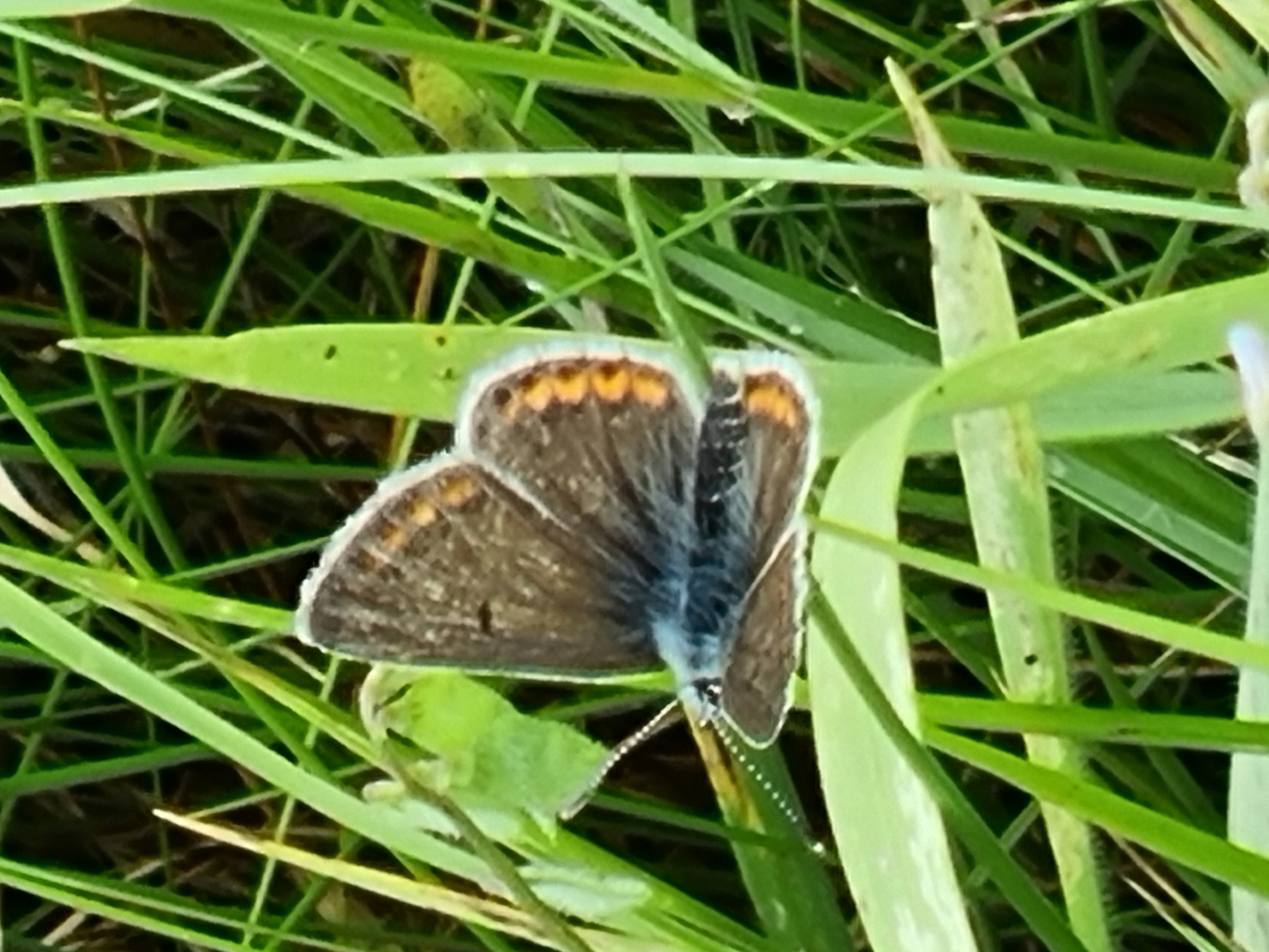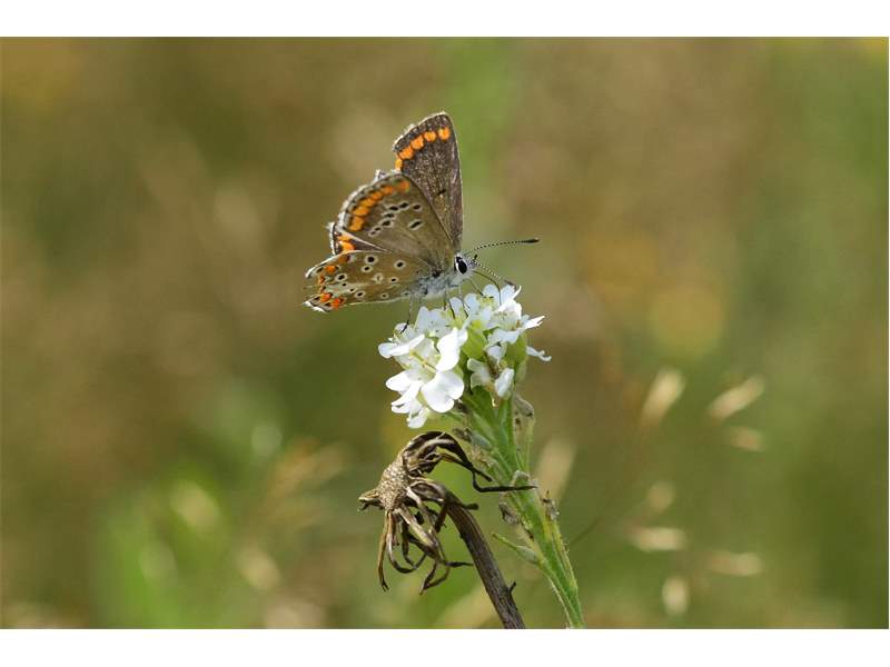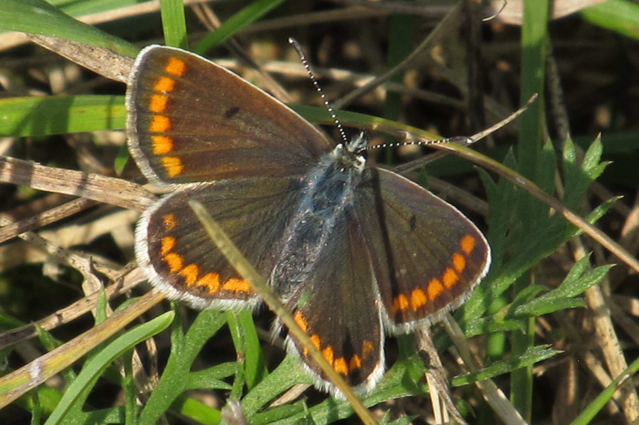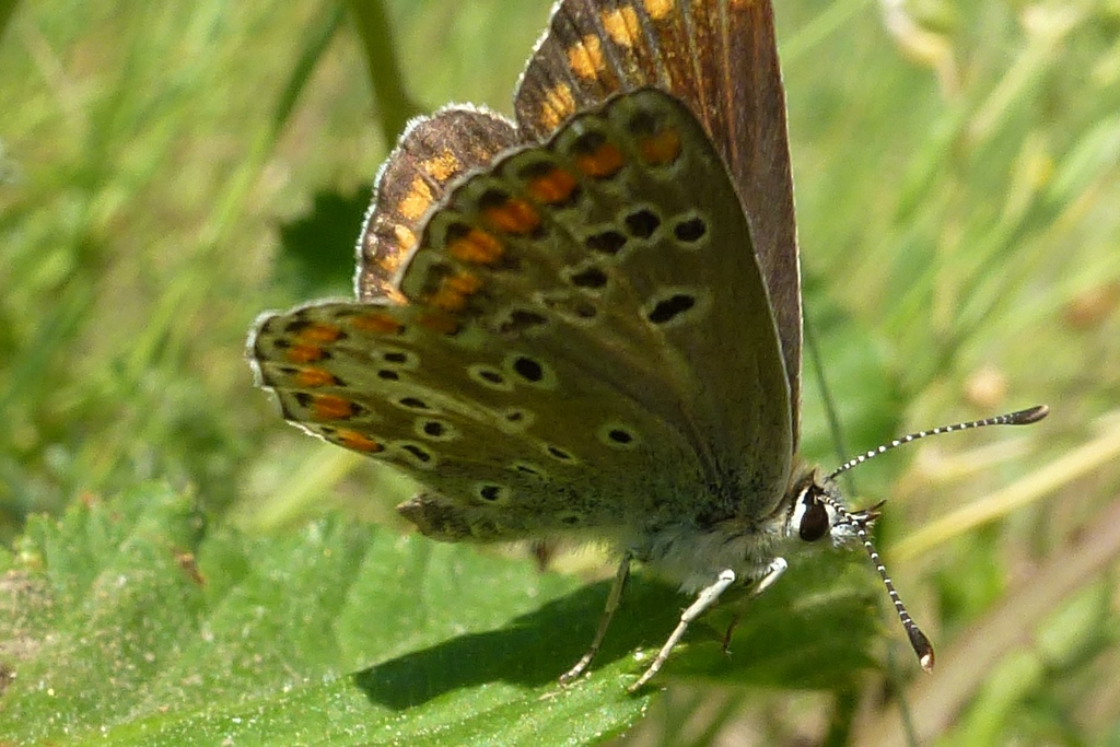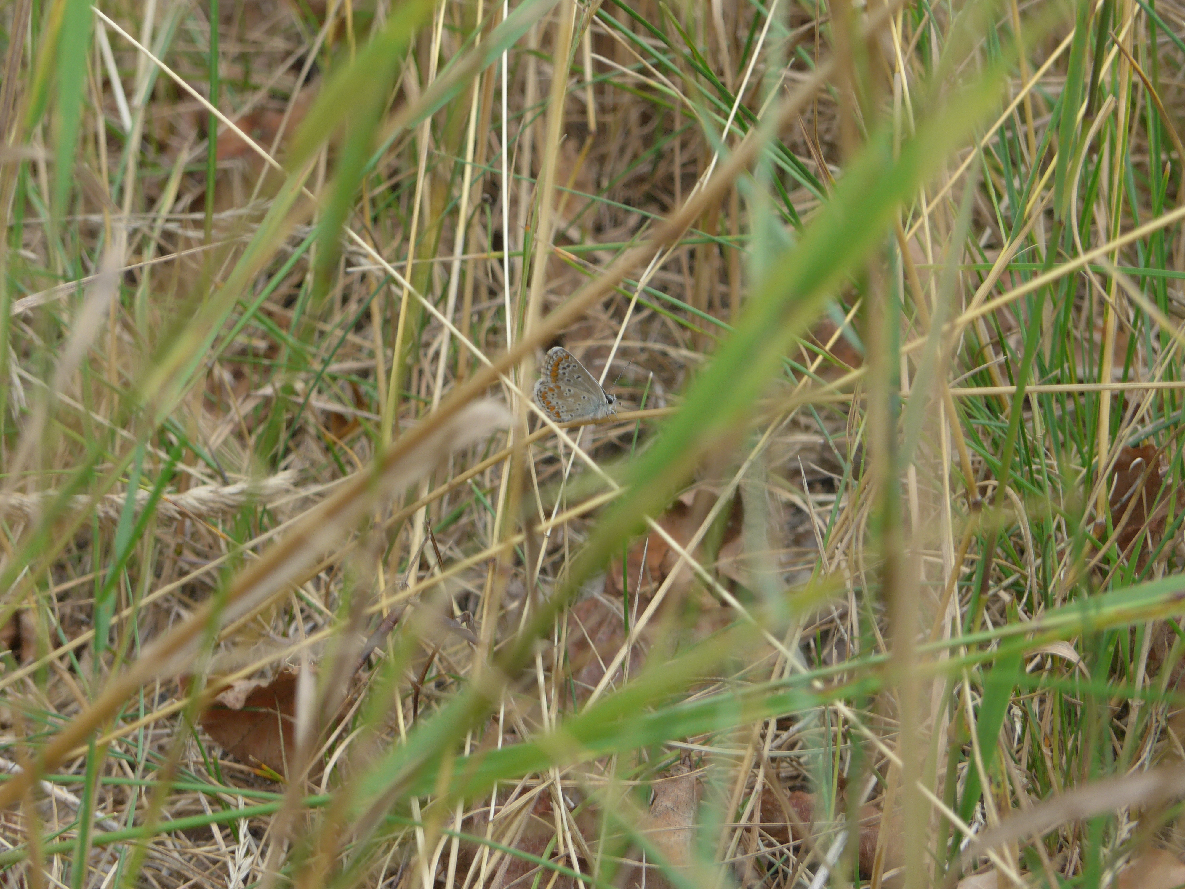 Kleiner Sonnenröschenbläuling (Aricia agestis (Denis & Schiffermüller, 1775)),Freital/Wurgwitz,Hammerteich,Wegrand auf Klee,Sep.2019