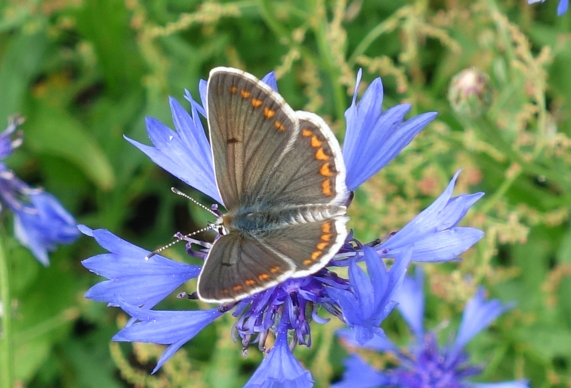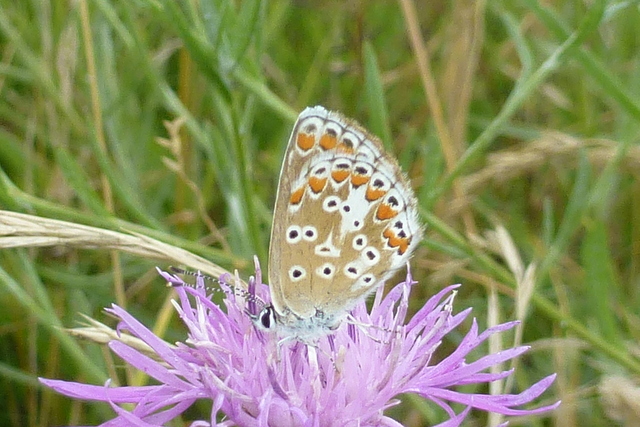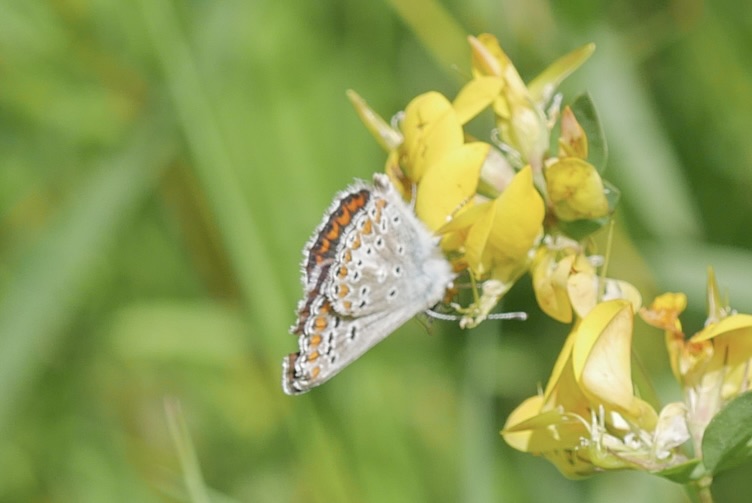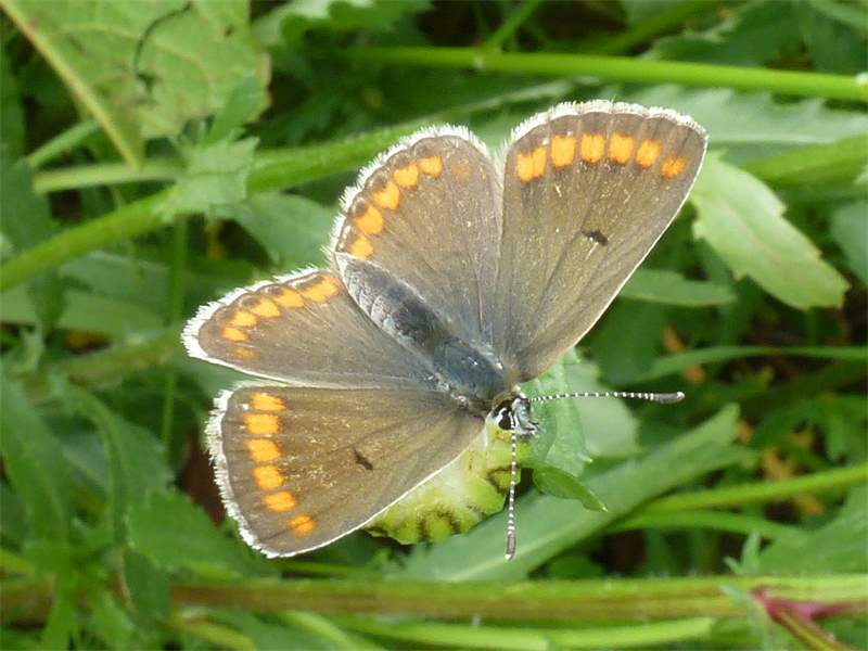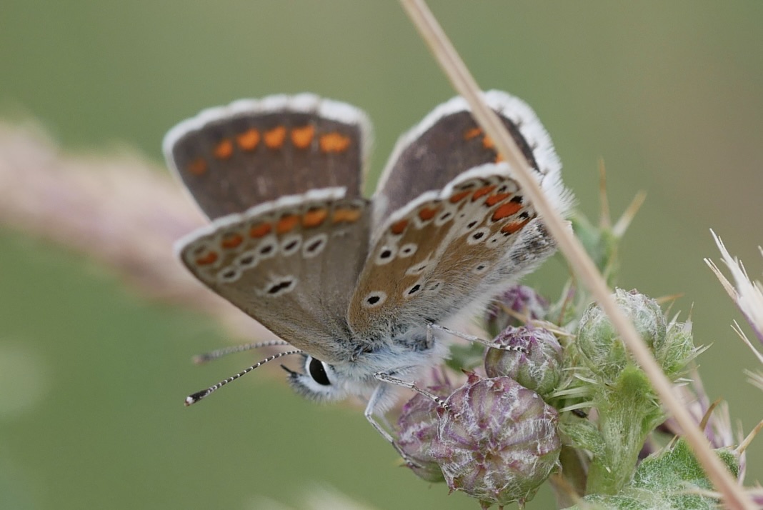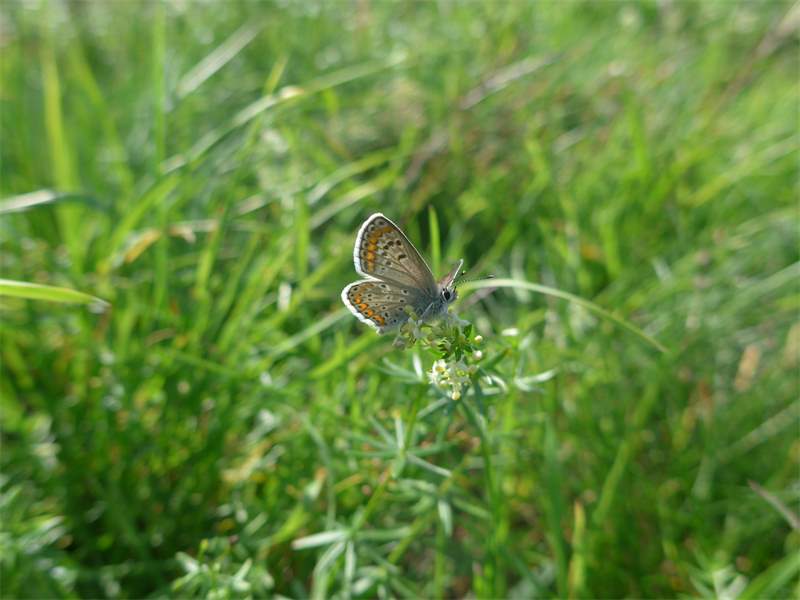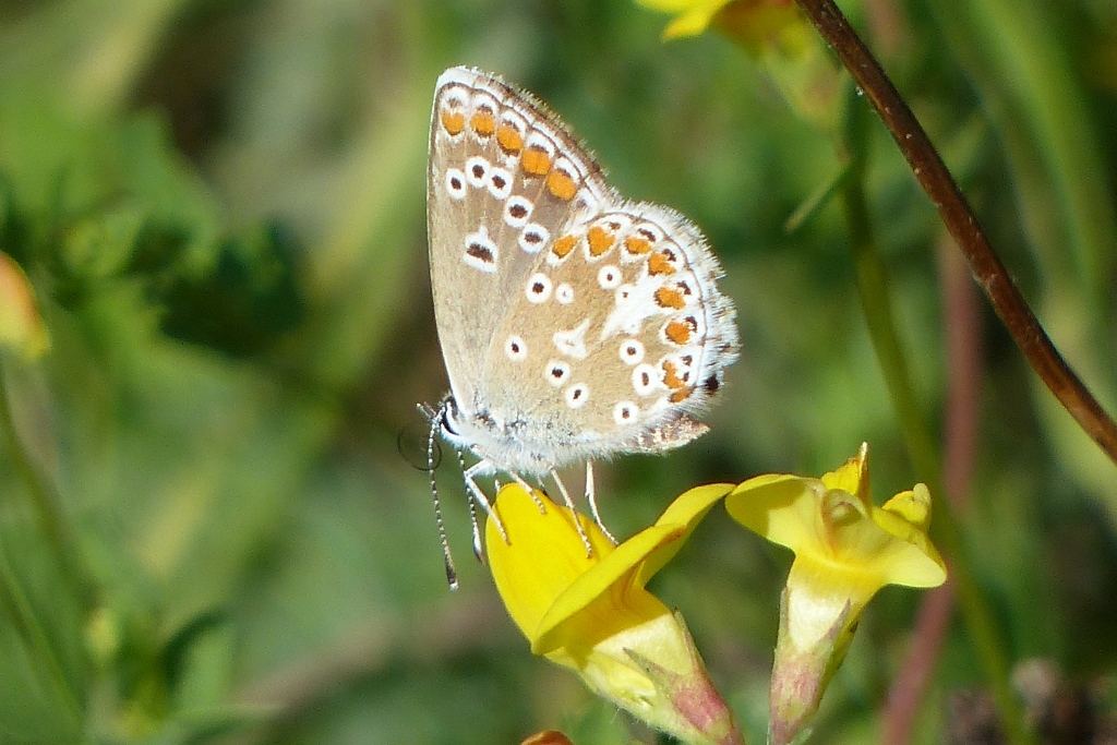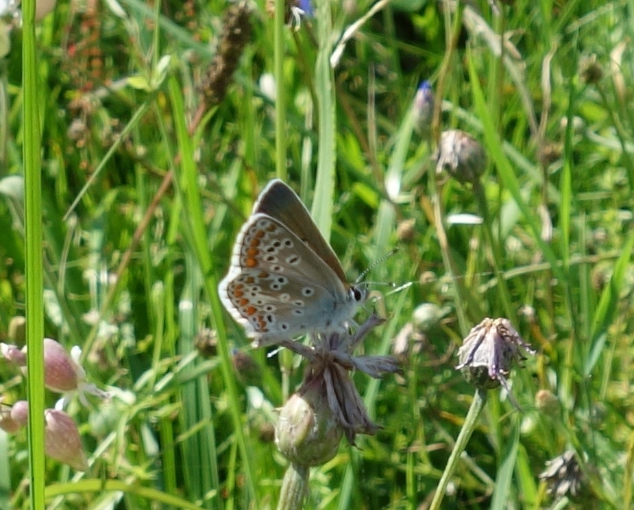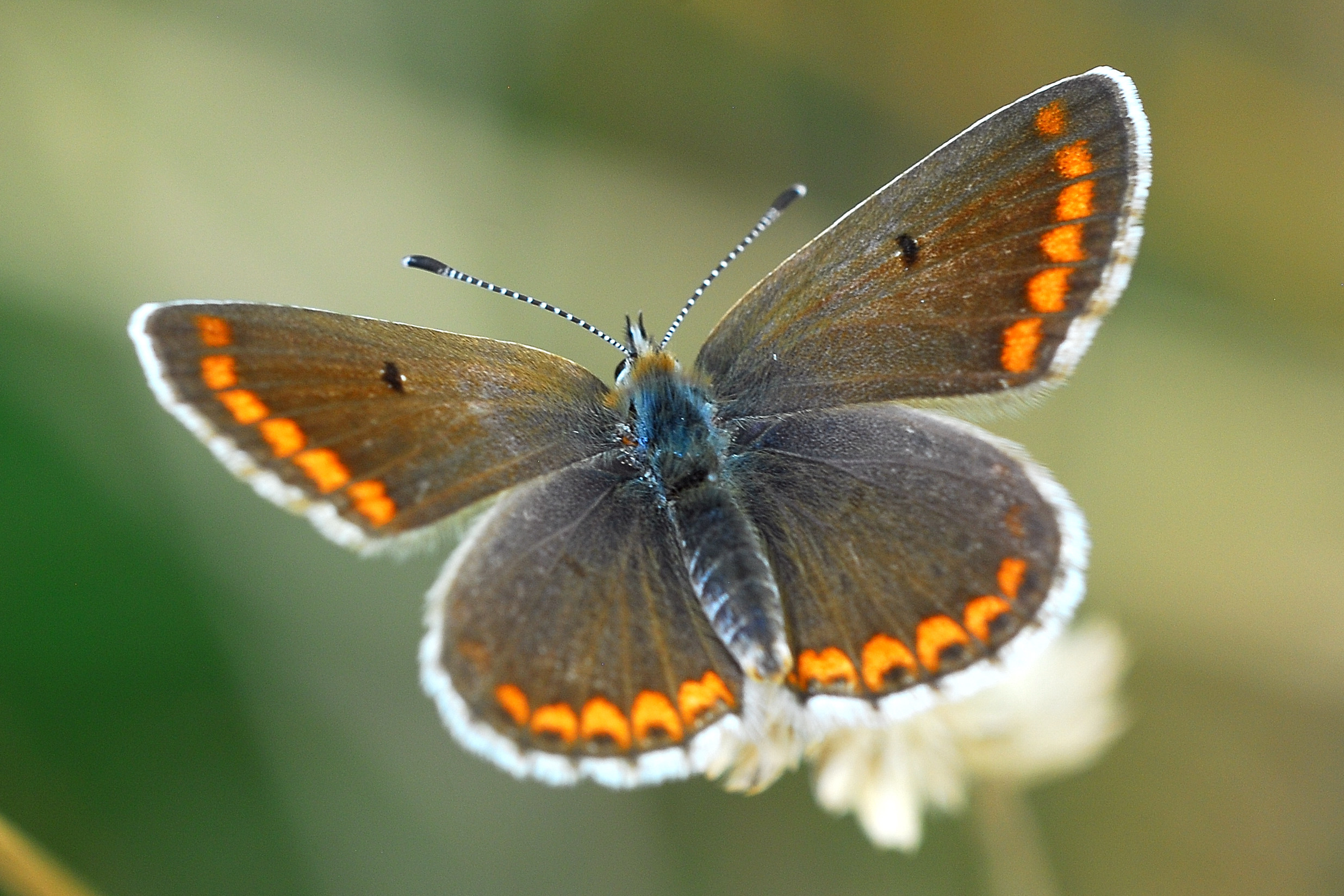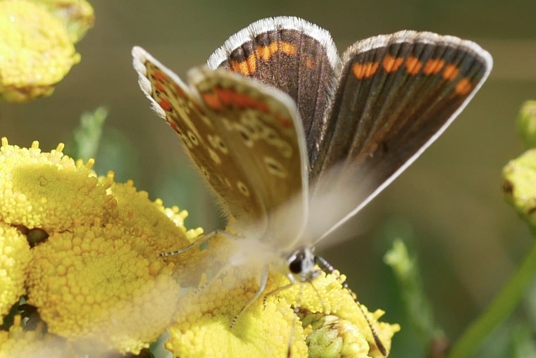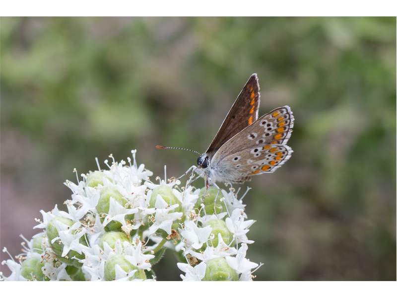 Kleiner Sonnenröschenbläuling (Aricia agestis (Denis & Schiffermüller, 1775)),Freital/Wurgwitz,Hammerteich,Wegrand auf Klee,Sep.2019