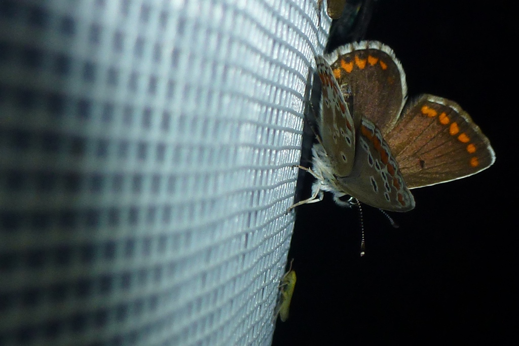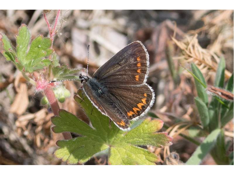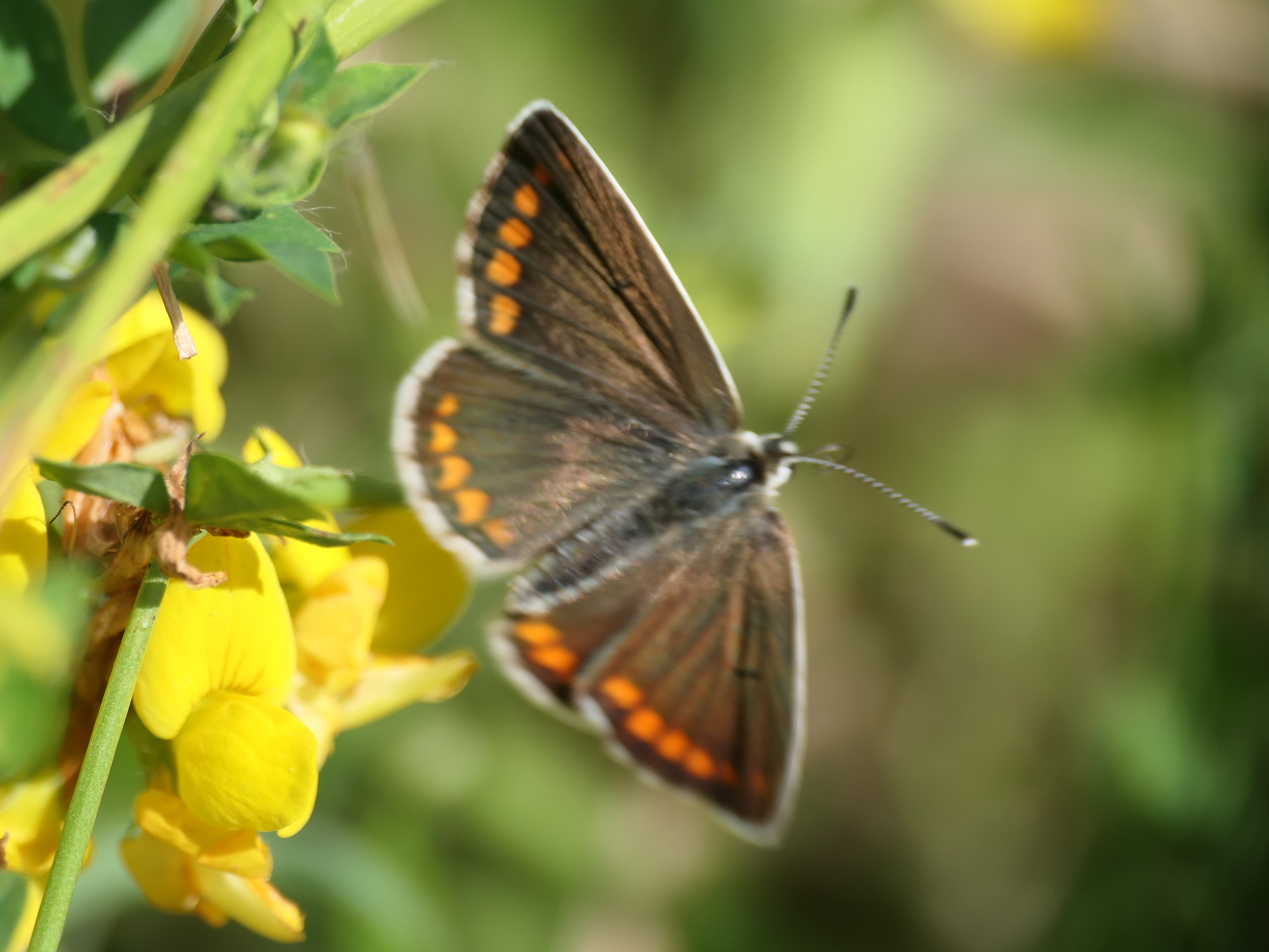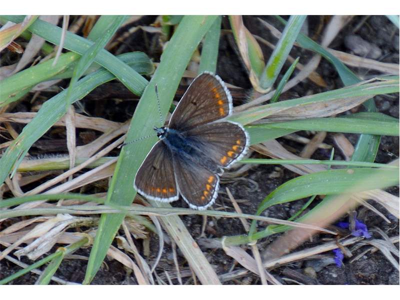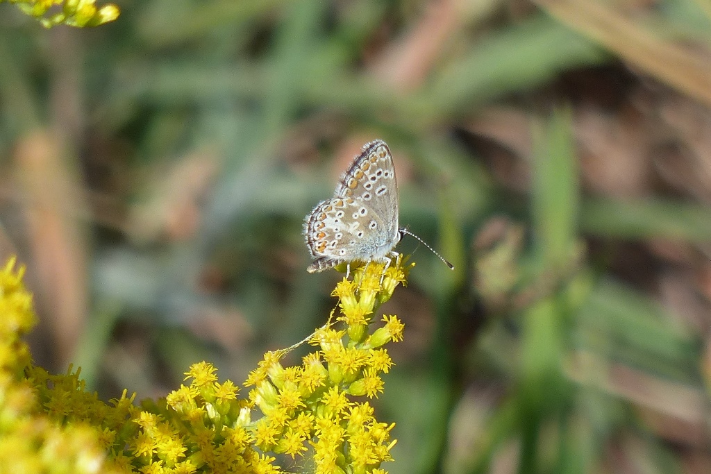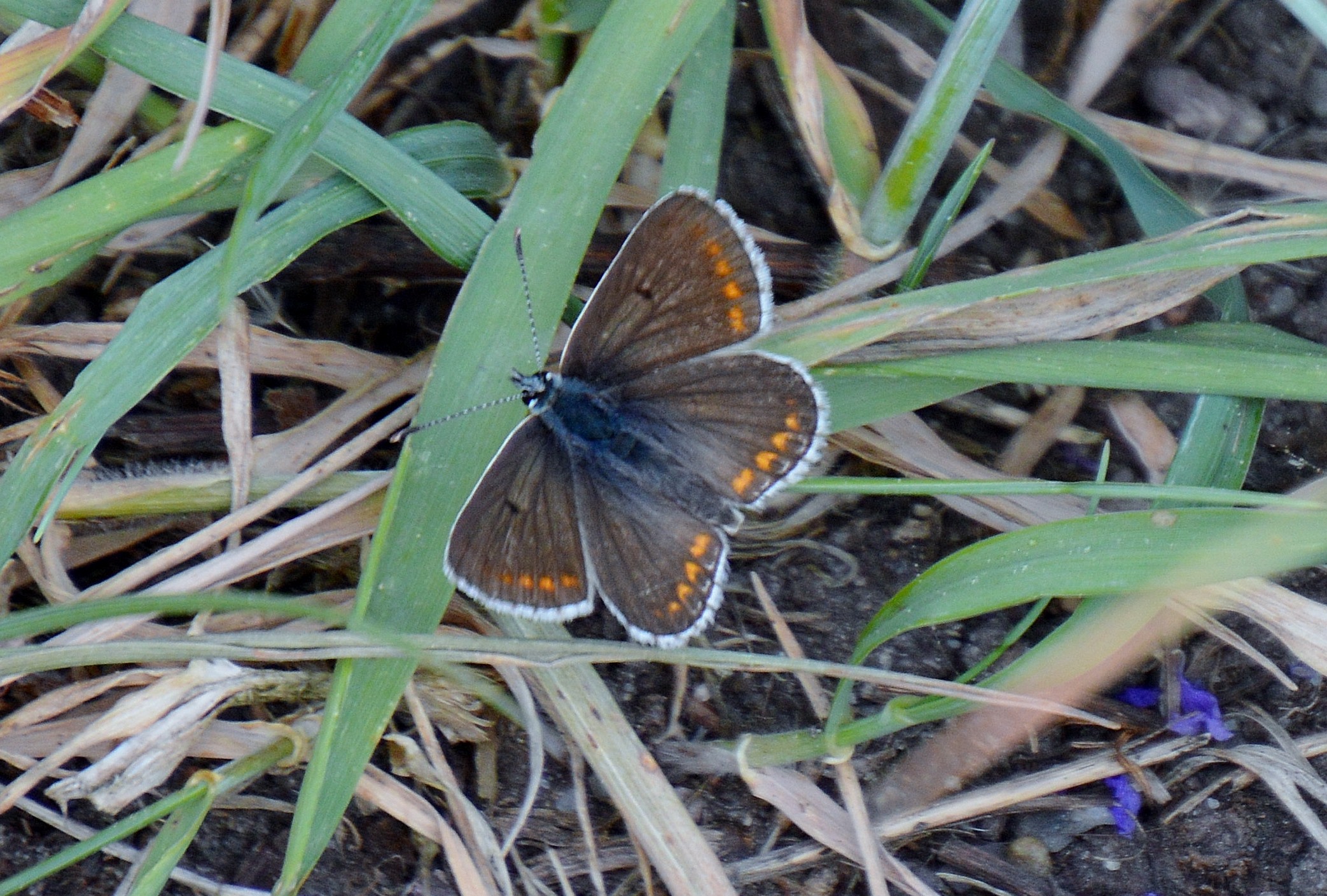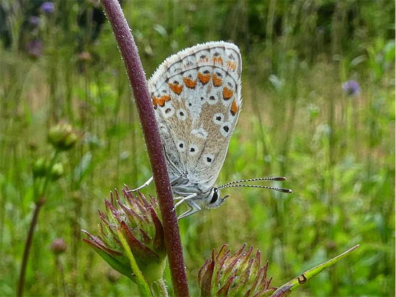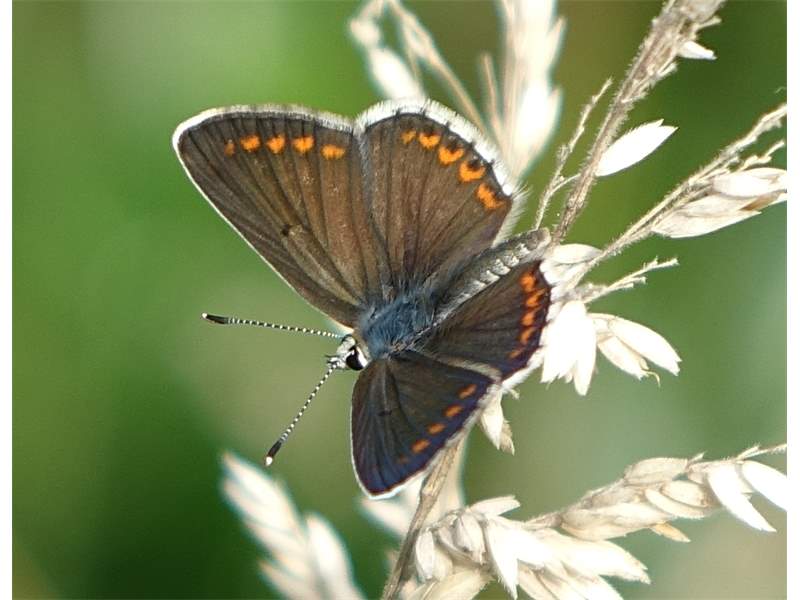 Kleiner Sonnenröschenbläuling (Aricia agestis (Denis & Schiffermüller, 1775)),Freital/Wurgwitz,Hammerteich,Wegrand auf Klee,Sep.2019