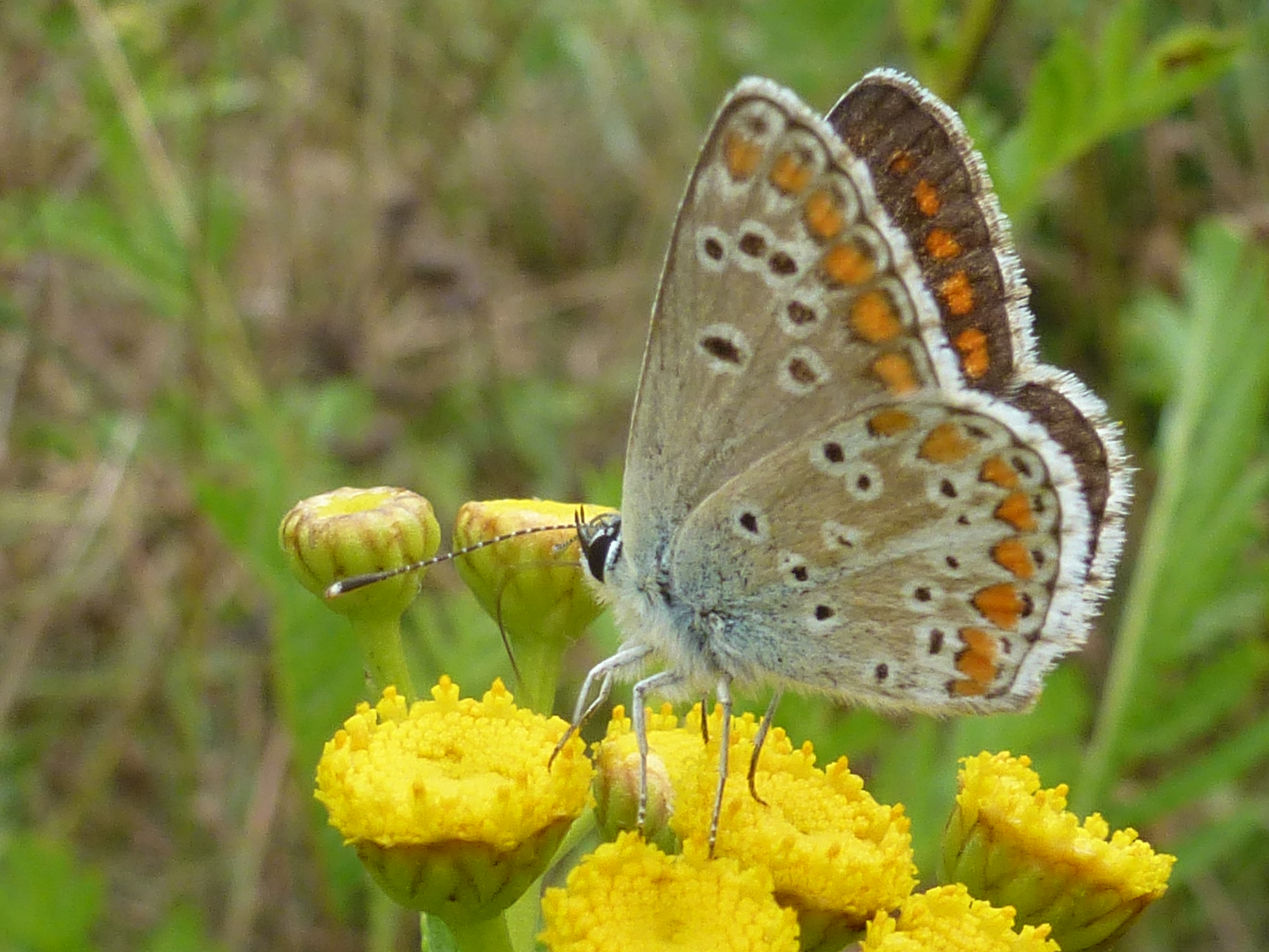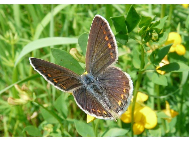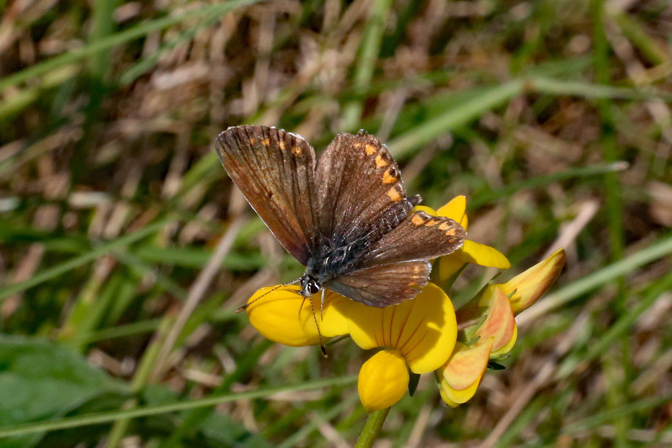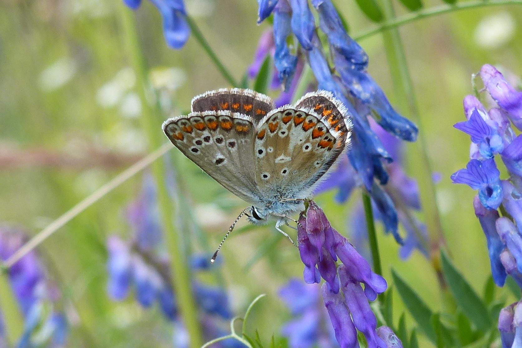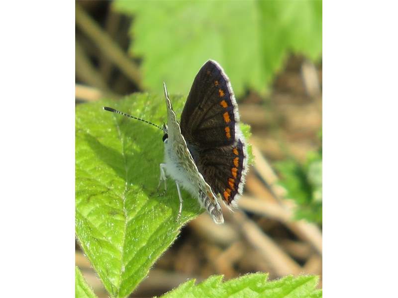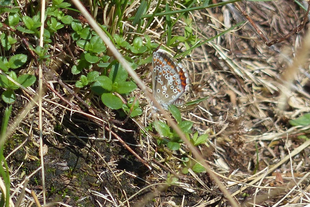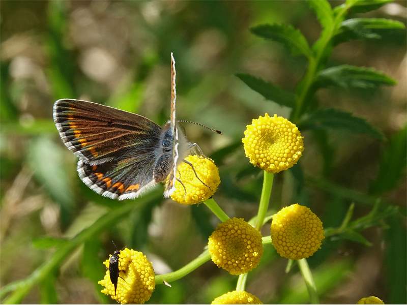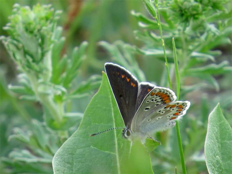 Kleiner Sonnenröschenbläuling (Aricia agestis (Denis & Schiffermüller, 1775)),Freital/Wurgwitz,Hammerteich,Wegrand auf Klee,Sep.2019