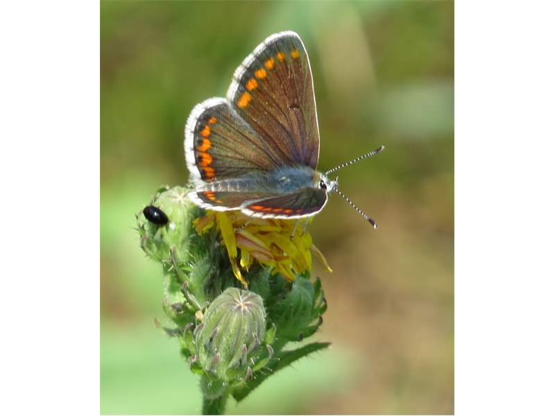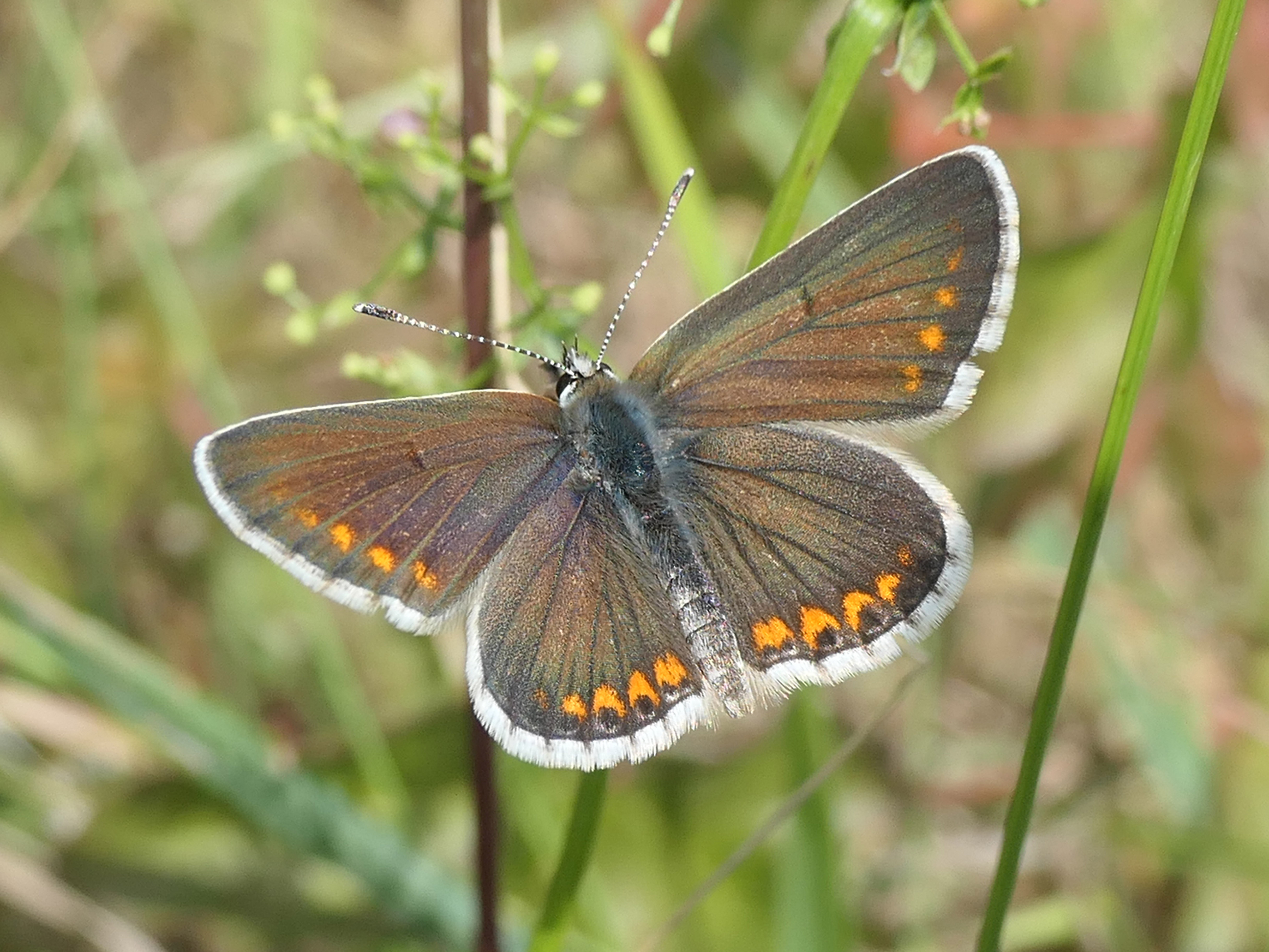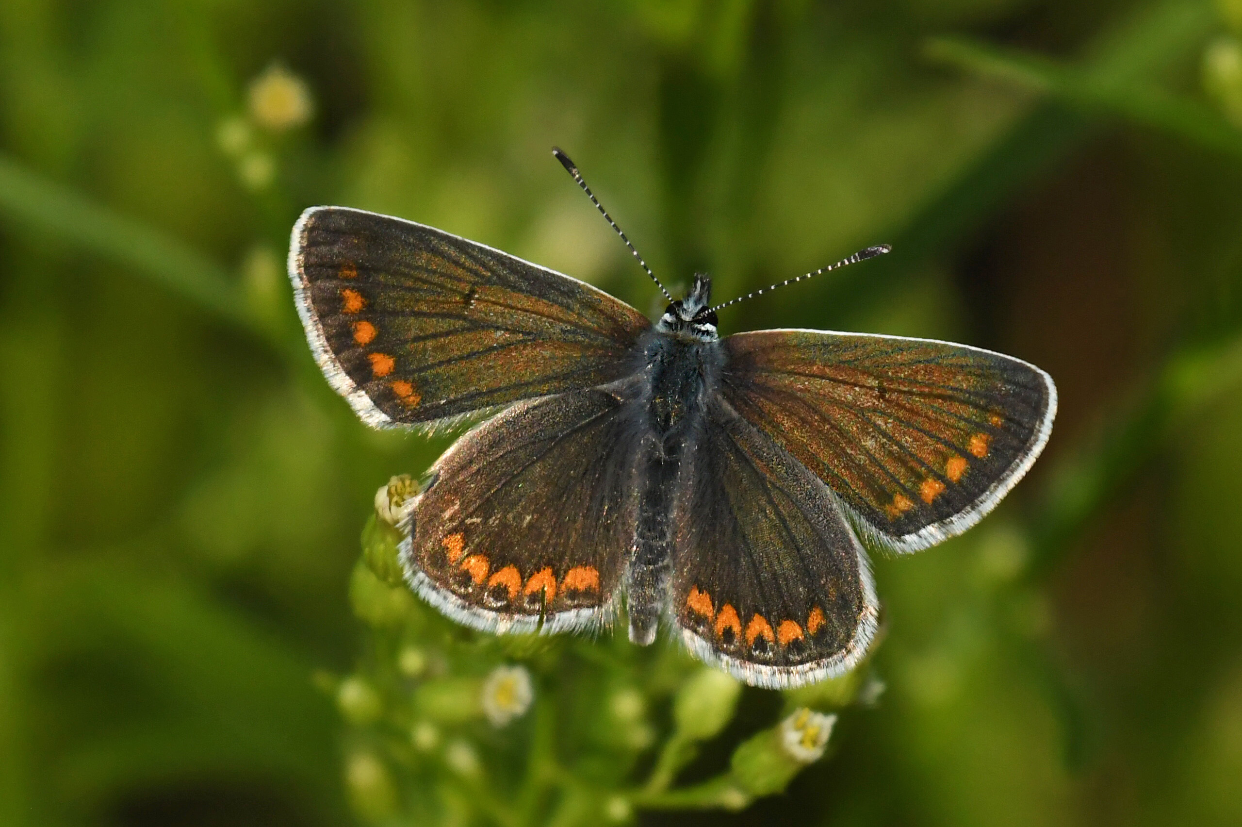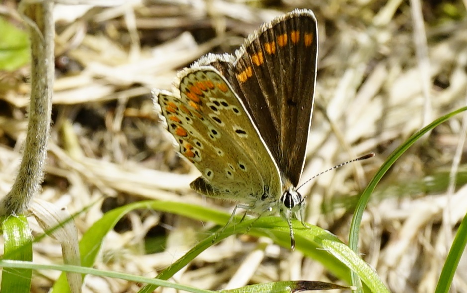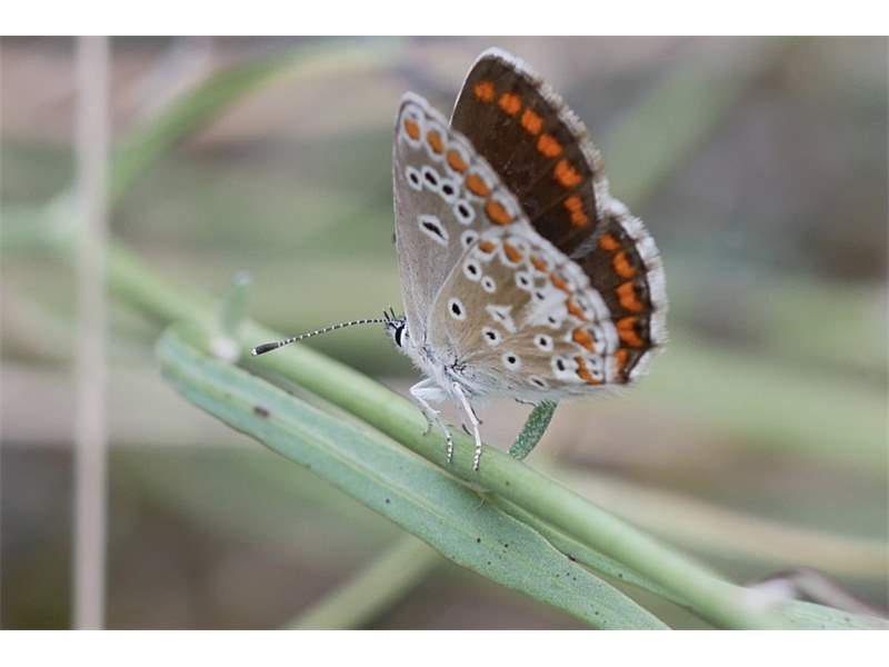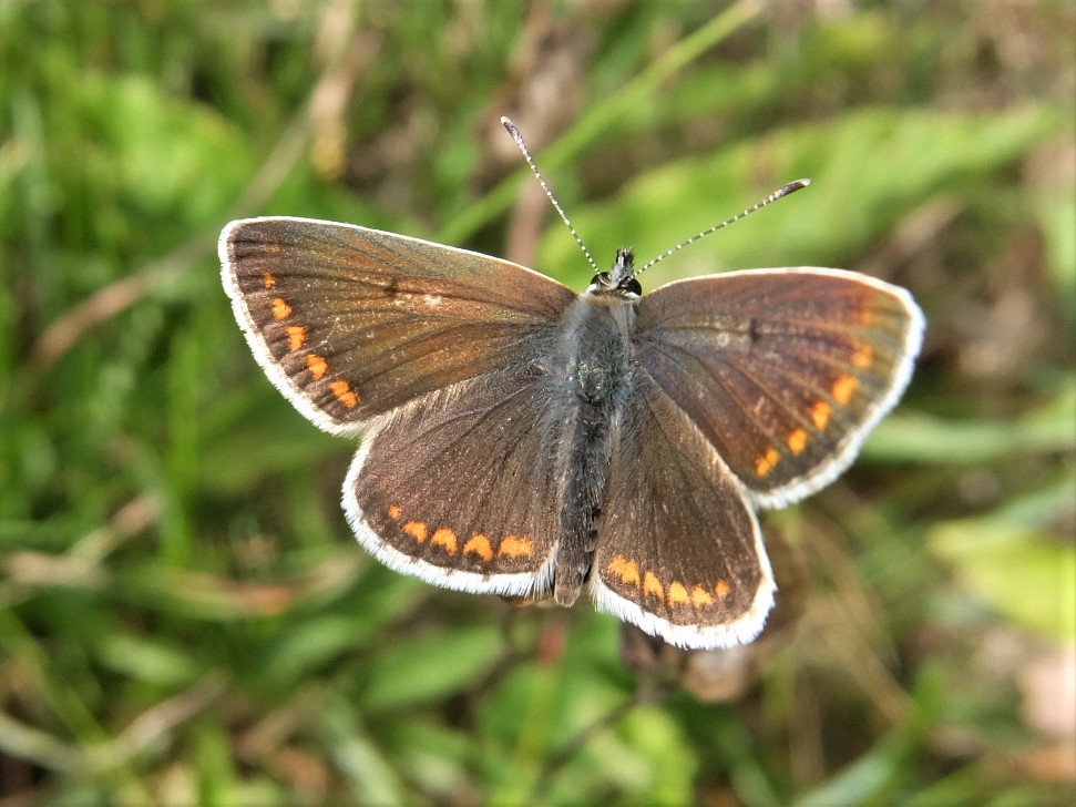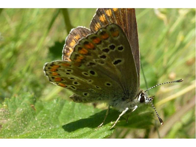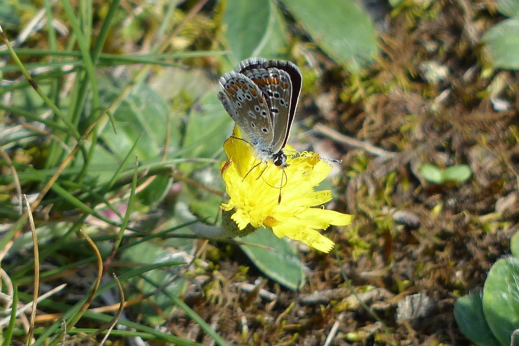 Kleiner Sonnenröschenbläuling (Aricia agestis (Denis & Schiffermüller, 1775)),Freital/Wurgwitz,Hammerteich,Wegrand auf Klee,Sep.2019