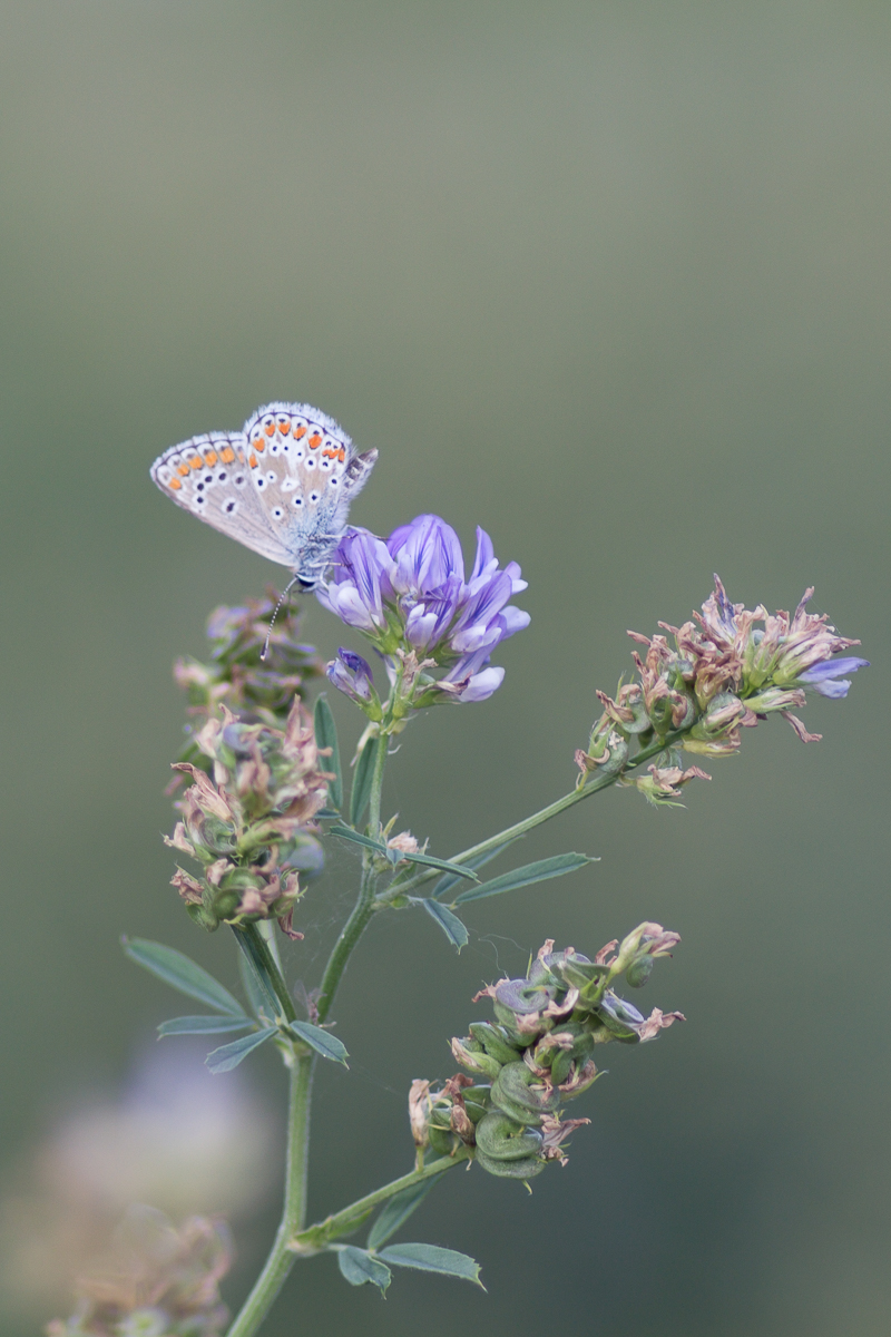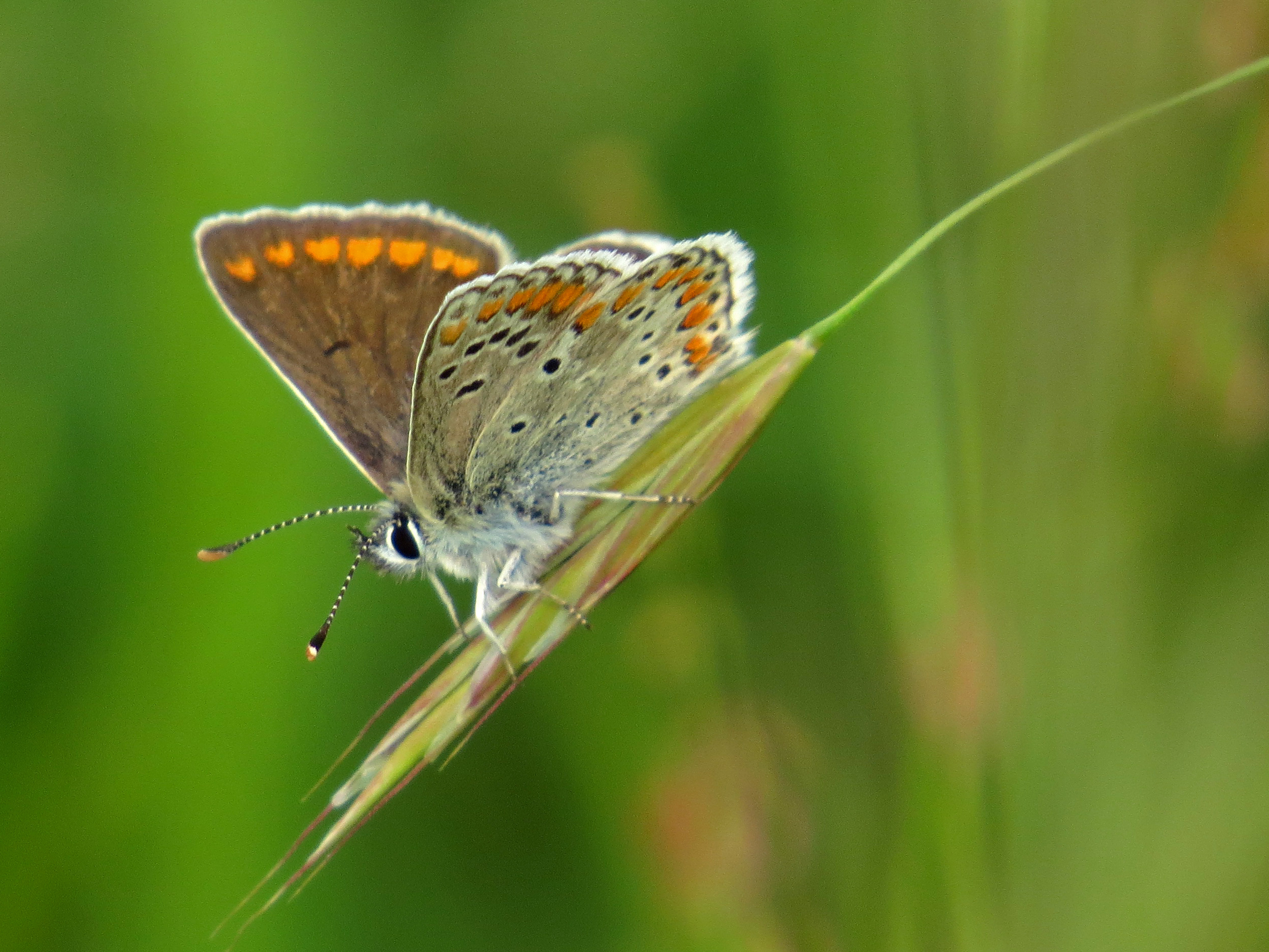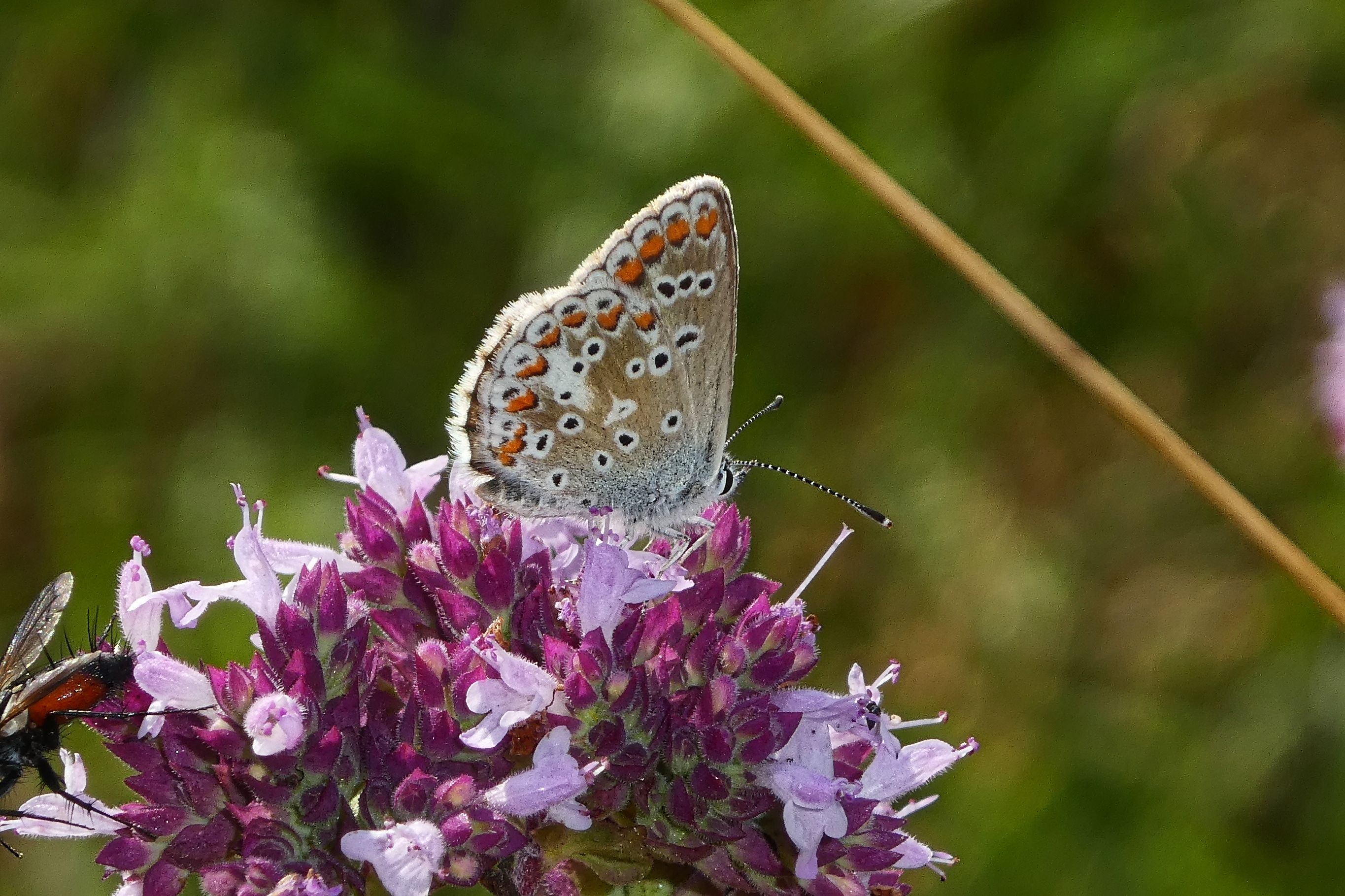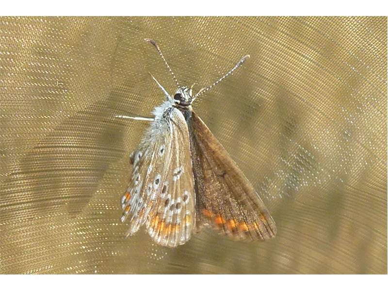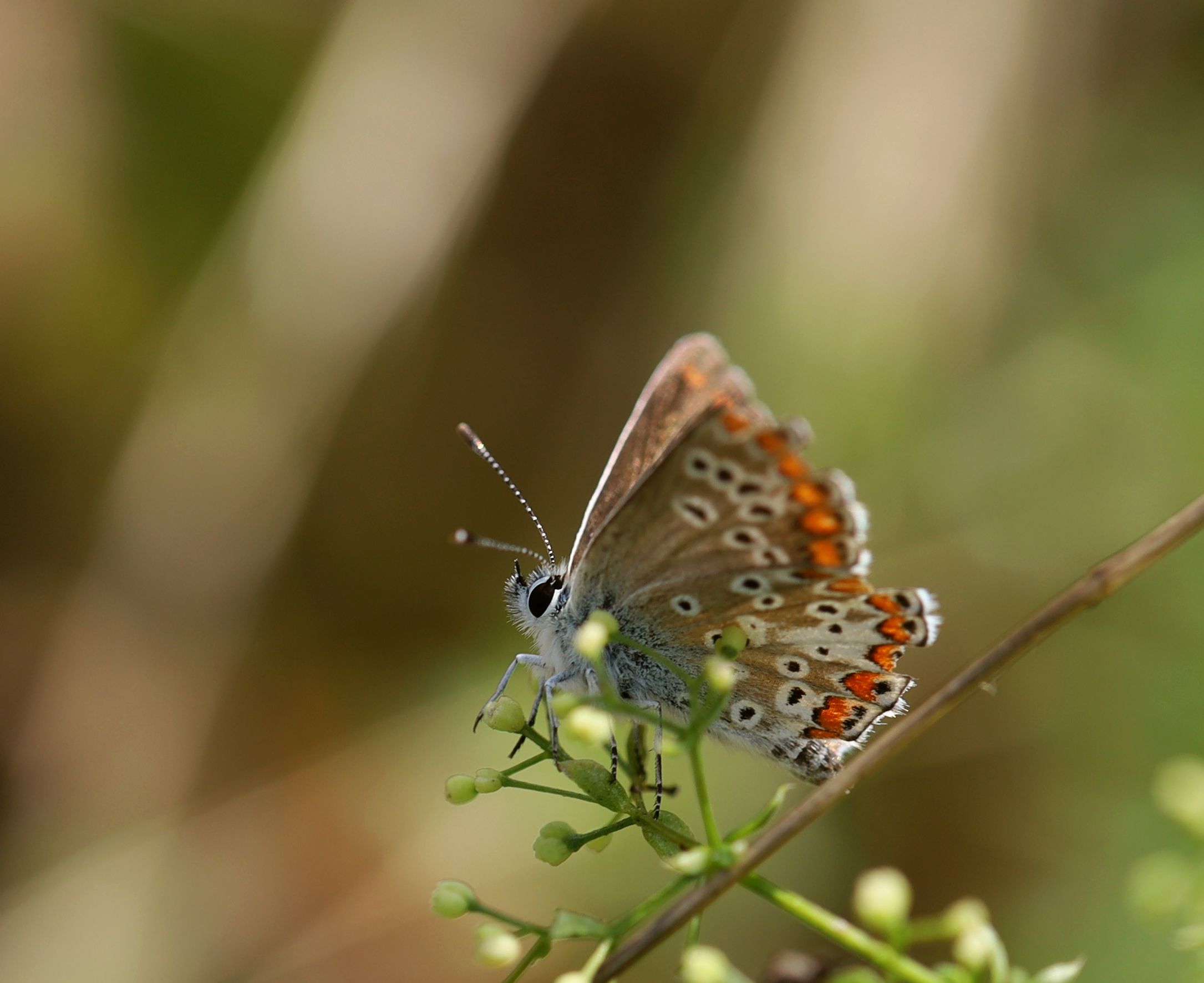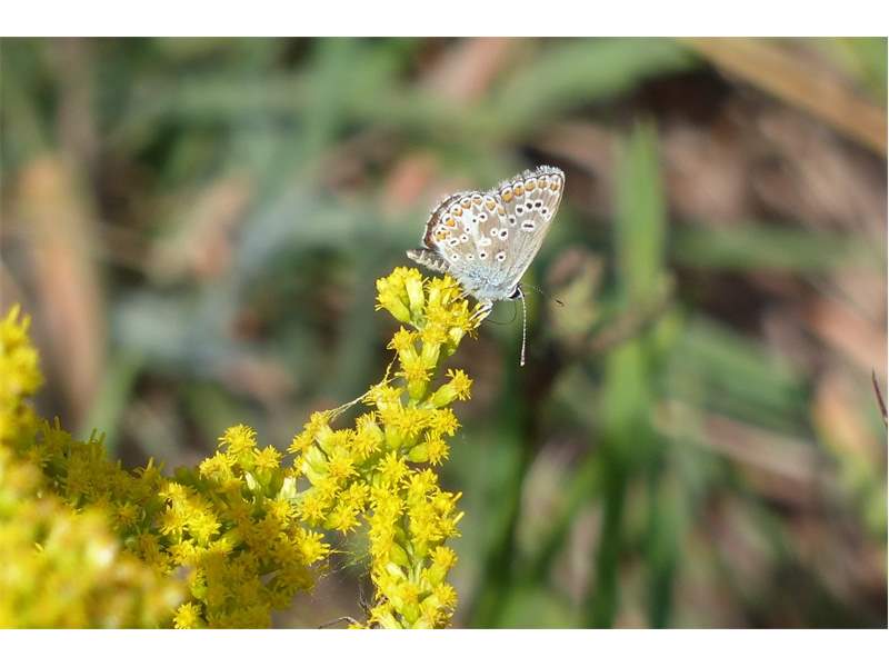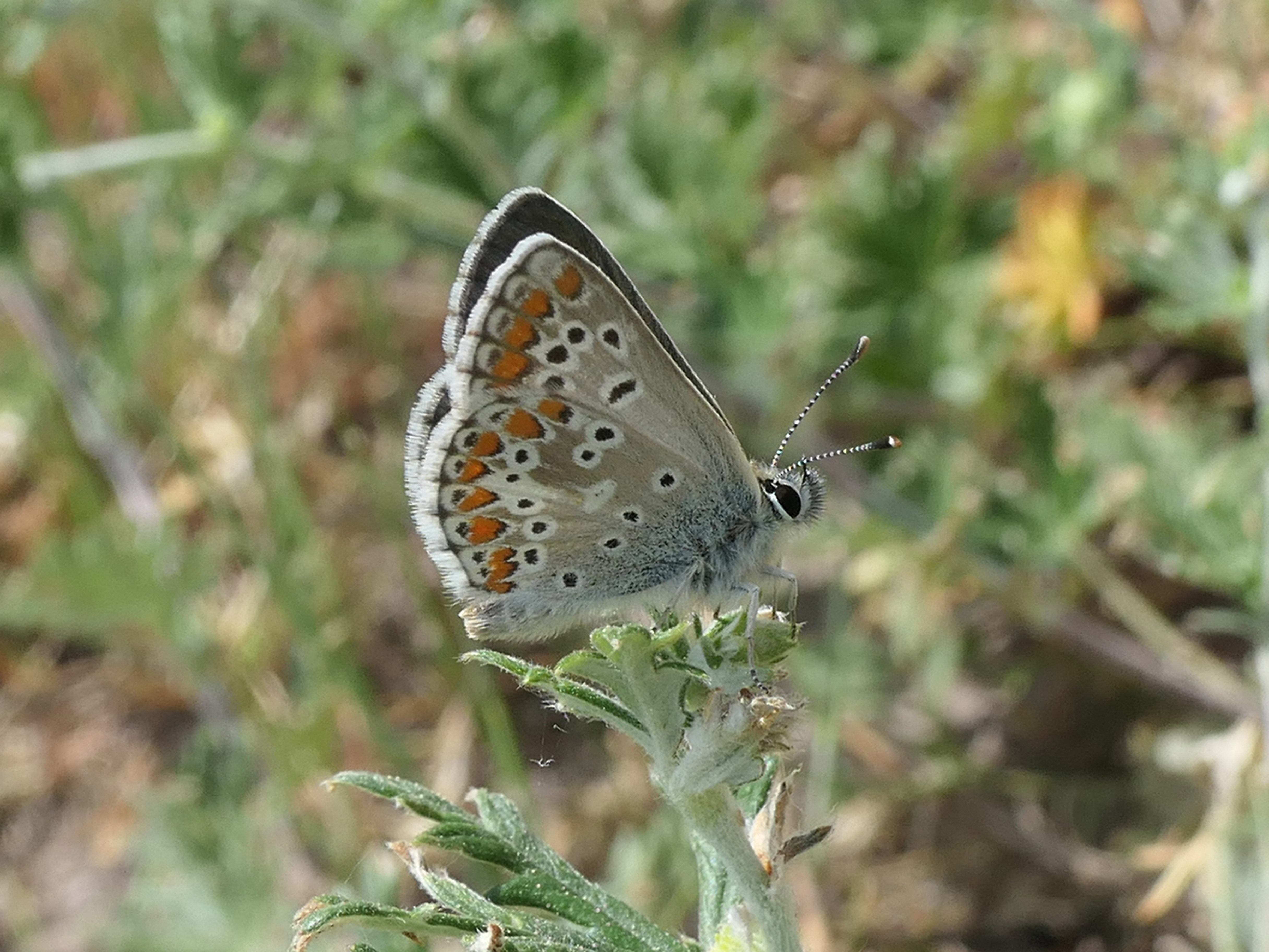 Kleiner Sonnenröschenbläuling (Aricia agestis (Denis & Schiffermüller, 1775)),Freital/Wurgwitz,Hammerteich,Wegrand auf Klee,Sep.2019