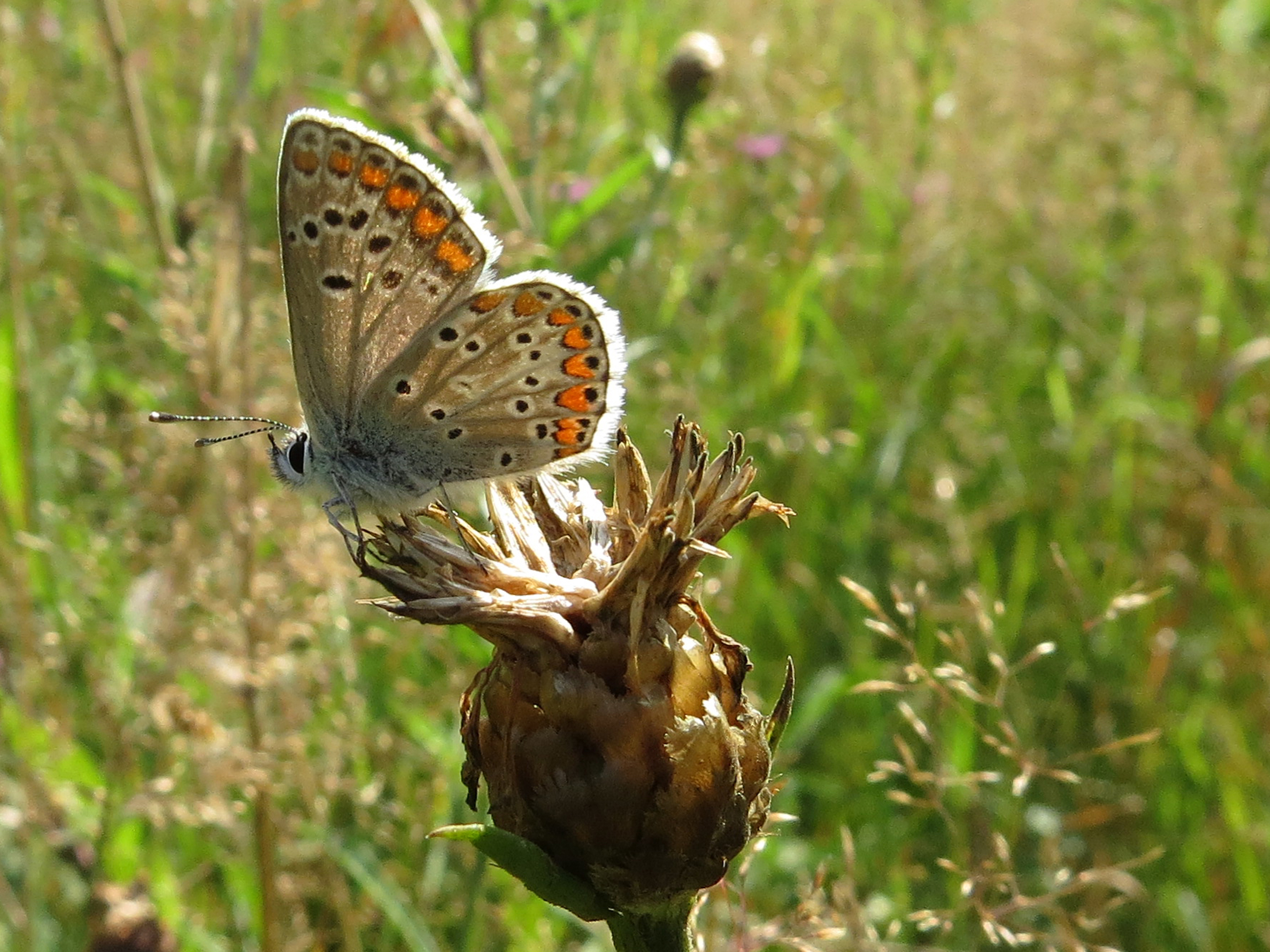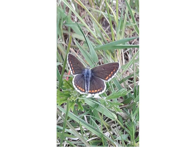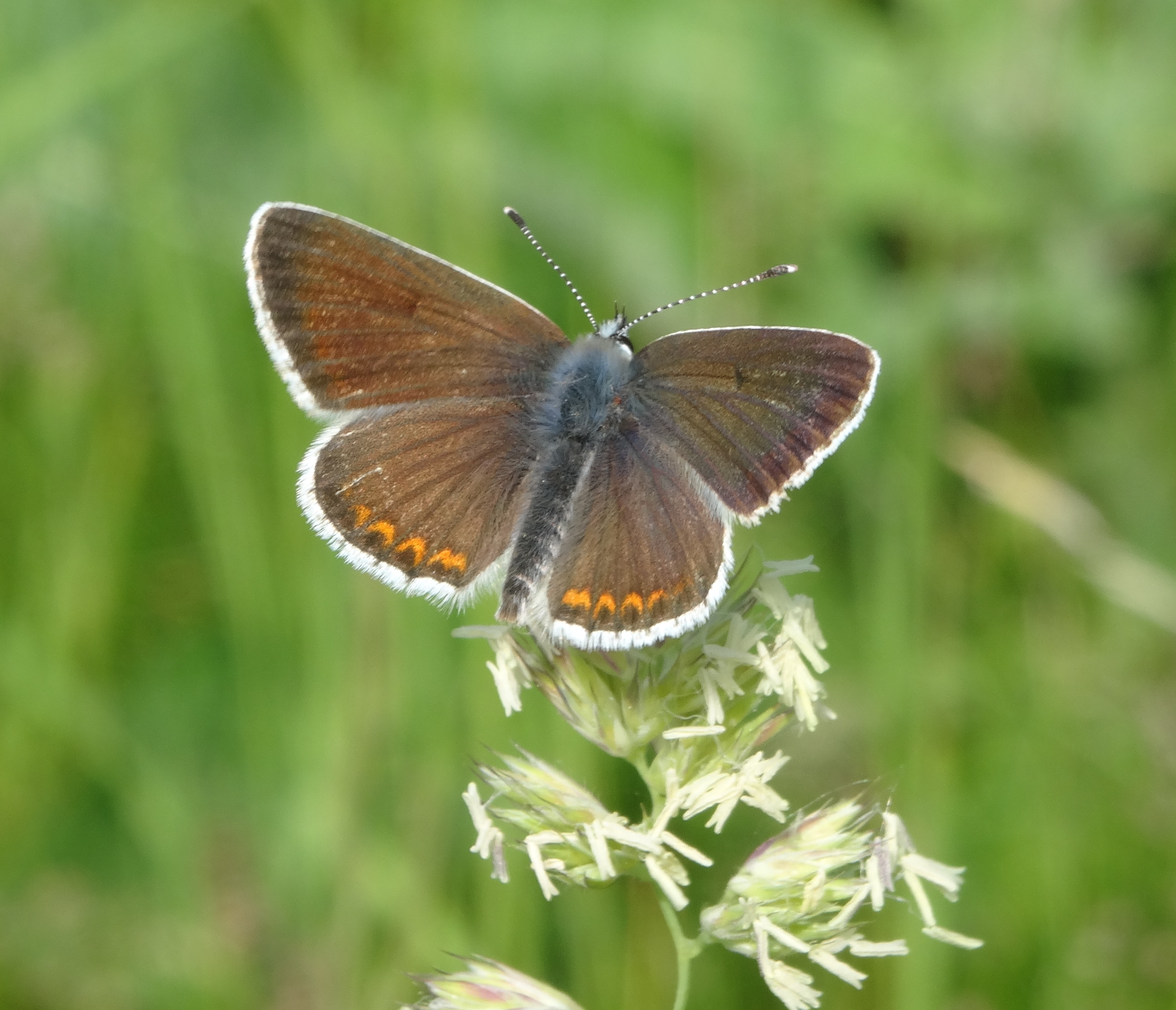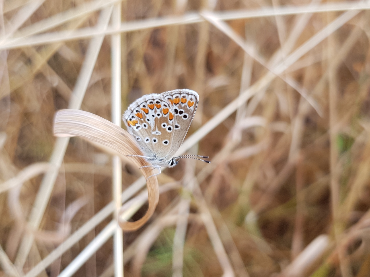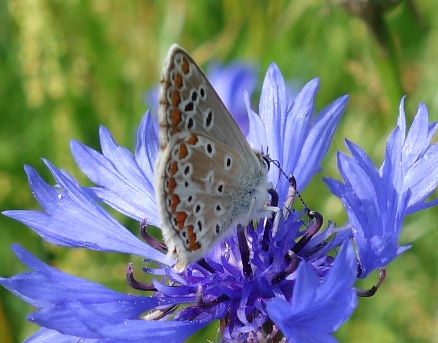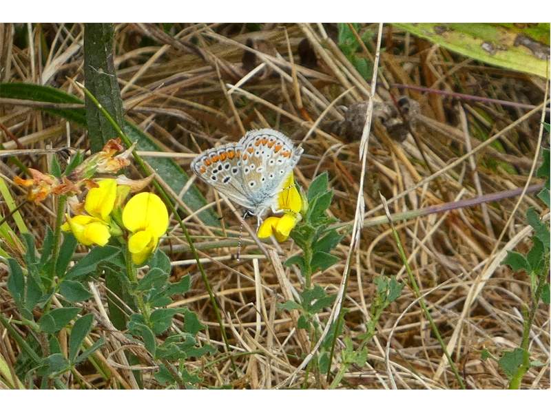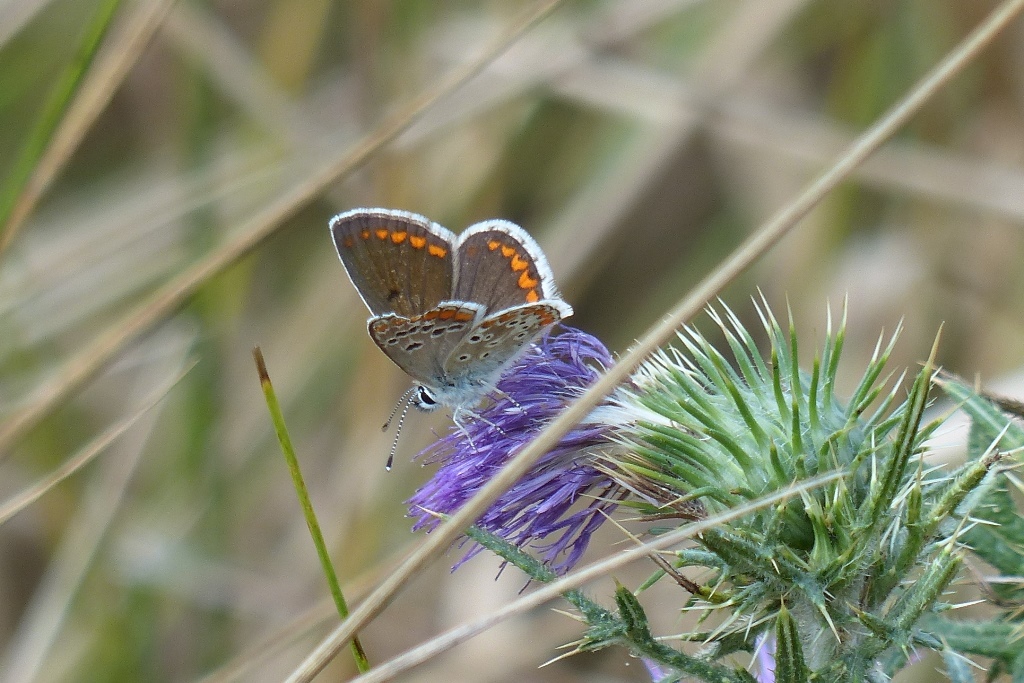 Kleiner Sonnenröschenbläuling (Aricia agestis (Denis & Schiffermüller, 1775)),Freital/Wurgwitz,Hammerteich,Wegrand auf Klee,Sep.2019