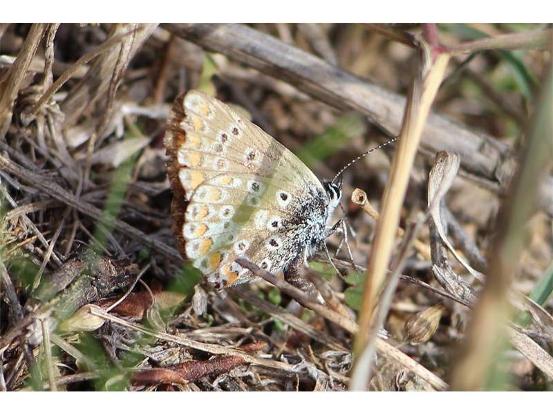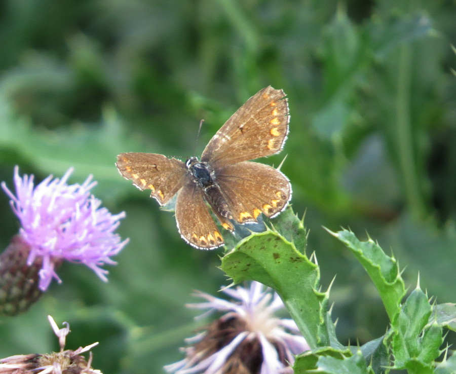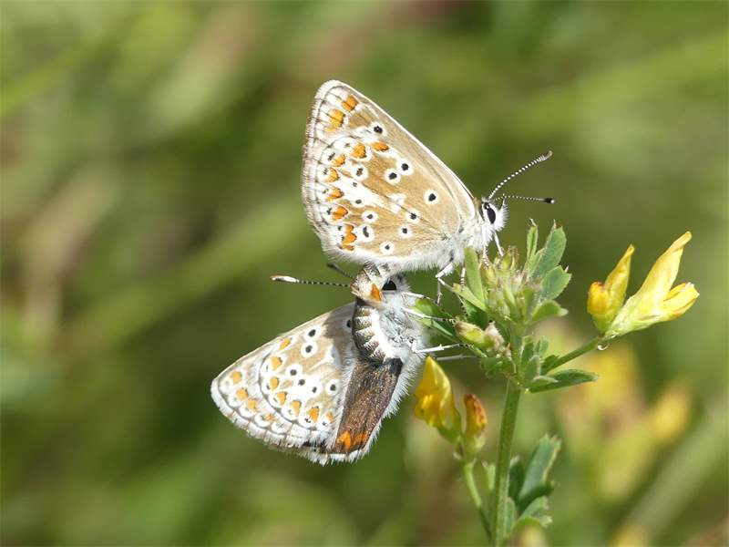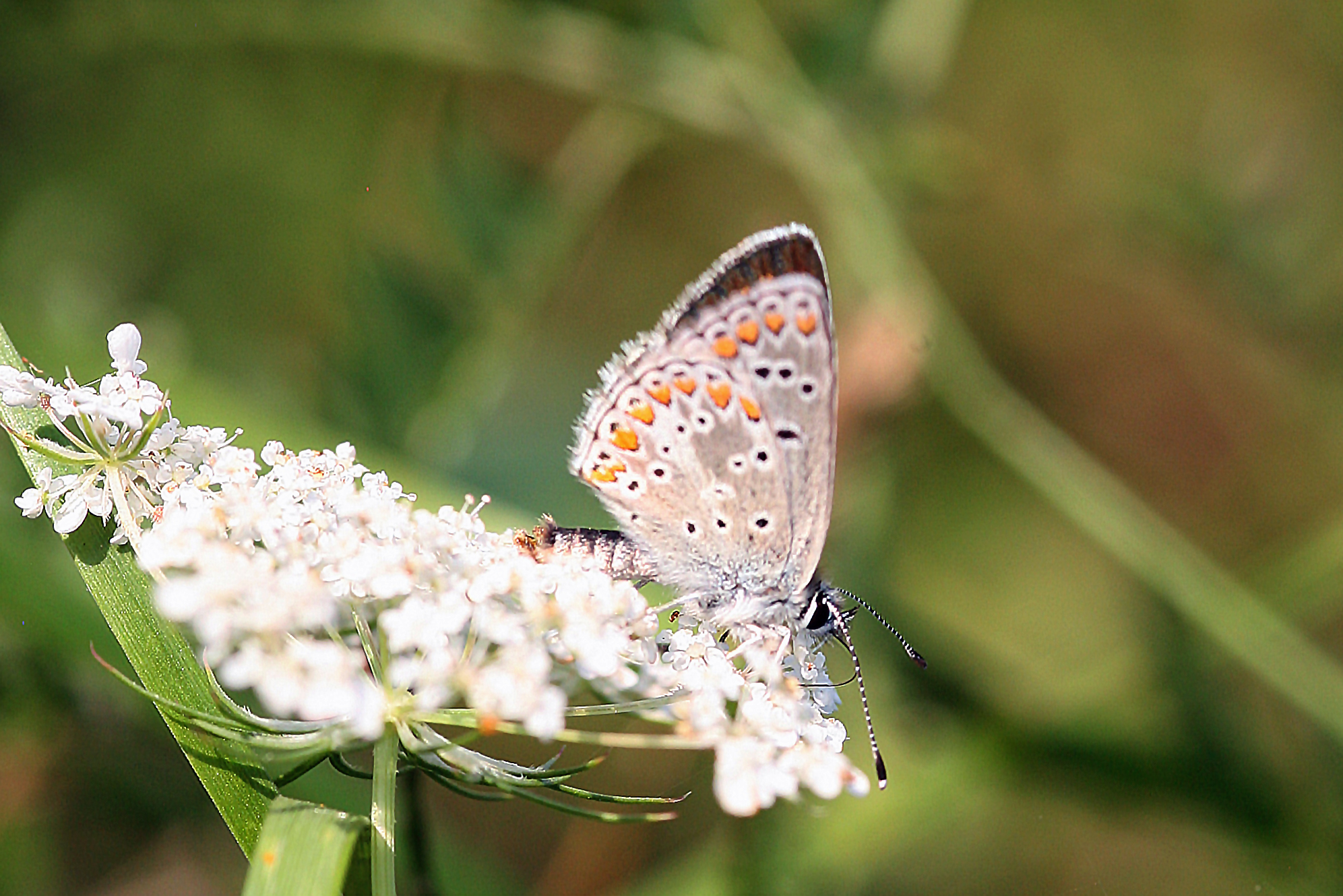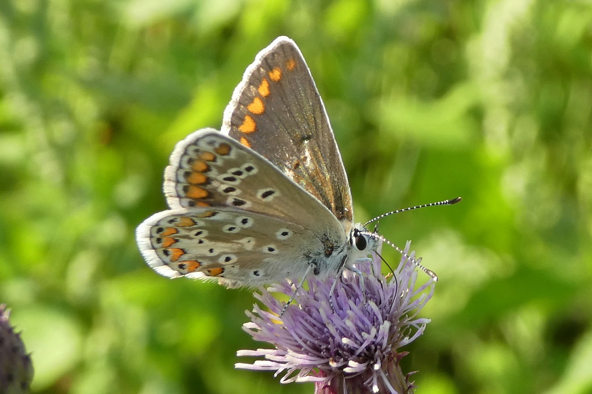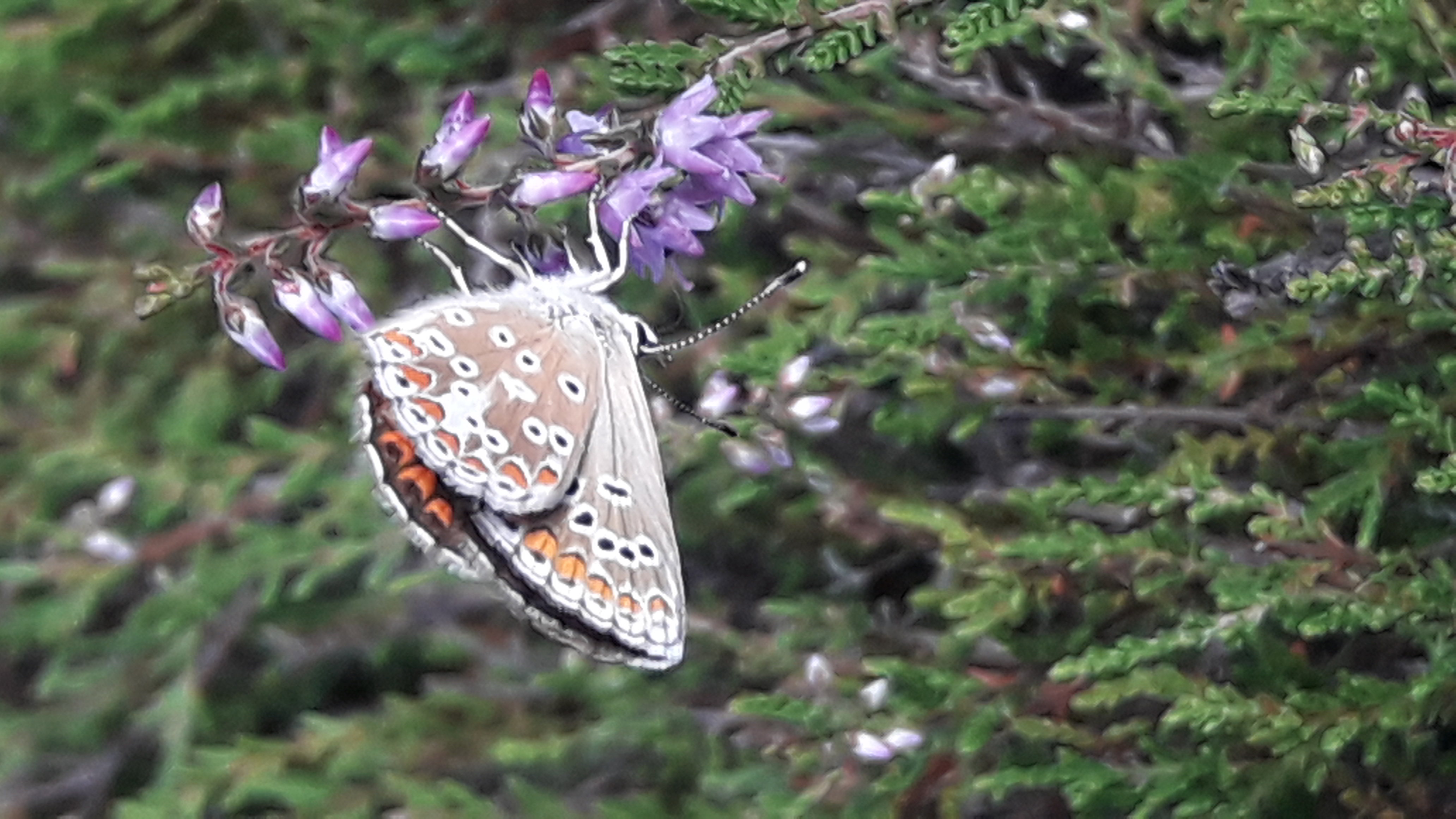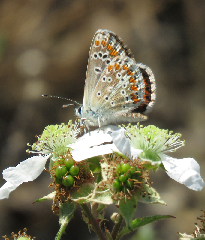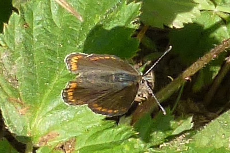 Kleiner Sonnenröschenbläuling (Aricia agestis (Denis & Schiffermüller, 1775)),Freital/Wurgwitz,Hammerteich,Wegrand auf Klee,Sep.2019