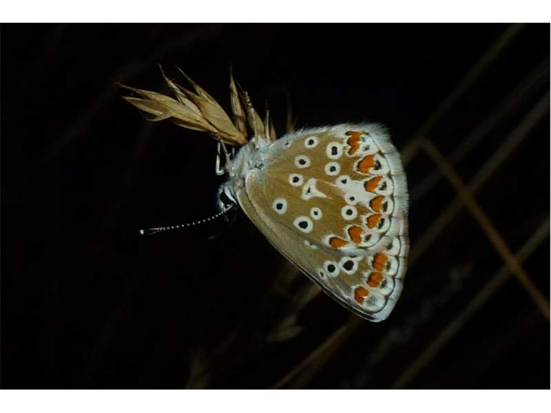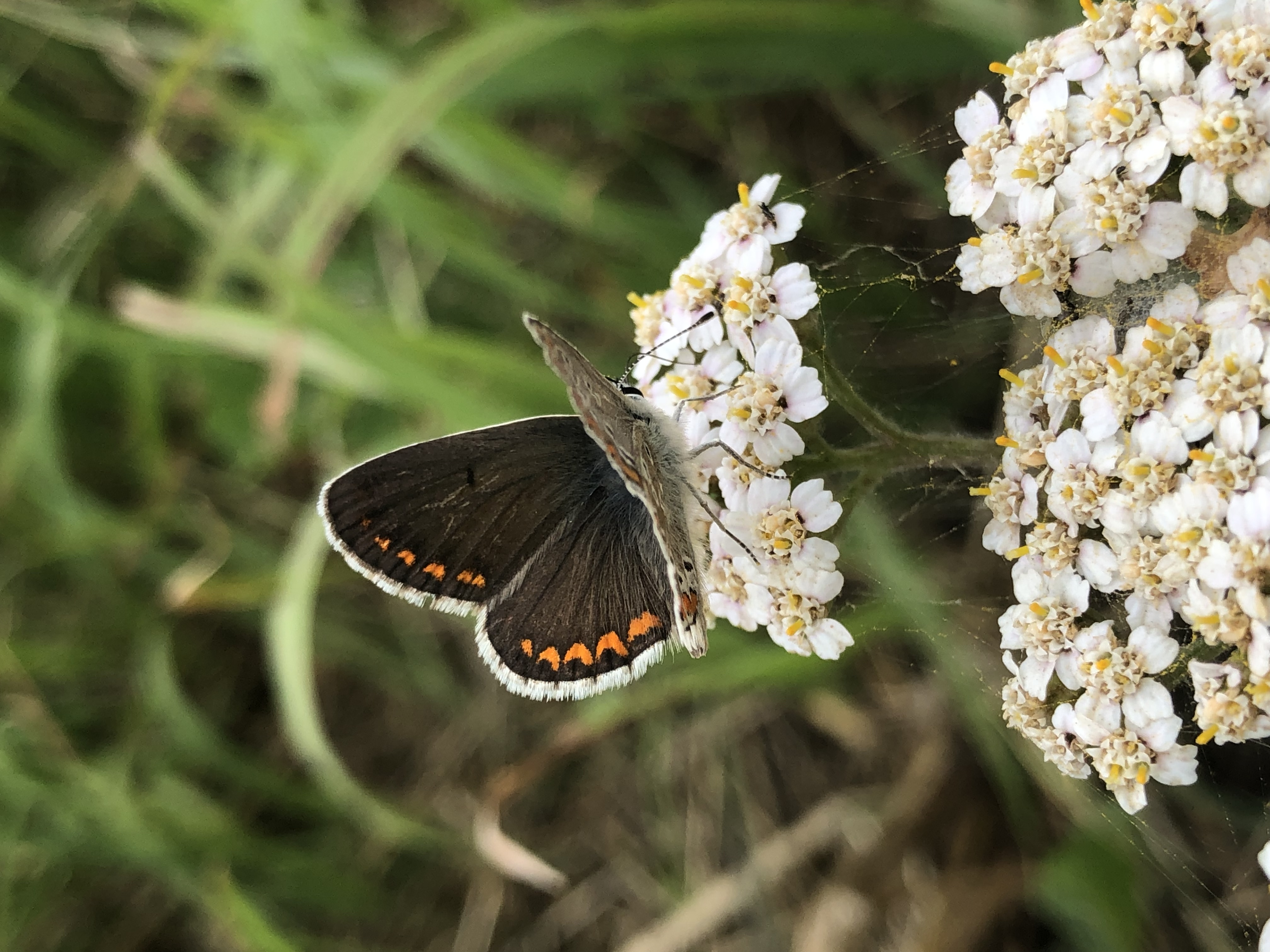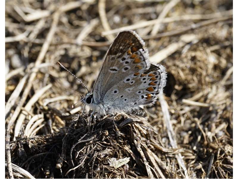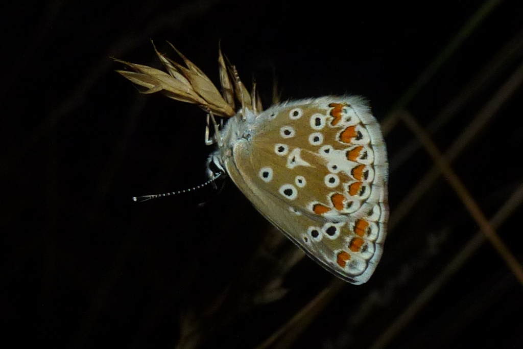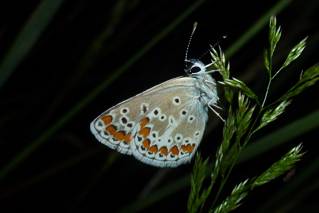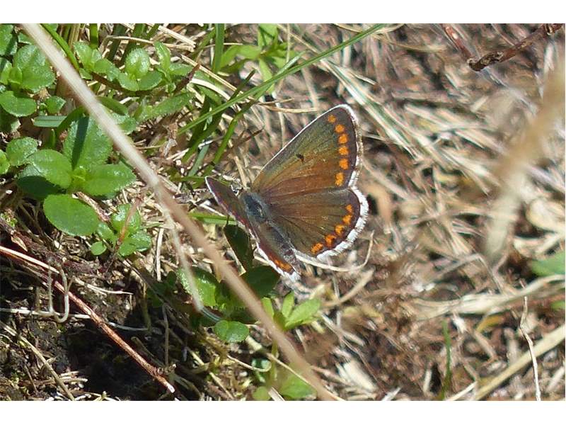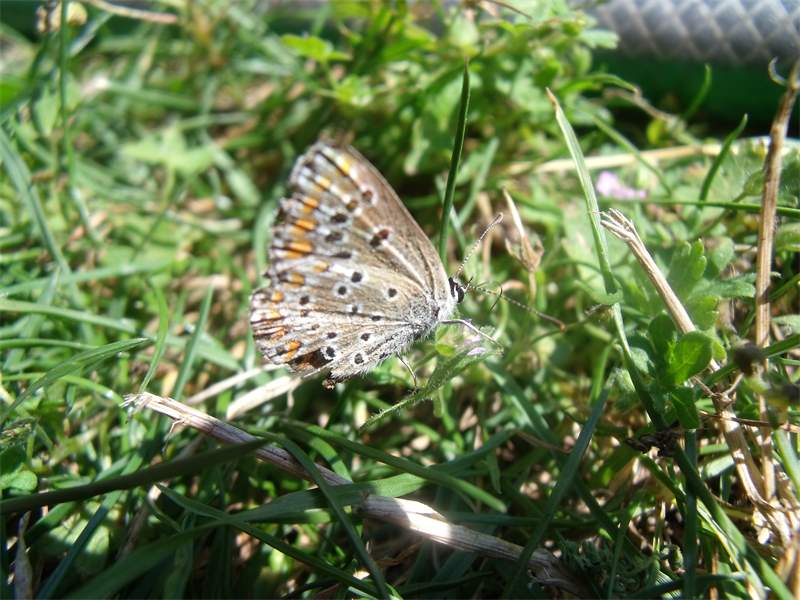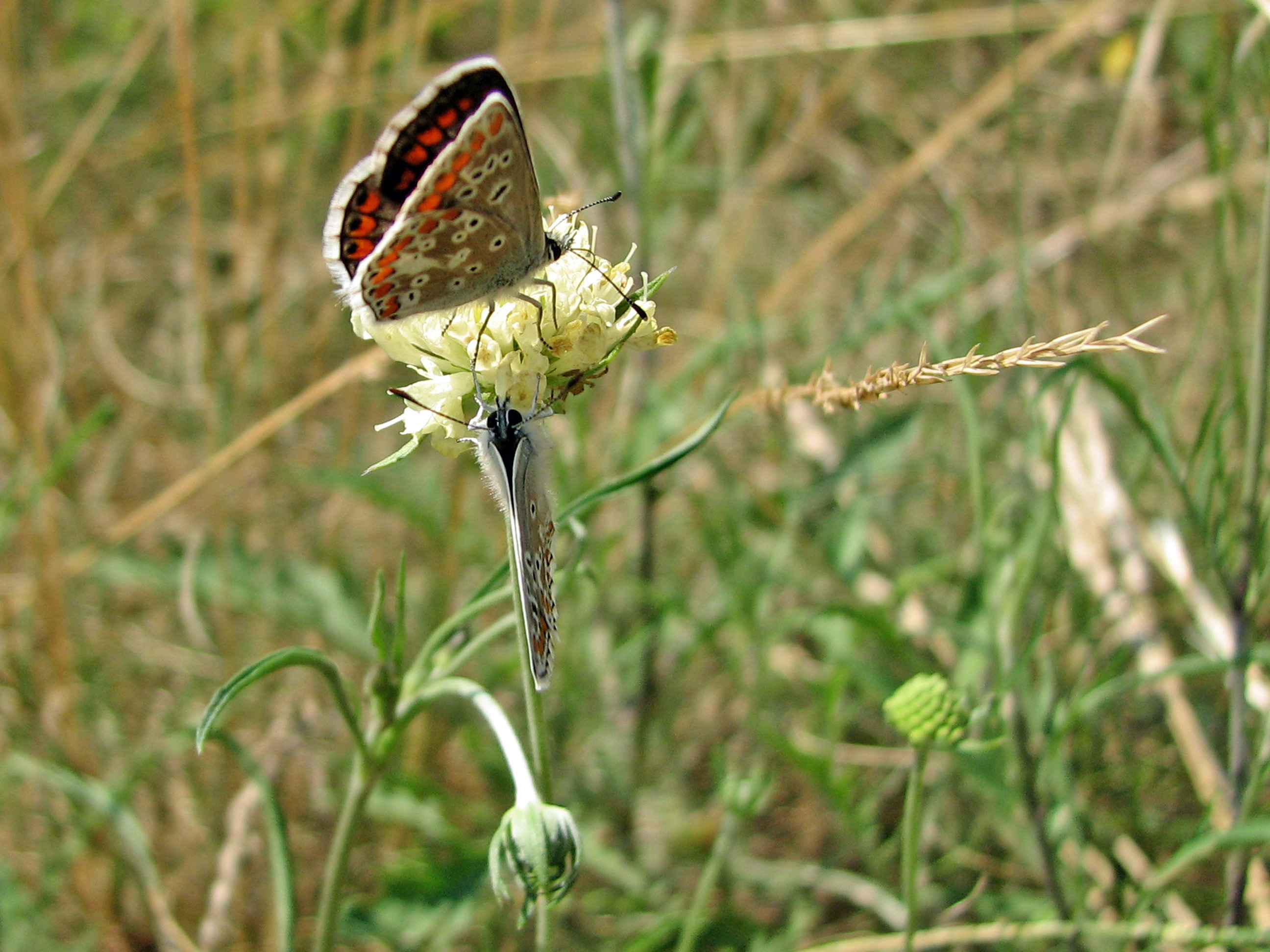 Kleiner Sonnenröschenbläuling (Aricia agestis (Denis & Schiffermüller, 1775)),Freital/Wurgwitz,Hammerteich,Wegrand auf Klee,Sep.2019