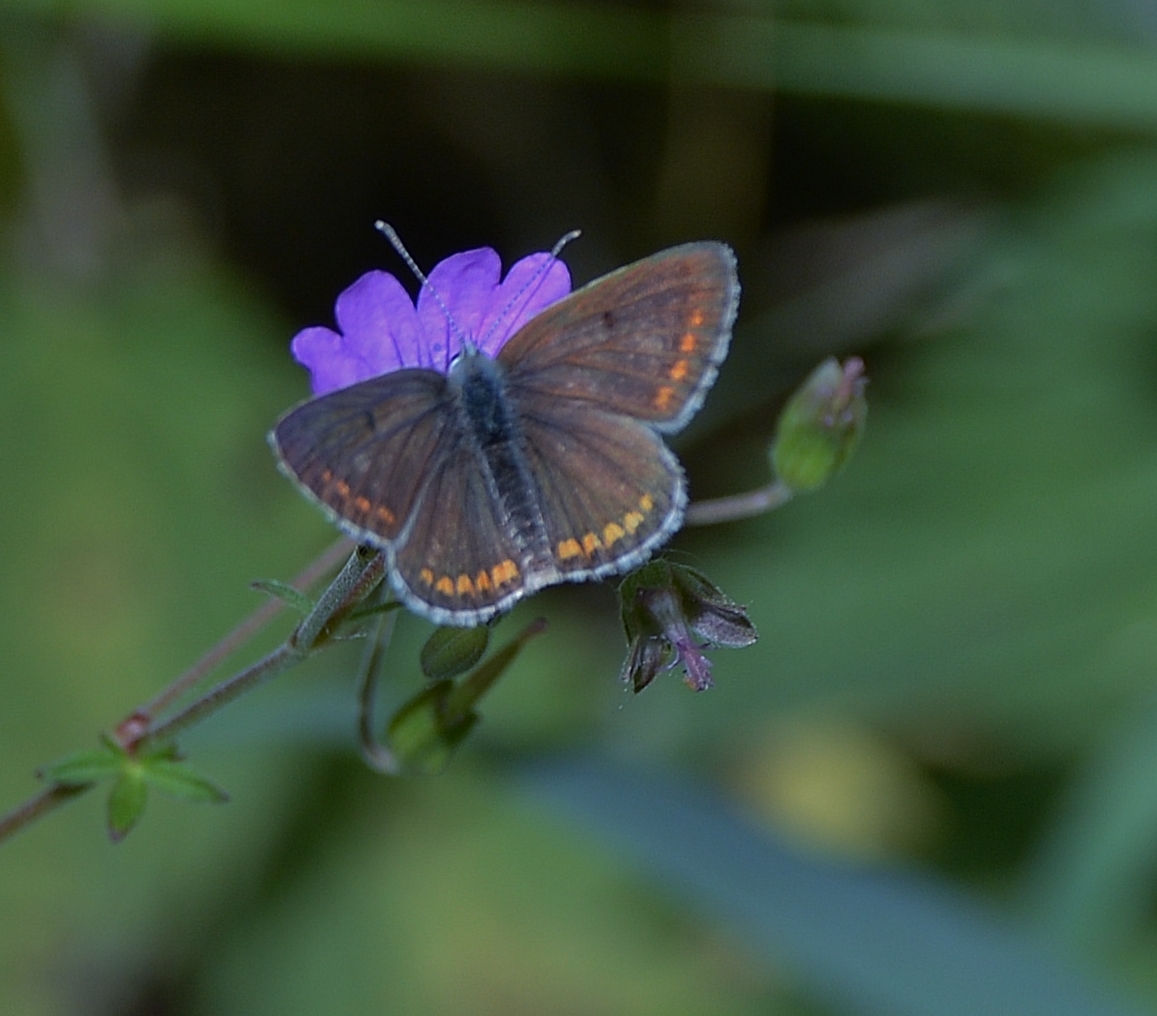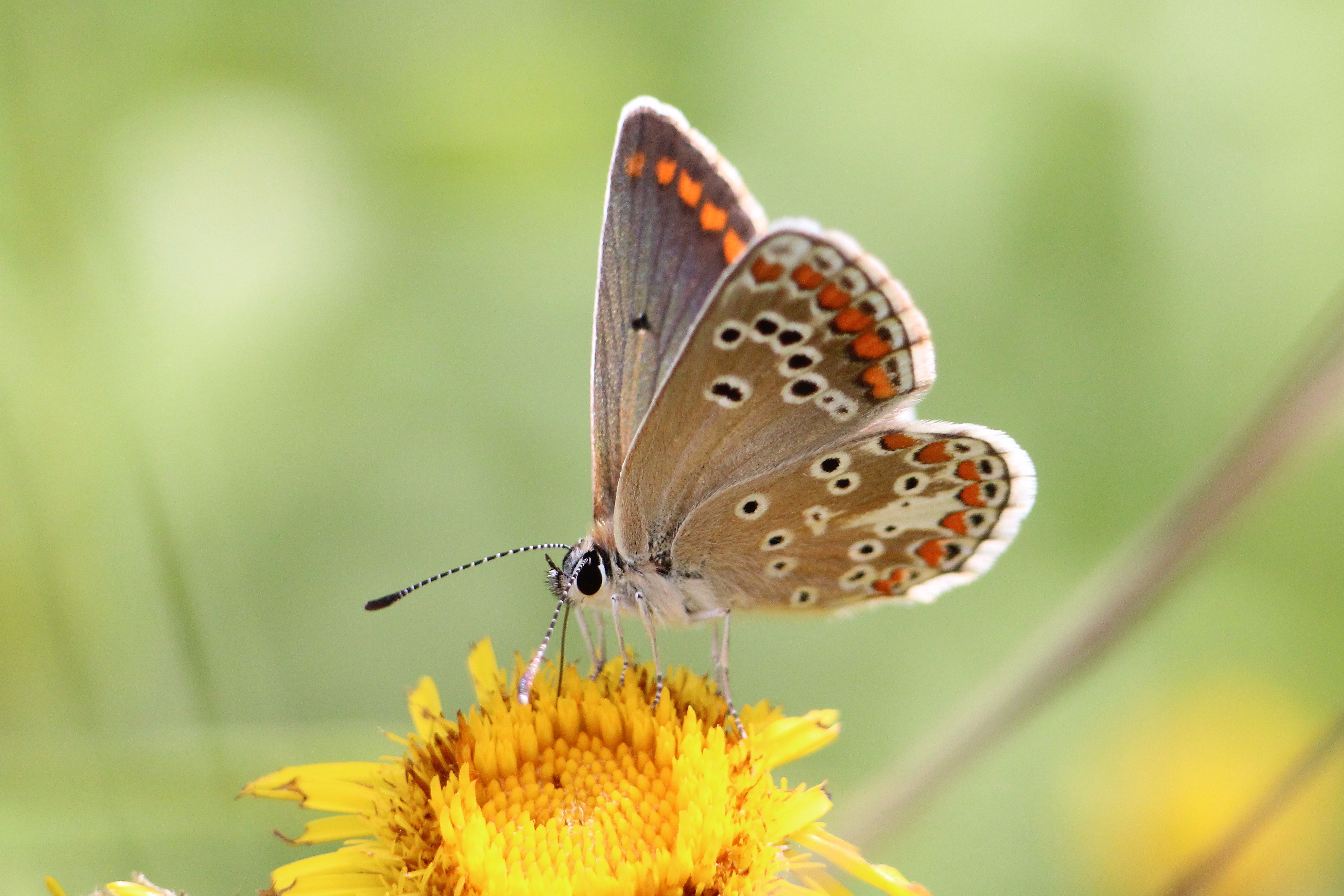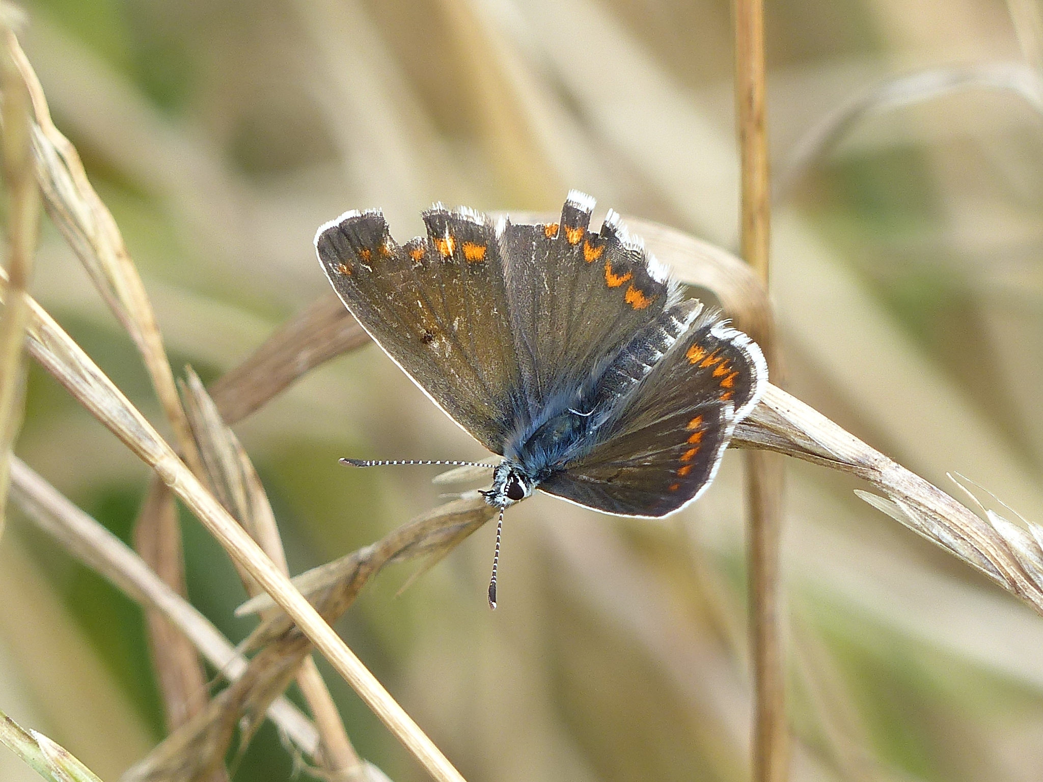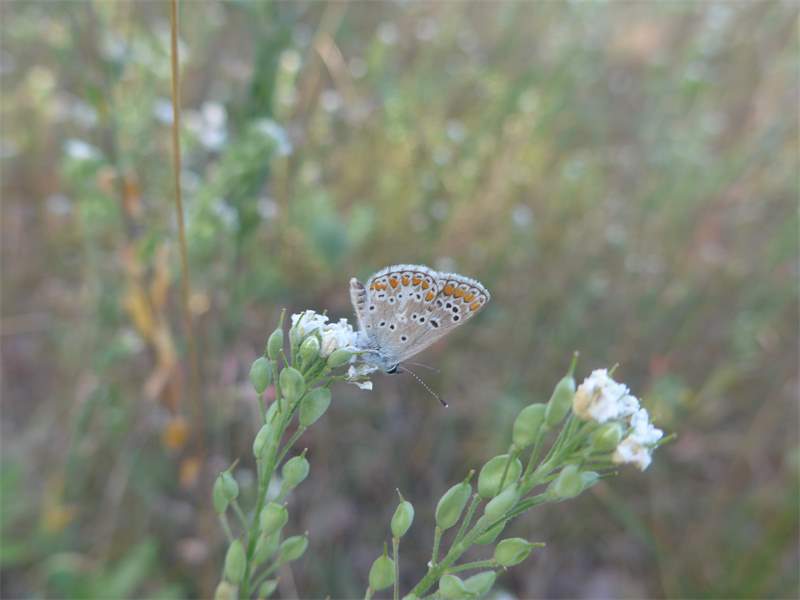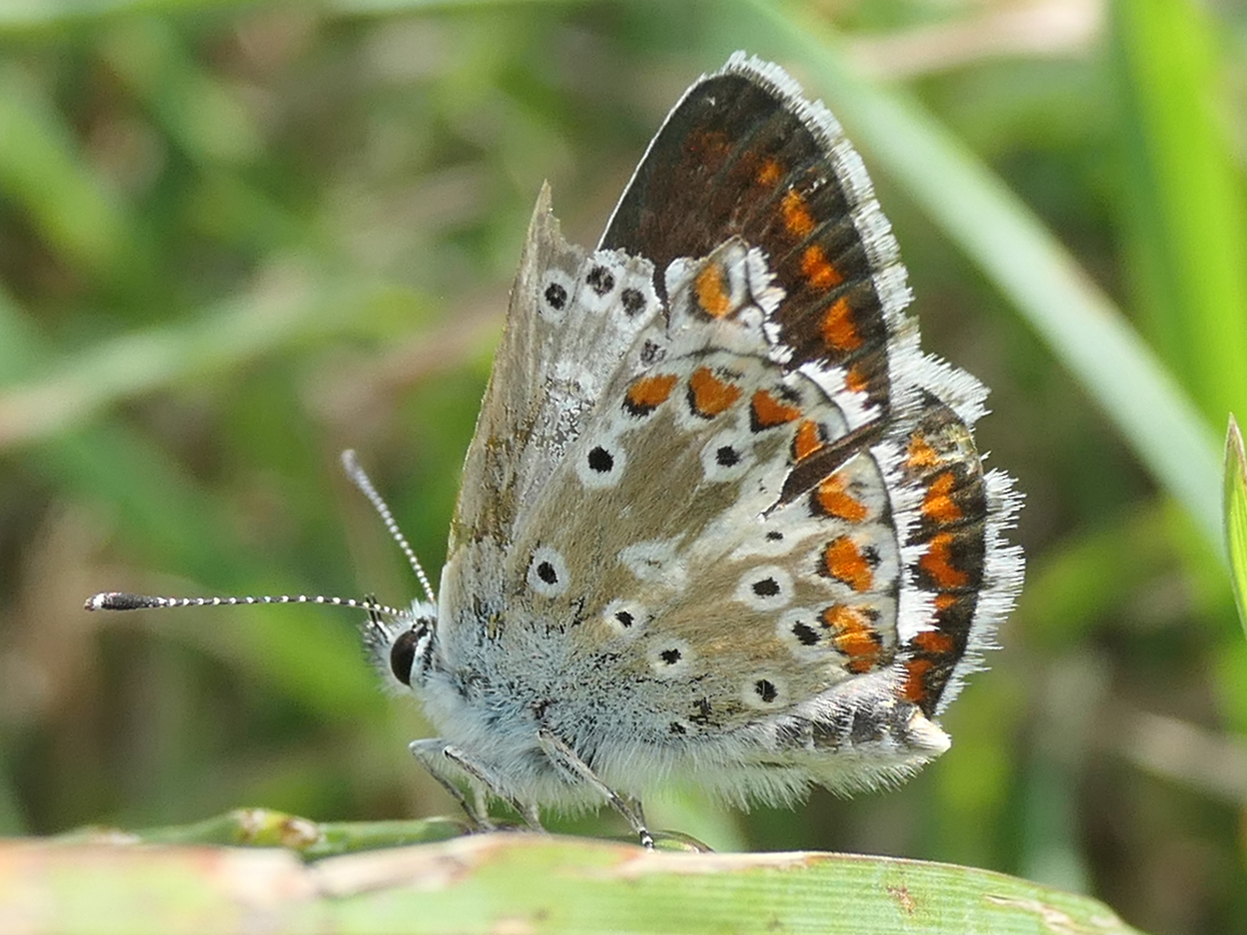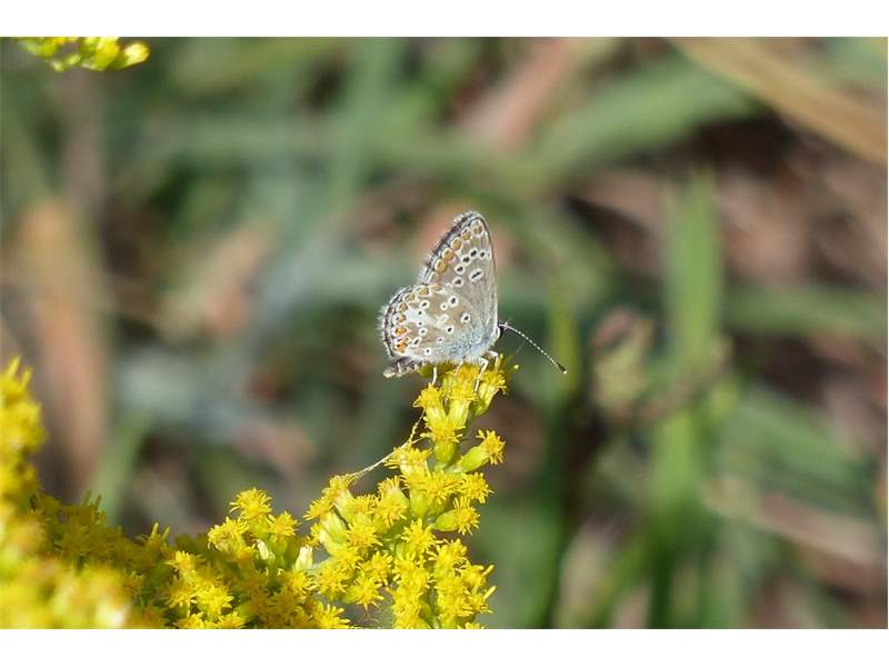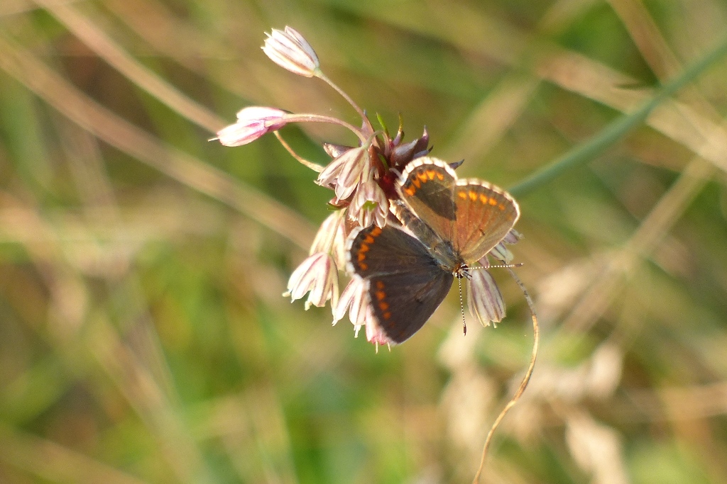 Kleiner Sonnenröschenbläuling (Aricia agestis (Denis & Schiffermüller, 1775)),Freital/Wurgwitz,Hammerteich,Wegrand auf Klee,Sep.2019
