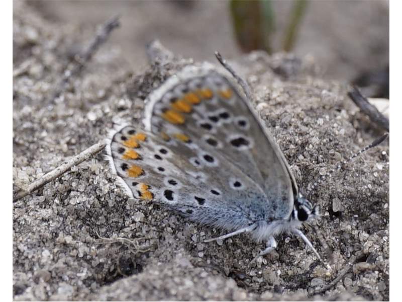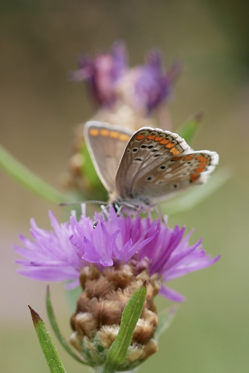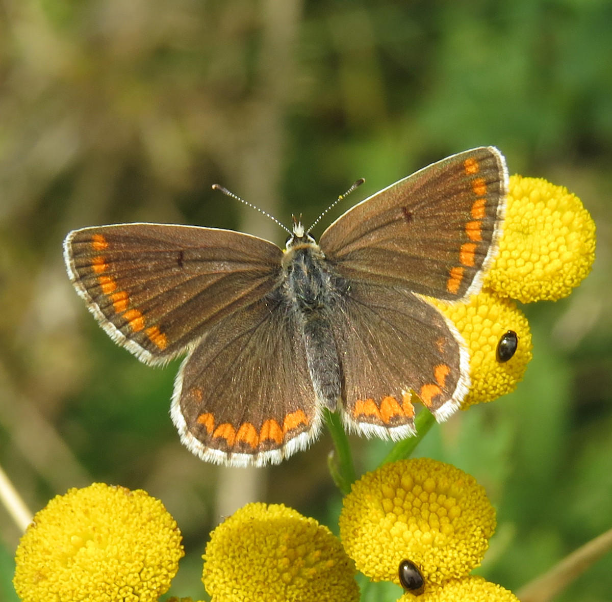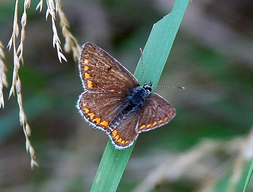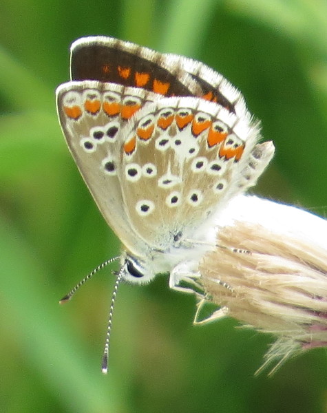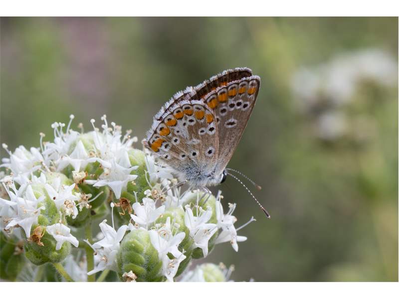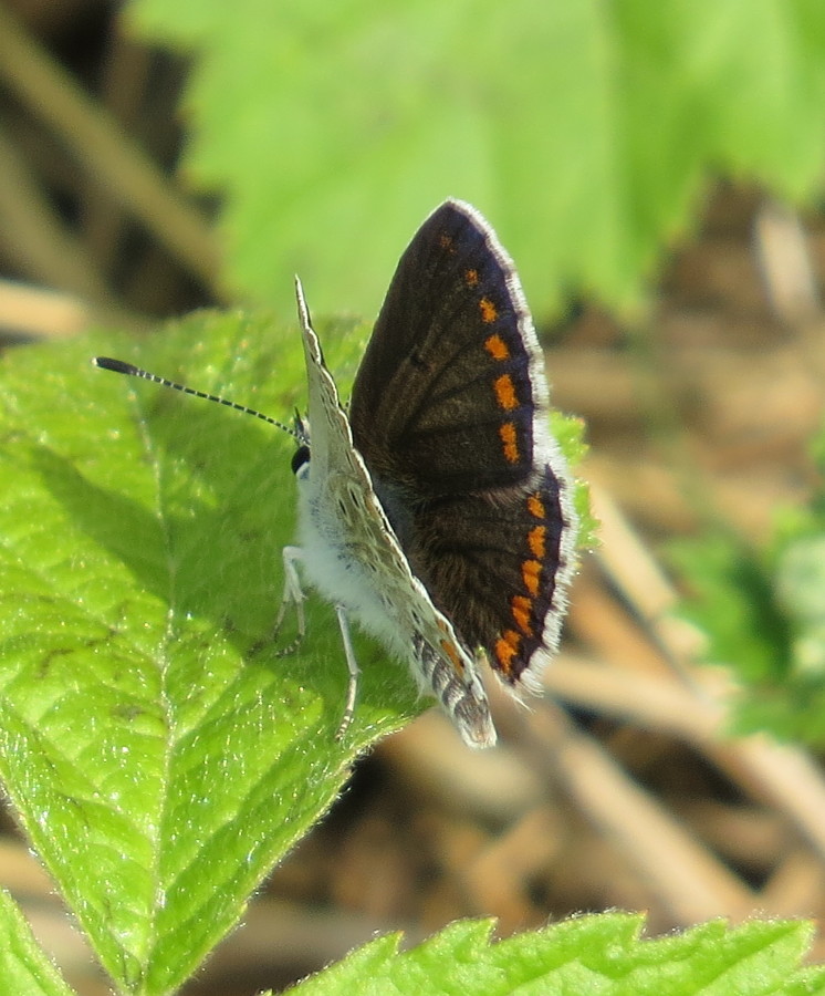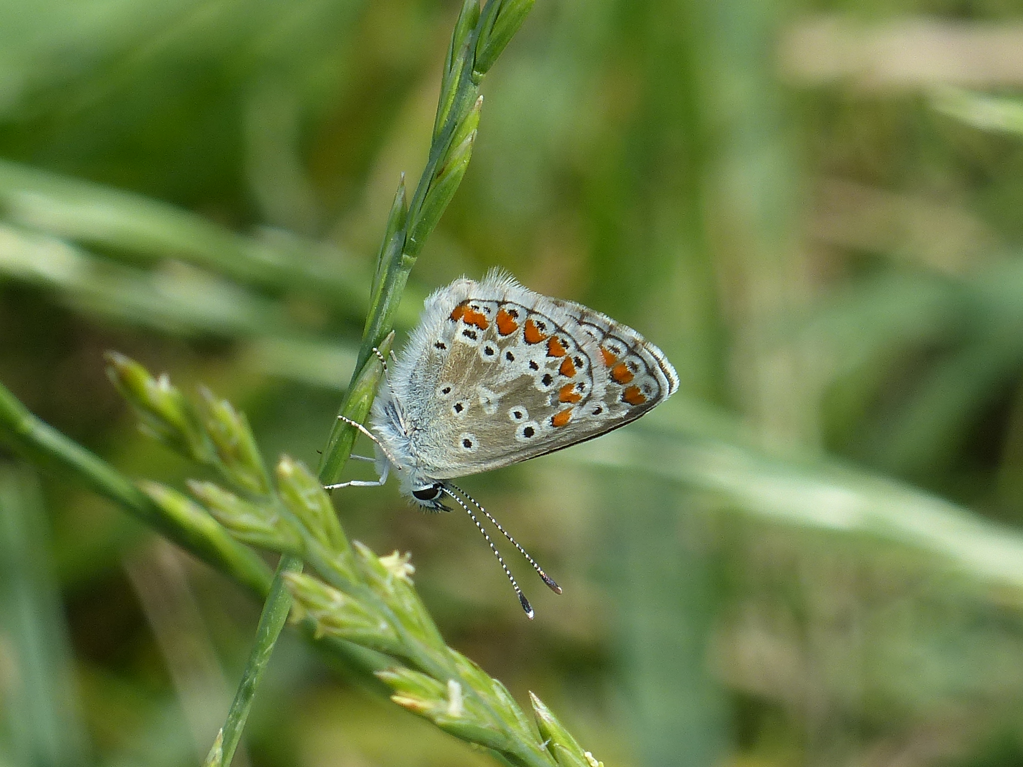 Kleiner Sonnenröschenbläuling (Aricia agestis (Denis & Schiffermüller, 1775)),Freital/Wurgwitz,Hammerteich,Wegrand auf Klee,Sep.2019