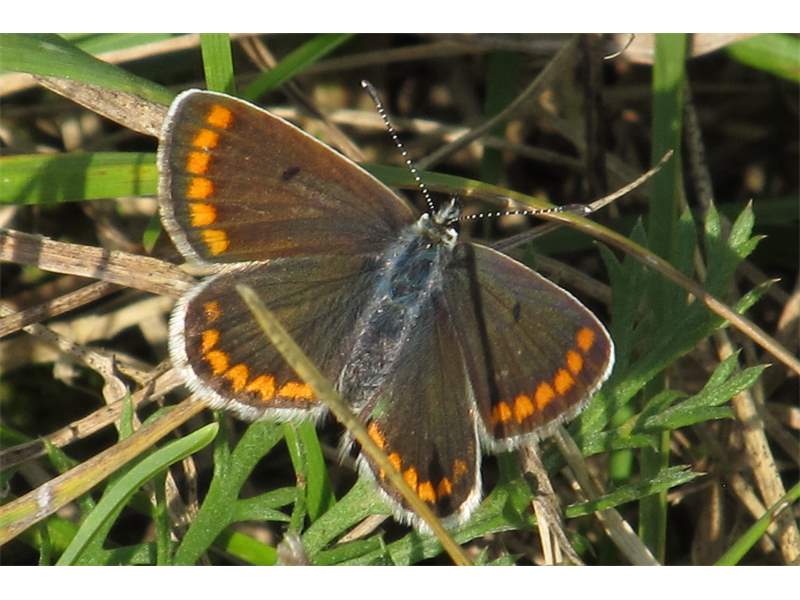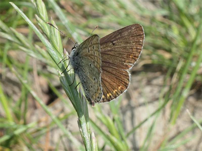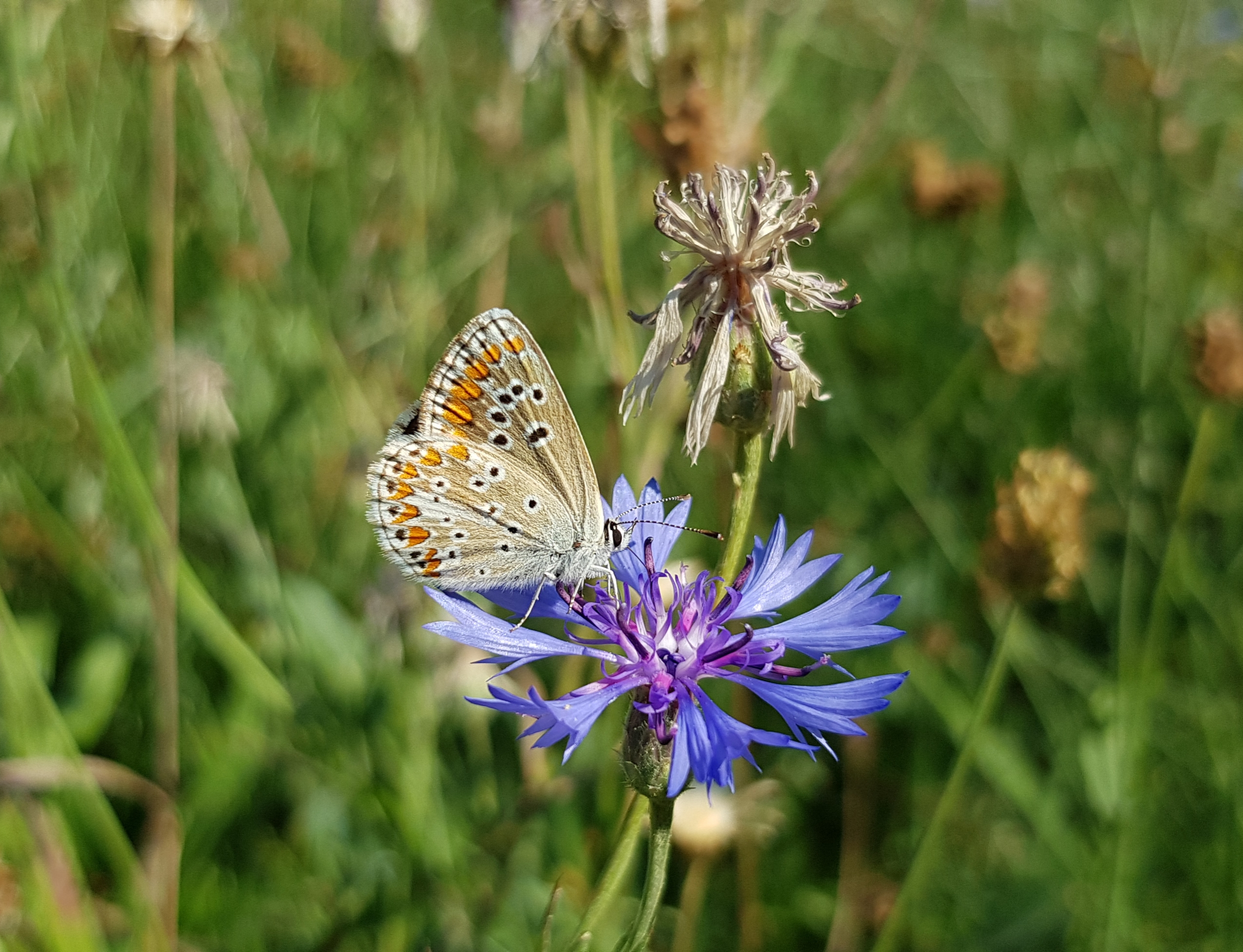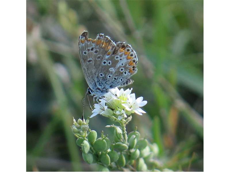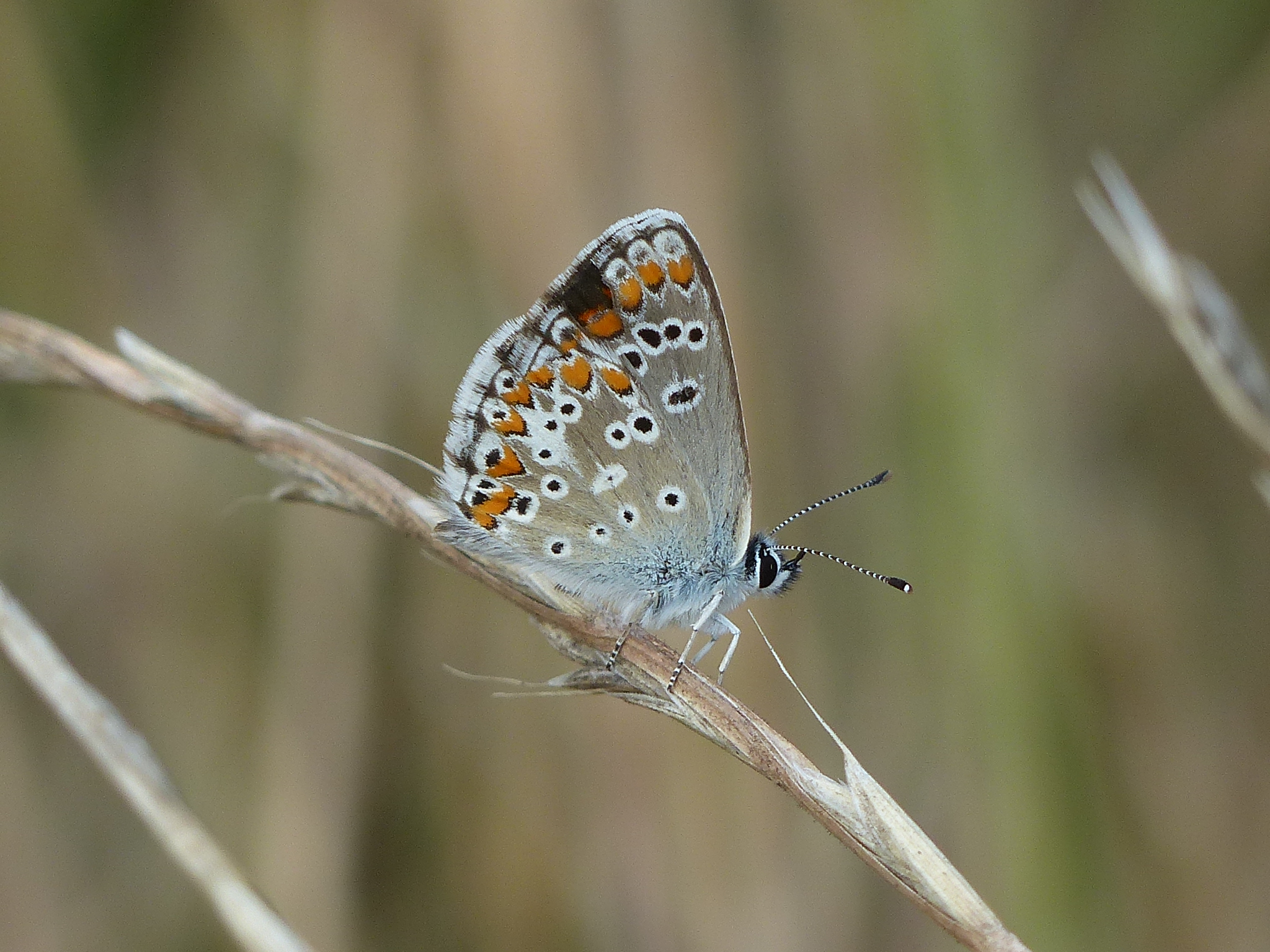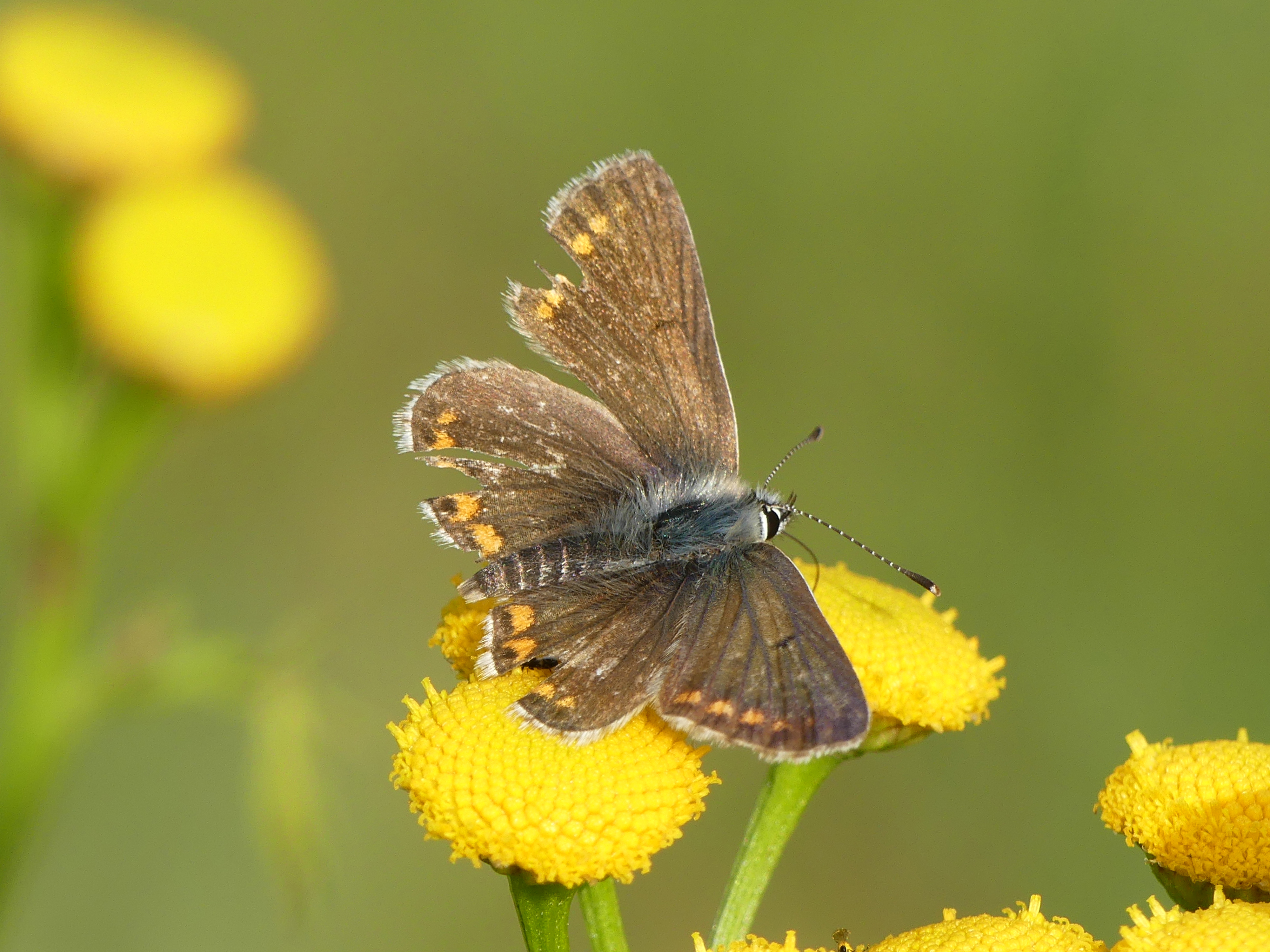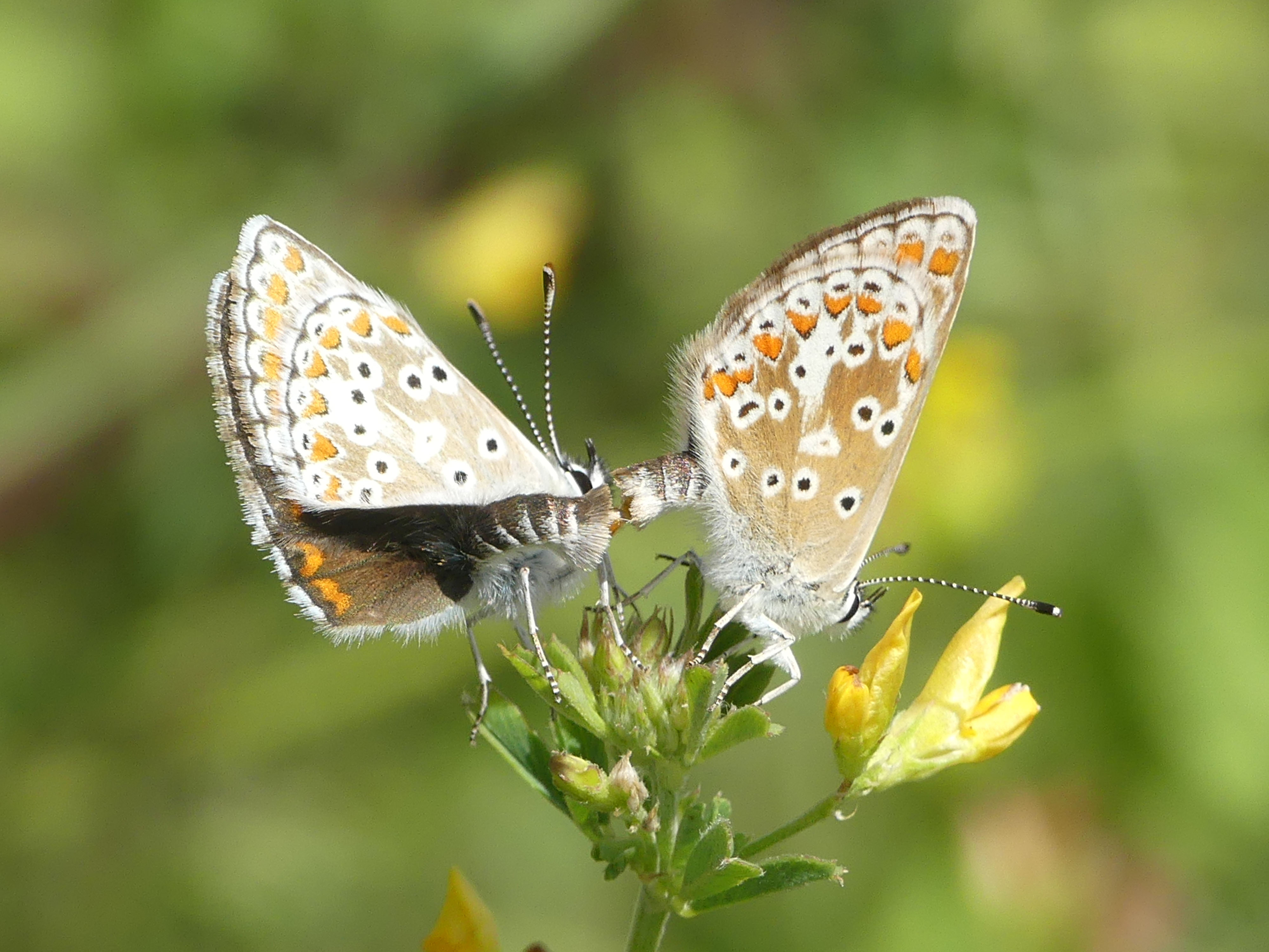 Kleiner Sonnenröschenbläuling (Aricia agestis (Denis & Schiffermüller, 1775)),Freital/Wurgwitz,Hammerteich,Wegrand auf Klee,Sep.2019