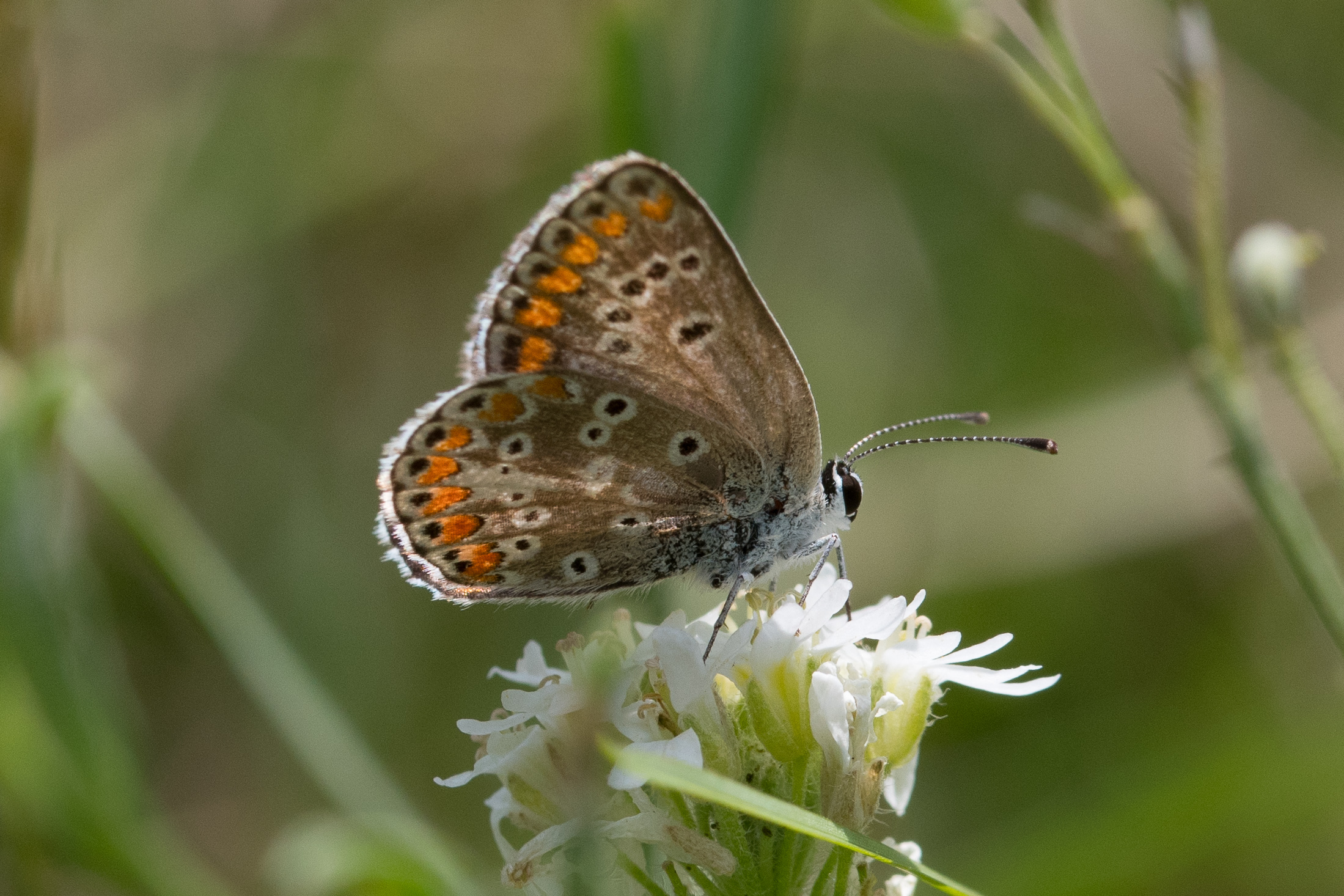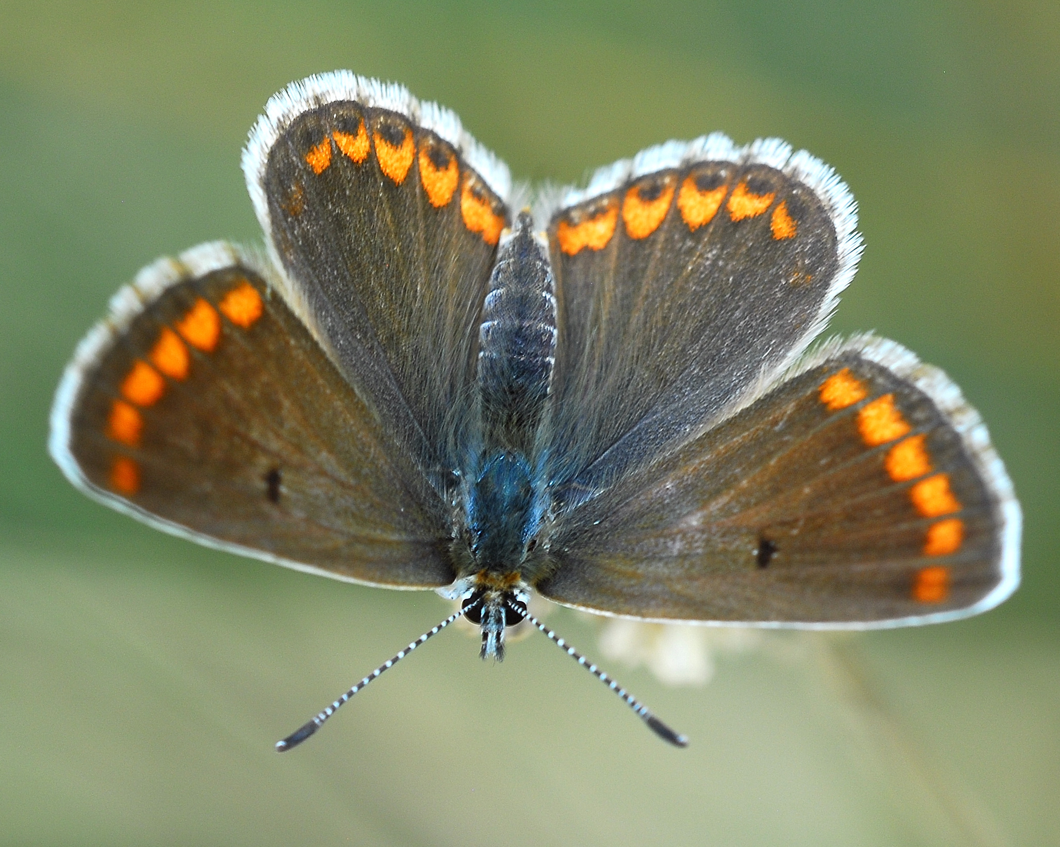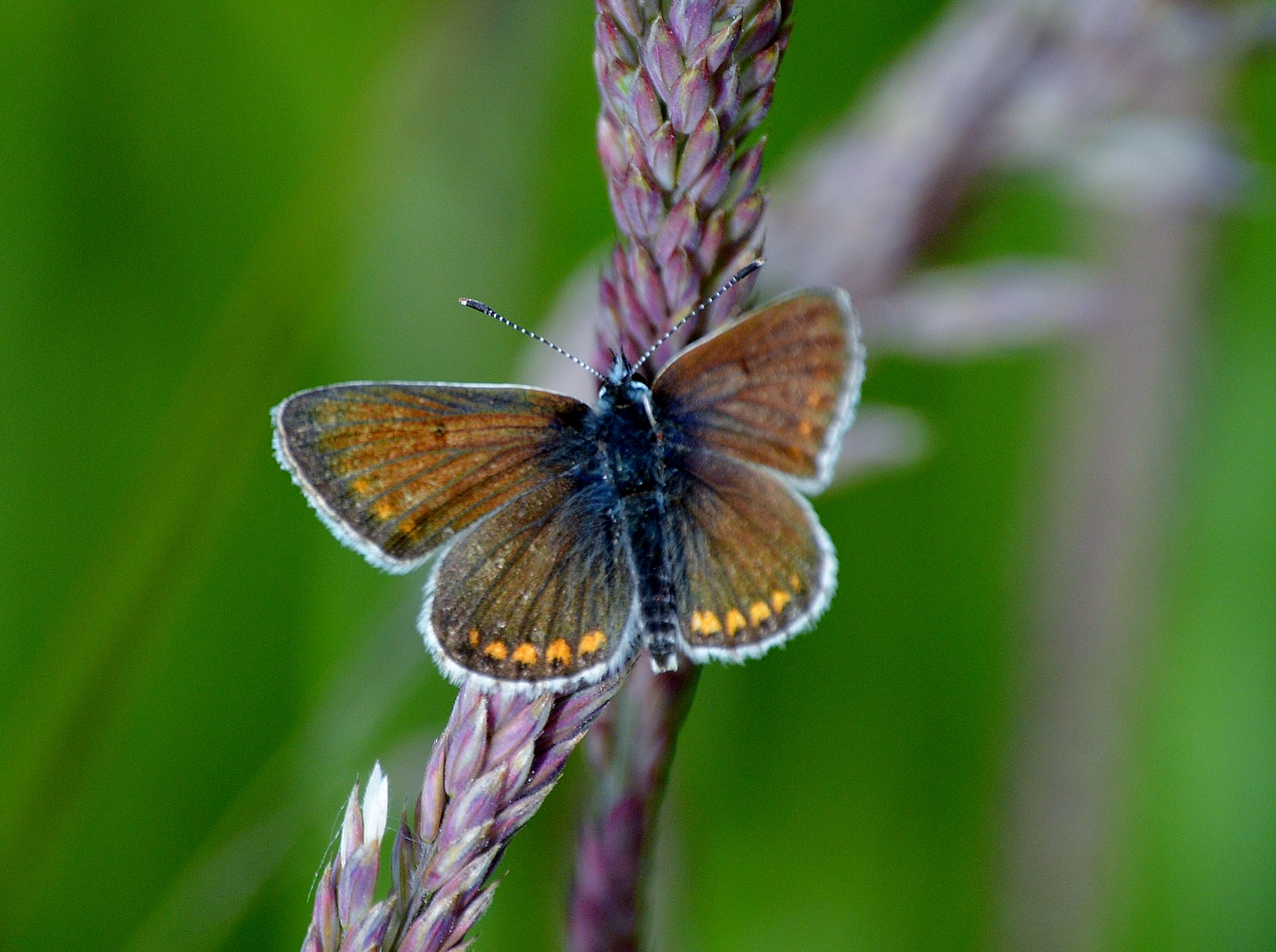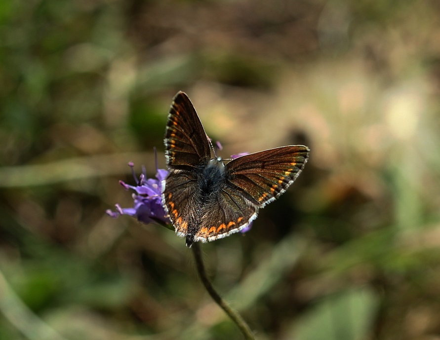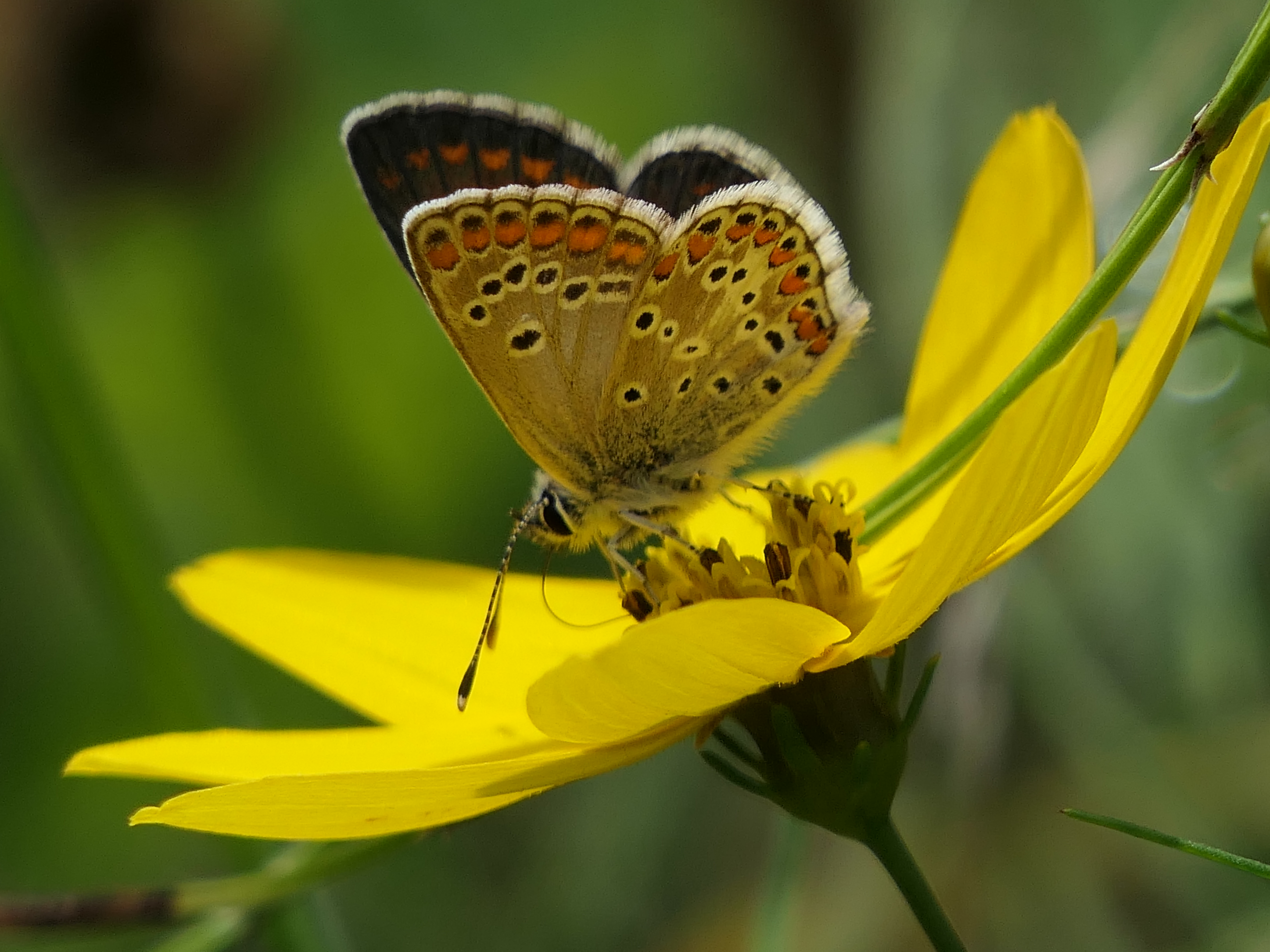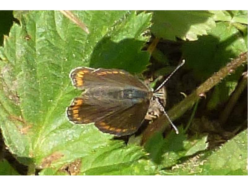 Kleiner Sonnenröschenbläuling (Aricia agestis (Denis & Schiffermüller, 1775)),Freital/Wurgwitz,Hammerteich,Wegrand auf Klee,Sep.2019